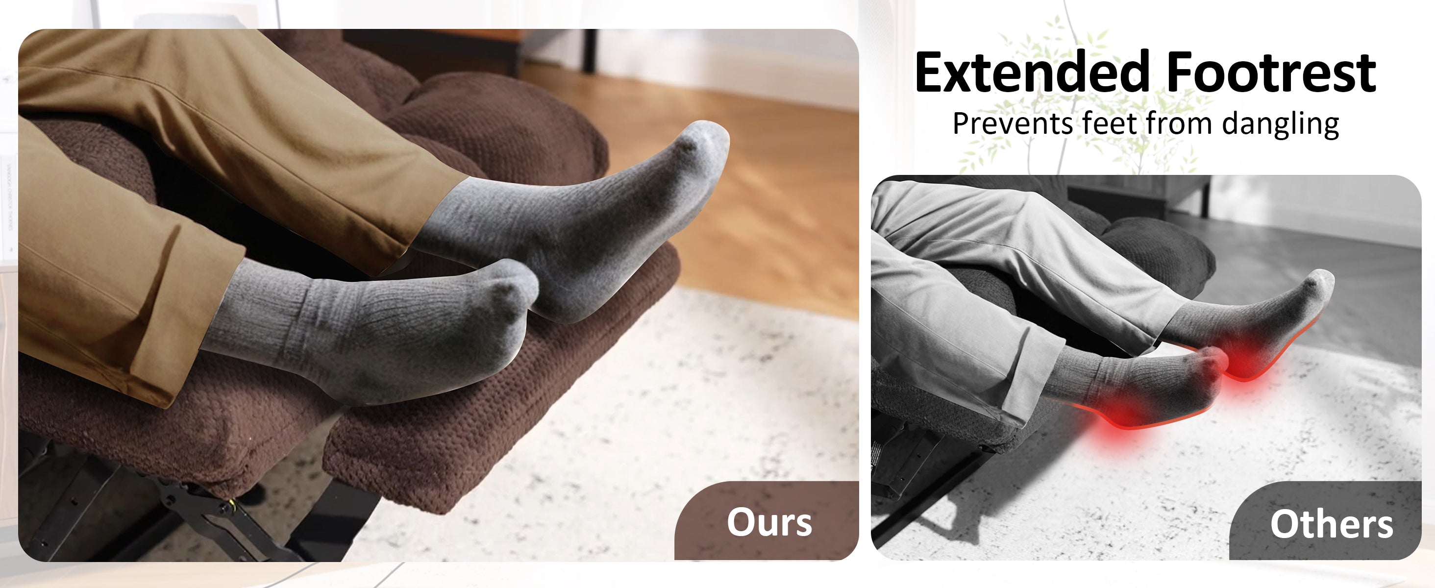 - 4.7'' extended footrest ensures stretch fully and foot circulation