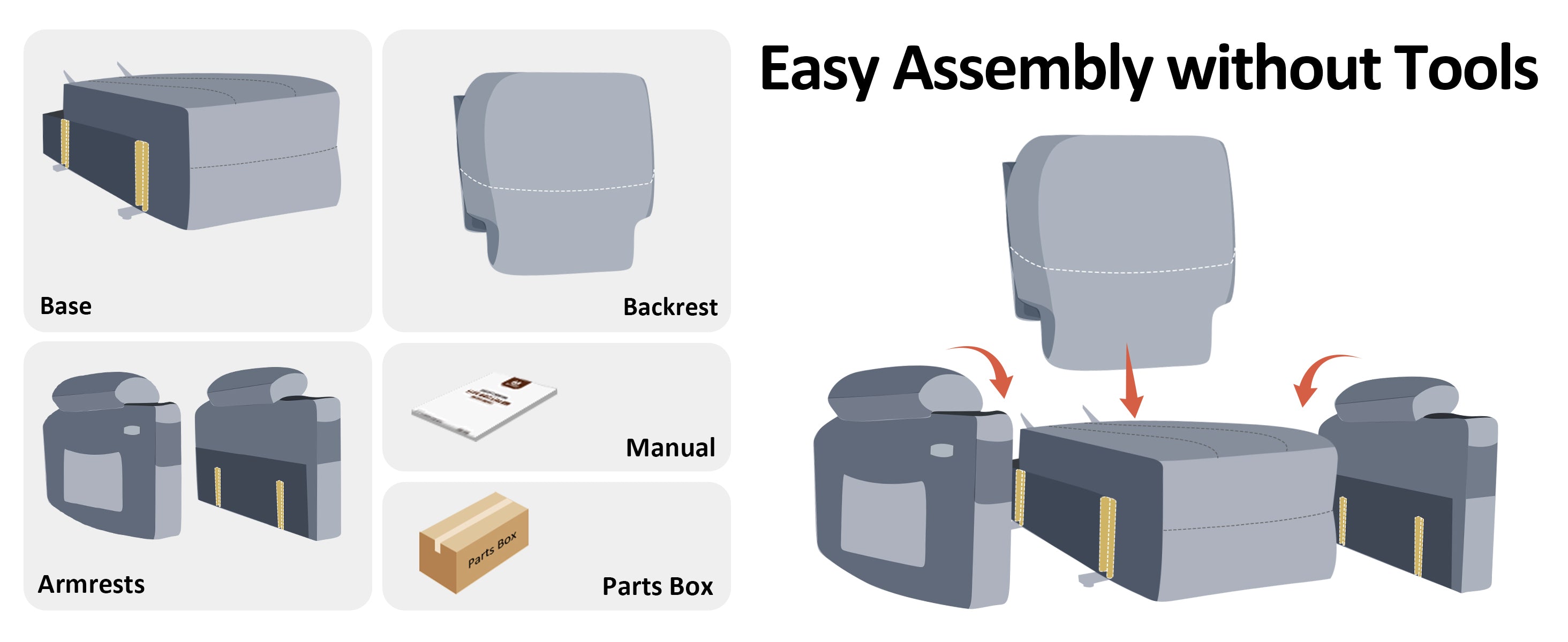 - Adjustable headrest for custom comfort while sitting upright or sleeping