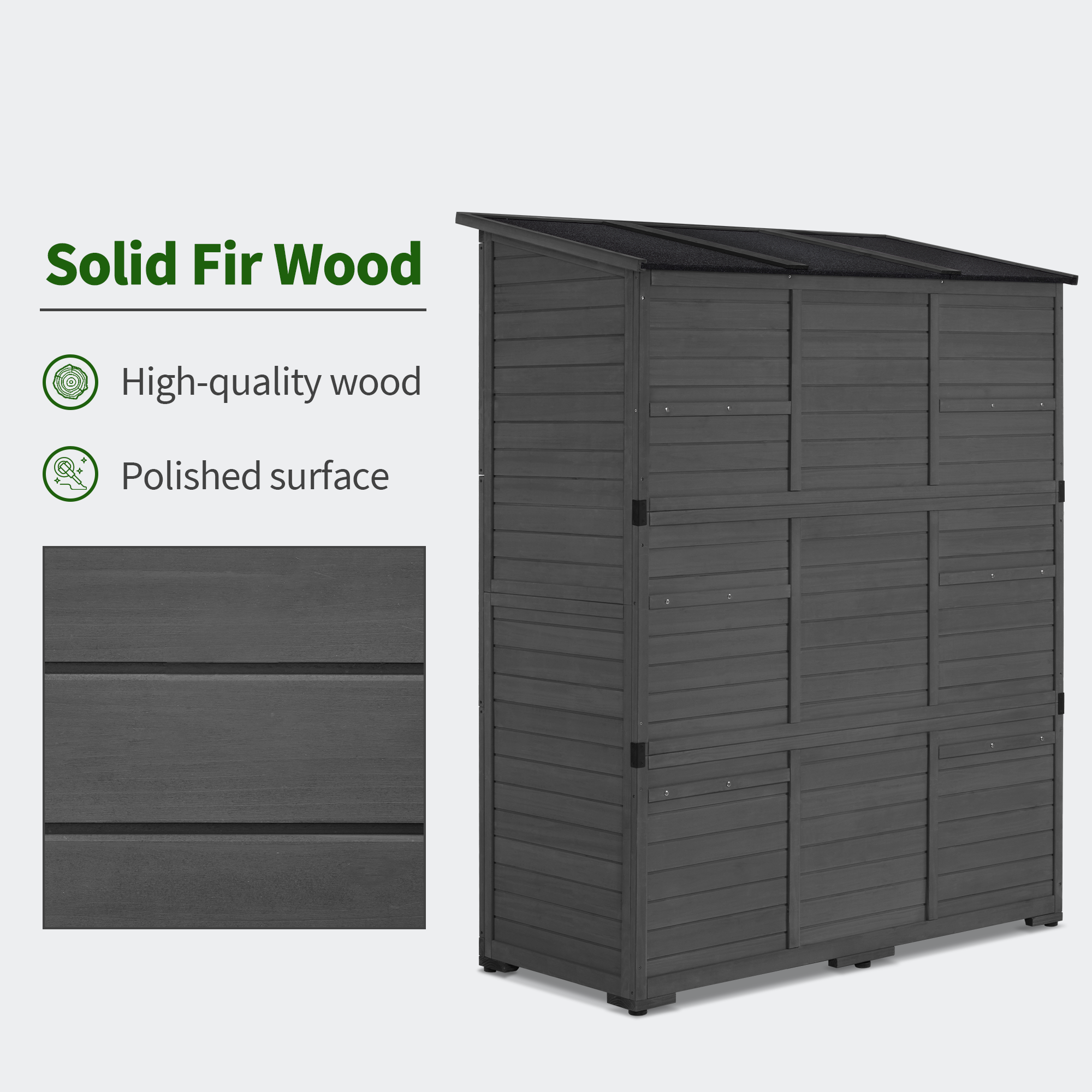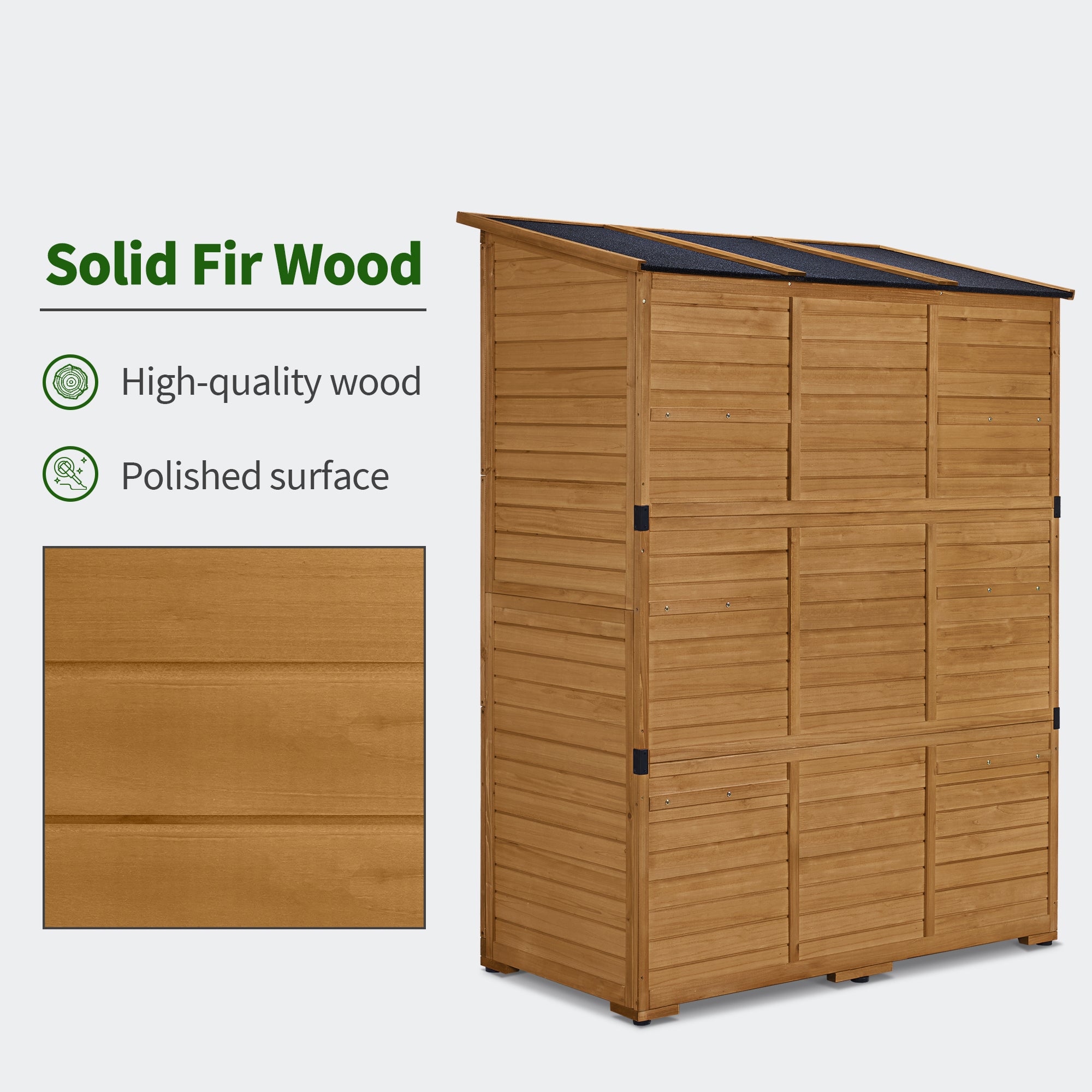- Fir Solid Wood: Our lean to shed is made of high-quality pure fir wood, and the exterior has been polished to express a rustic style. Natural Color blends easily with other décor and natural settings.