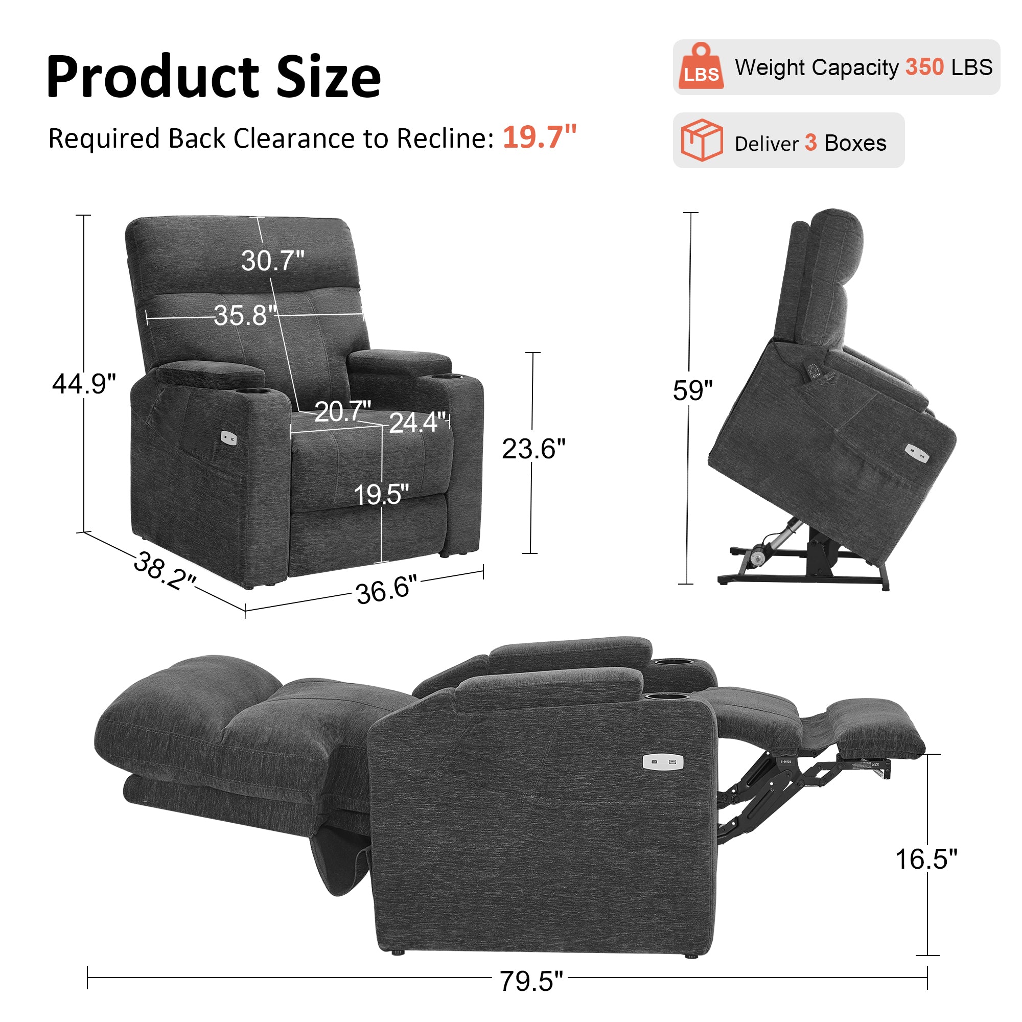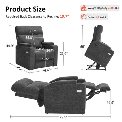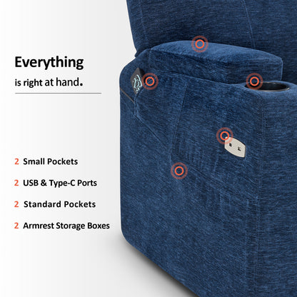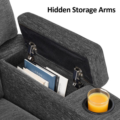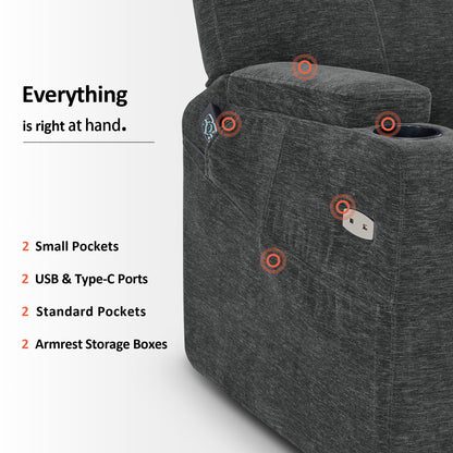 - Flip-Up Arm Storage Boxes: Both armrests open to reveal deep storage compartments measuring 14.6" L × 4.1" W × 11" D—perfect for keeping remotes, glasses, medication, blankets, and other essentials organized and within reach
