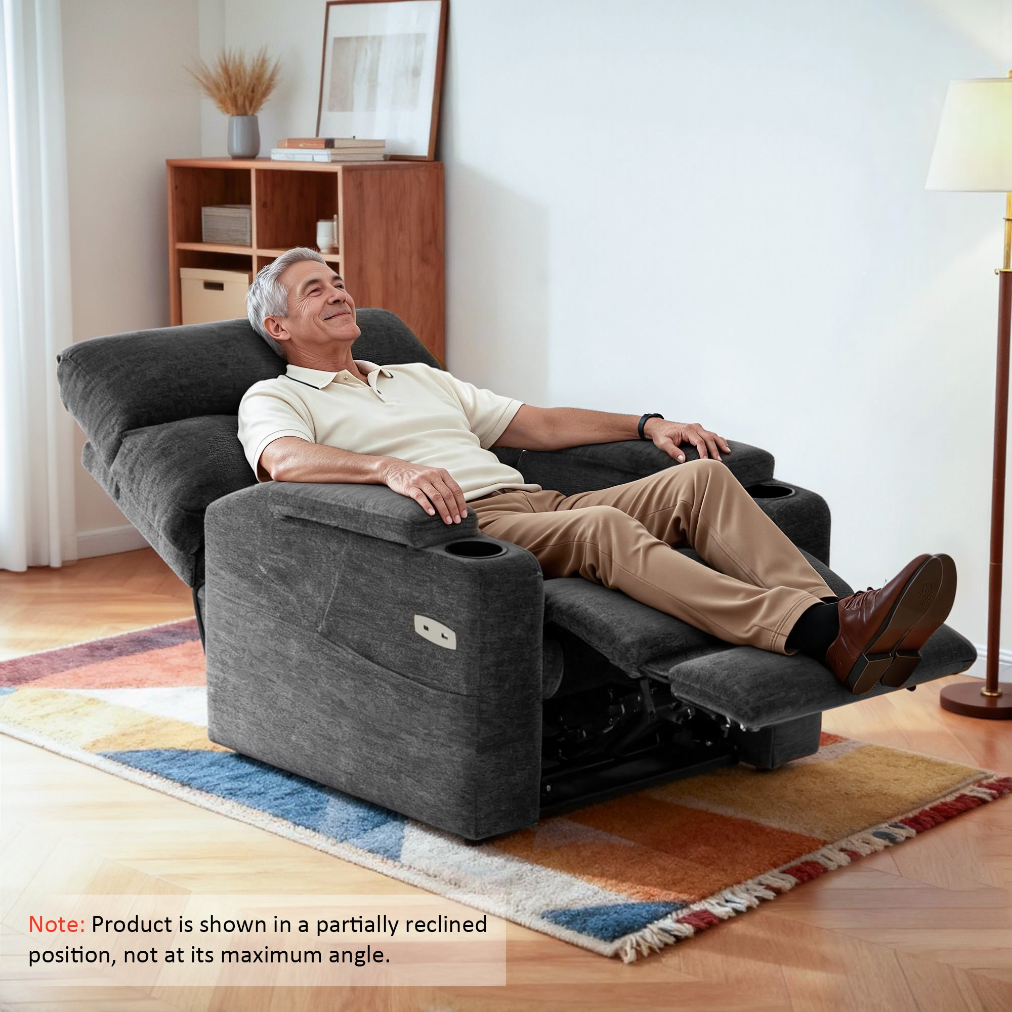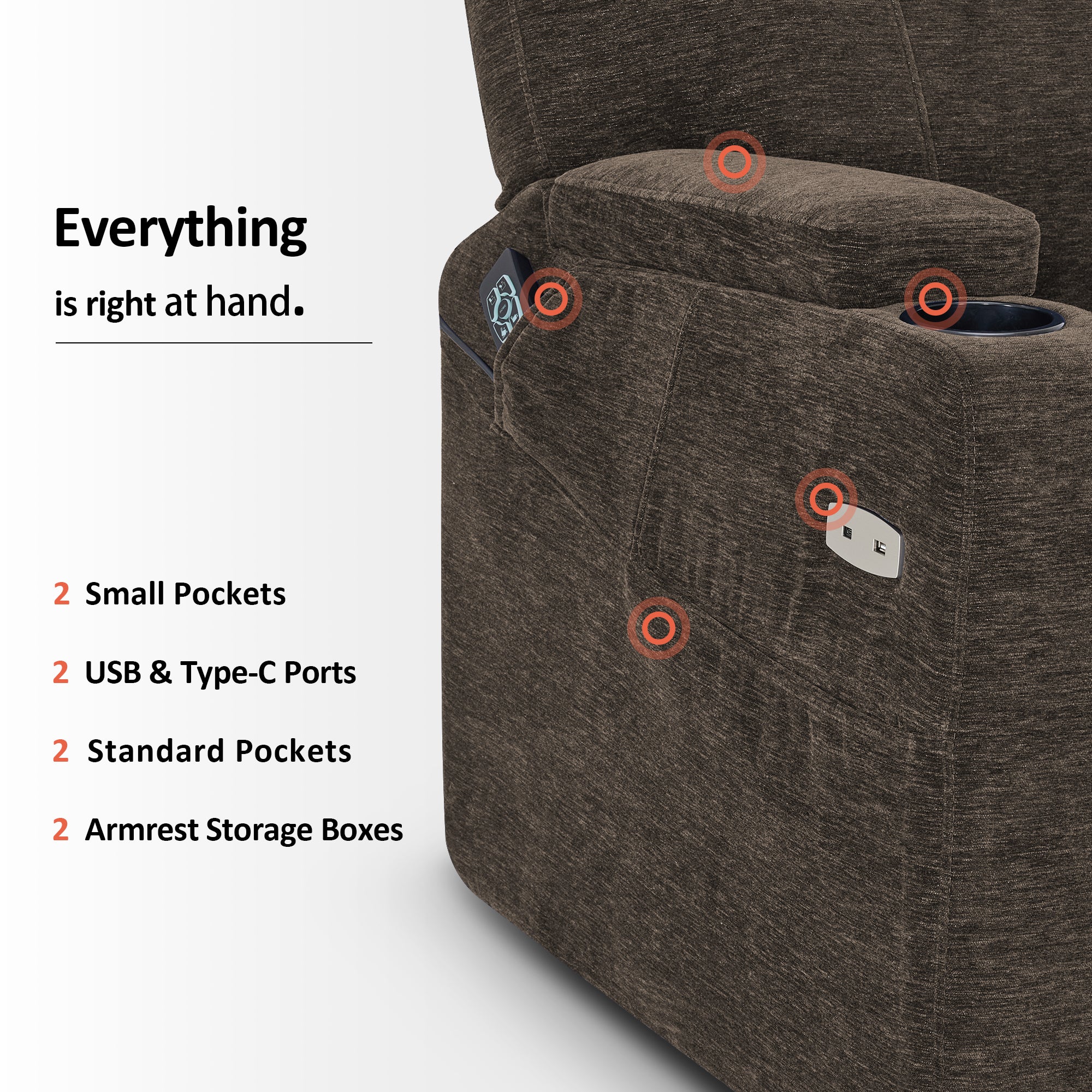 - Everyday Convenience Essentials: Dual USB-A and USB-C charging ports, two stable cup holders that keep drinks upright even when fully reclined, and two side pockets—one slanted for remotes and one vertical for magazines—help keep your space organized, connected, and easy to use