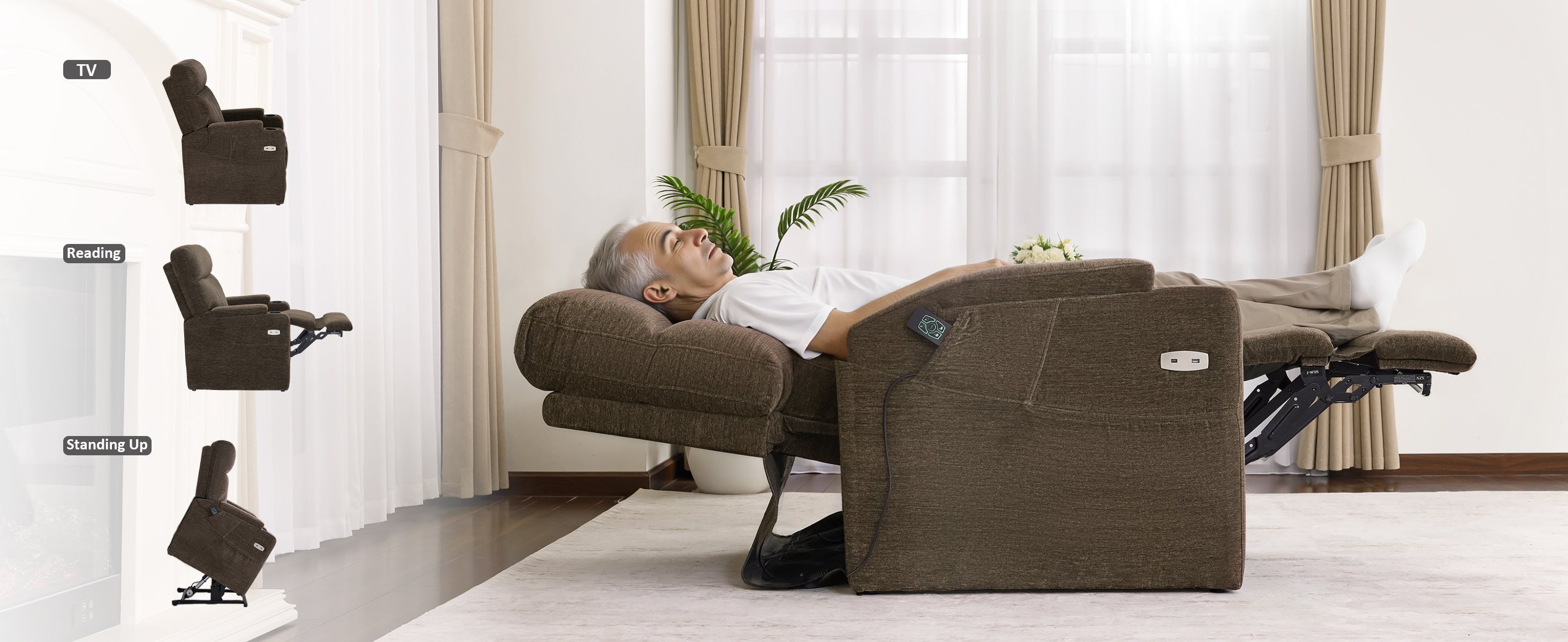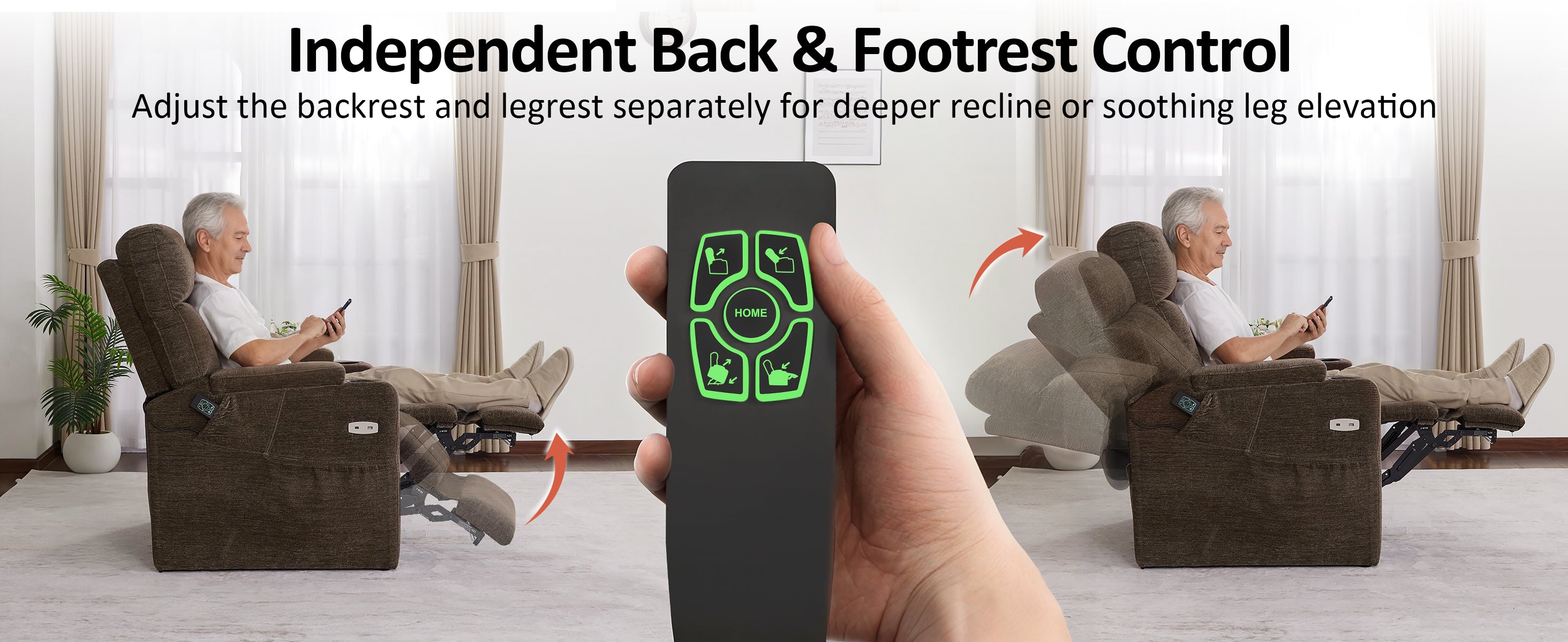 - Dual Motor Lift & 170° Lay-Flat: Designed for seniors and those with limited mobility, this chair allows the backrest and footrest to operate independently, making it easy to find your perfect position—from TV sitting to a full 170° lay-flat. The lift function gently raises you to a standing position without straining your back or knees, providing daily independence and safety