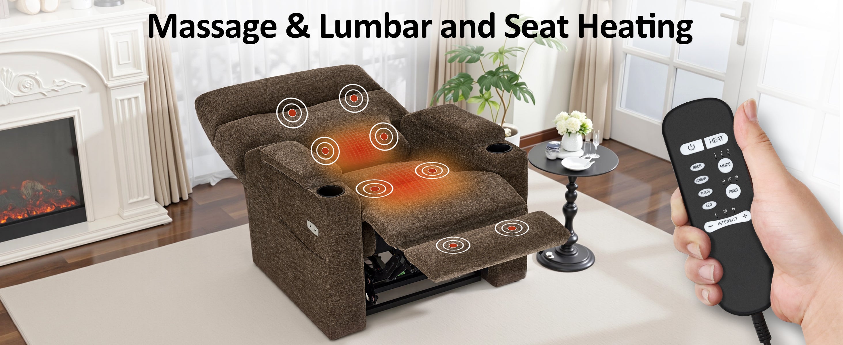 - Dual-Zone Heating & Full-Body Vibration Massage: Eight vibration nodes cover the back, lumbar, thighs, and legs, paired with dual-zone heating in the lumbar and seat to ease daily tension and enhance full-body relaxation.(Heating function works separately from vibration.)