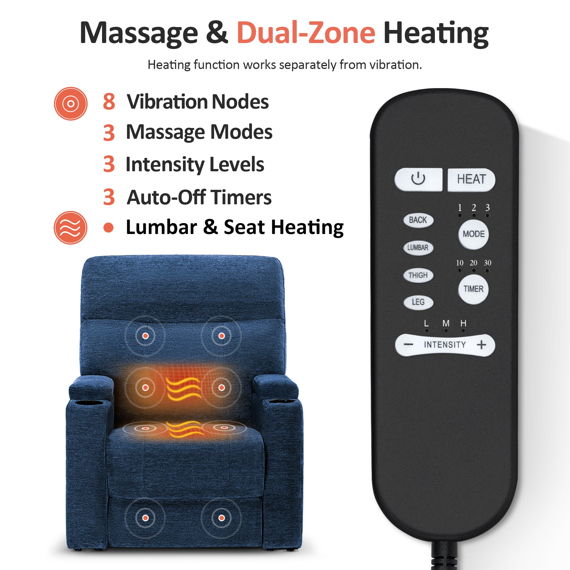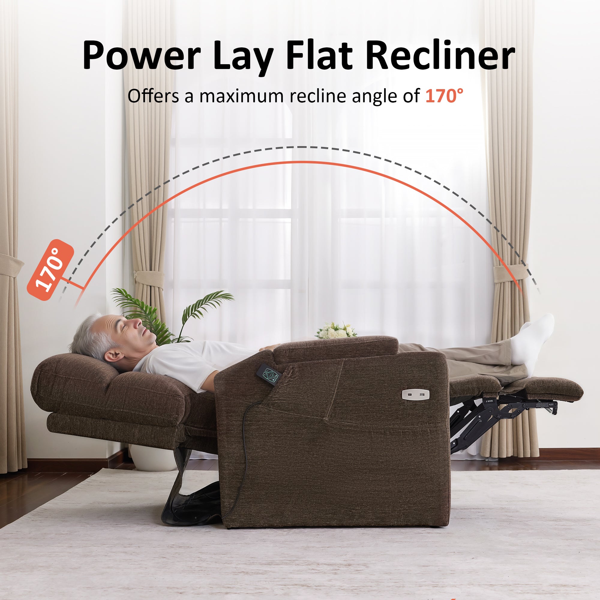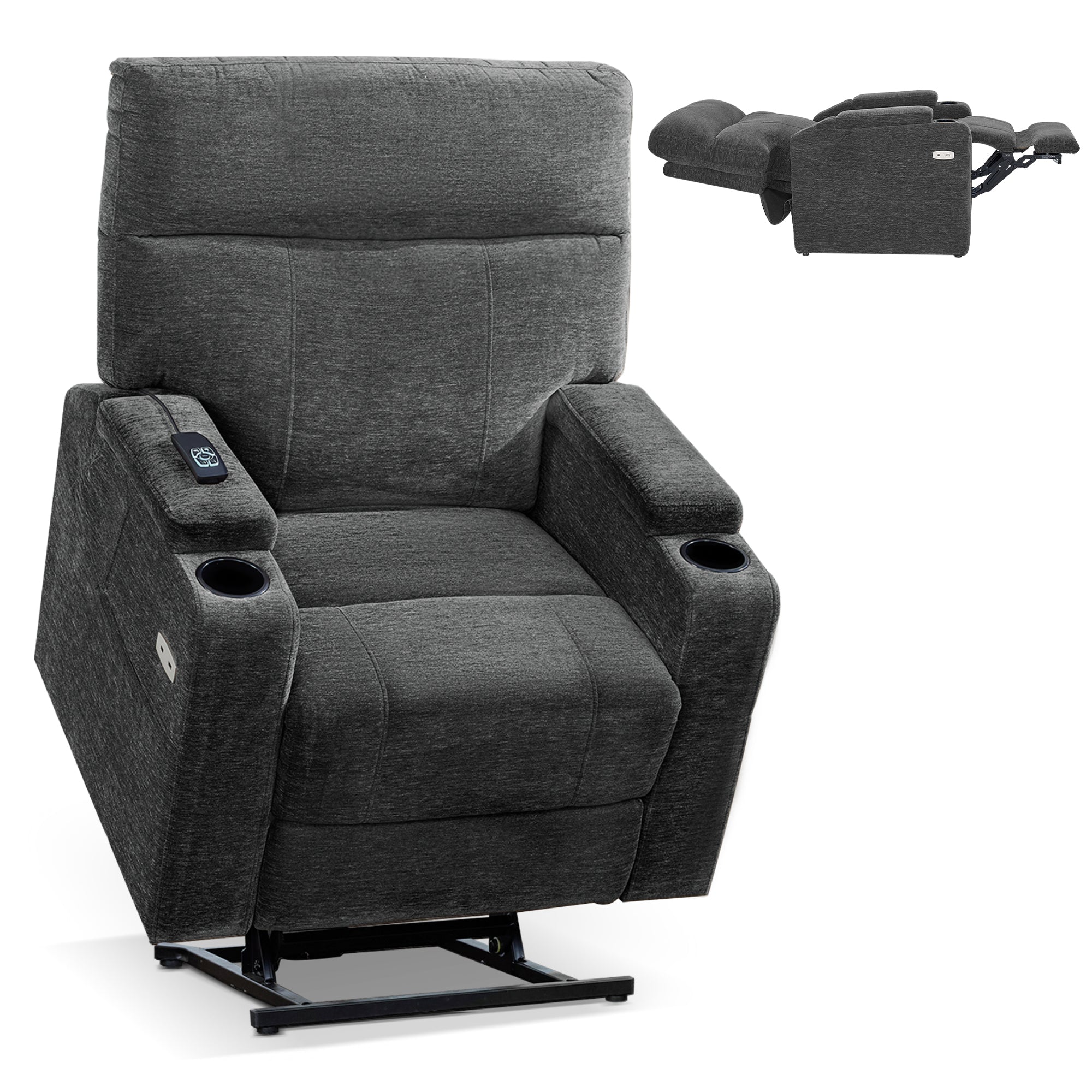 MCombo Lay Flat Dual Motor Power Lift Recliner Chair with Massage & Dual Heating, Arm Storage, Extended Footrest, USB A/C Ports & Cup Holders, Infinite Position for Elderly, Fabric LC002