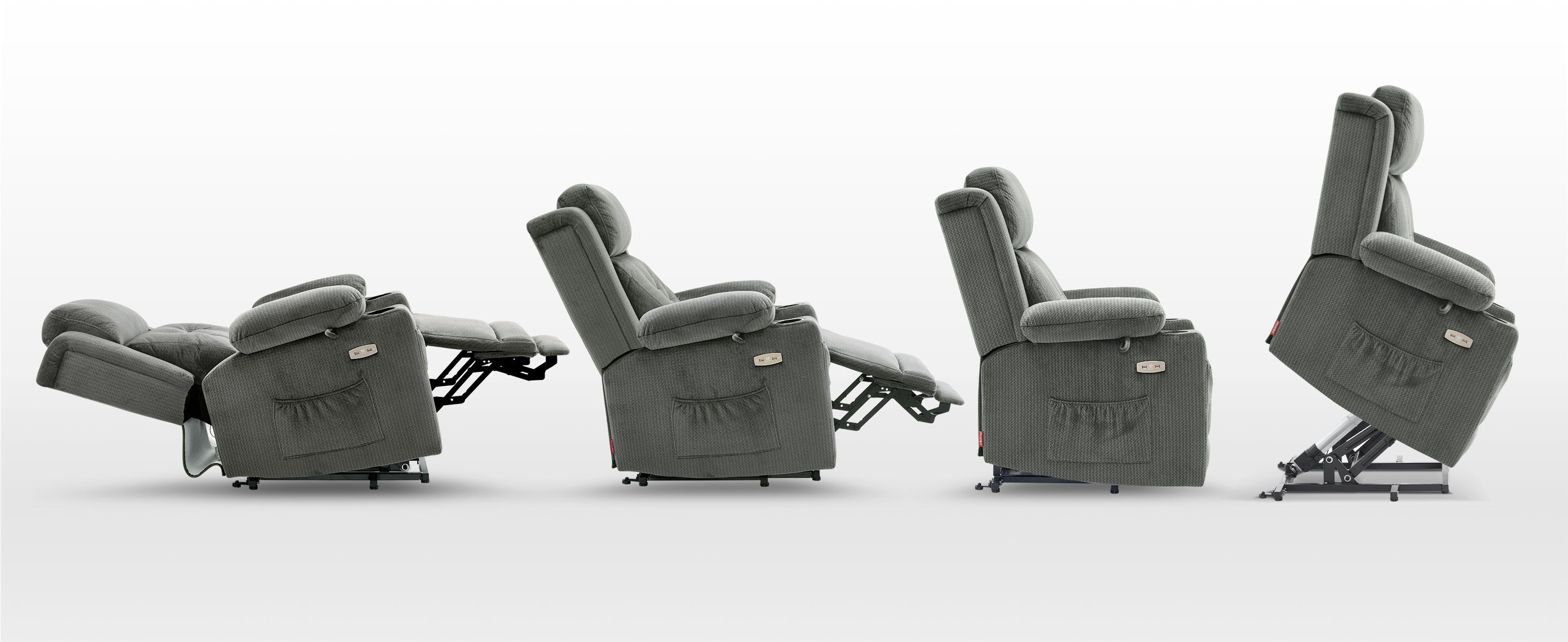 An infinite-position lift chair has two built-in dual motors that allow you to operate the footrest and backrest separately. You can adjust to the infinite position you want, lift, TV and lay-flat. The lay-flat position is completely parallel with the floor, helps you to move into a completely flat position, making this type of chair ideal for sleeping and improving circulation.