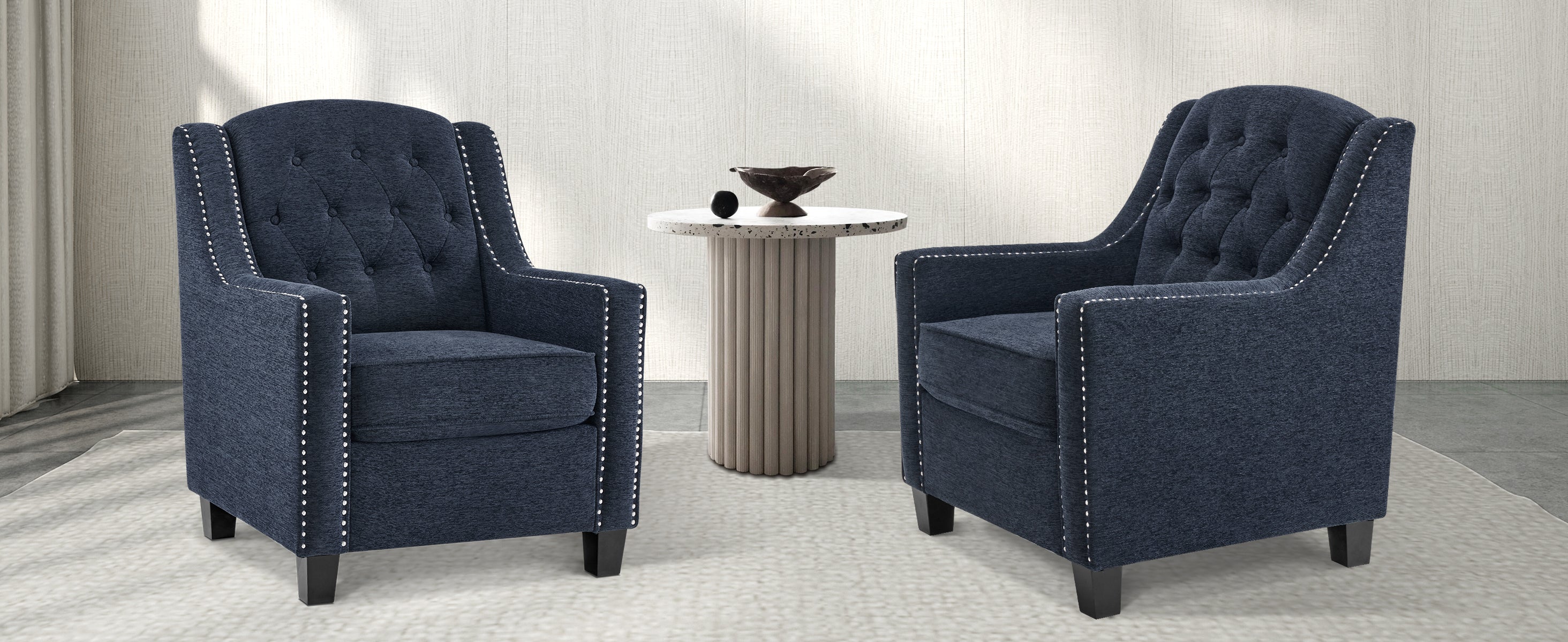 - [Classic Style] Button-tufted nailhead design makes the style more retro, and the rivet trim provide more decorative elements. This mid-century modern style sofa chair makes your room more elegant.