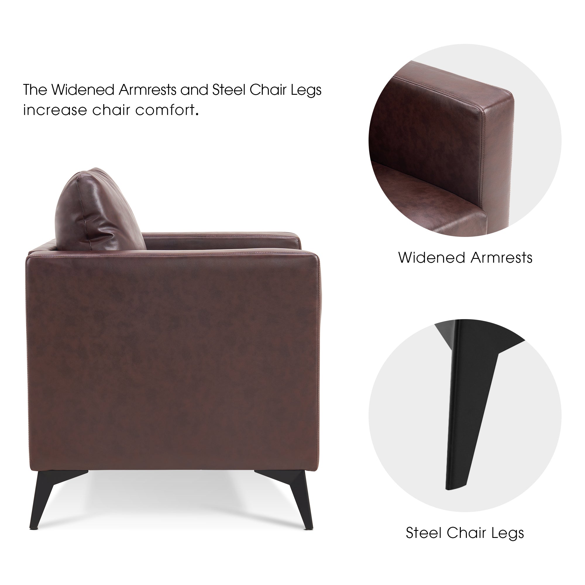 - Various Applicable Occasions High-quality faux leather gives it a high-end look and feel, a perfect combination of modern and classic. This club chair blends naturally into different decor styles and is perfect for decorating your living room, bedroom, office, guest room, dining room, café and studio.