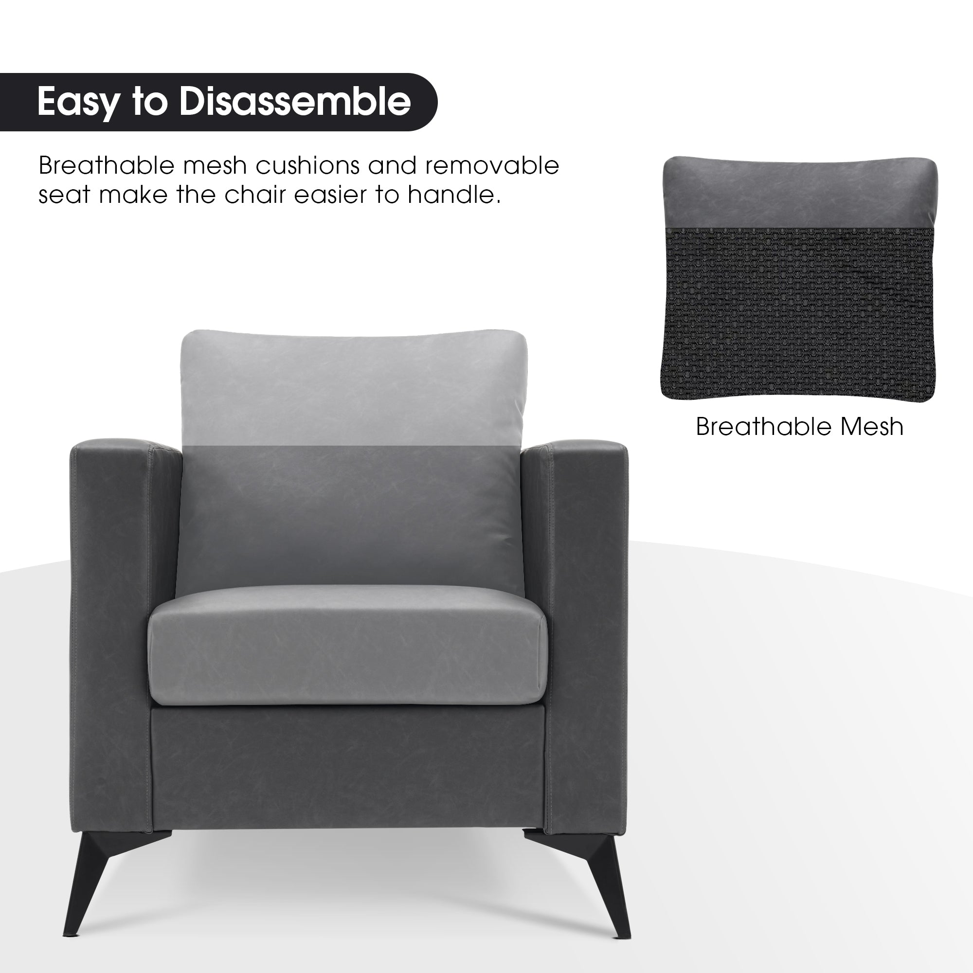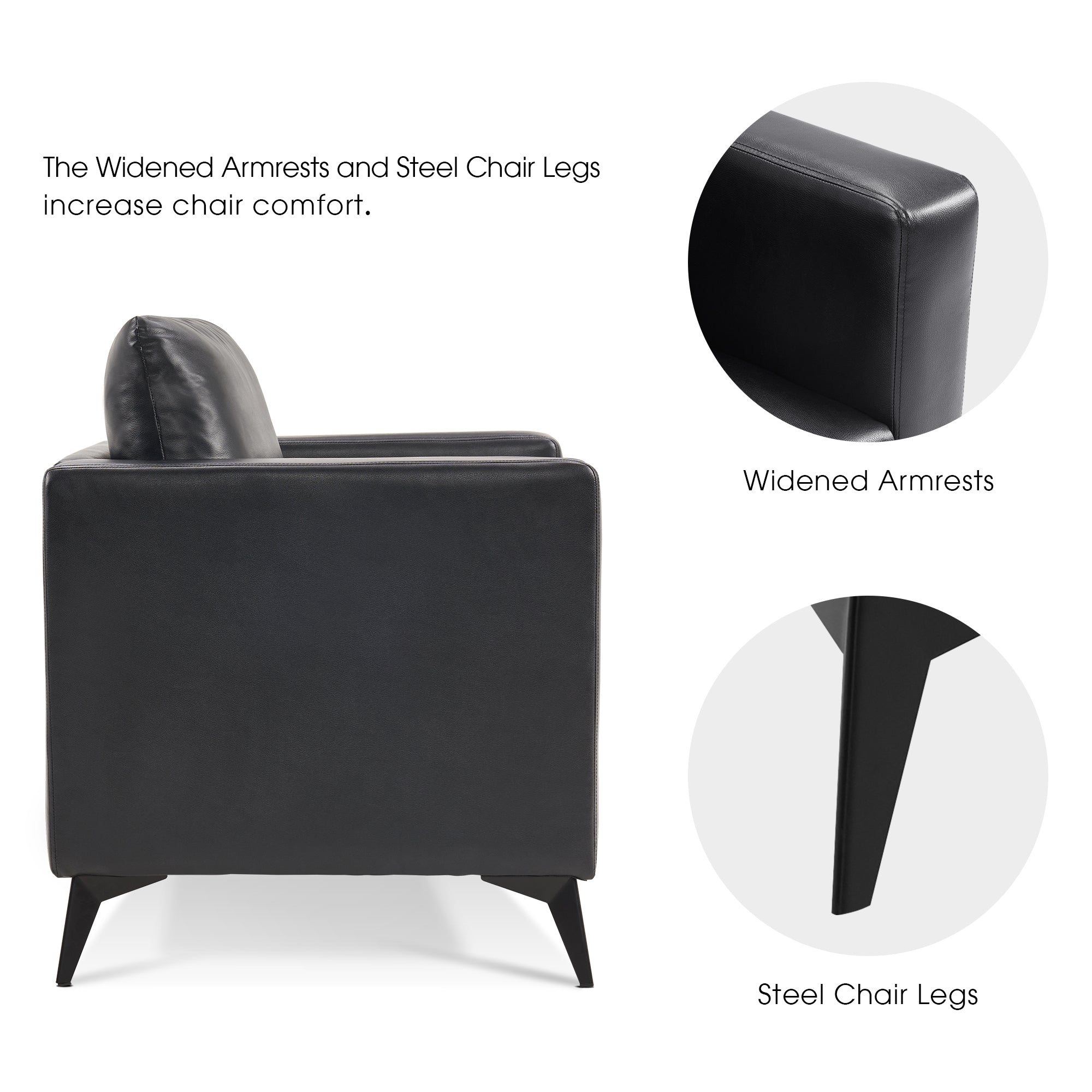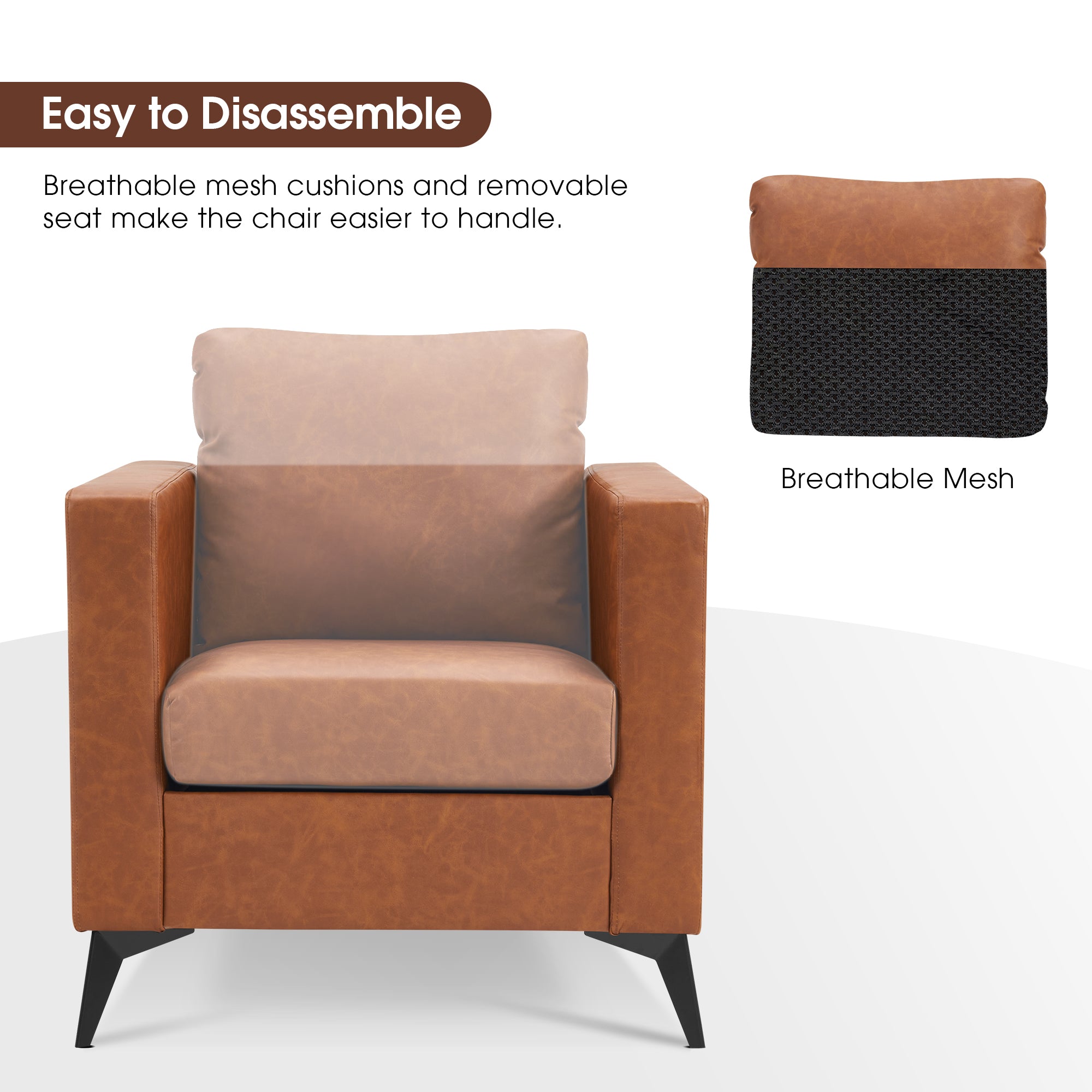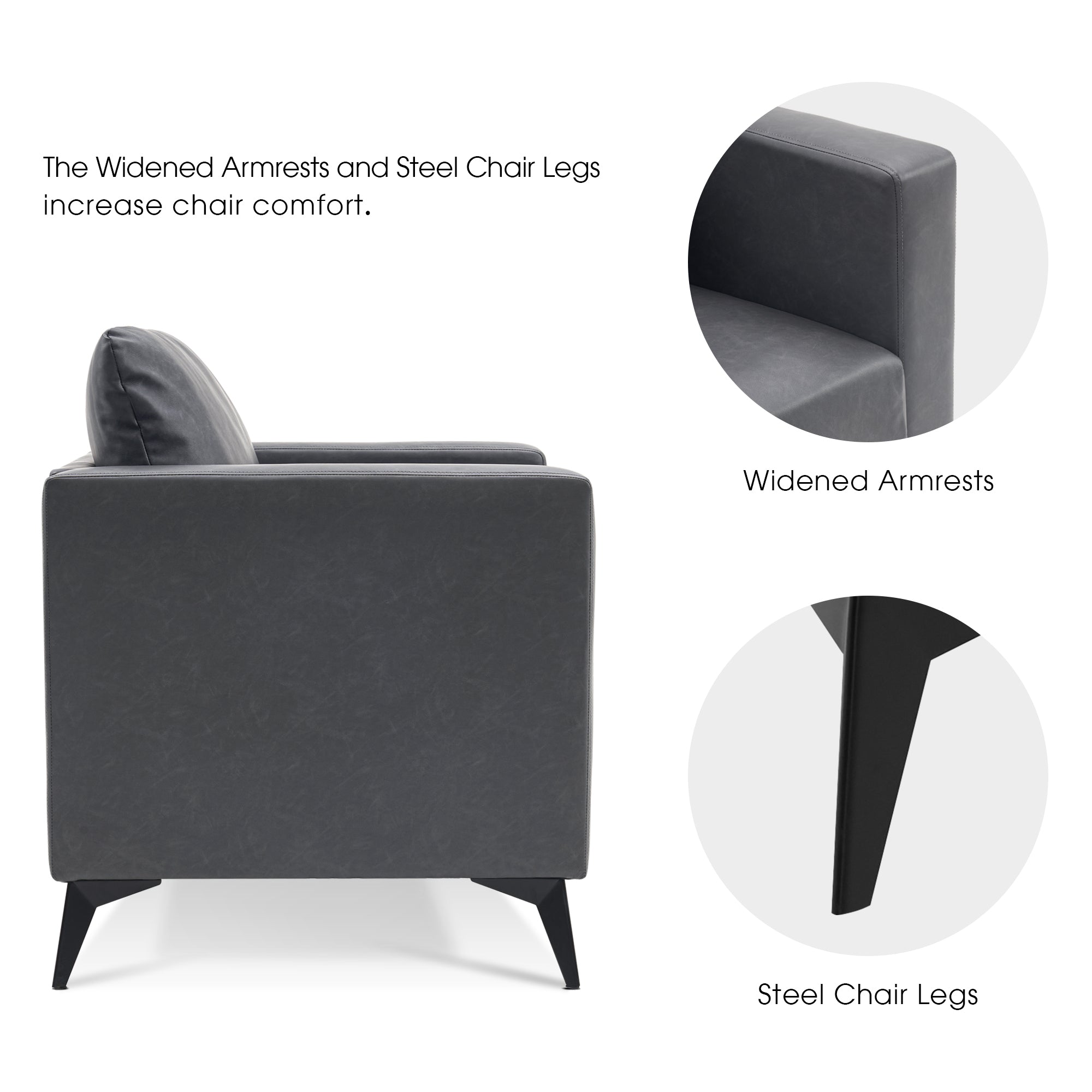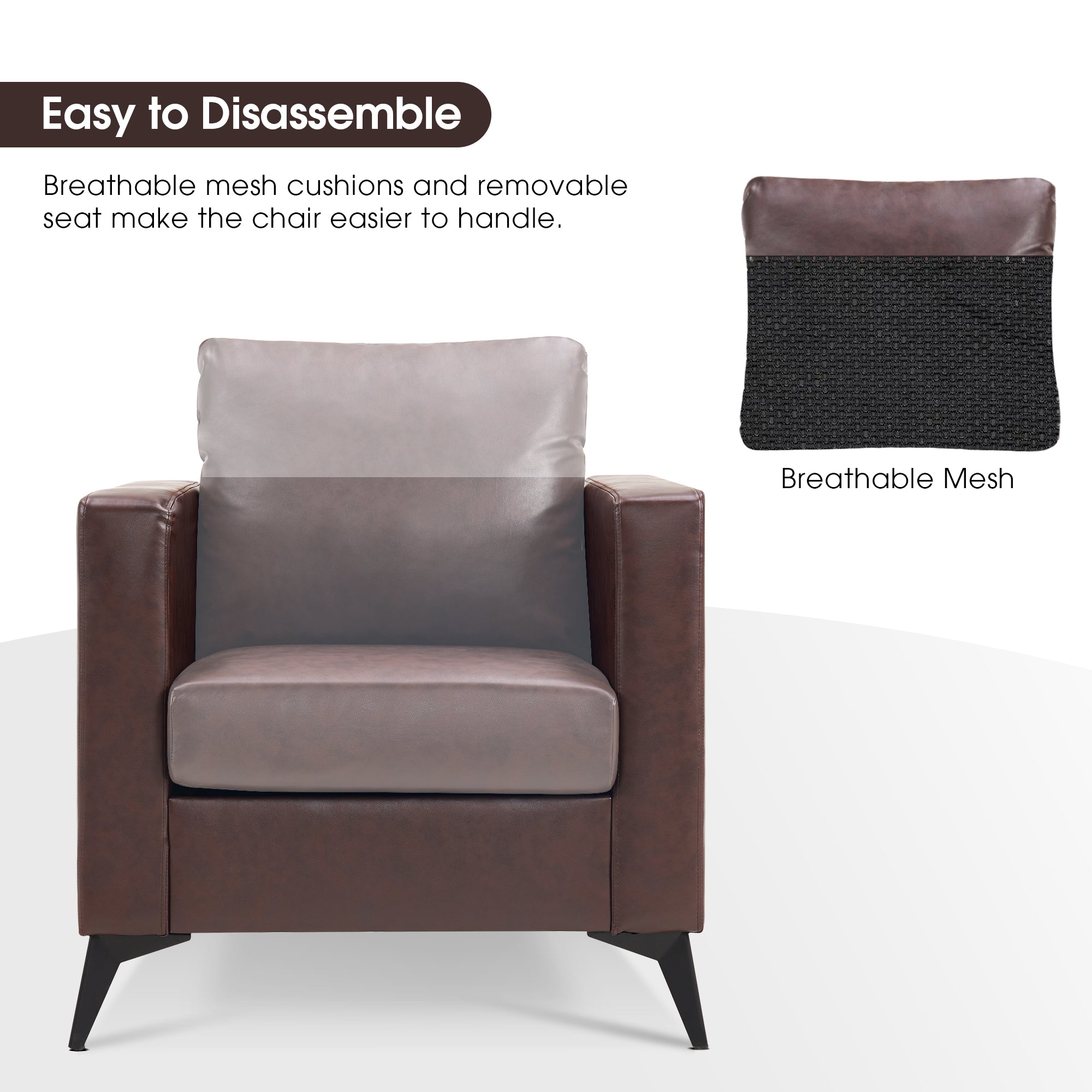 - High Quality Leather This living room chair is fully covered with high quality faux leather, soft and resistant to twists and turns. This premium faux leather fabric, with high tensile strength, is durable and easy to clean.