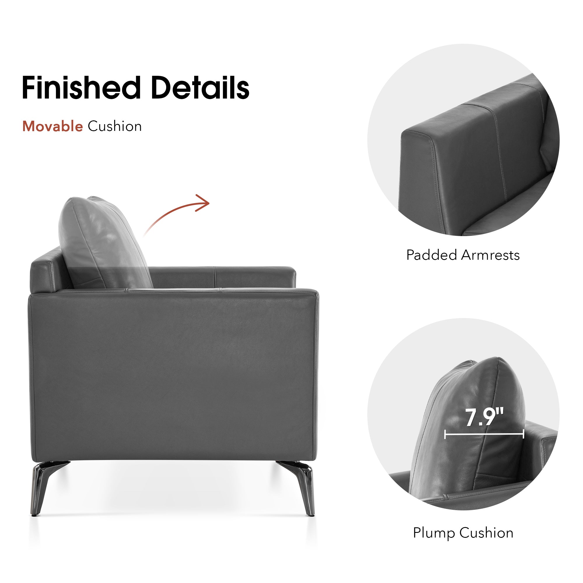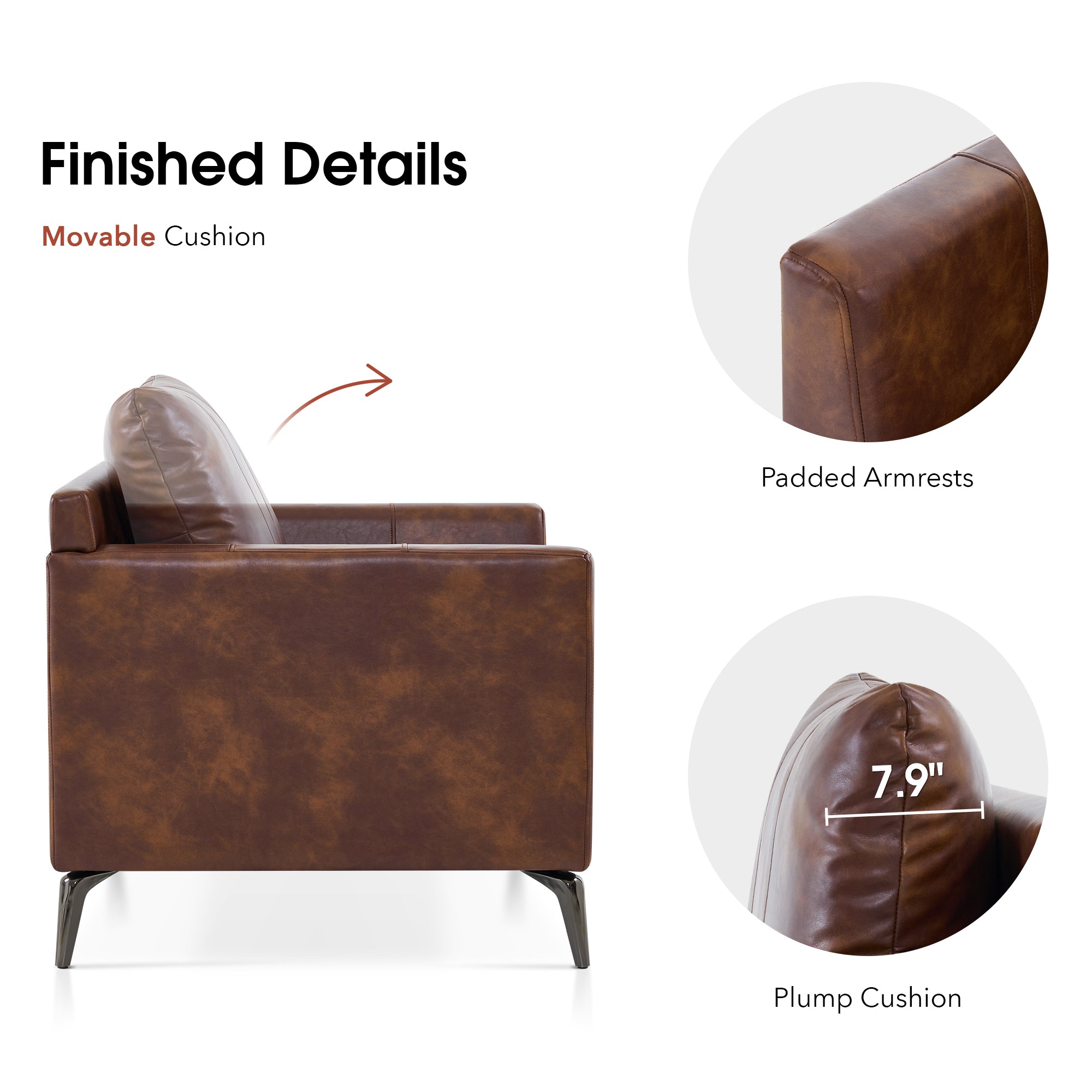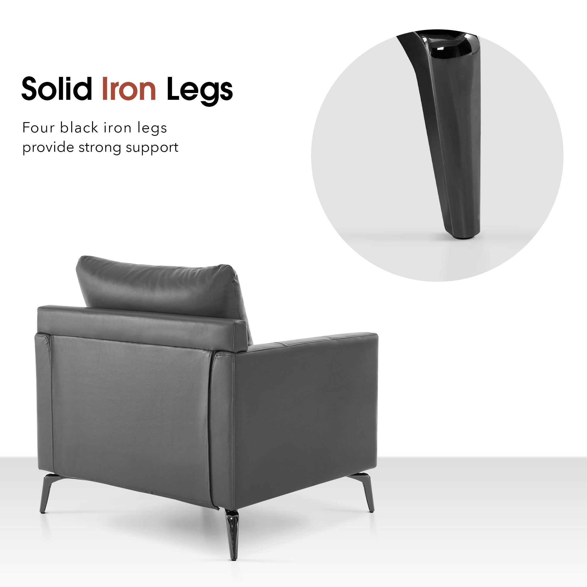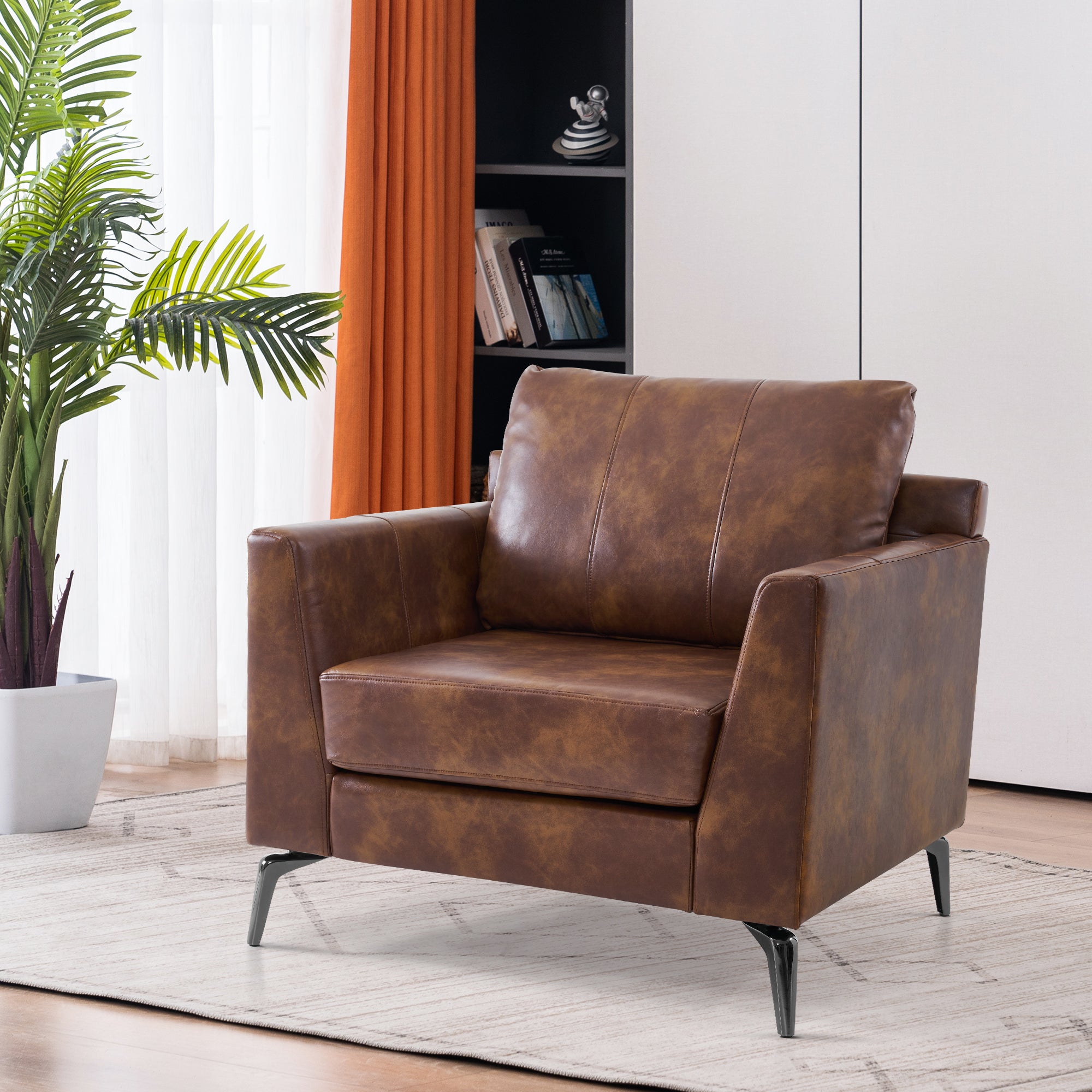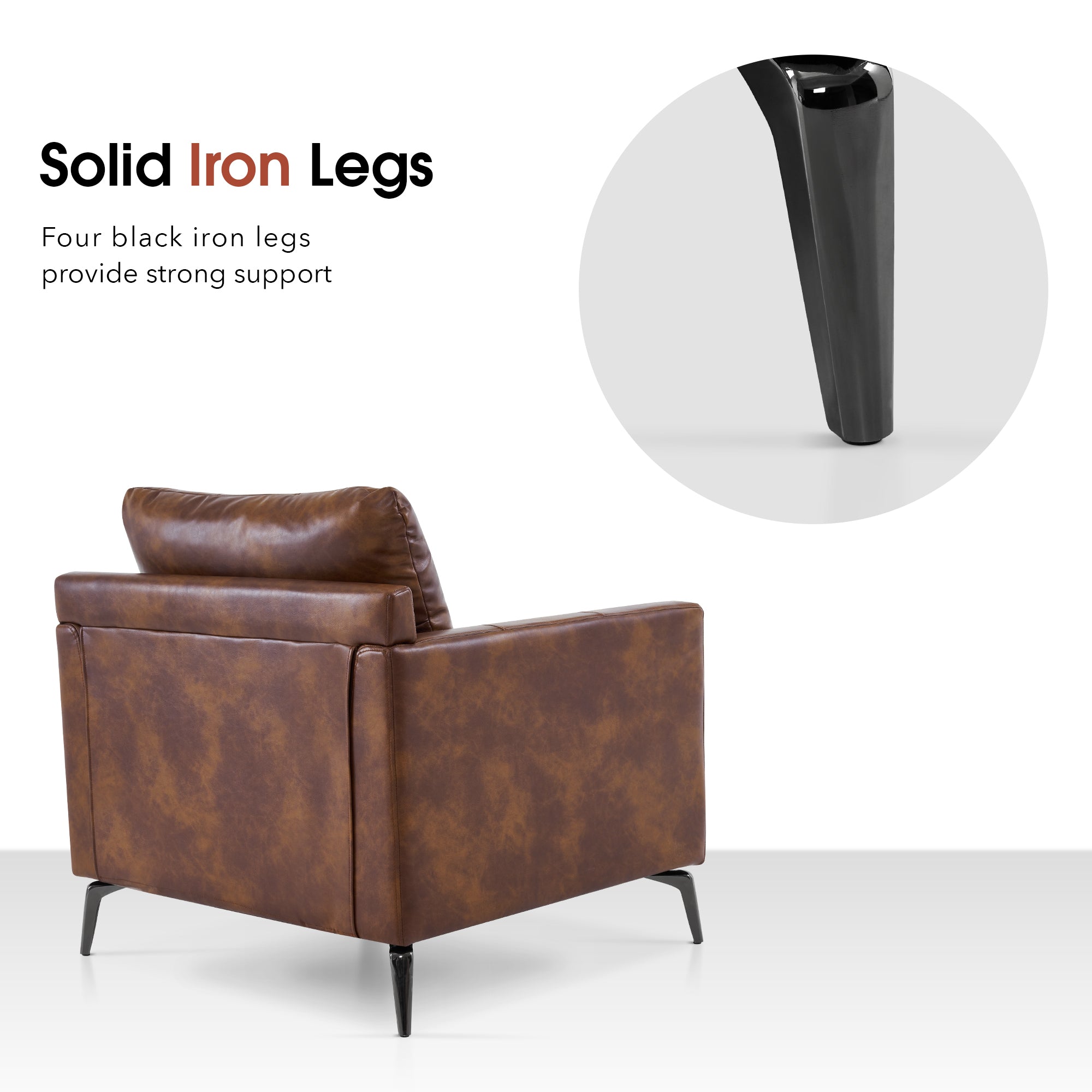 - [Faux Leather, Easy to Clean] The modern armchair is wrapped by premium faux leather, easy to clean and maintenance.