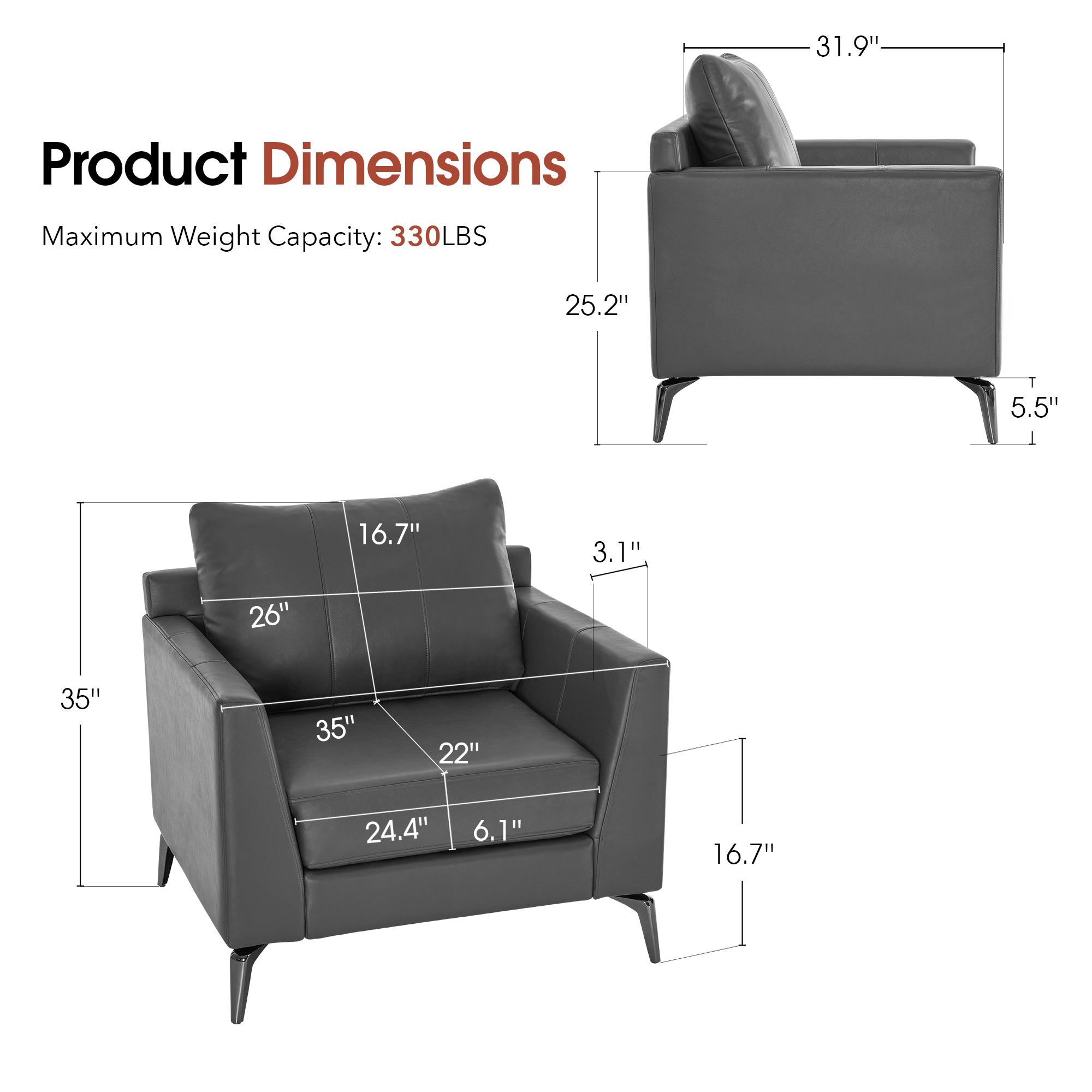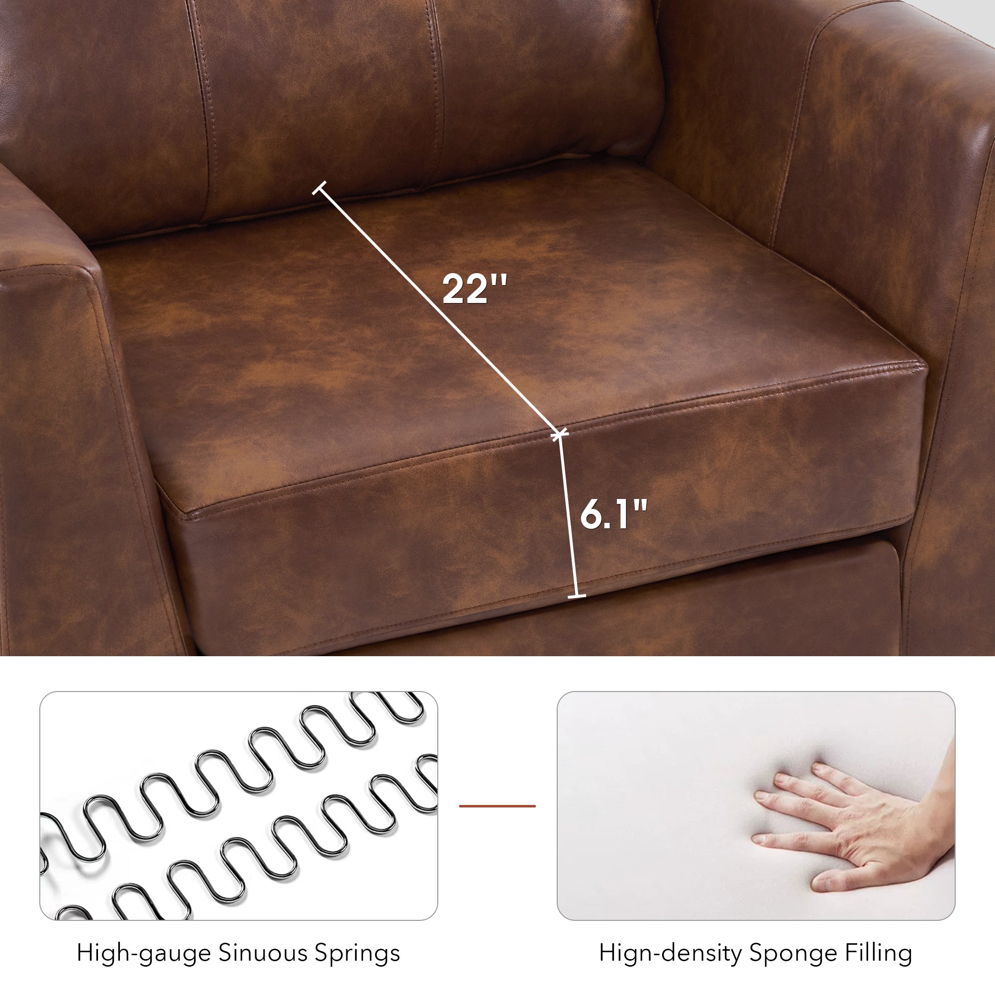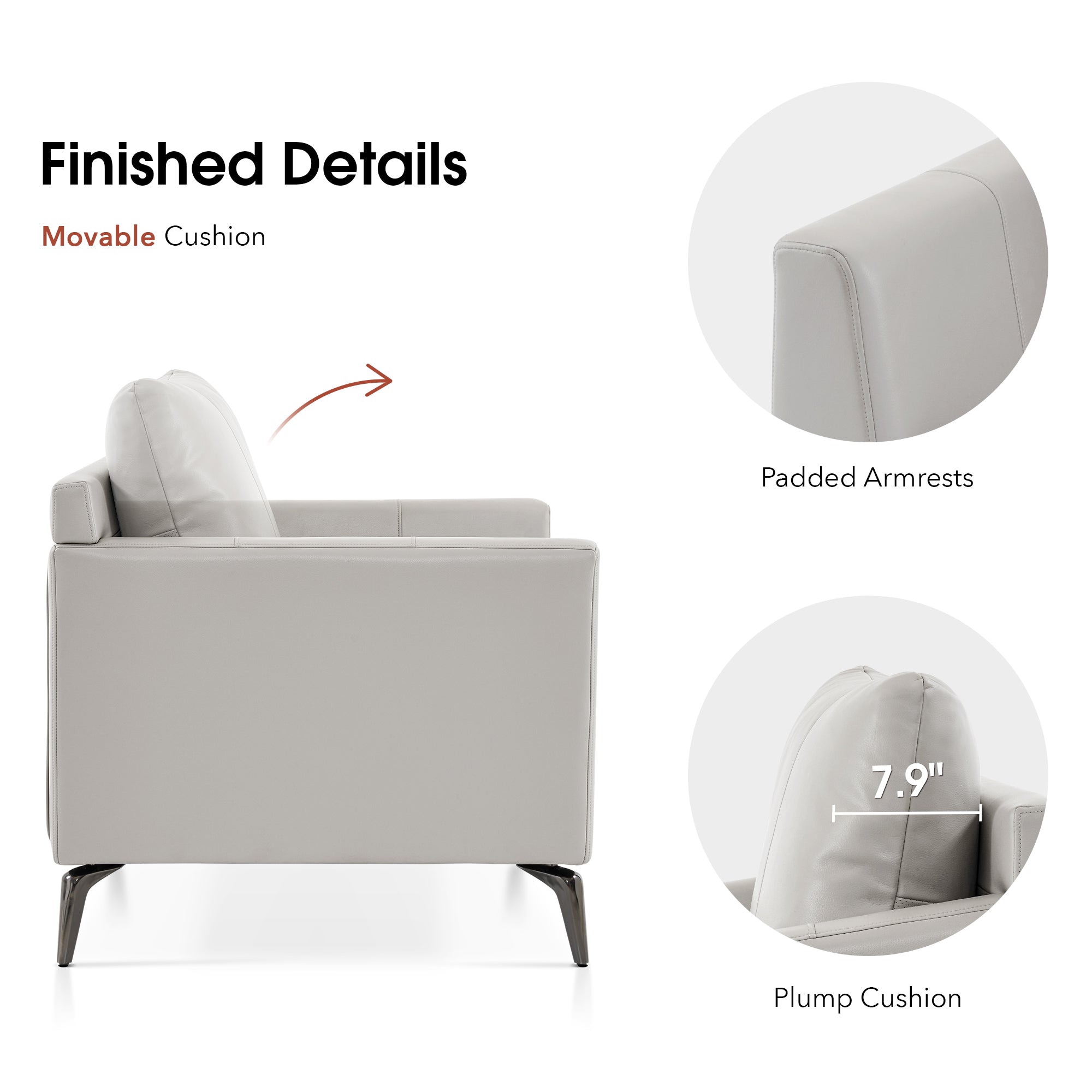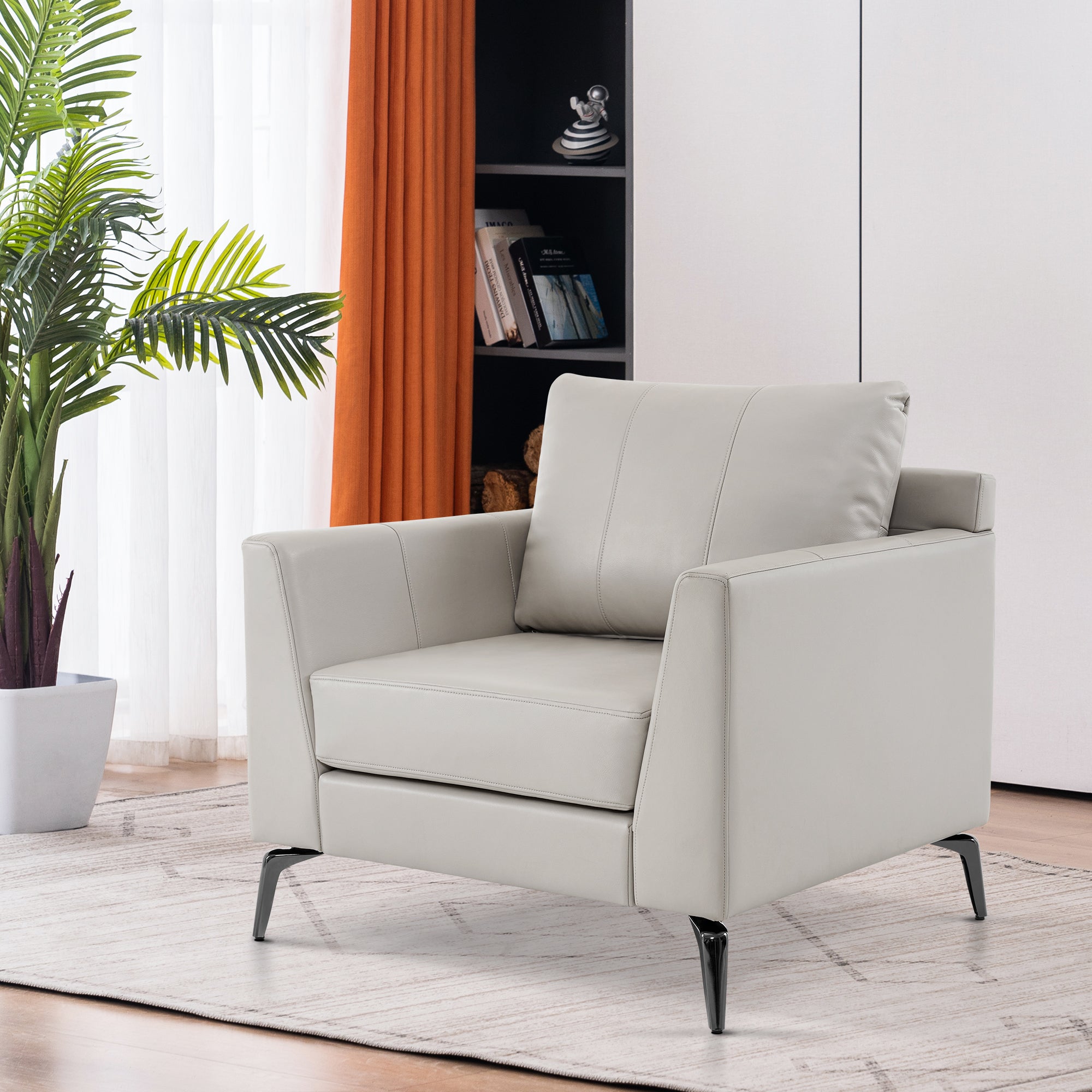 - [Faux Leather, Easy to Clean] The modern armchair is wrapped by premium faux leather, easy to clean and maintenance.