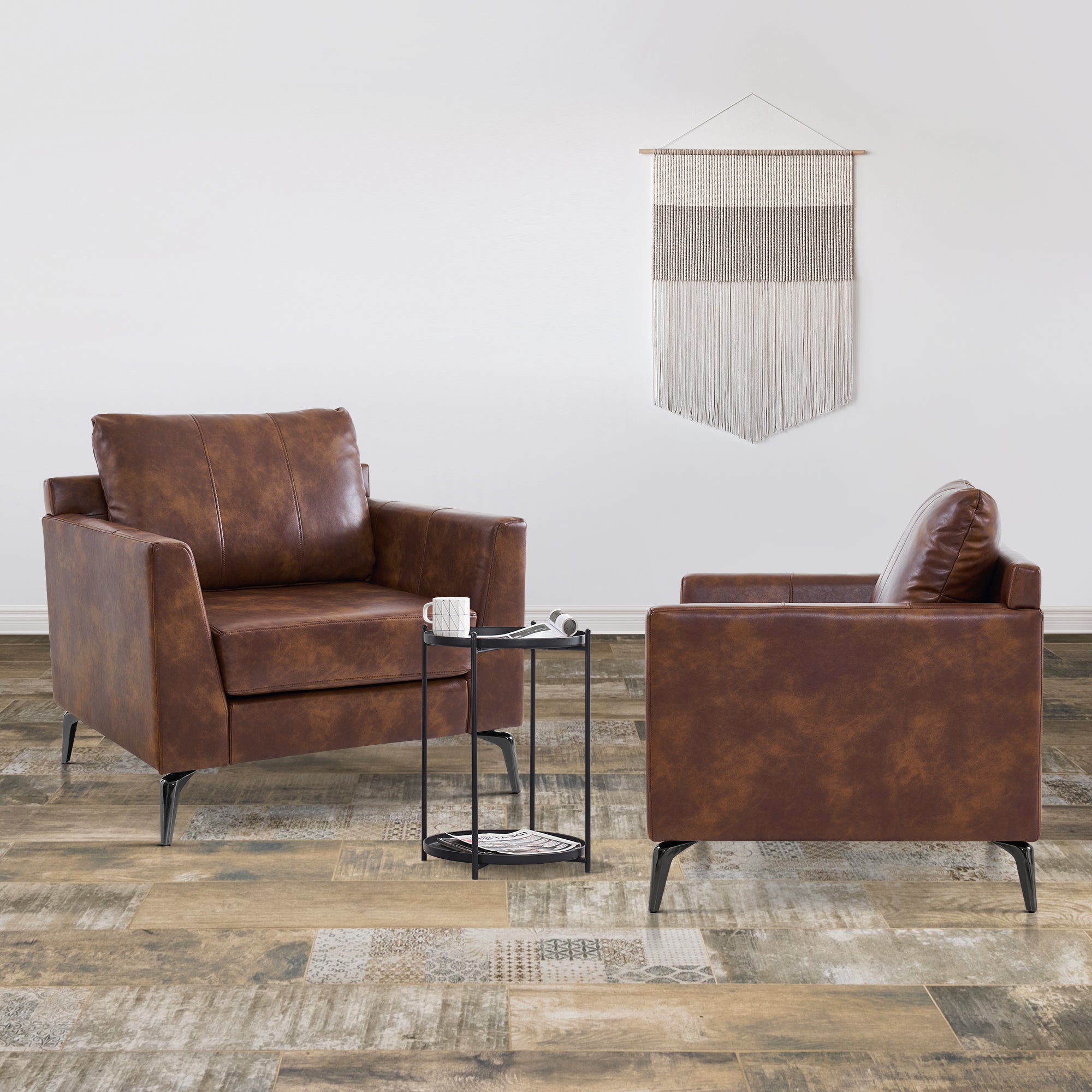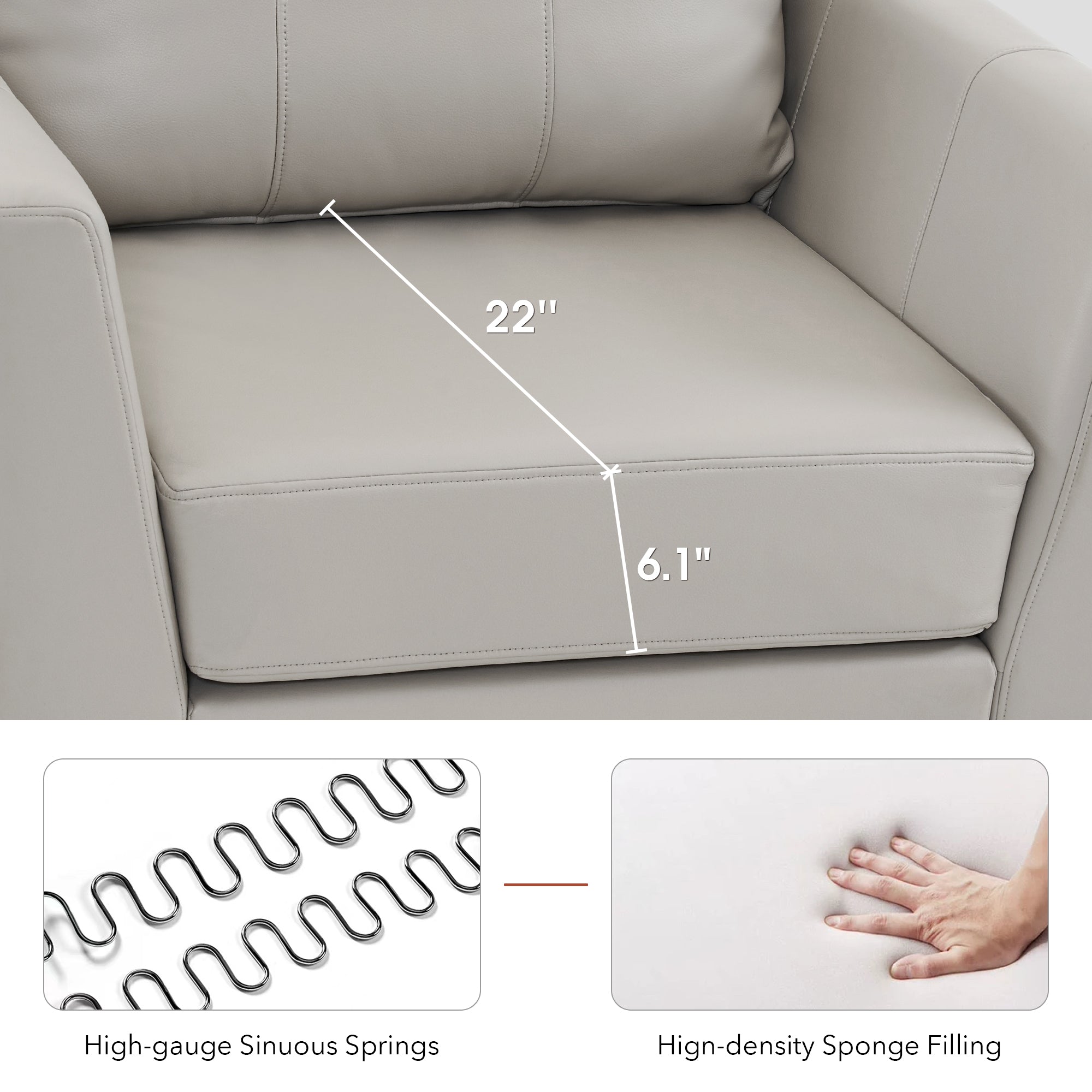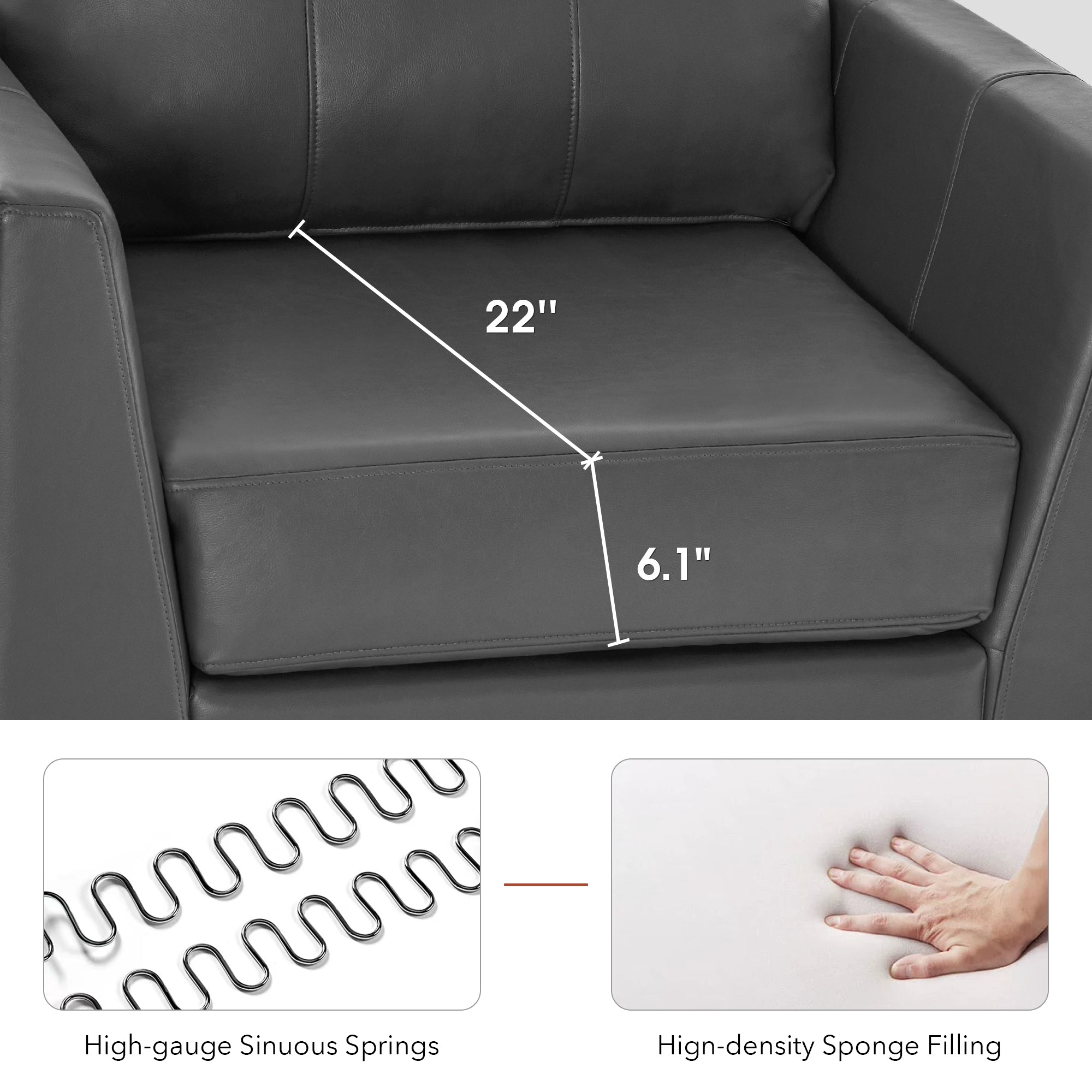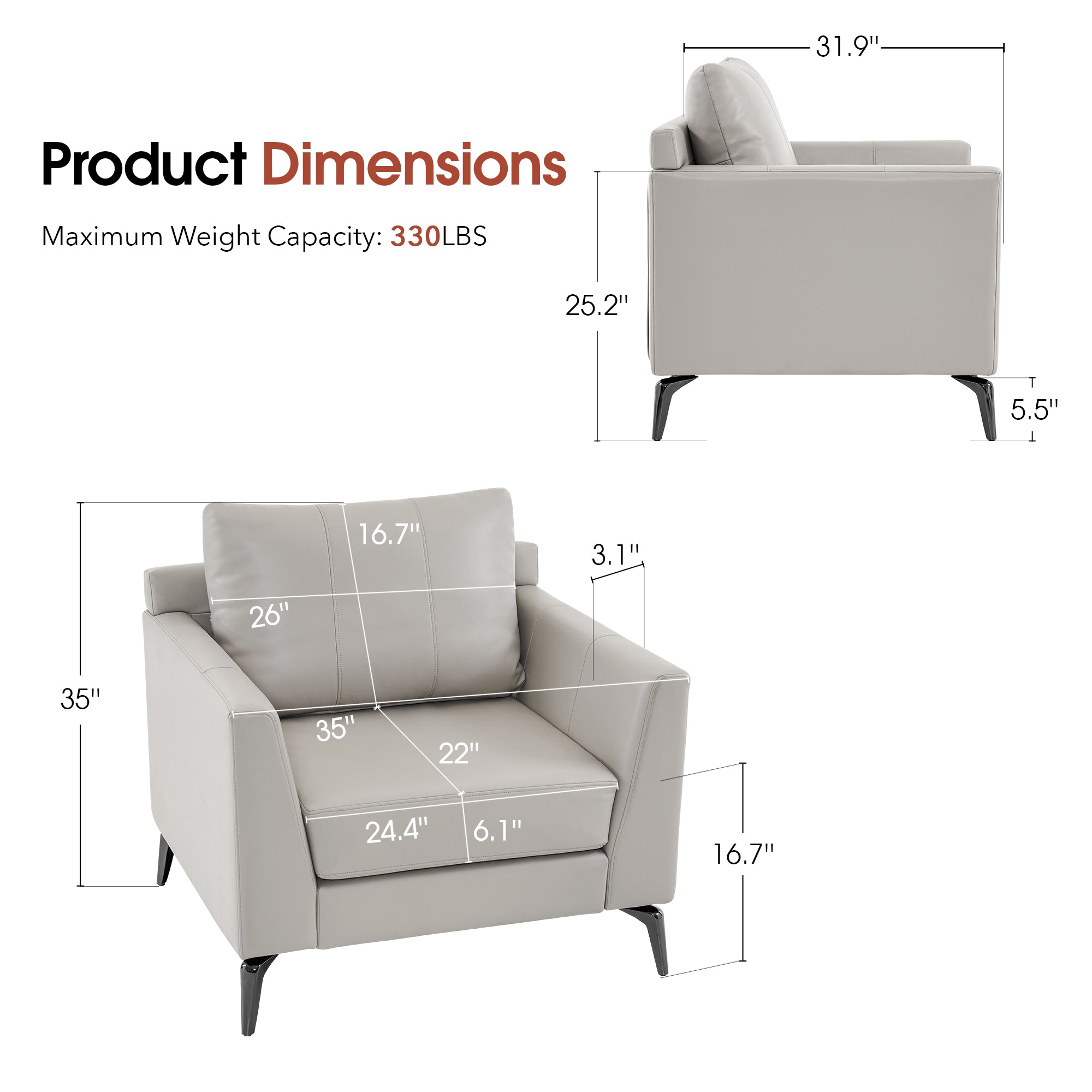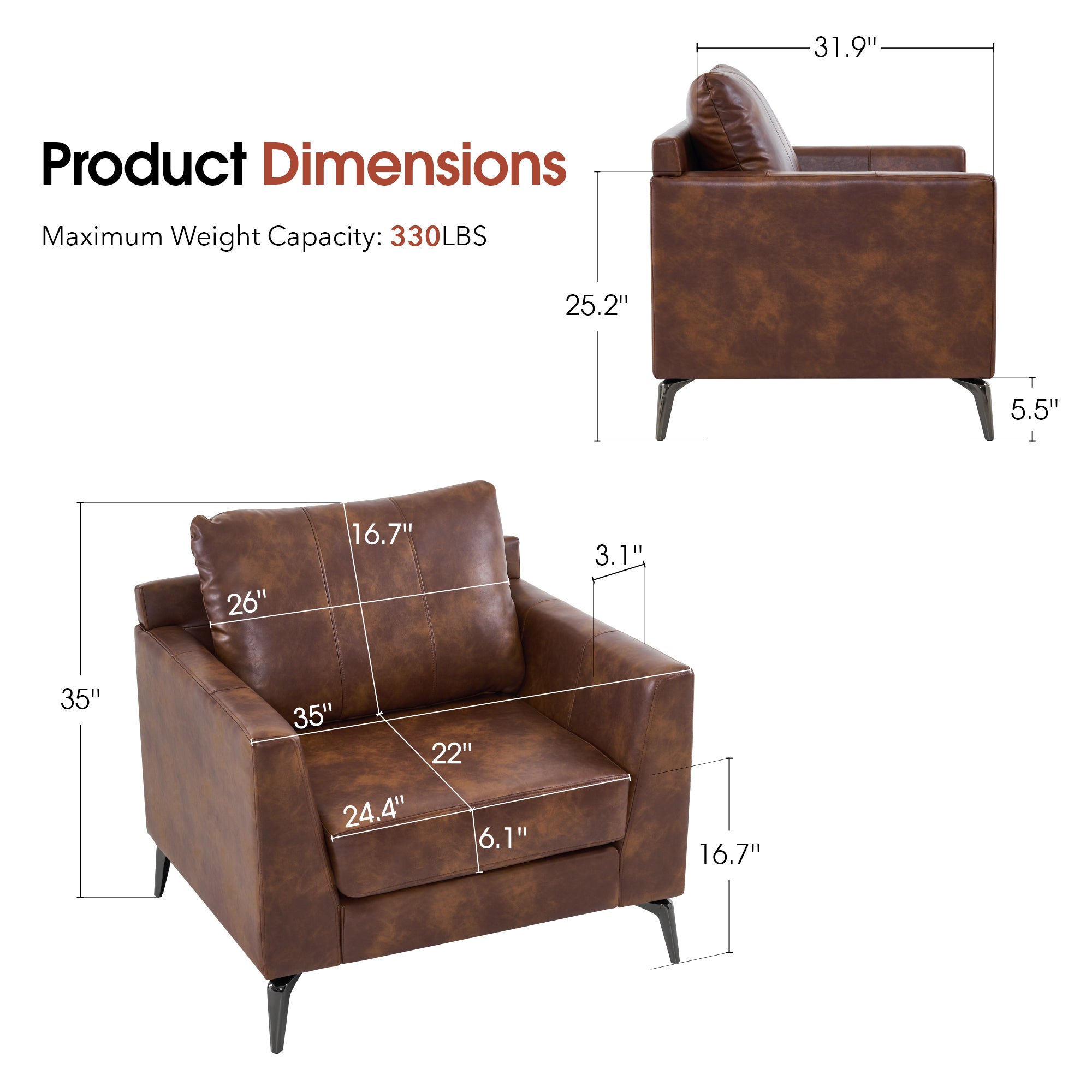 - [Faux Leather, Easy to Clean] The modern armchair is wrapped by premium faux leather, easy to clean and maintenance.