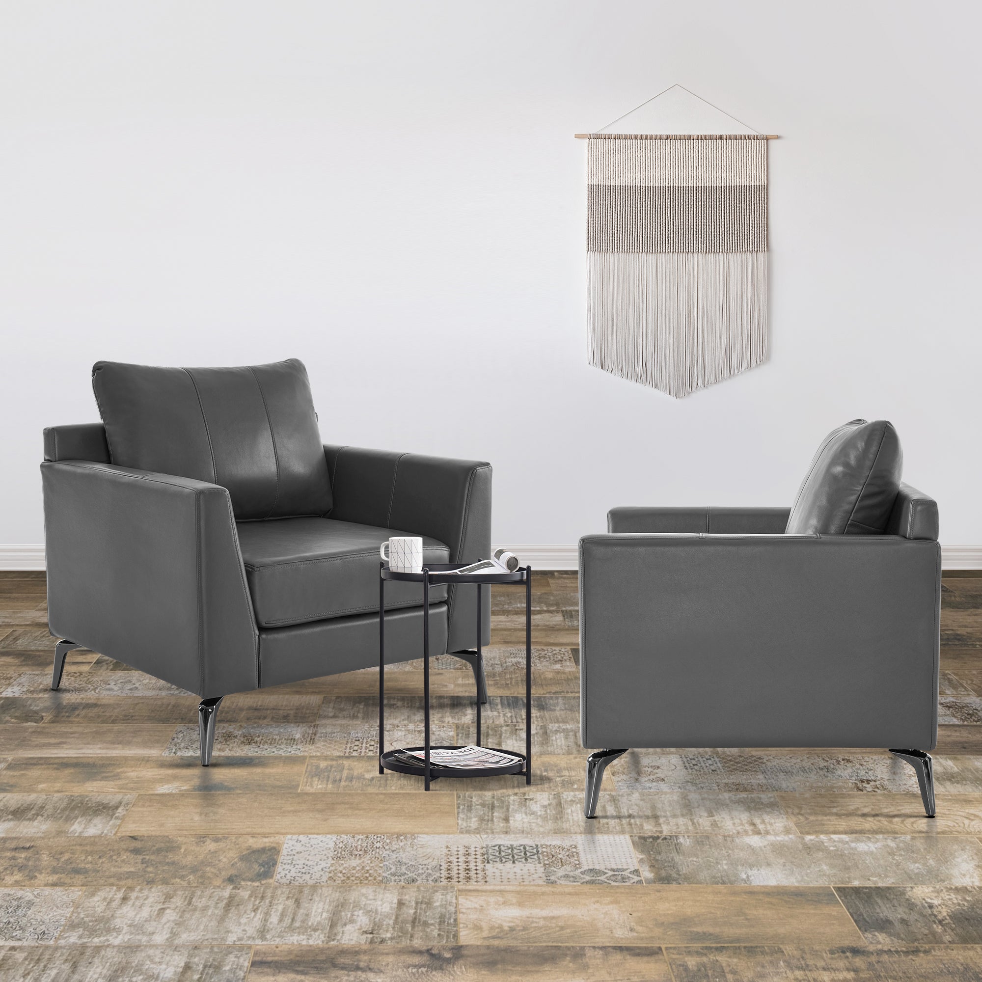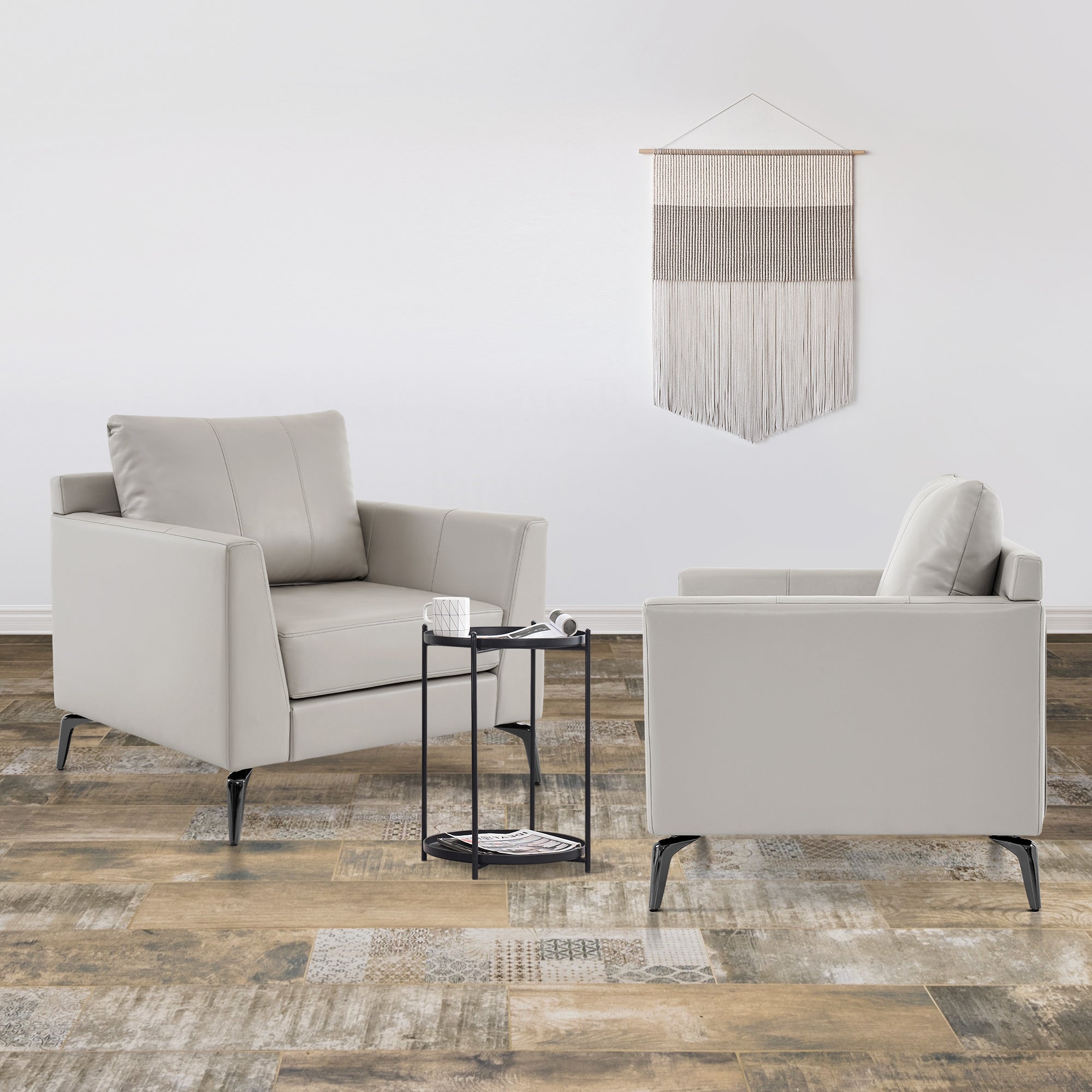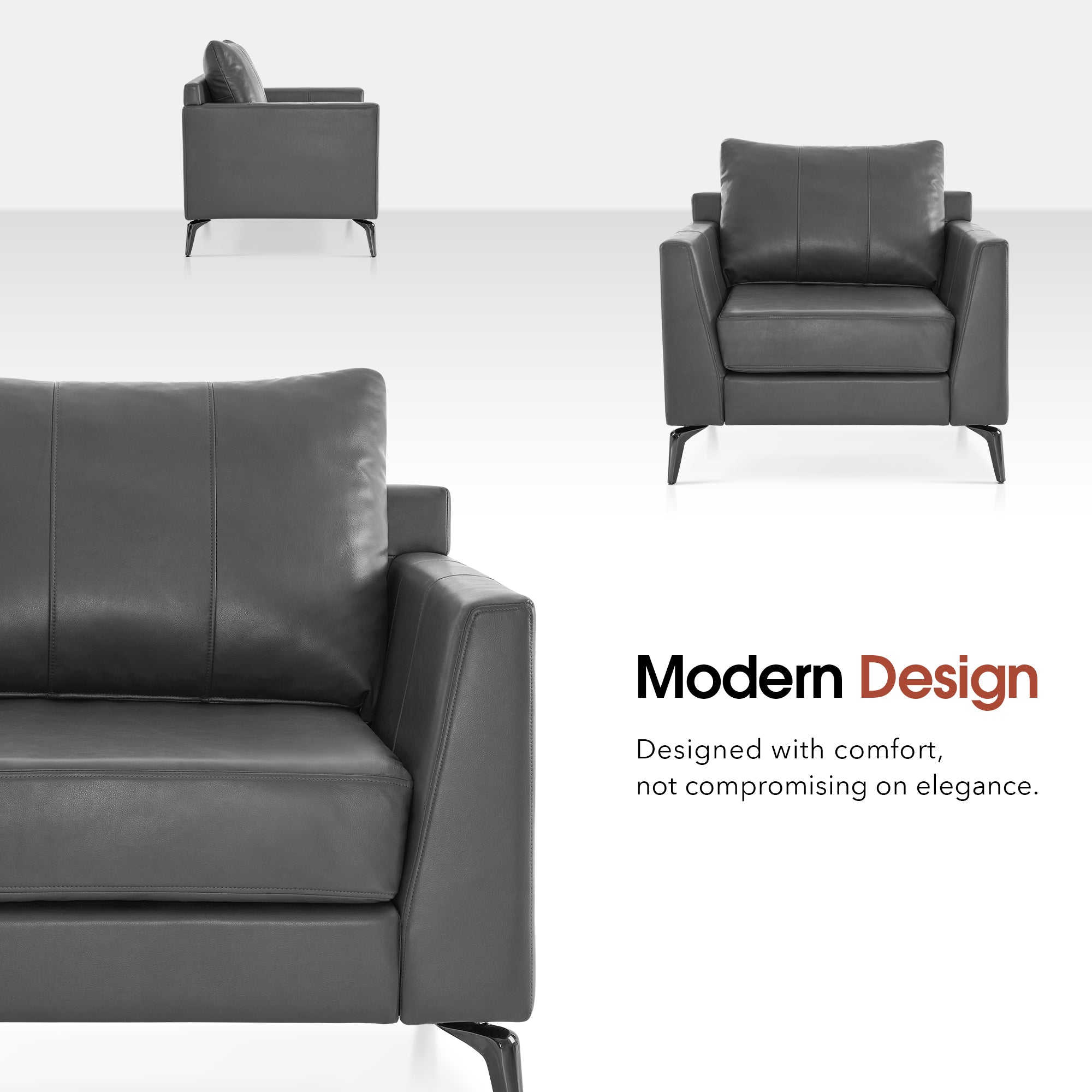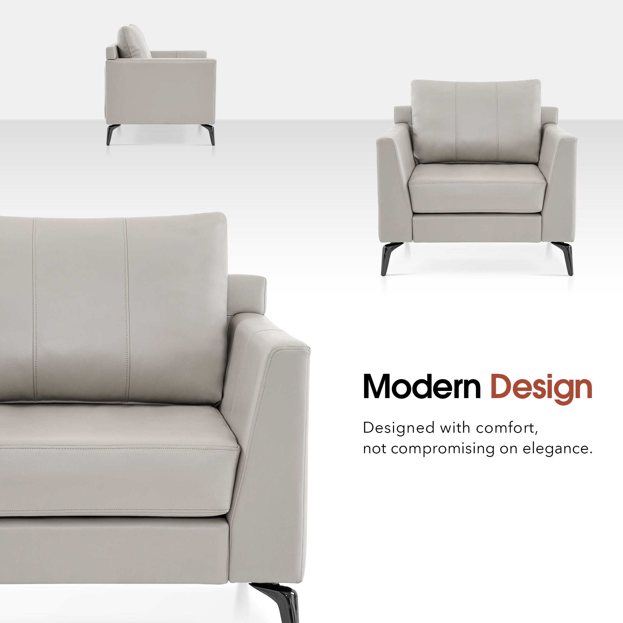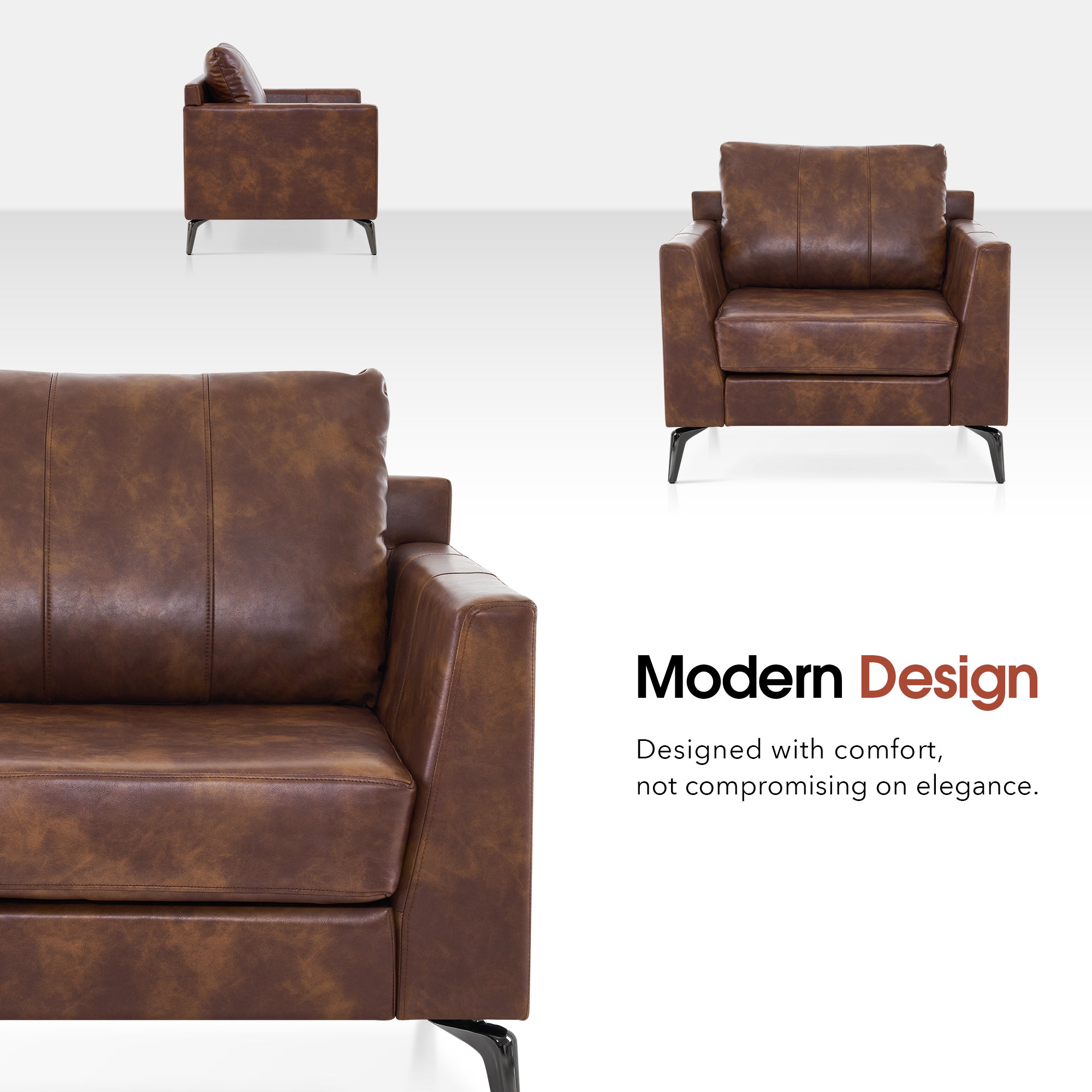 - [Faux Leather, Easy to Clean] The modern armchair is wrapped by premium faux leather, easy to clean and maintenance.