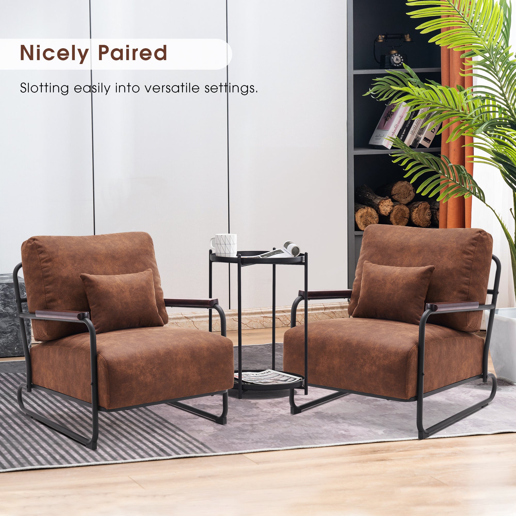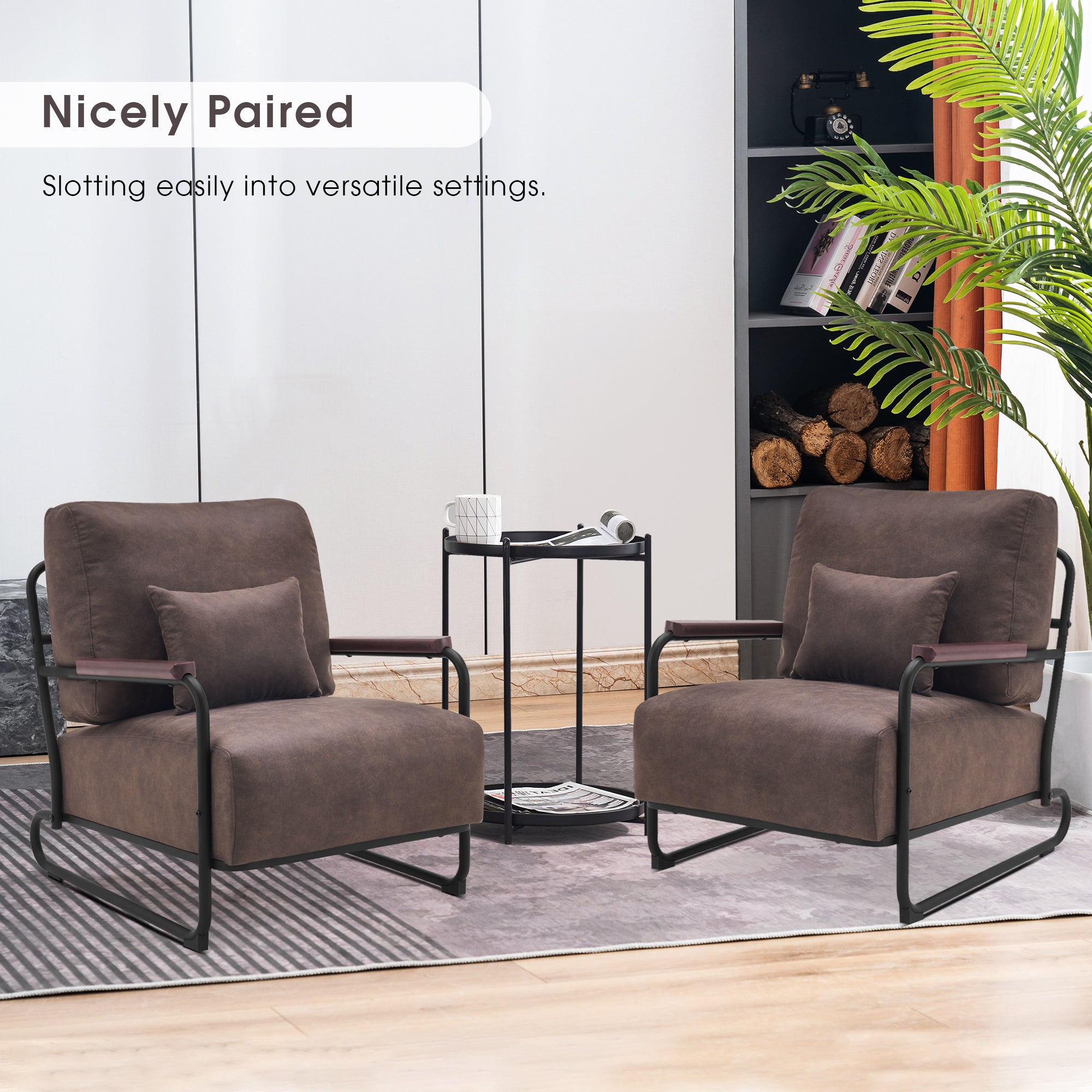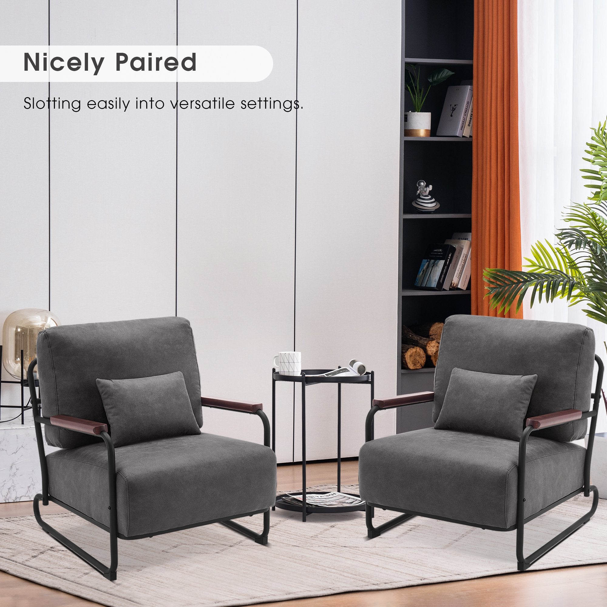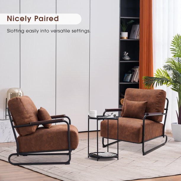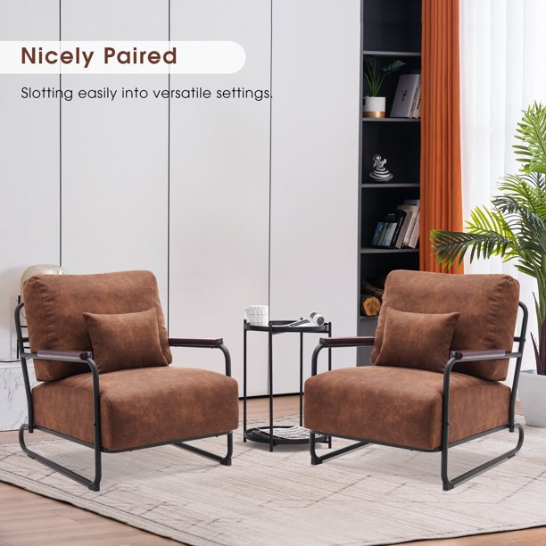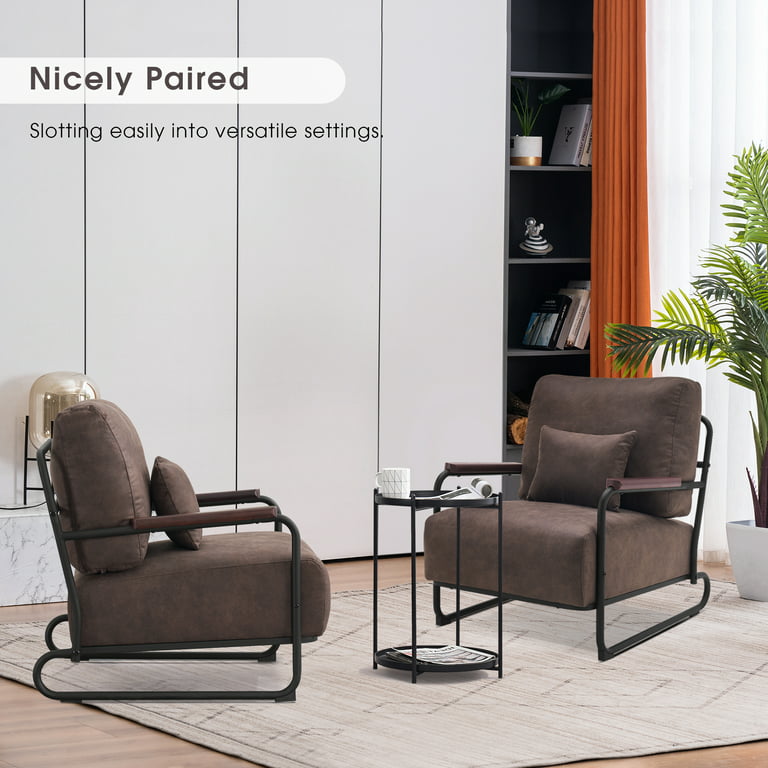 - [Comfy & Sturdy Structure] The integral structure of this accent armchair not only strikes a streamlined silhouette but also amps up the overall sturdiness. Crafted from carbon steel frame, resilient foam fill, and bronzing fabric upholstery, we added 2.4" wide logs to the armrest to support your arms well and relax.