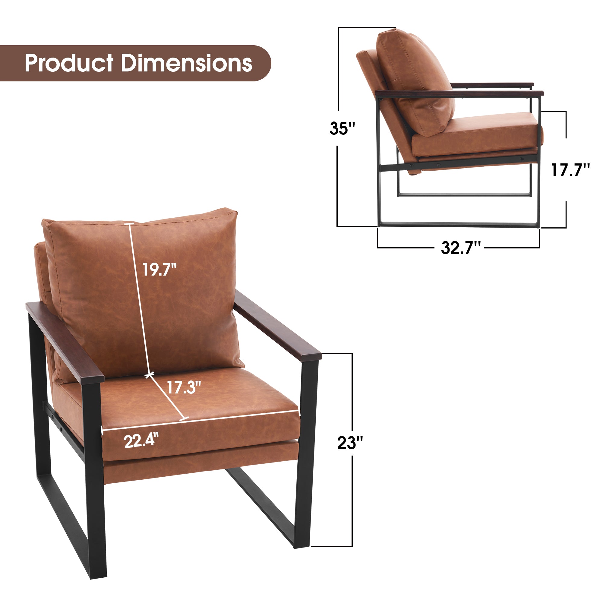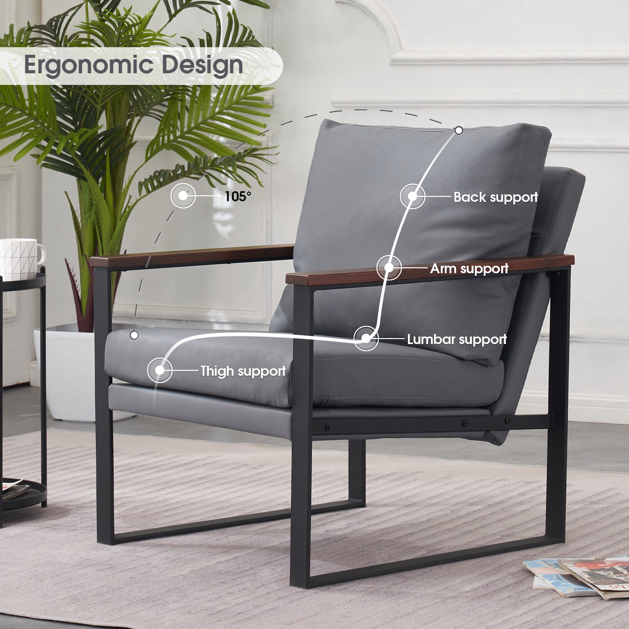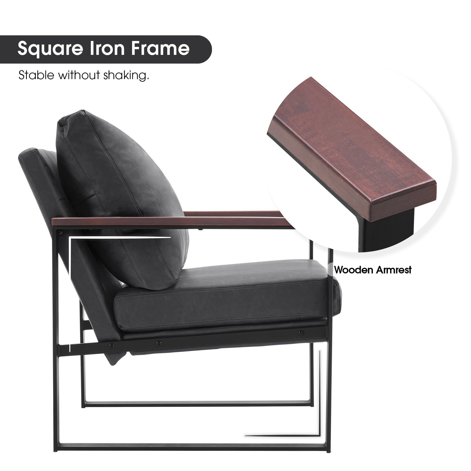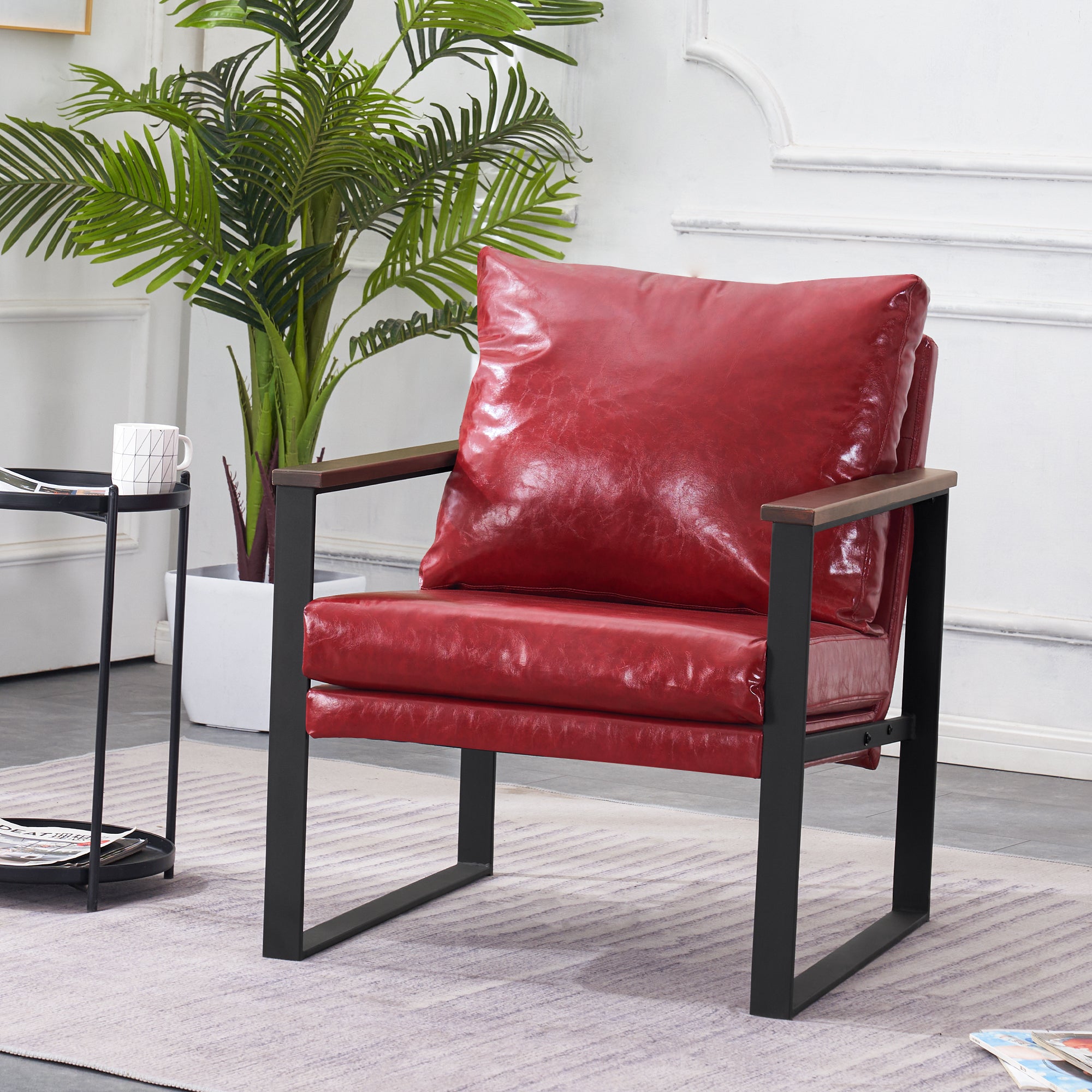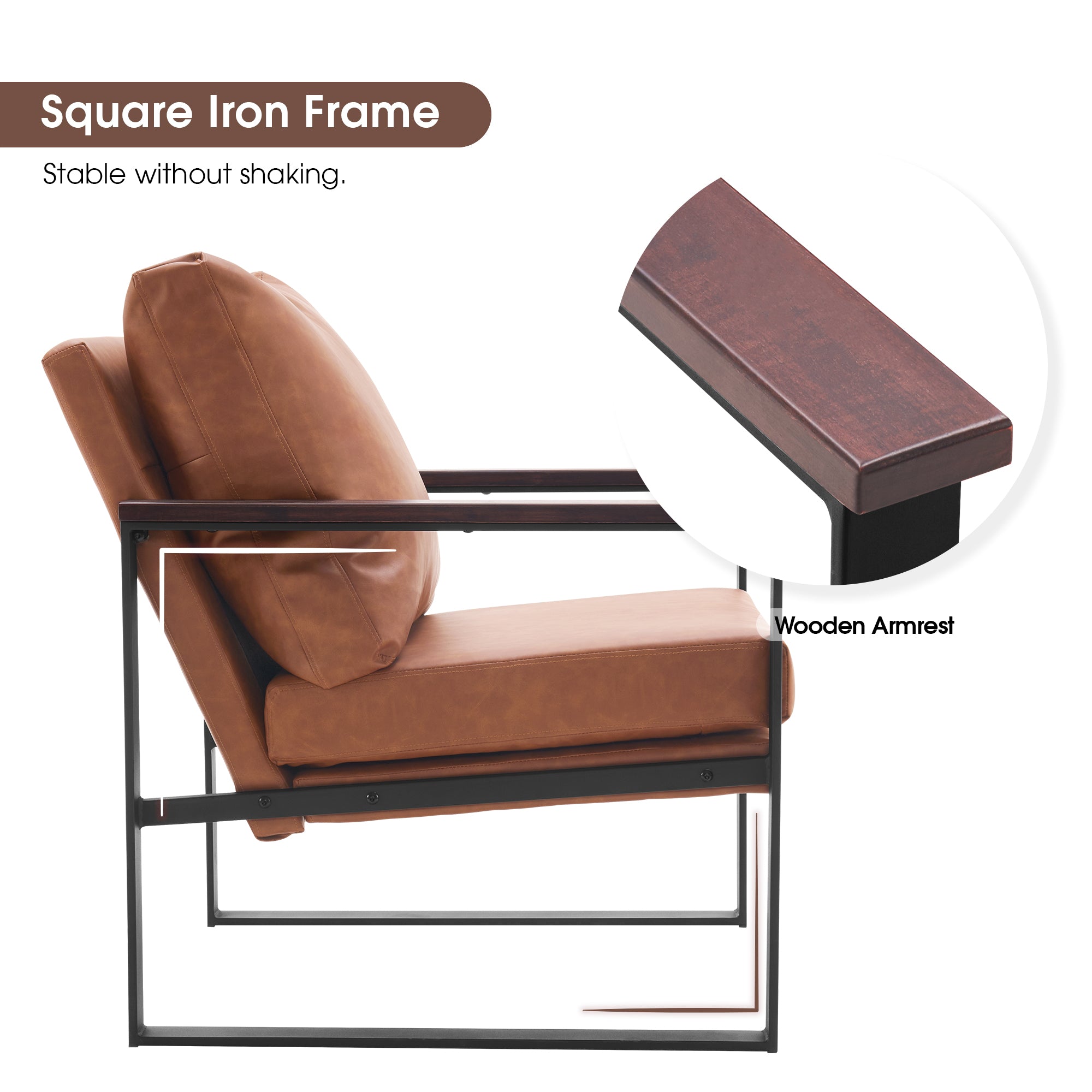- [Classic Style] The color of leather and wooden armrests have a retro and stylish look, allowing the chair to blend well with a variety of home decor styles. This modern chair perfectly matches your living room, bedroom, office, reading room or reception area, creating a corner to relax and entertain.
