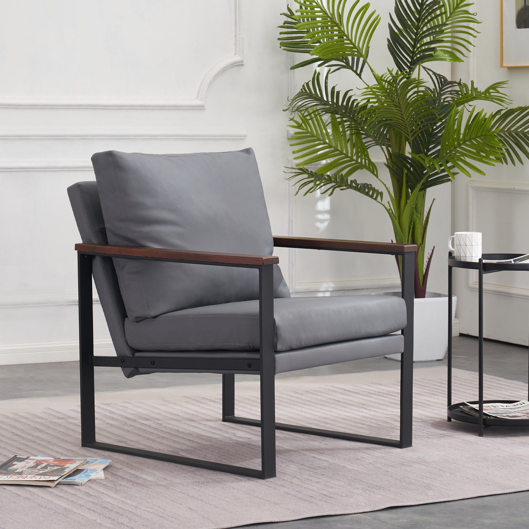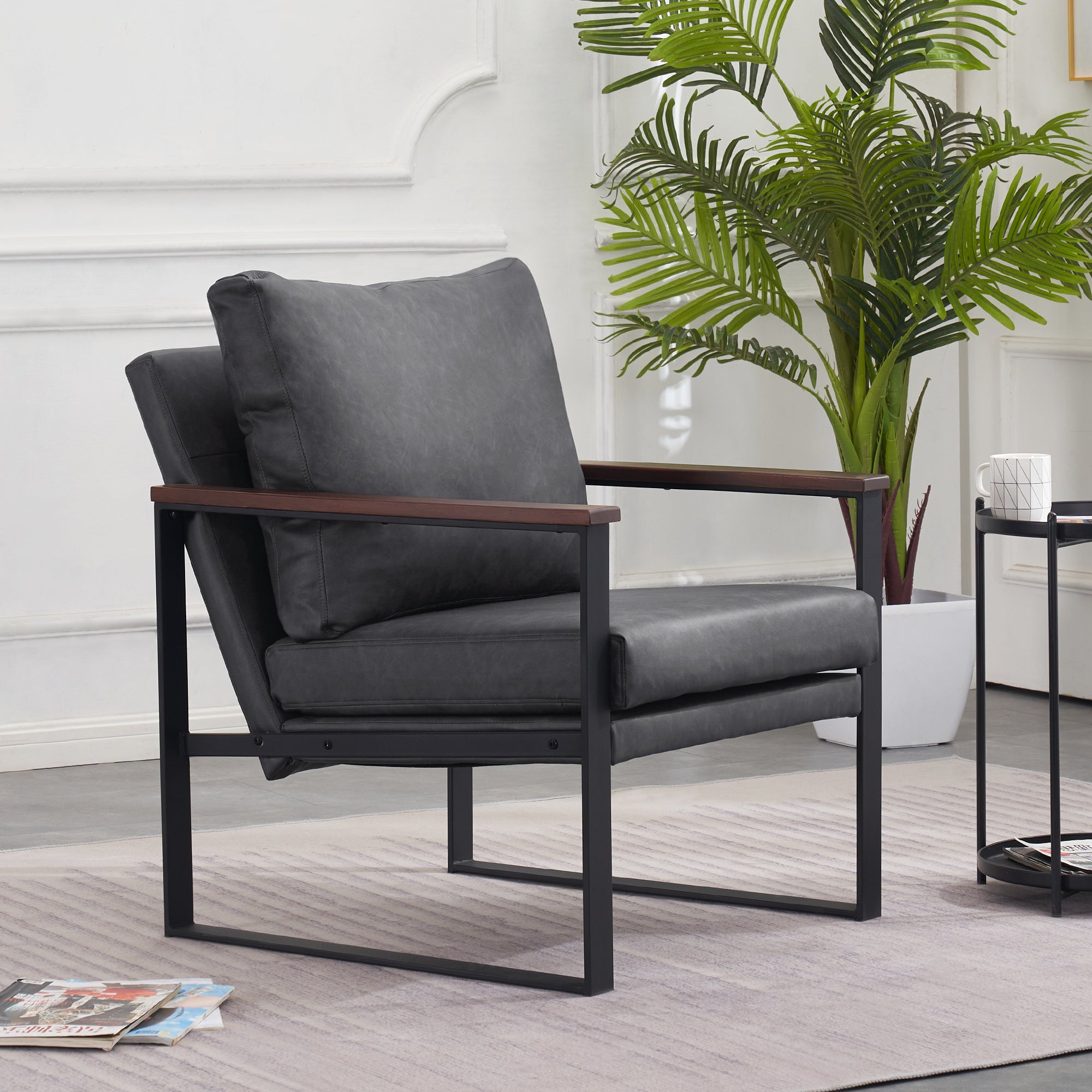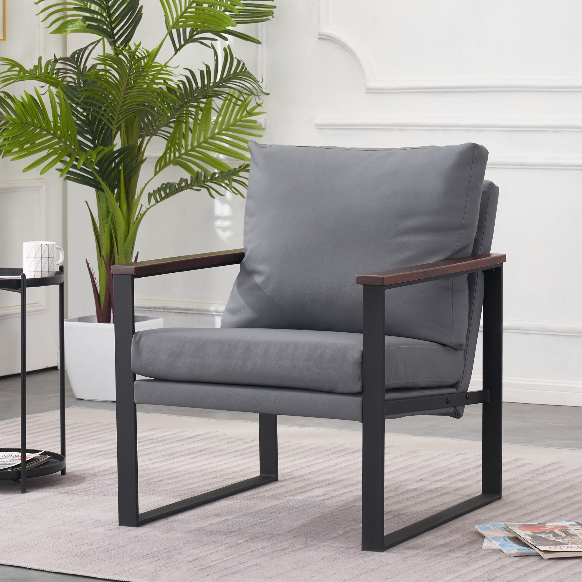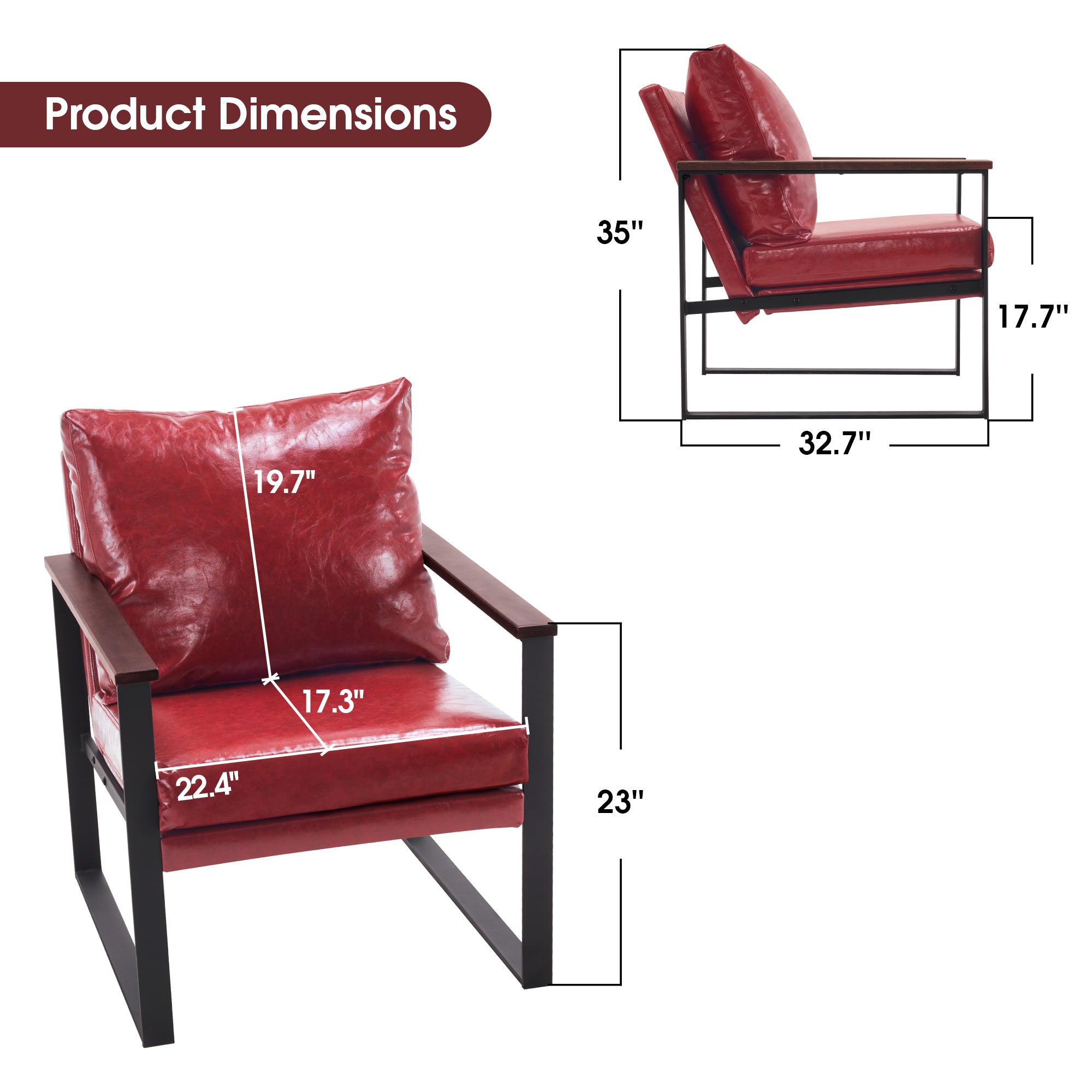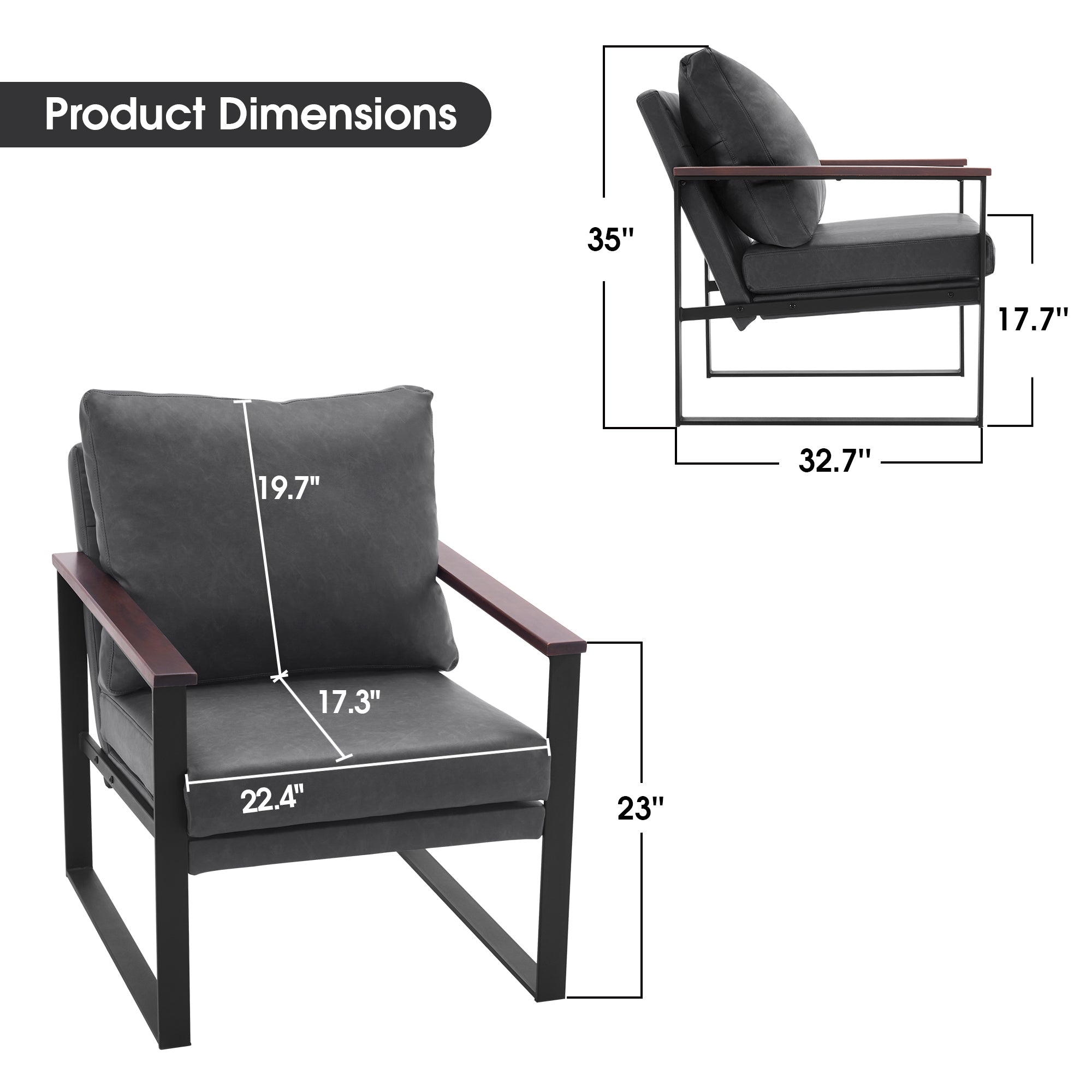 - [Classic Style] The color of leather and wooden armrests have a retro and stylish look, allowing the chair to blend well with a variety of home decor styles. This modern chair perfectly matches your living room, bedroom, office, reading room or reception area, creating a corner to relax and entertain.