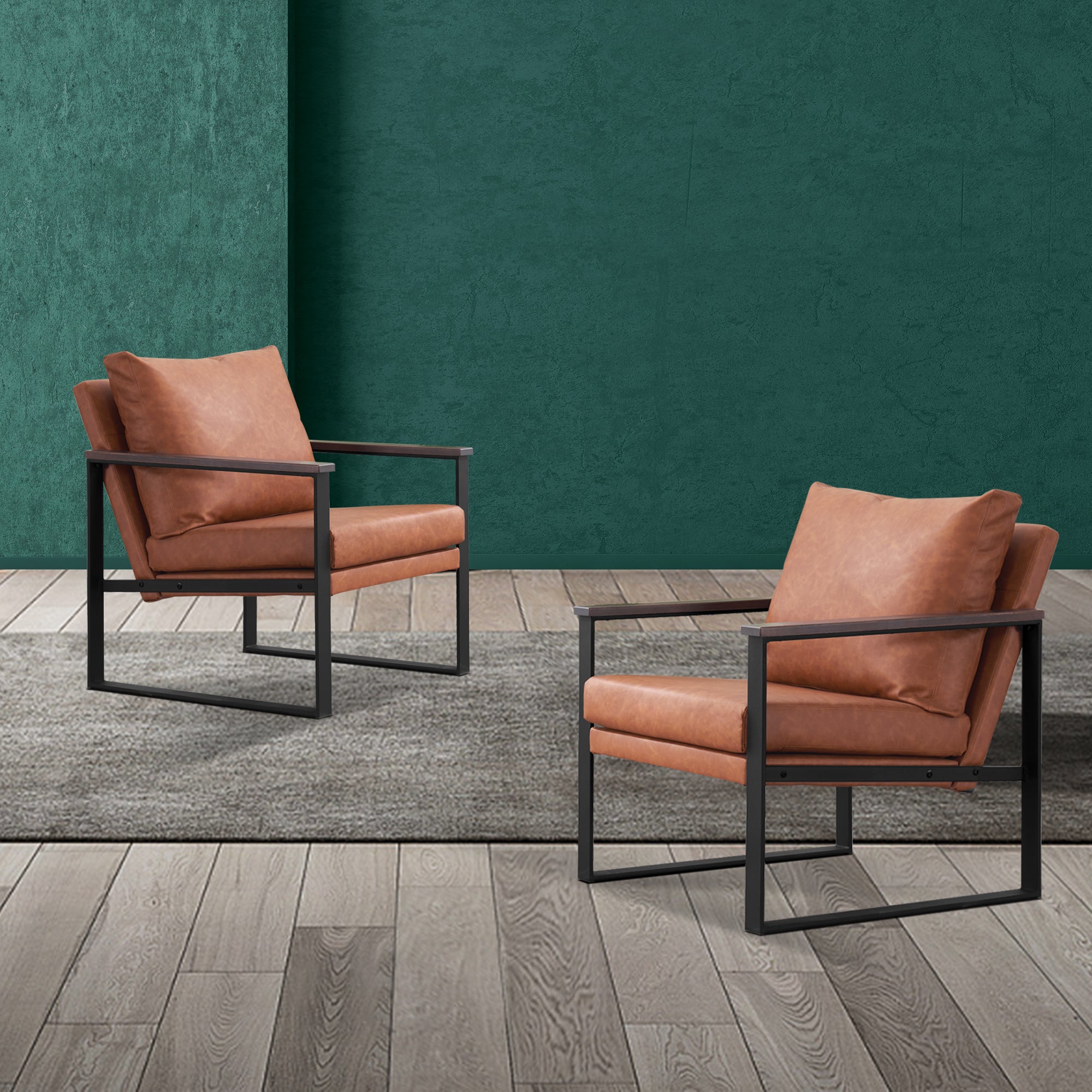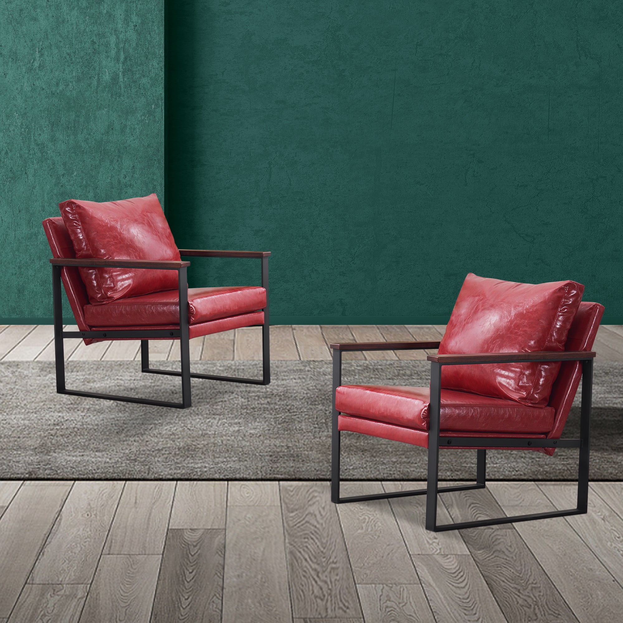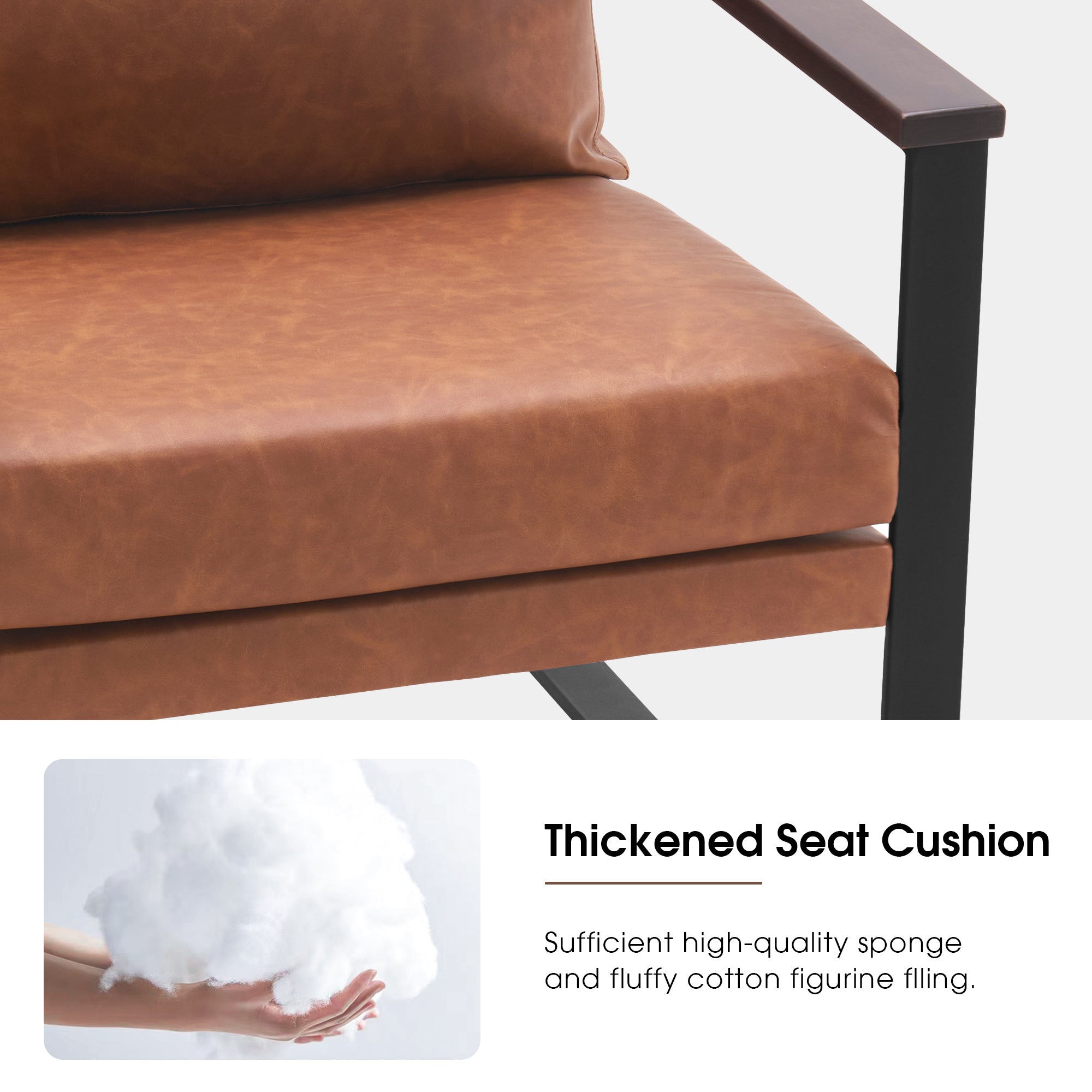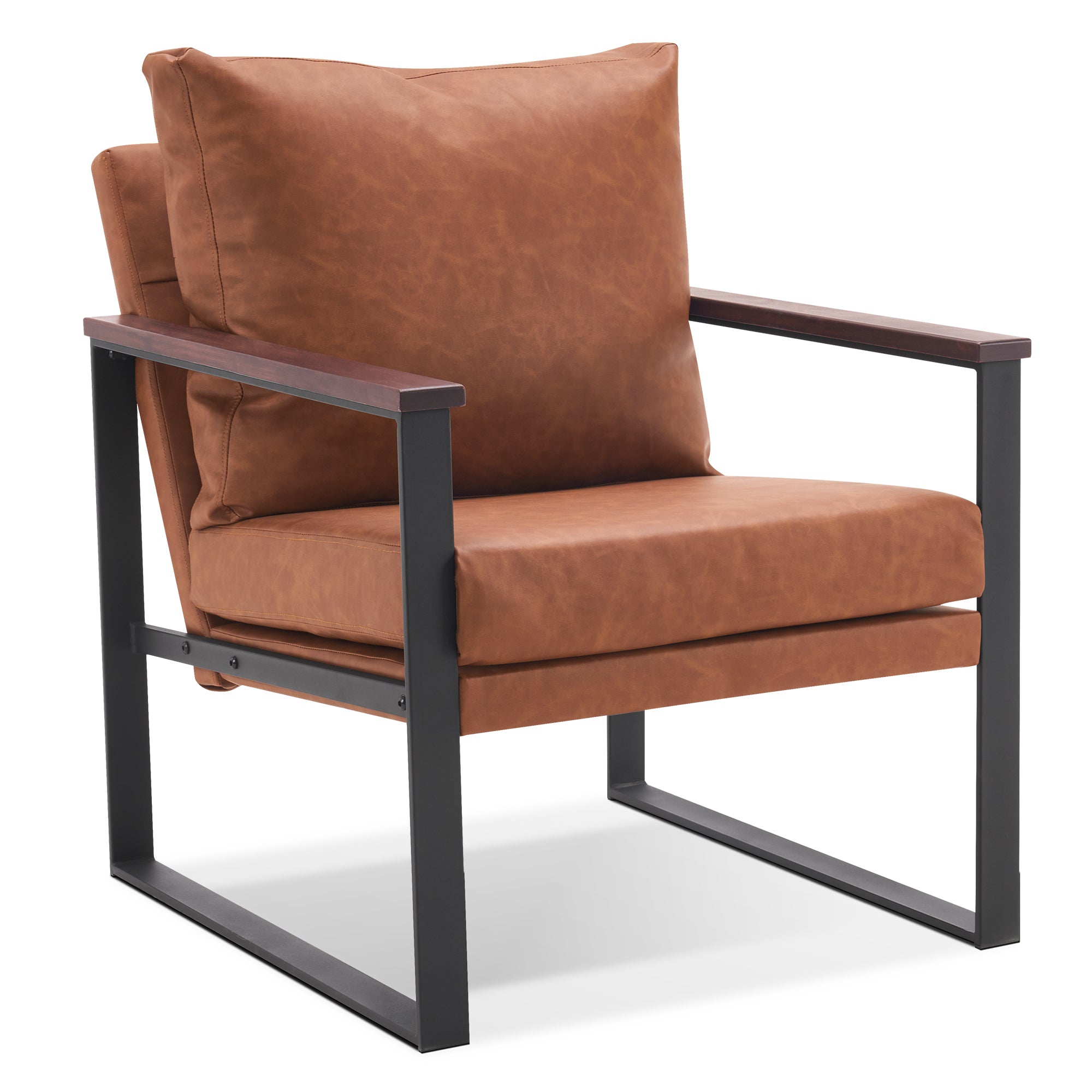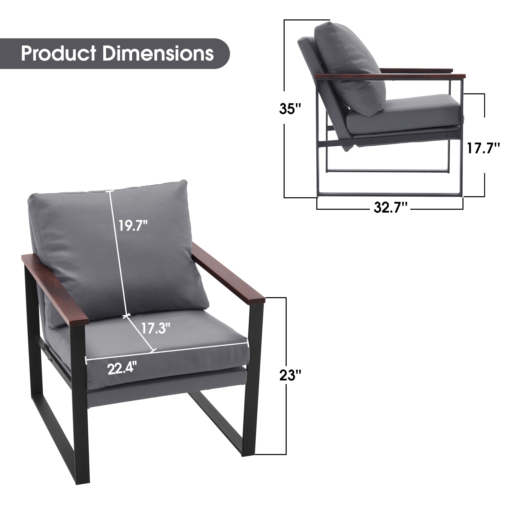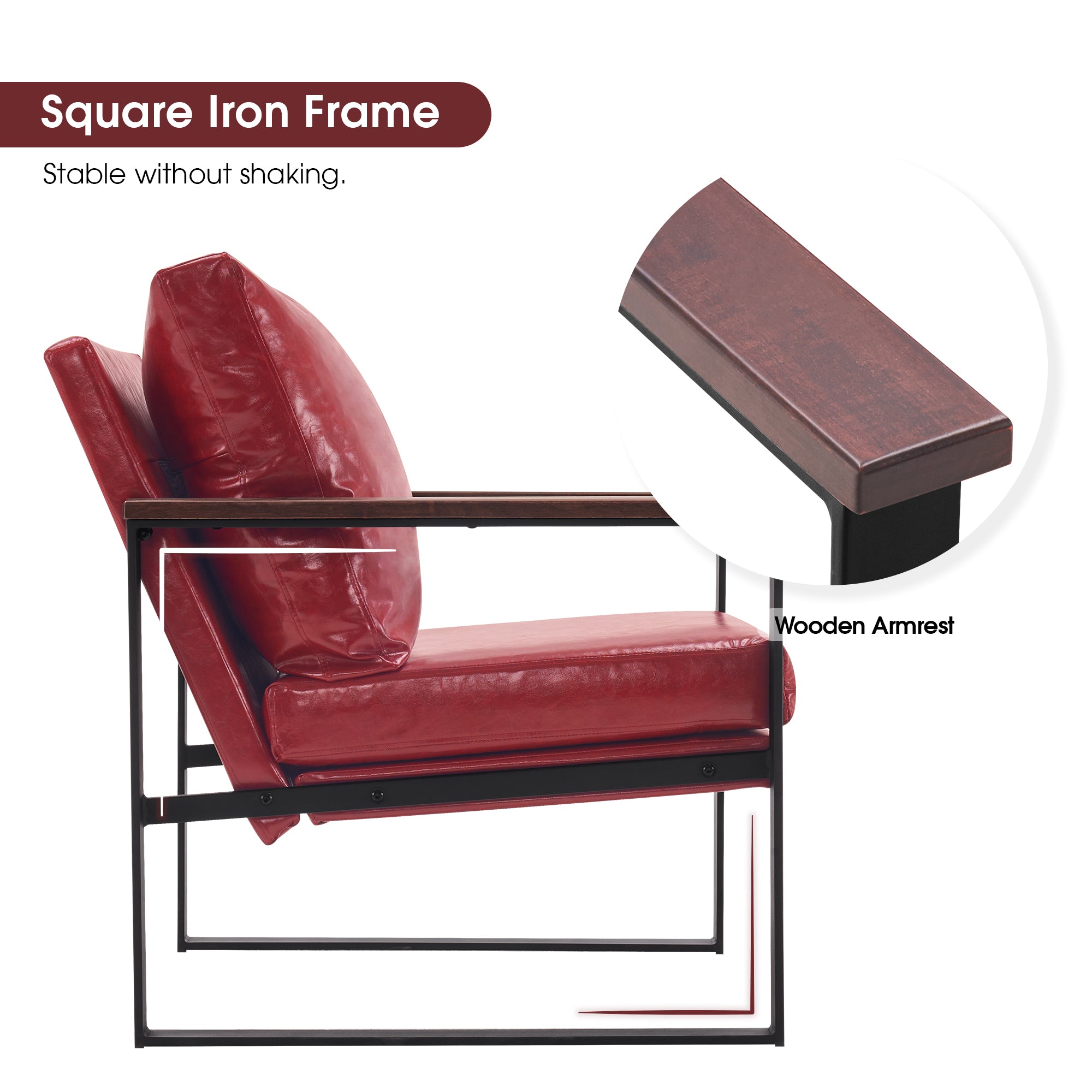 - [Classic Style] The color of leather and wooden armrests have a retro and stylish look, allowing the chair to blend well with a variety of home decor styles. This modern chair perfectly matches your living room, bedroom, office, reading room or reception area, creating a corner to relax and entertain.