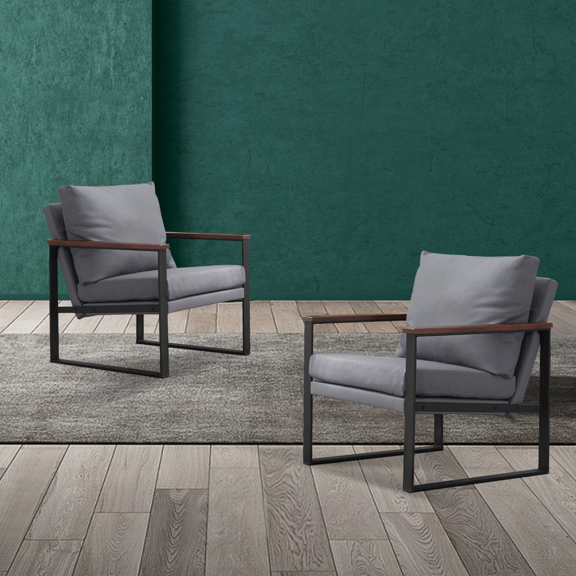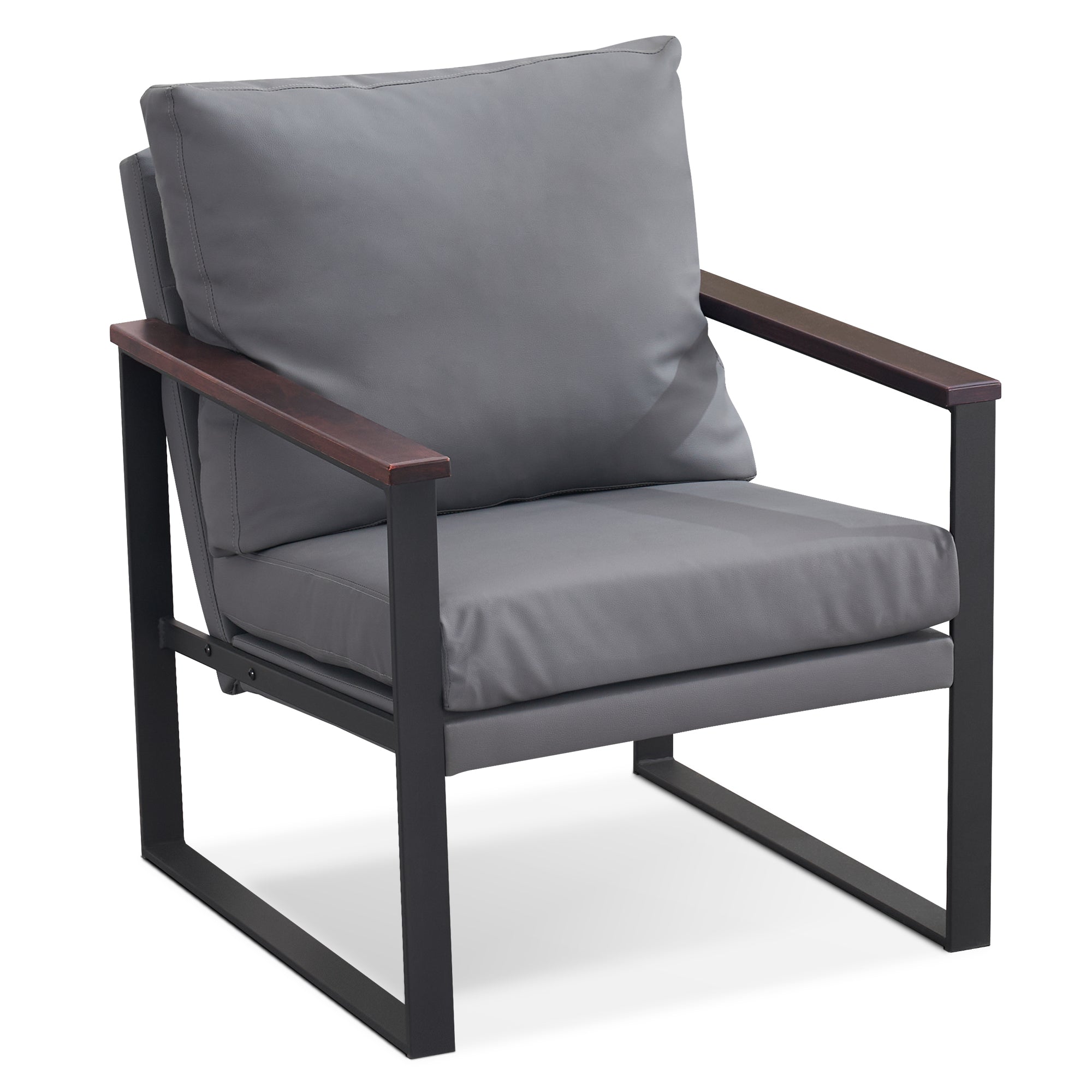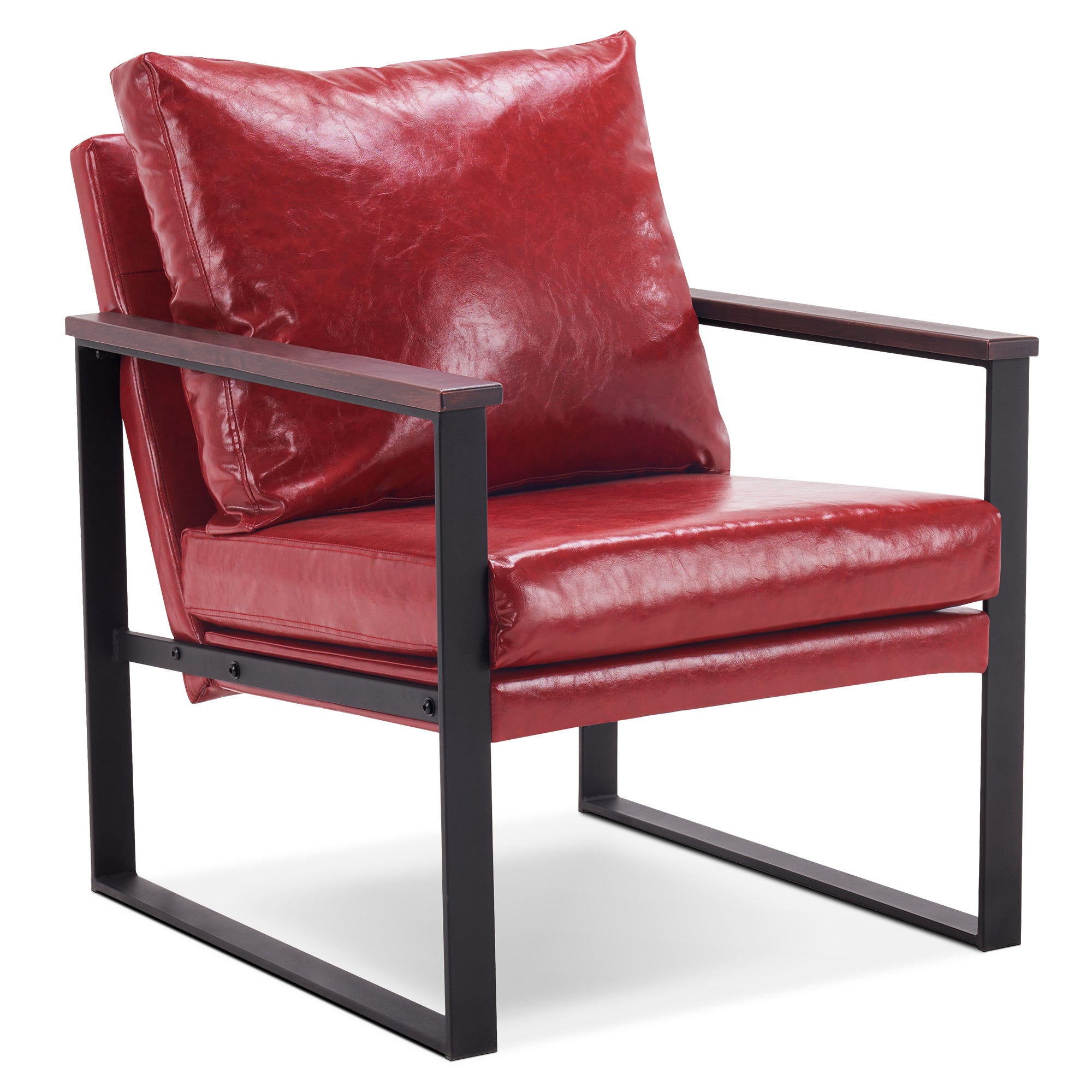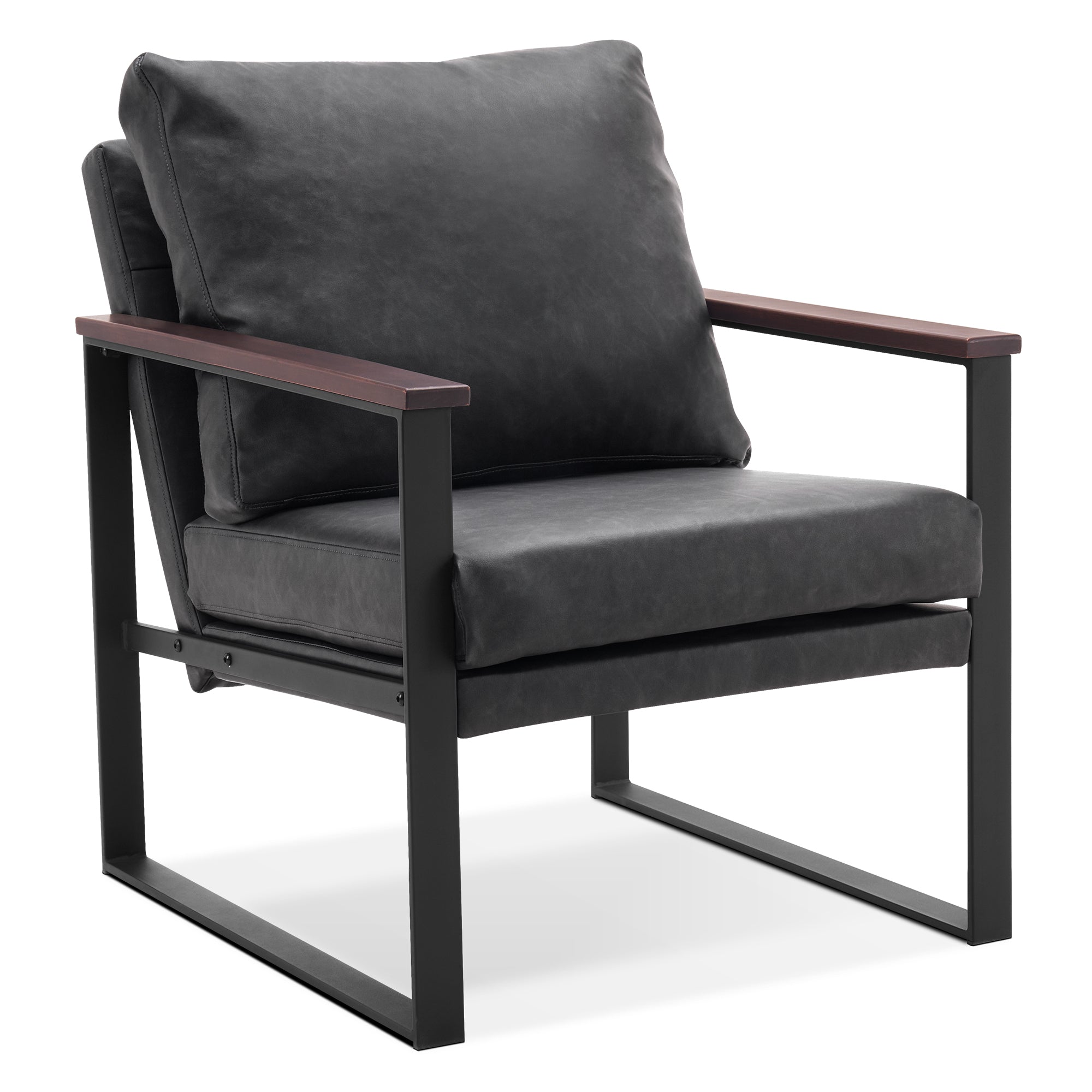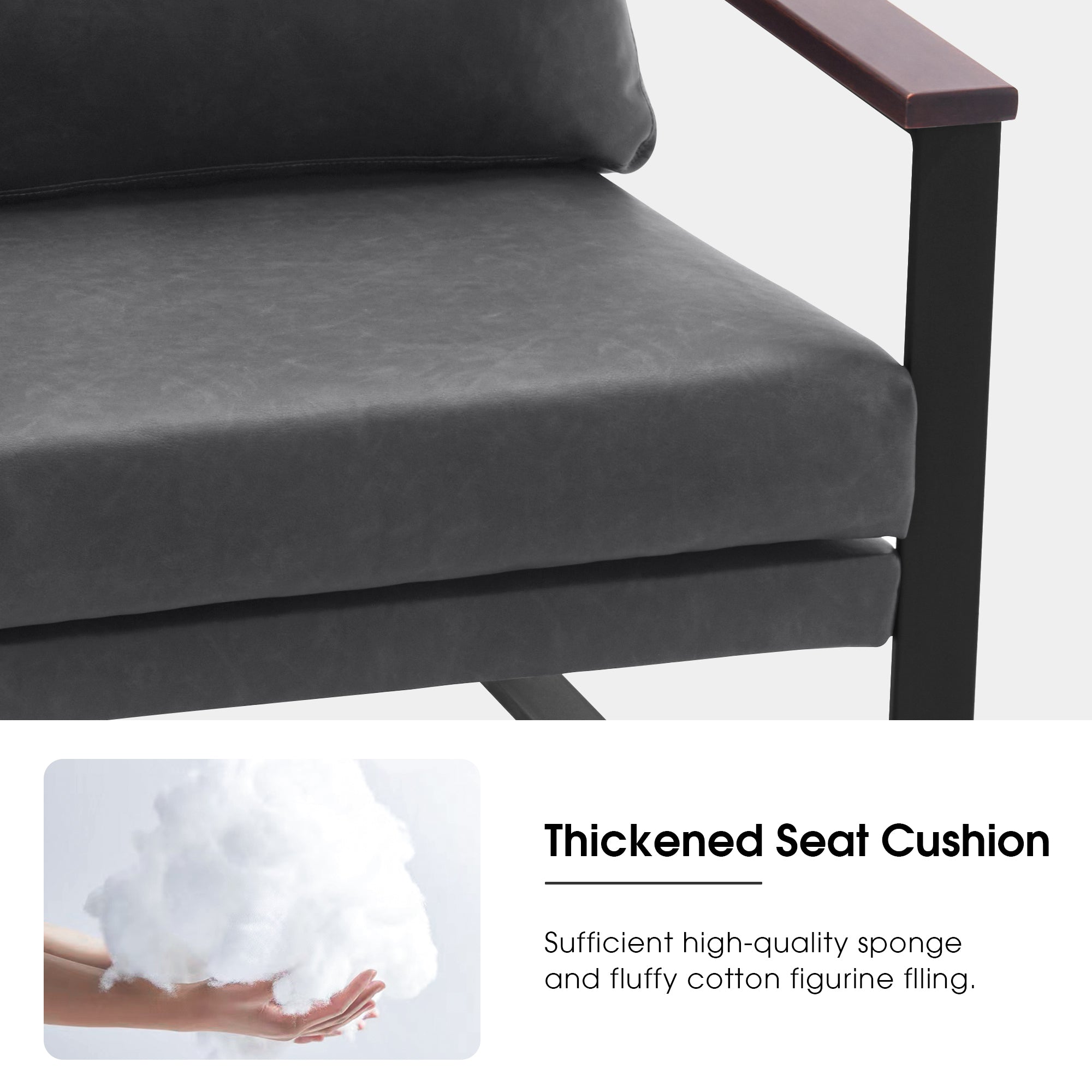 - [Classic Style] The color of leather and wooden armrests have a retro and stylish look, allowing the chair to blend well with a variety of home decor styles. This modern chair perfectly matches your living room, bedroom, office, reading room or reception area, creating a corner to relax and entertain.