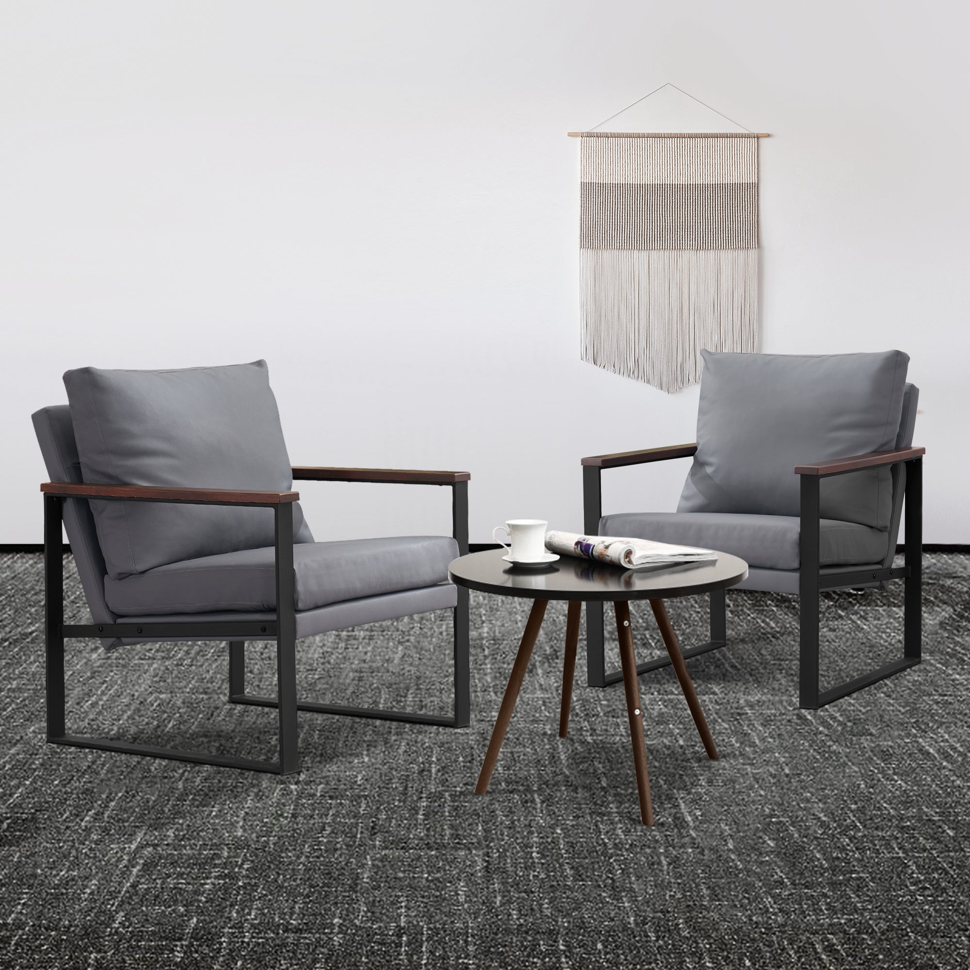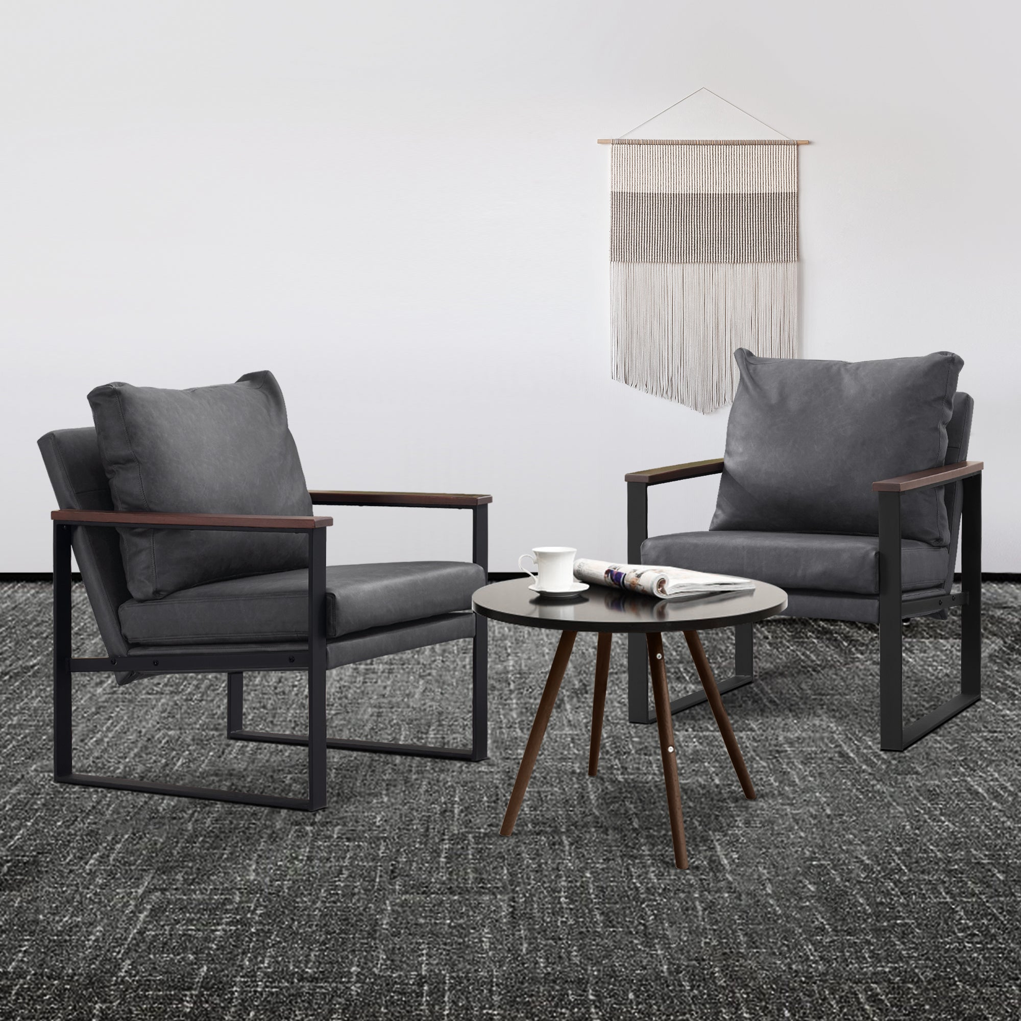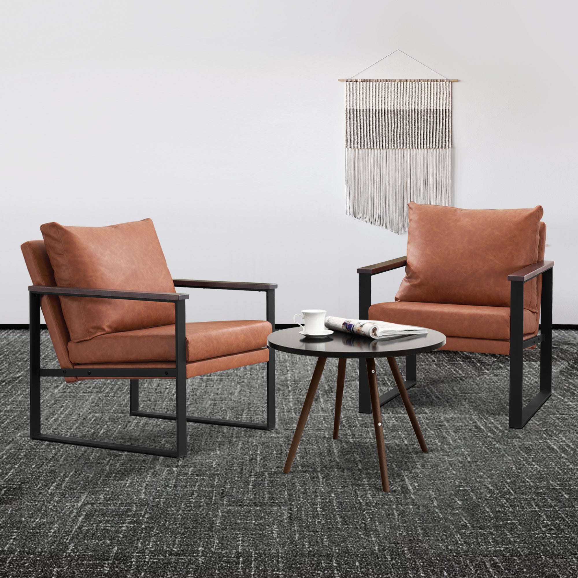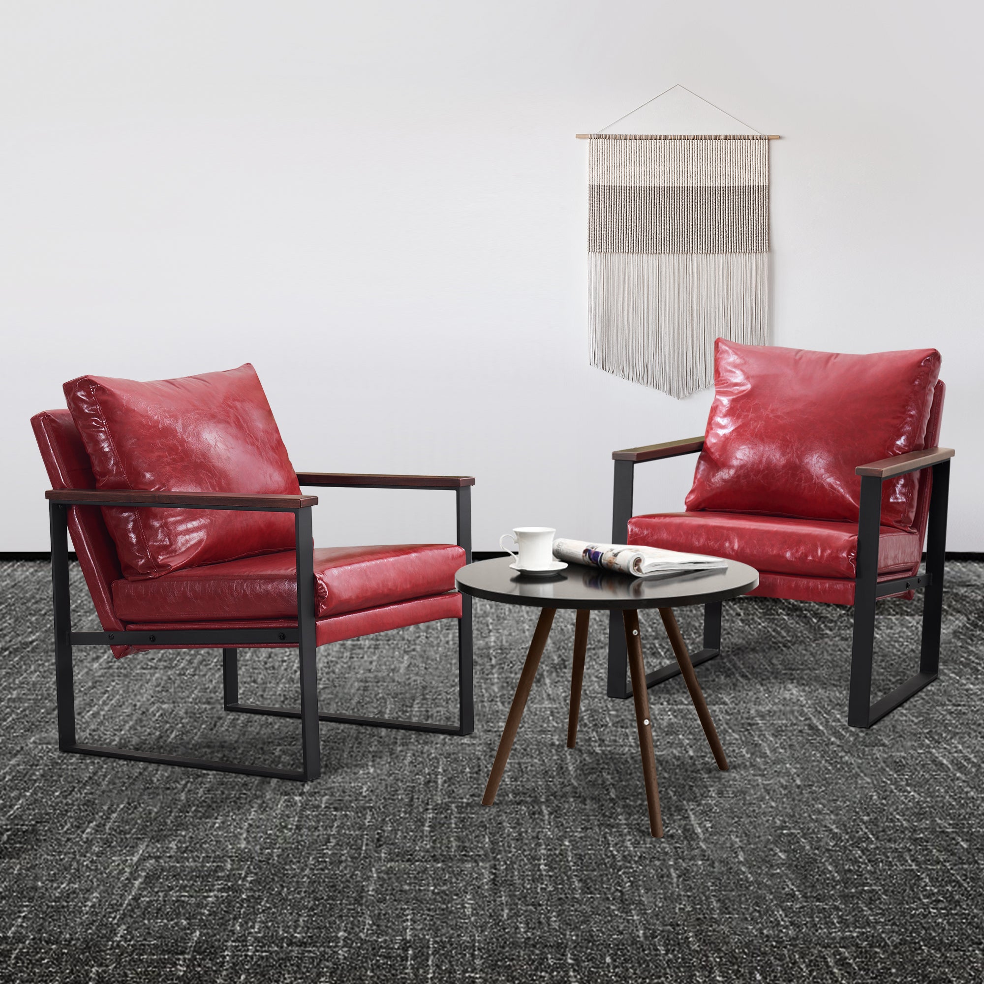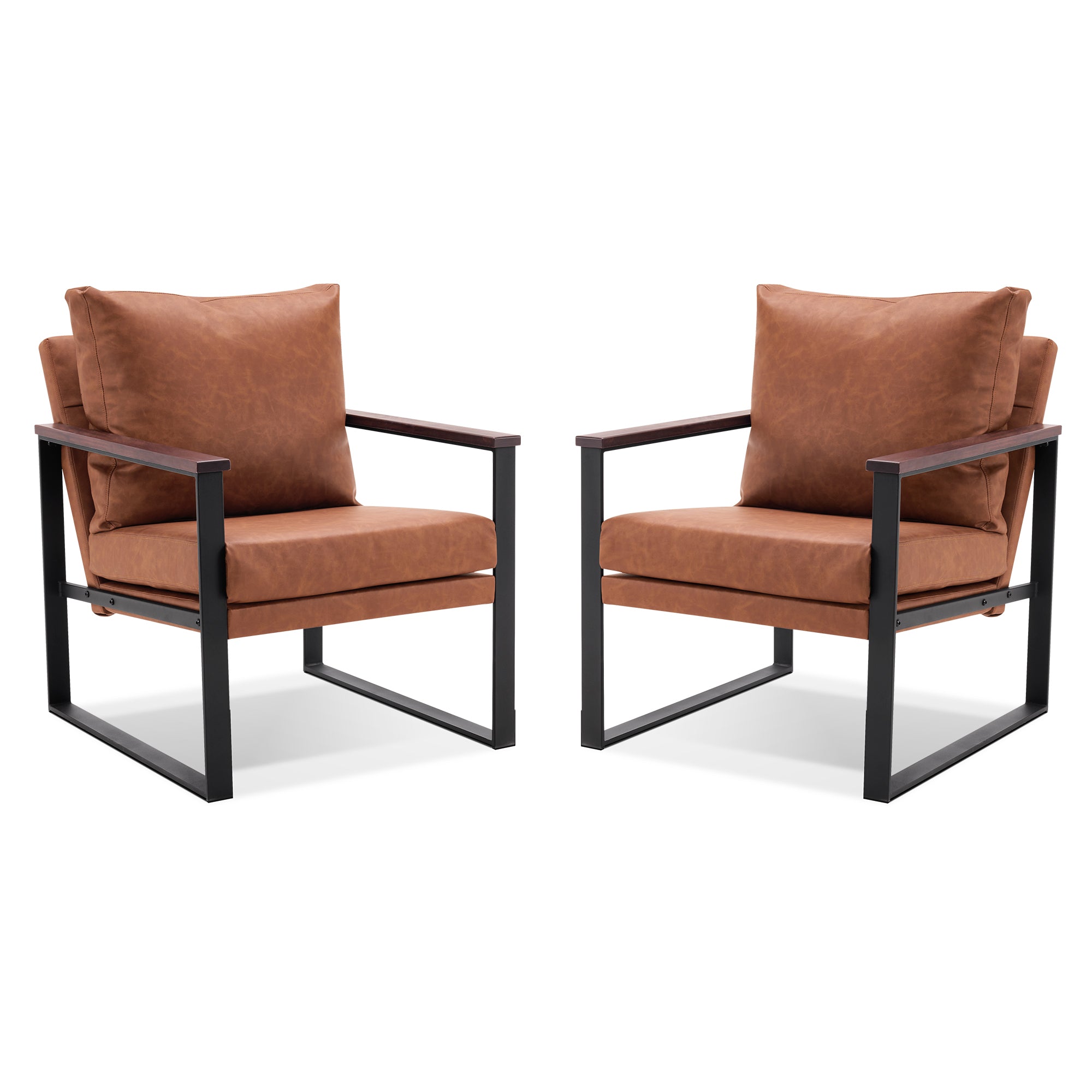 - [Classic Style] The color of leather and wooden armrests have a retro and stylish look, allowing the chair to blend well with a variety of home decor styles. This modern chair perfectly matches your living room, bedroom, office, reading room or reception area, creating a corner to relax and entertain.