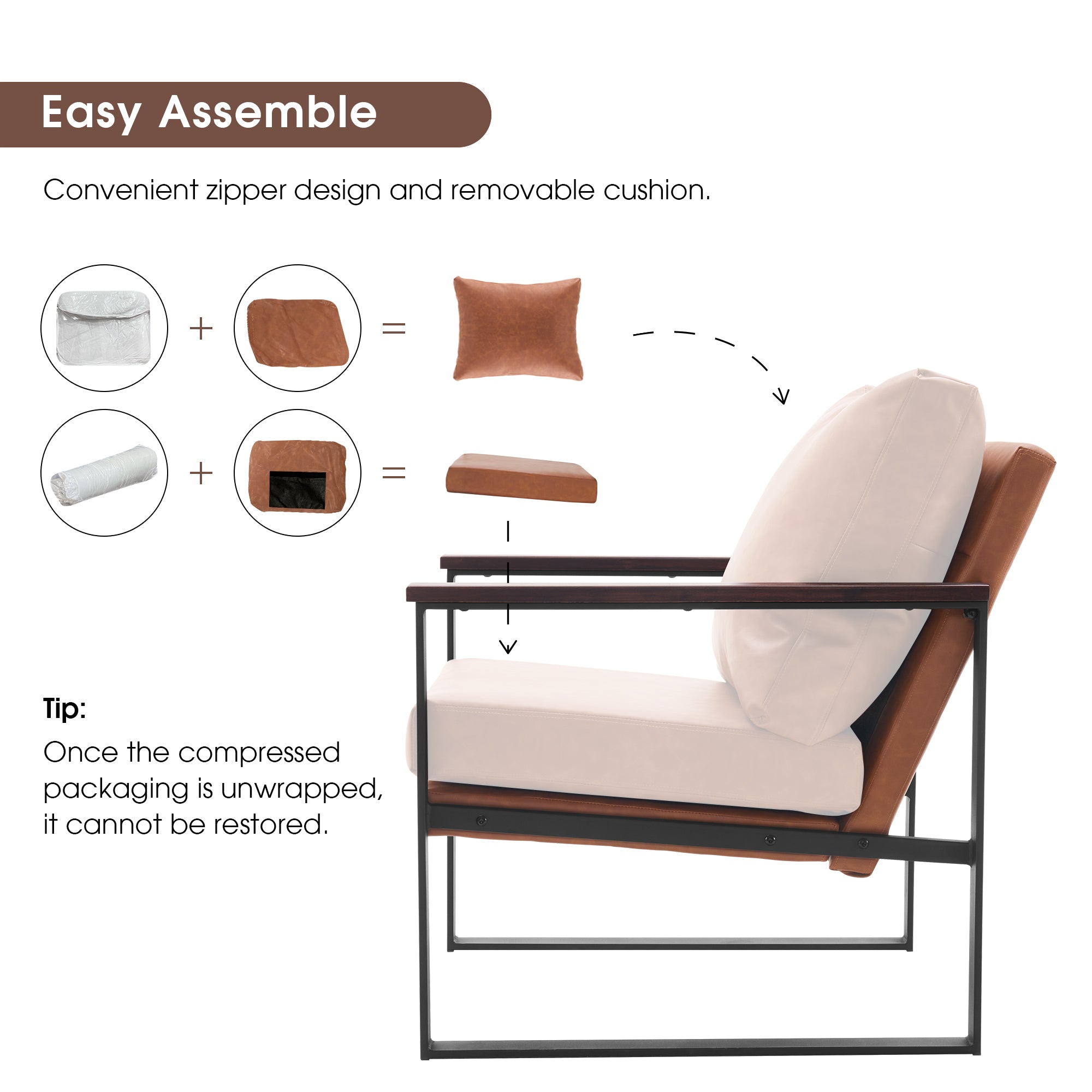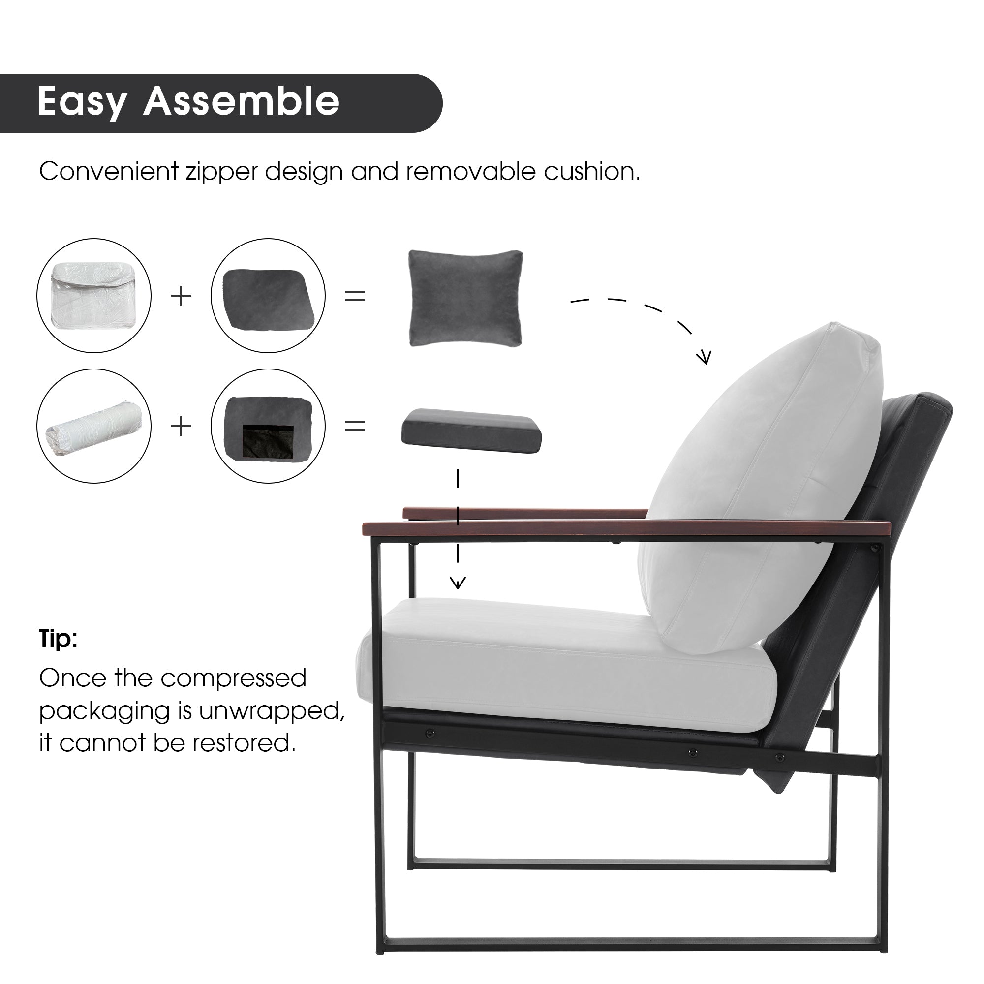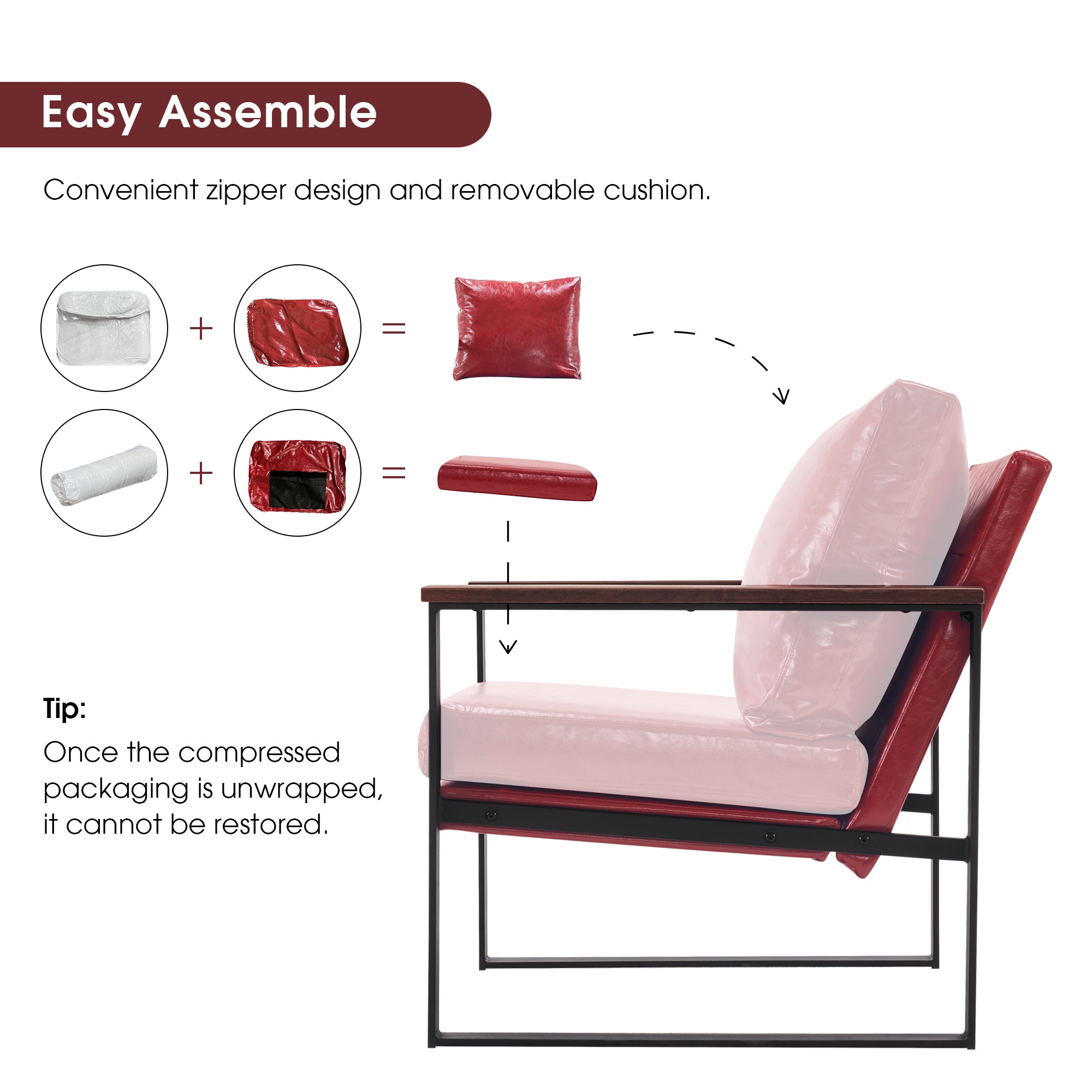 - [Easy Assembly & Care] The package has clear assembly instructions and all the hardware. Following the instructions, an adult can complete it in a few minutes. This chair is made of high-quality faux leather, which has a smooth surface. This leather upholstered chair, water- and stain-resistant, can be cleaned by gently wiping it with a damp cloth.