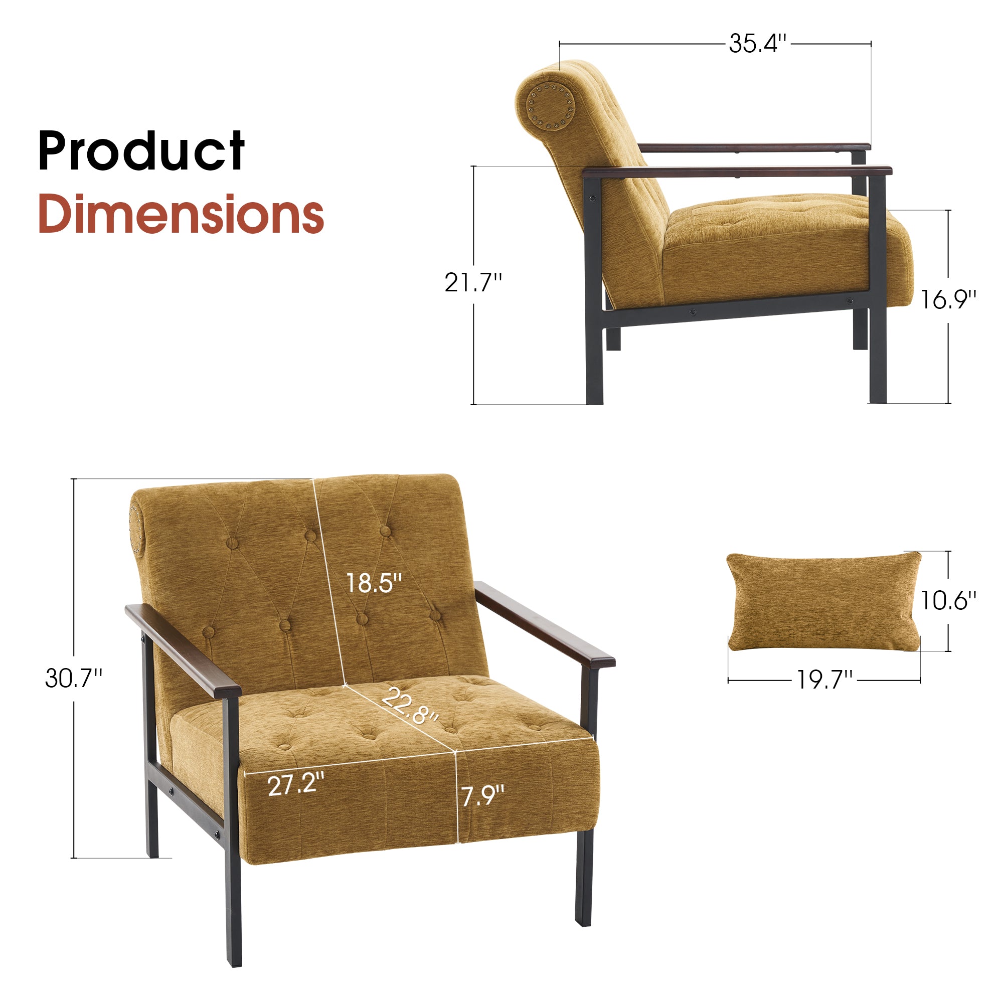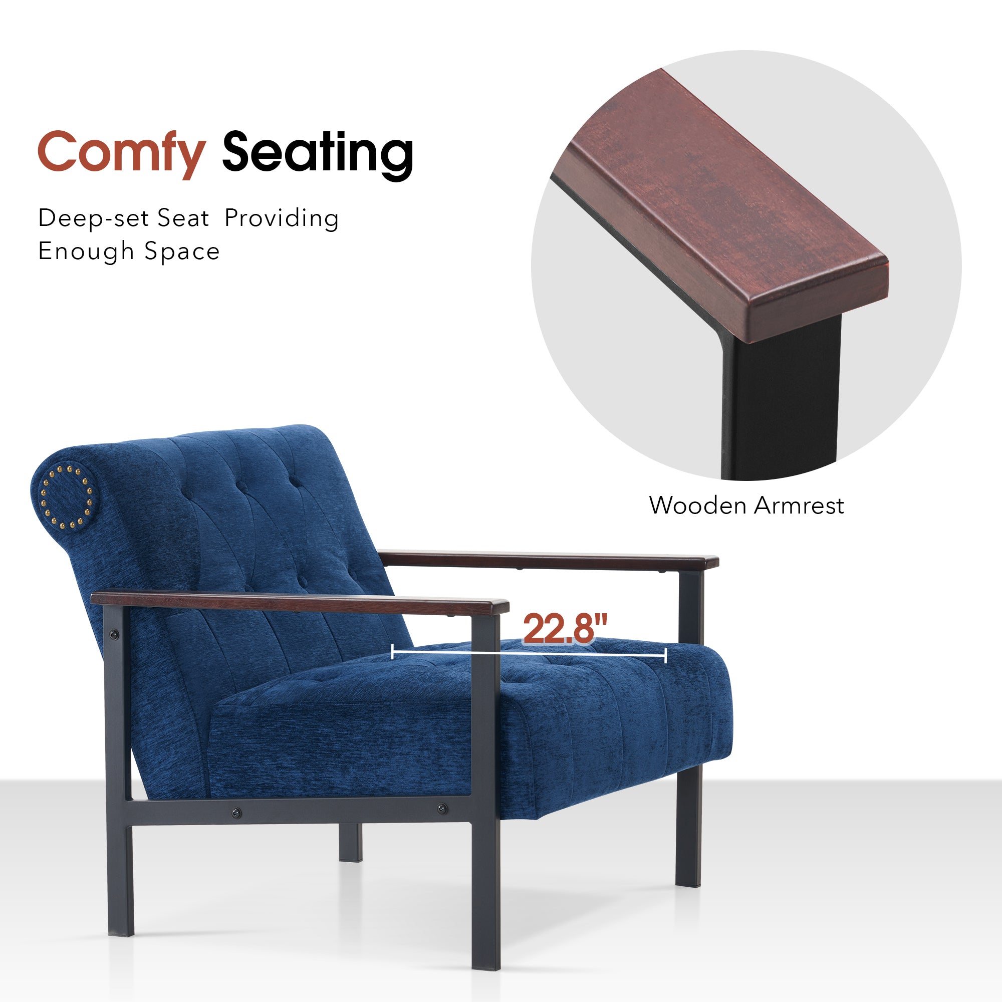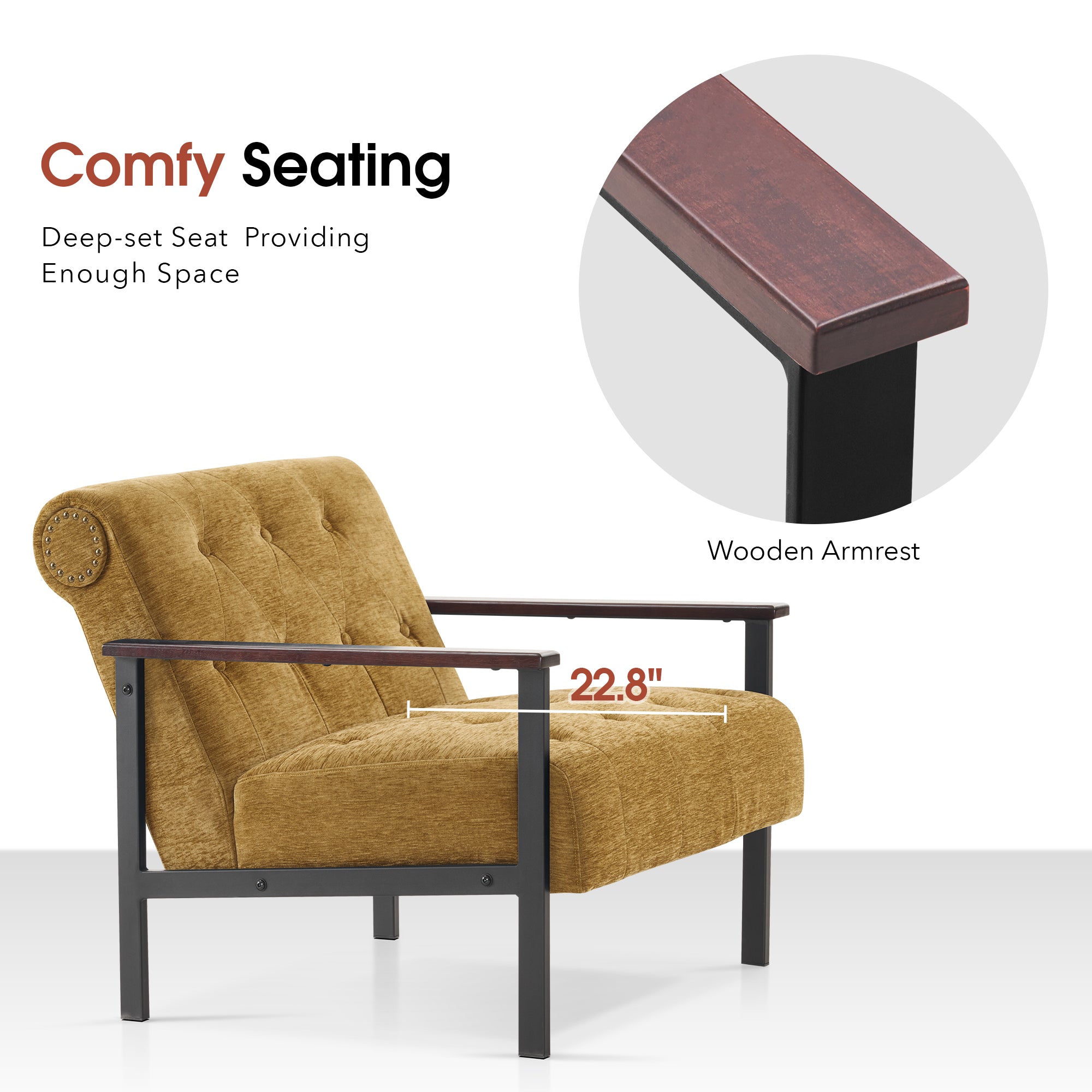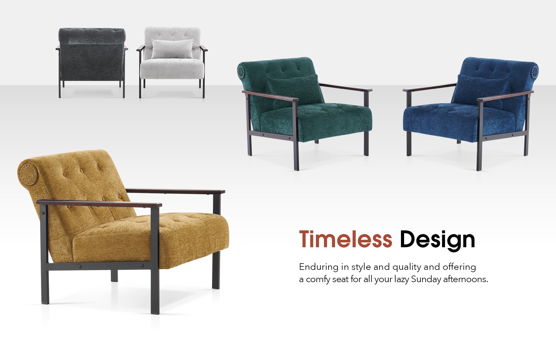 - [Classic Style] The color of chenille fabric and wooden armrests have a retro and stylish look, allowing the accent chair to blend well with a variety of home decor styles. This modern chair perfectly matches your living room, bedroom, office, reading room, dining room, sun room or reception area, creating a corner to relax in causal settings or formal areas.