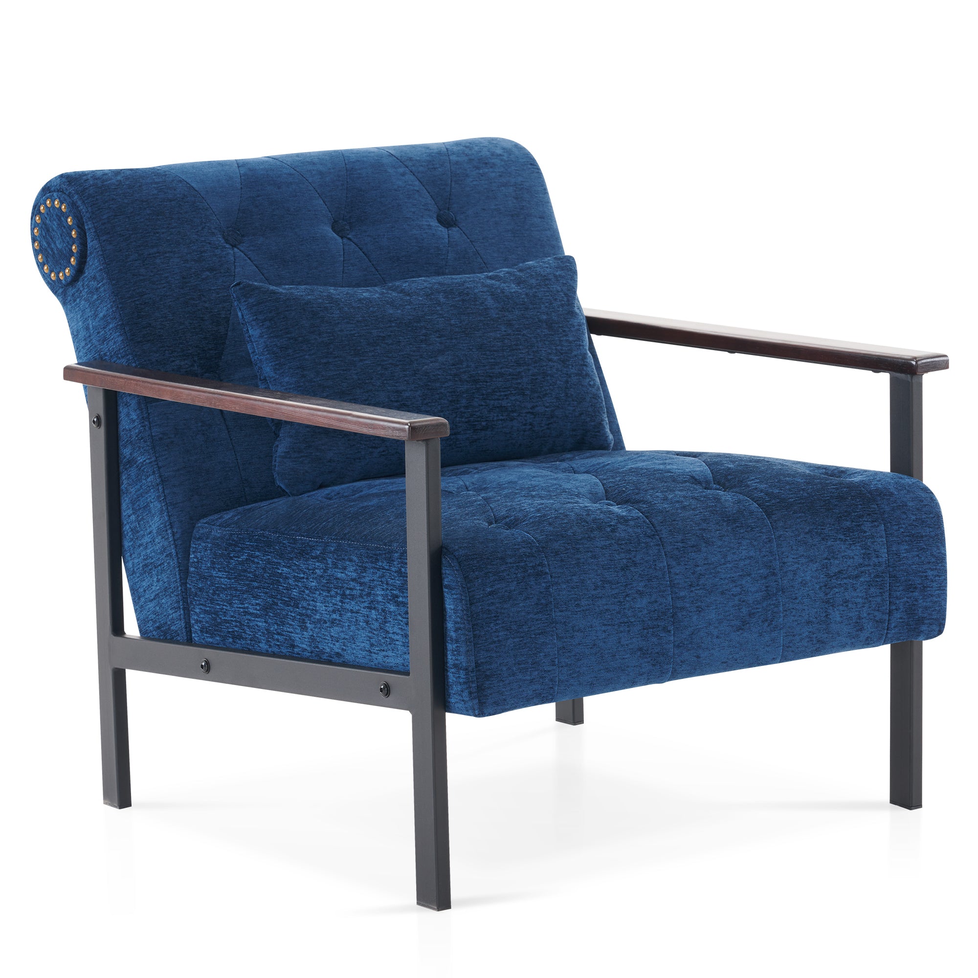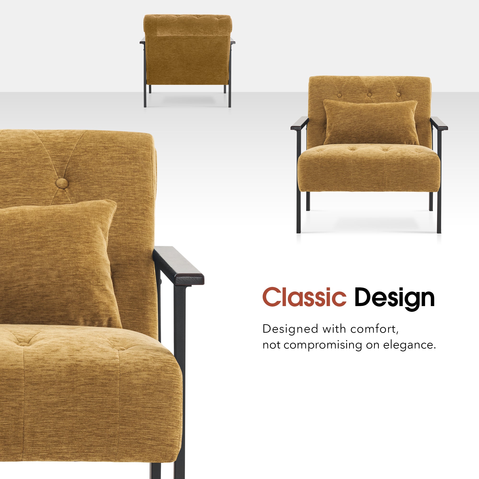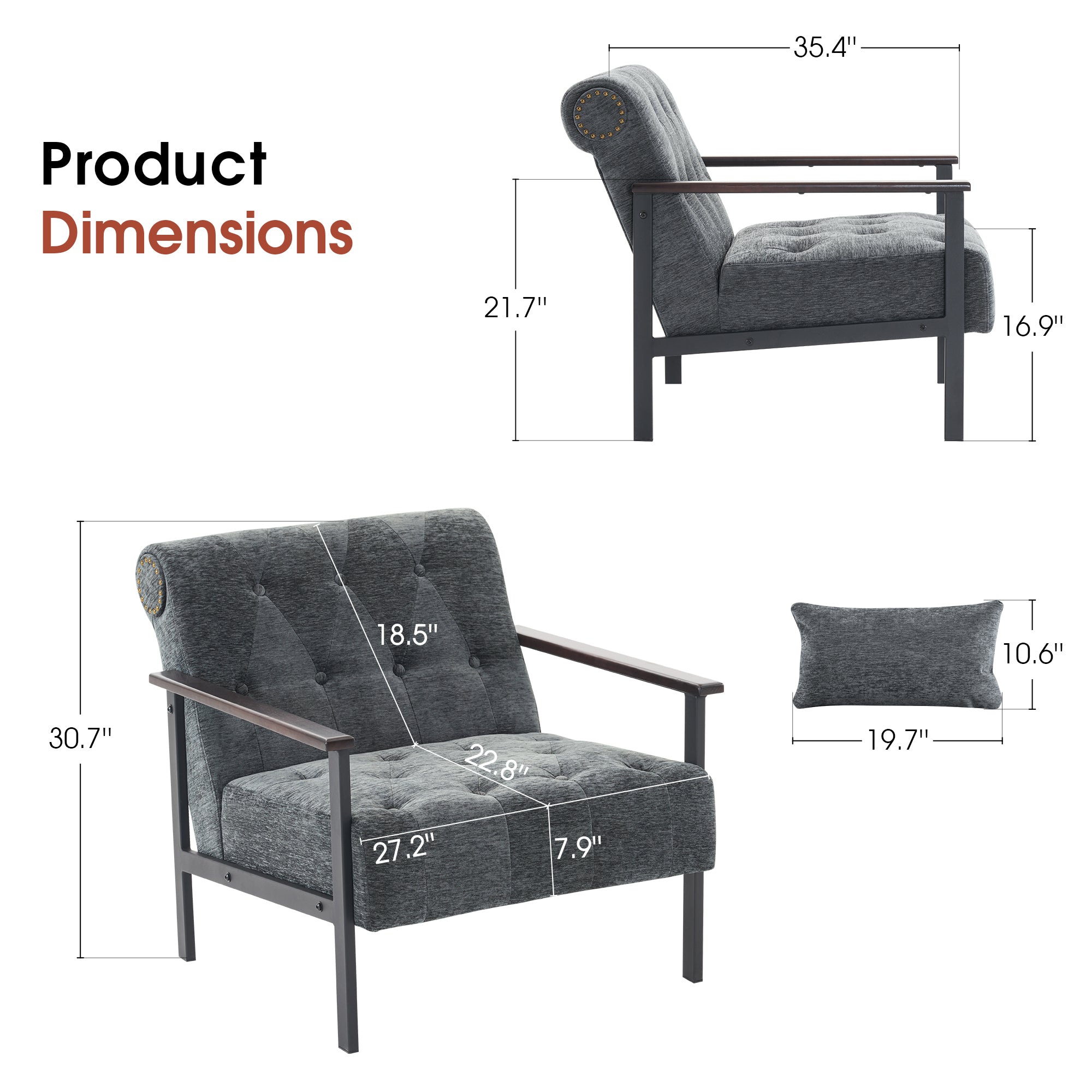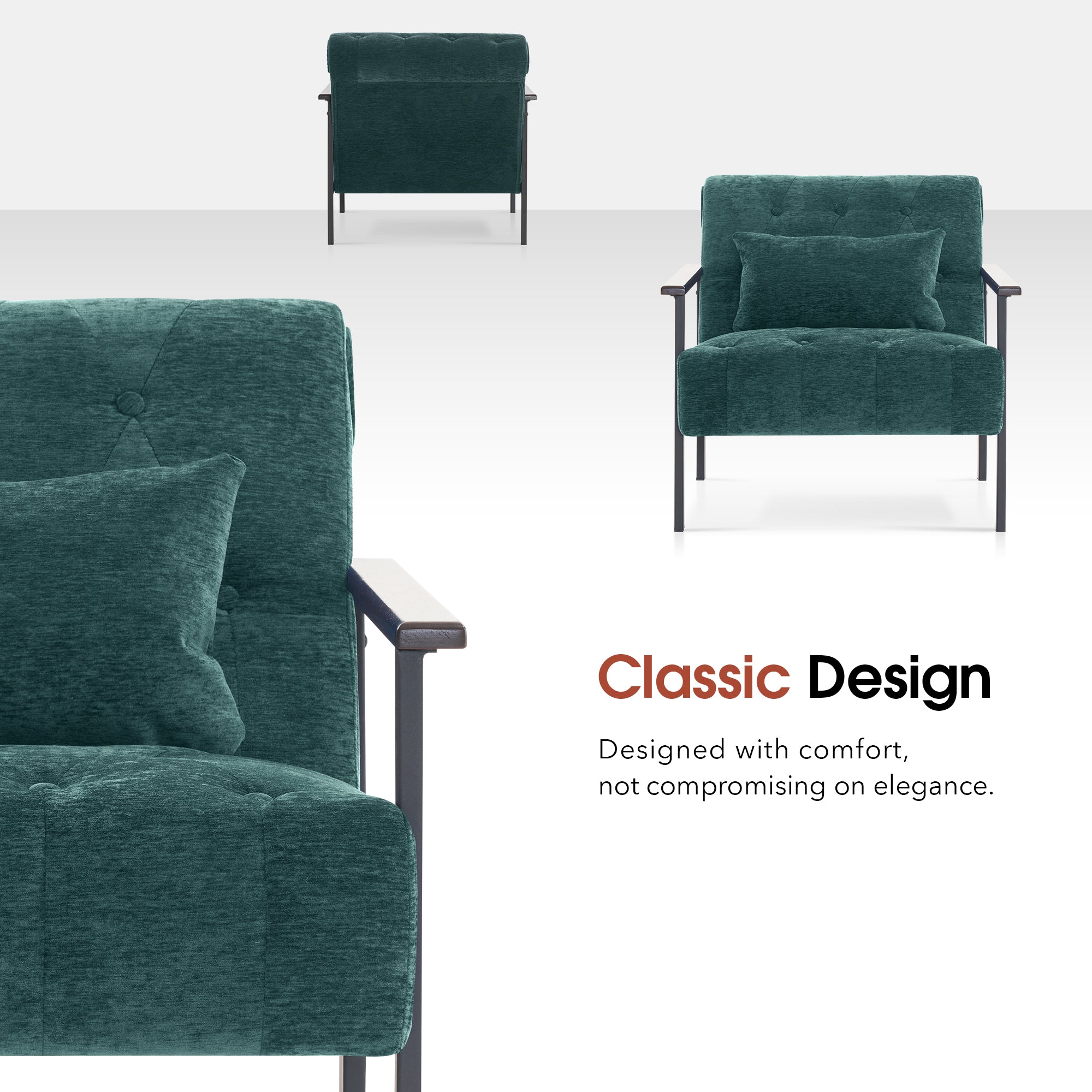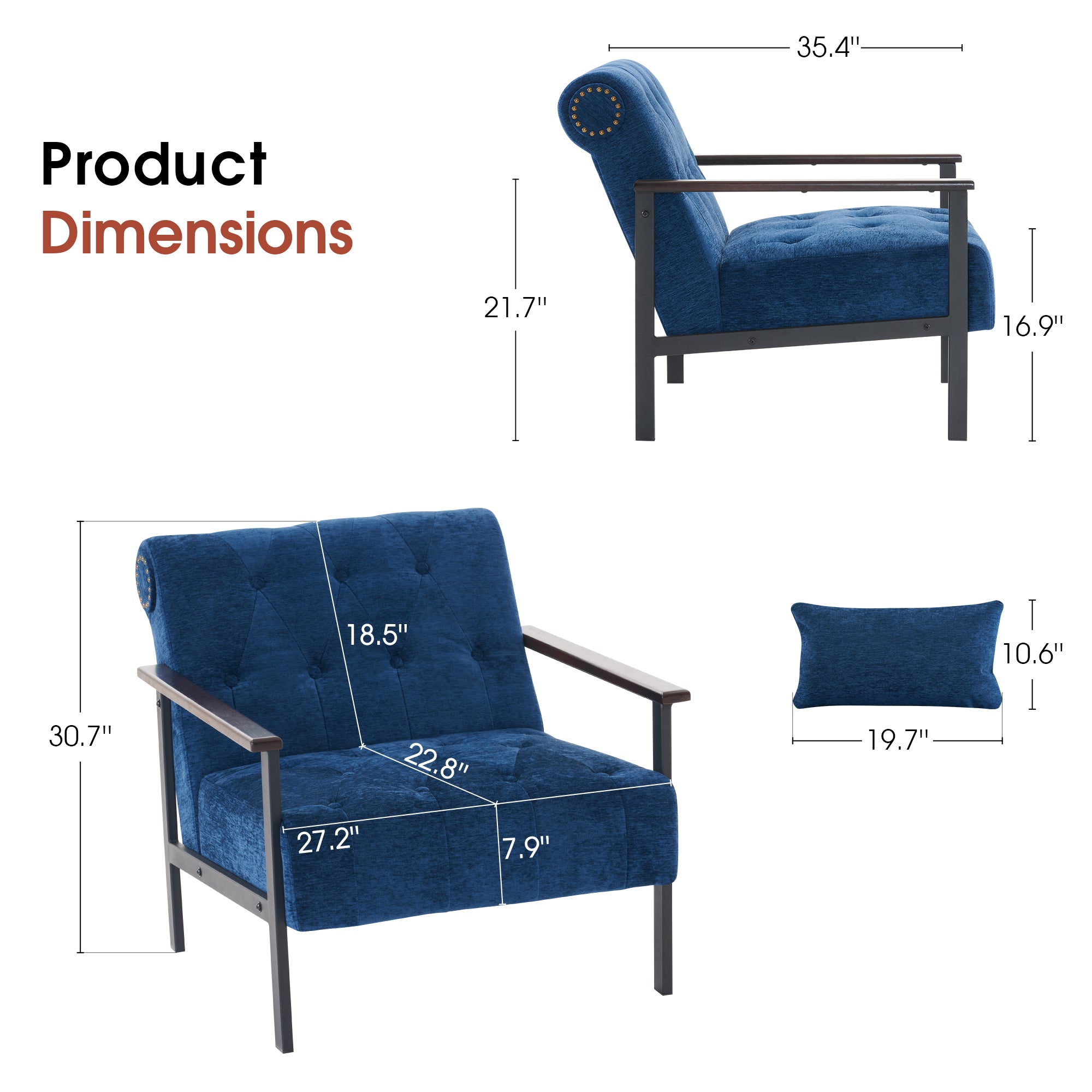 - [Classic Style] The color of chenille fabric and wooden armrests have a retro and stylish look, allowing the accent chair to blend well with a variety of home decor styles. This modern chair perfectly matches your living room, bedroom, office, reading room, dining room, sun room or reception area, creating a corner to relax in causal settings or formal areas.