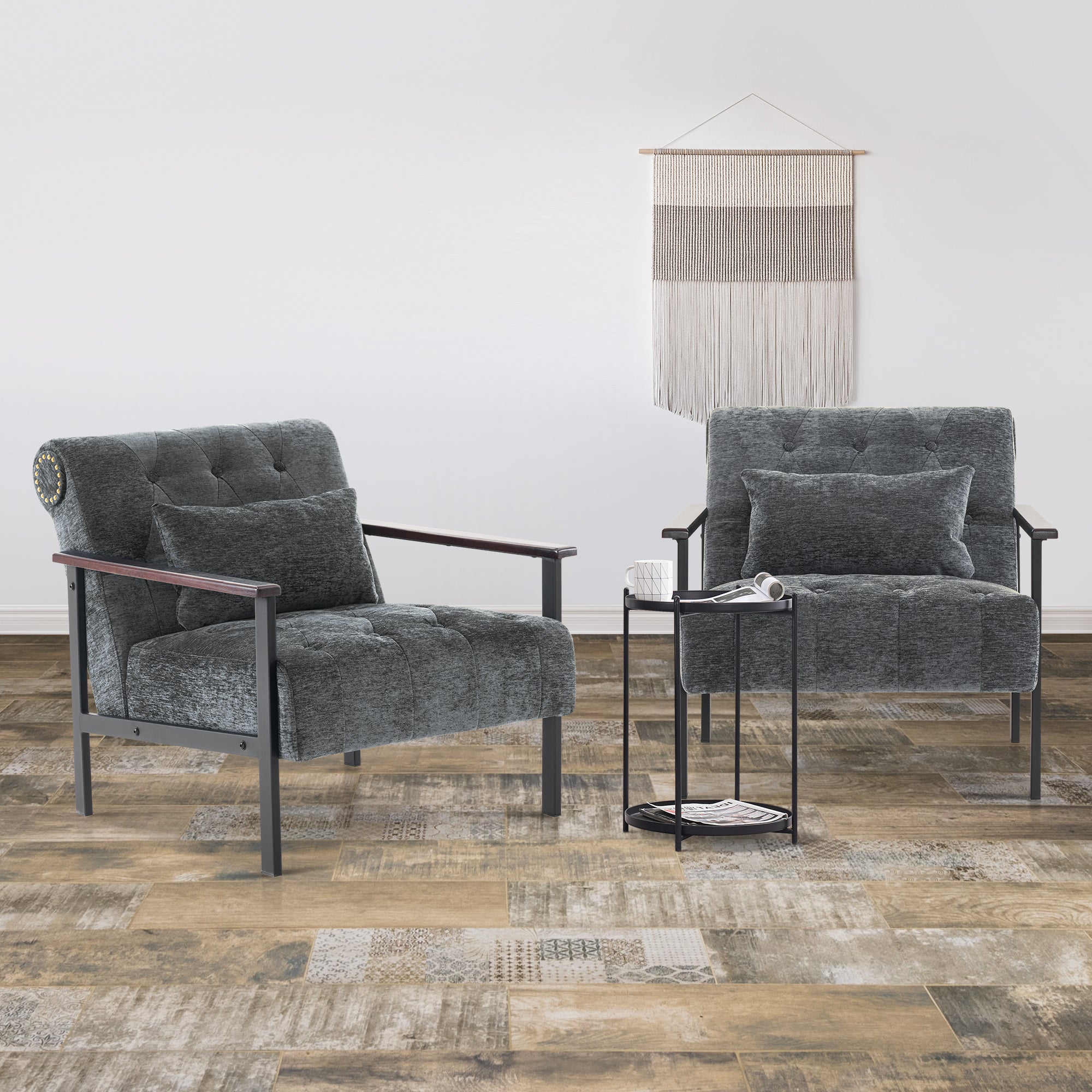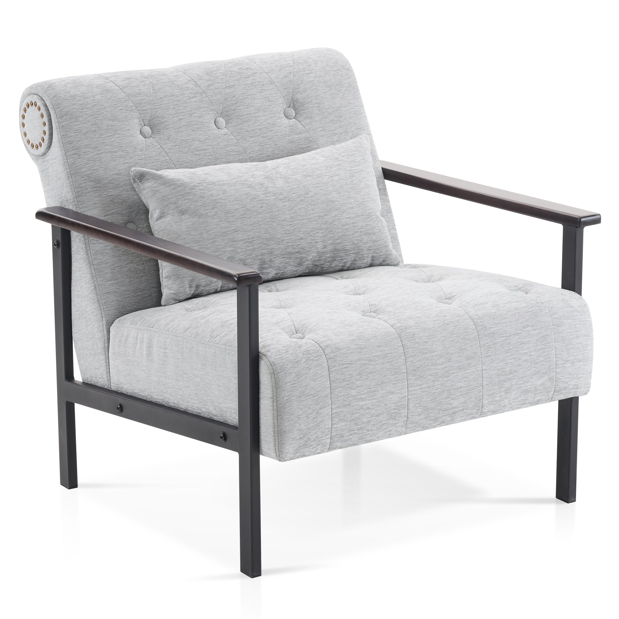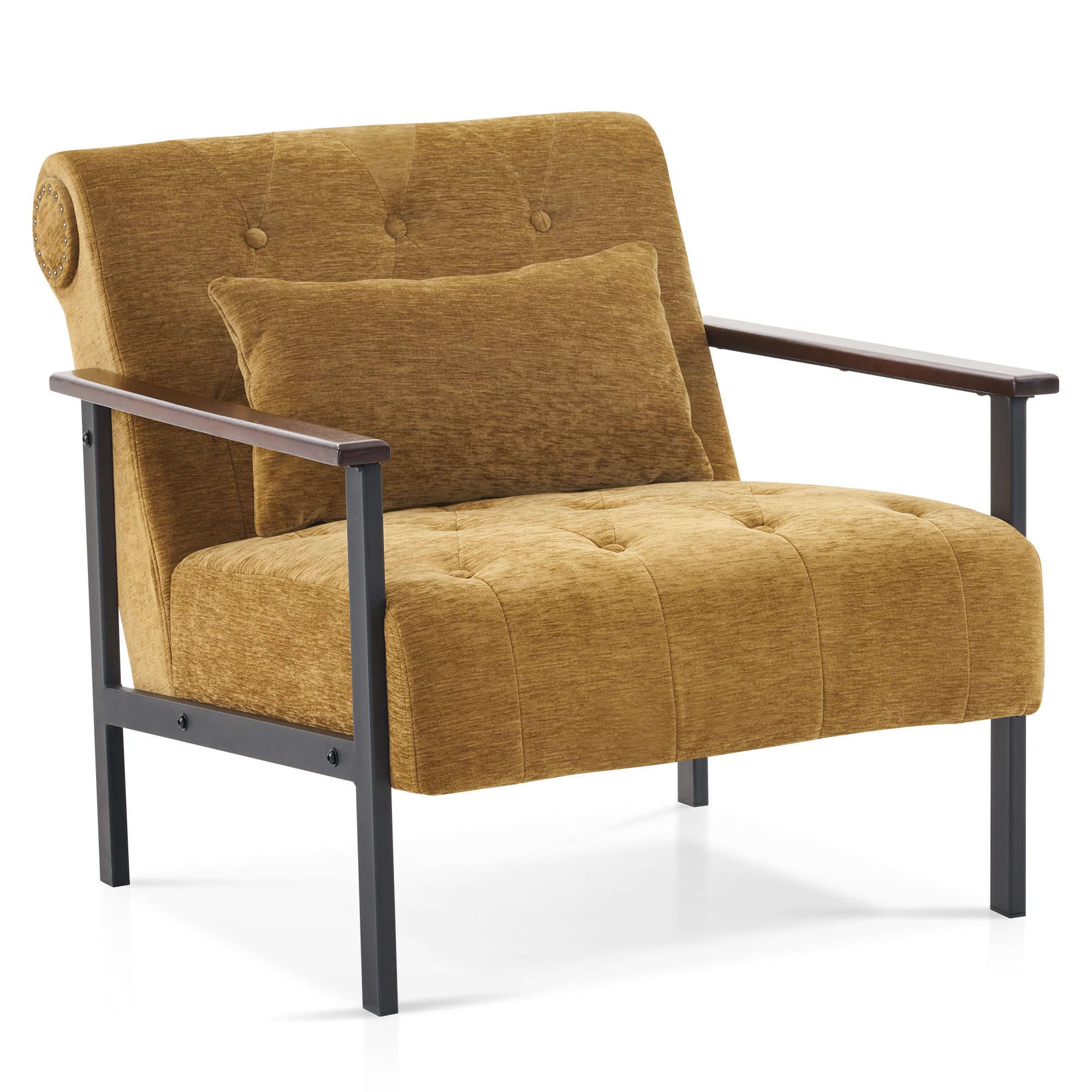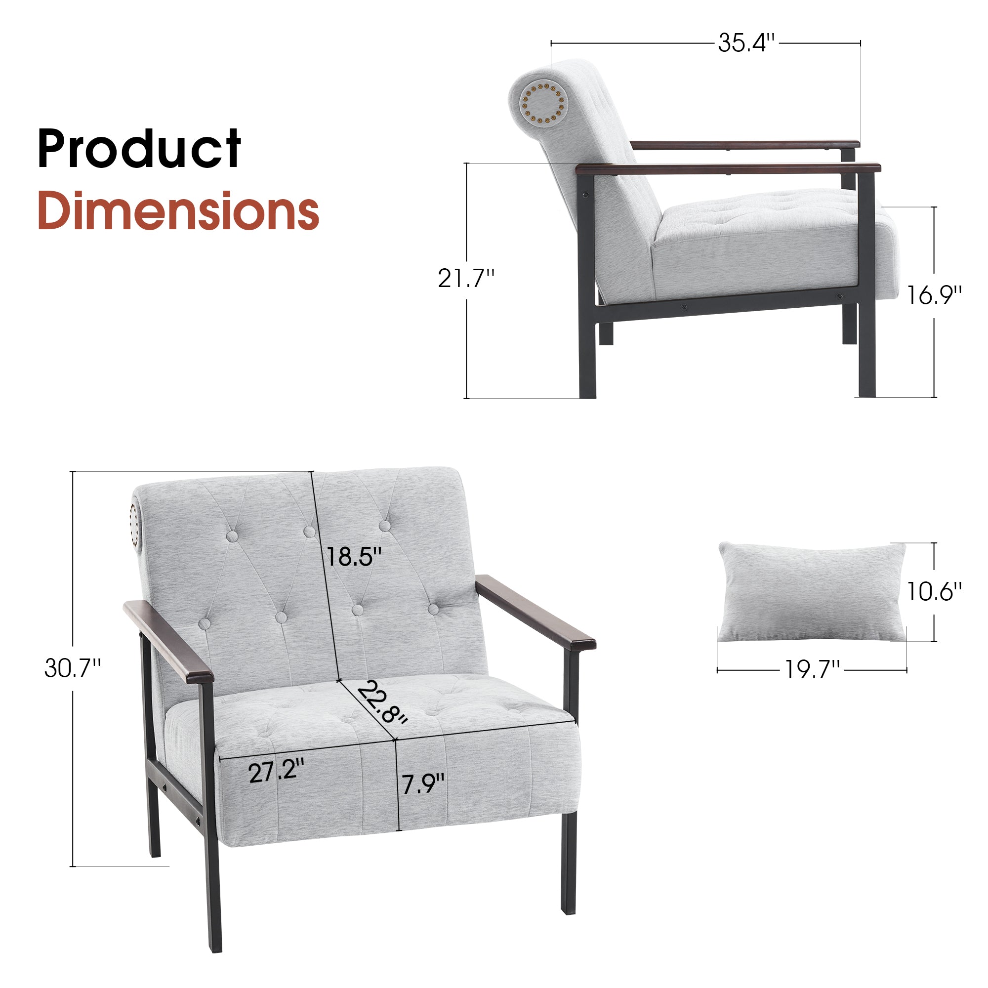 - [Classic Style] The color of chenille fabric and wooden armrests have a retro and stylish look, allowing the accent chair to blend well with a variety of home decor styles. This modern chair perfectly matches your living room, bedroom, office, reading room, dining room, sun room or reception area, creating a corner to relax in causal settings or formal areas.