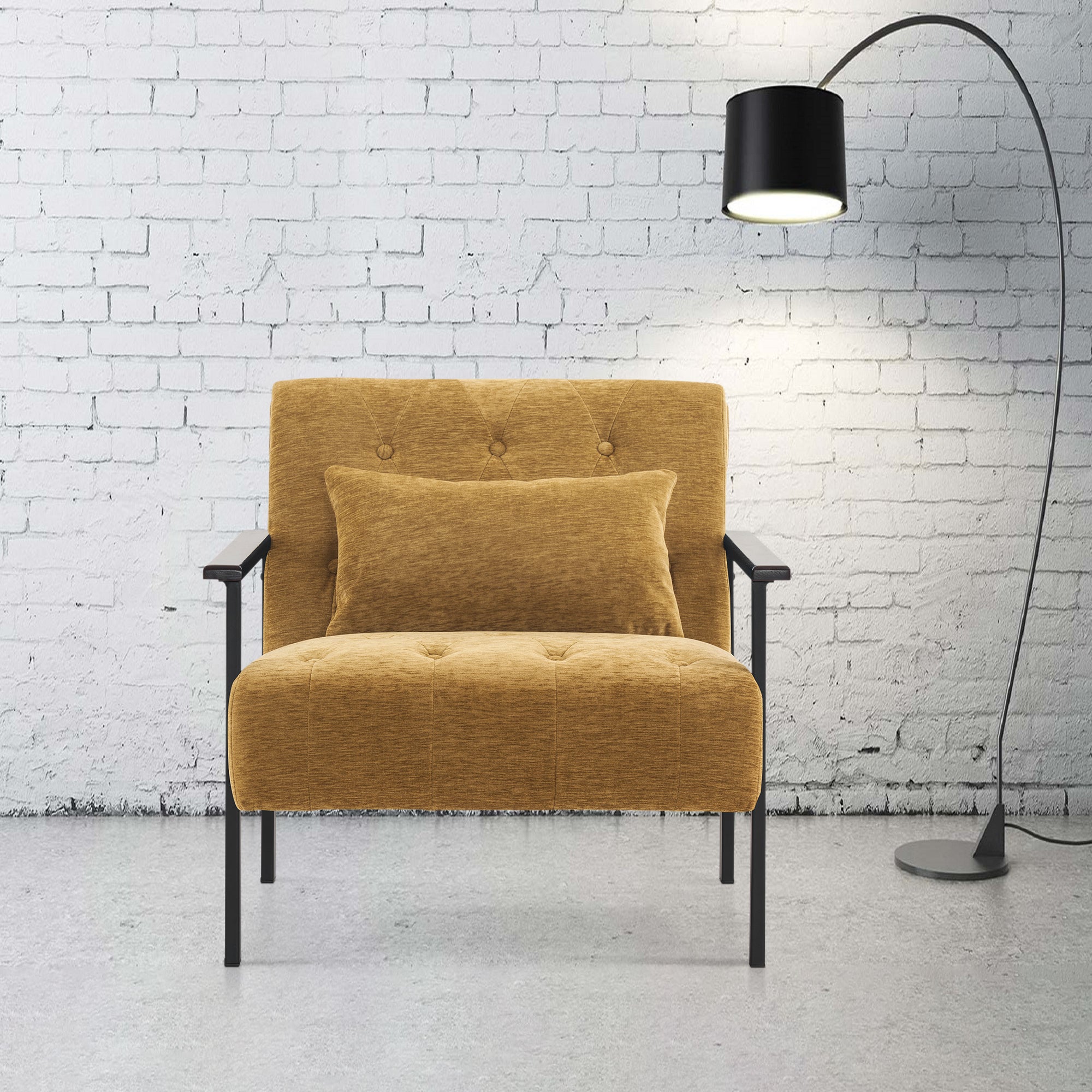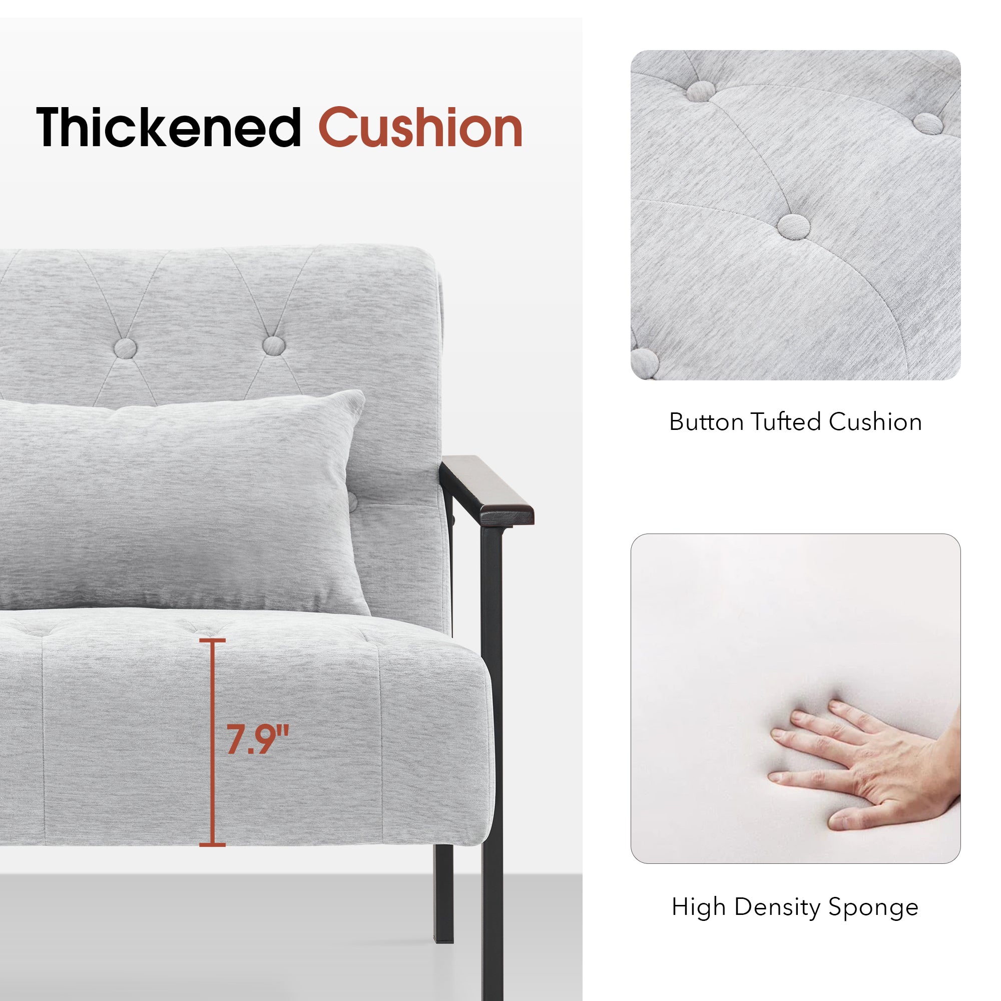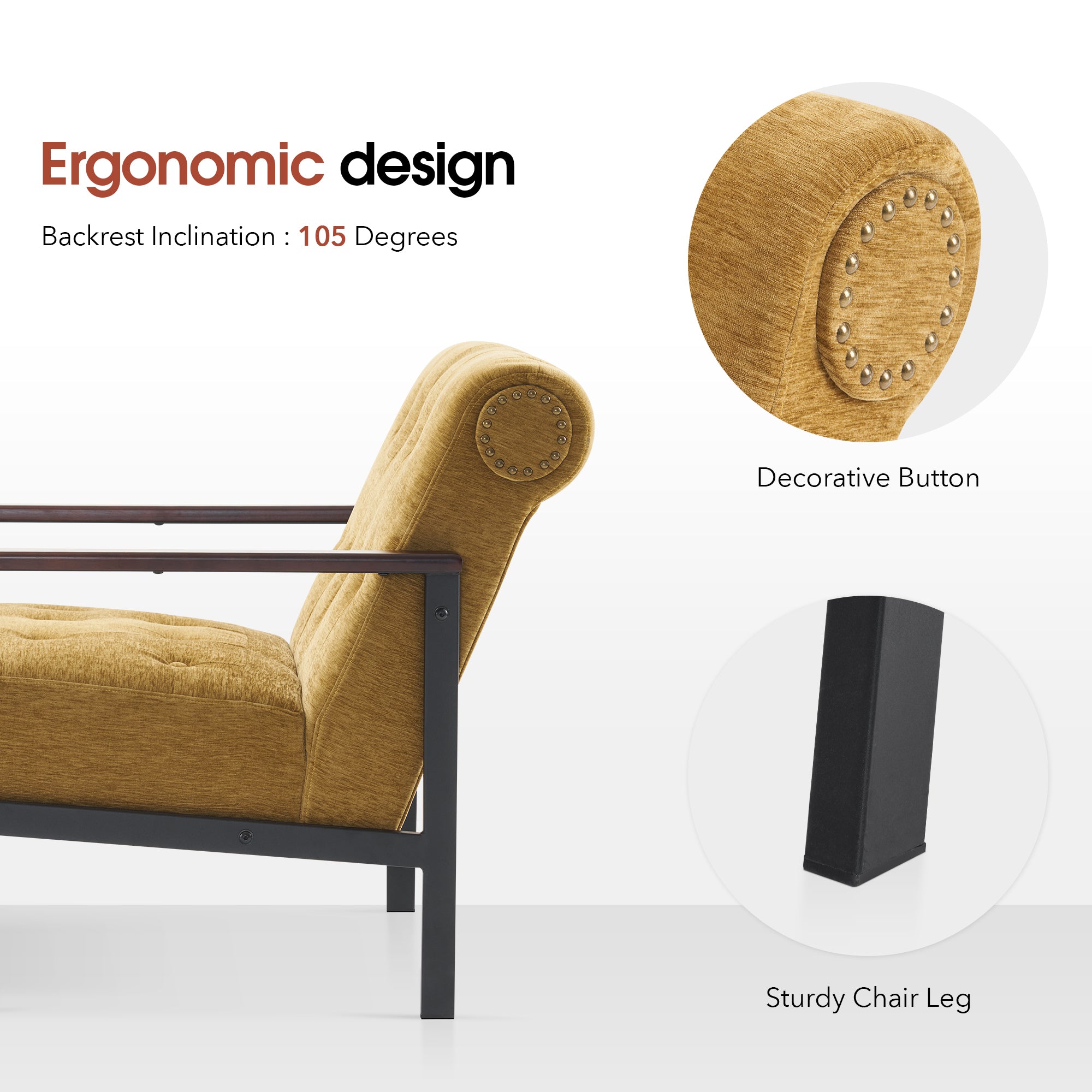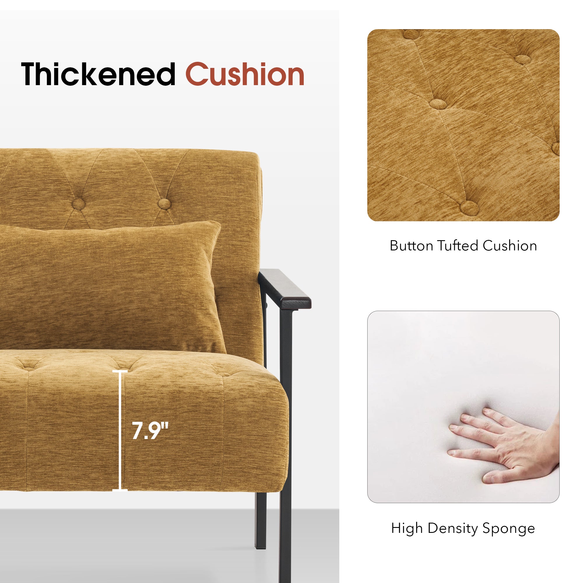 - [Luxury Upholstery] The solid wood frame and arms rest upon durable iron legs. Generously filled cushions are upholstered in high-quality chenille fabric, providing you with a comfy seating experience.