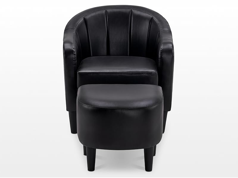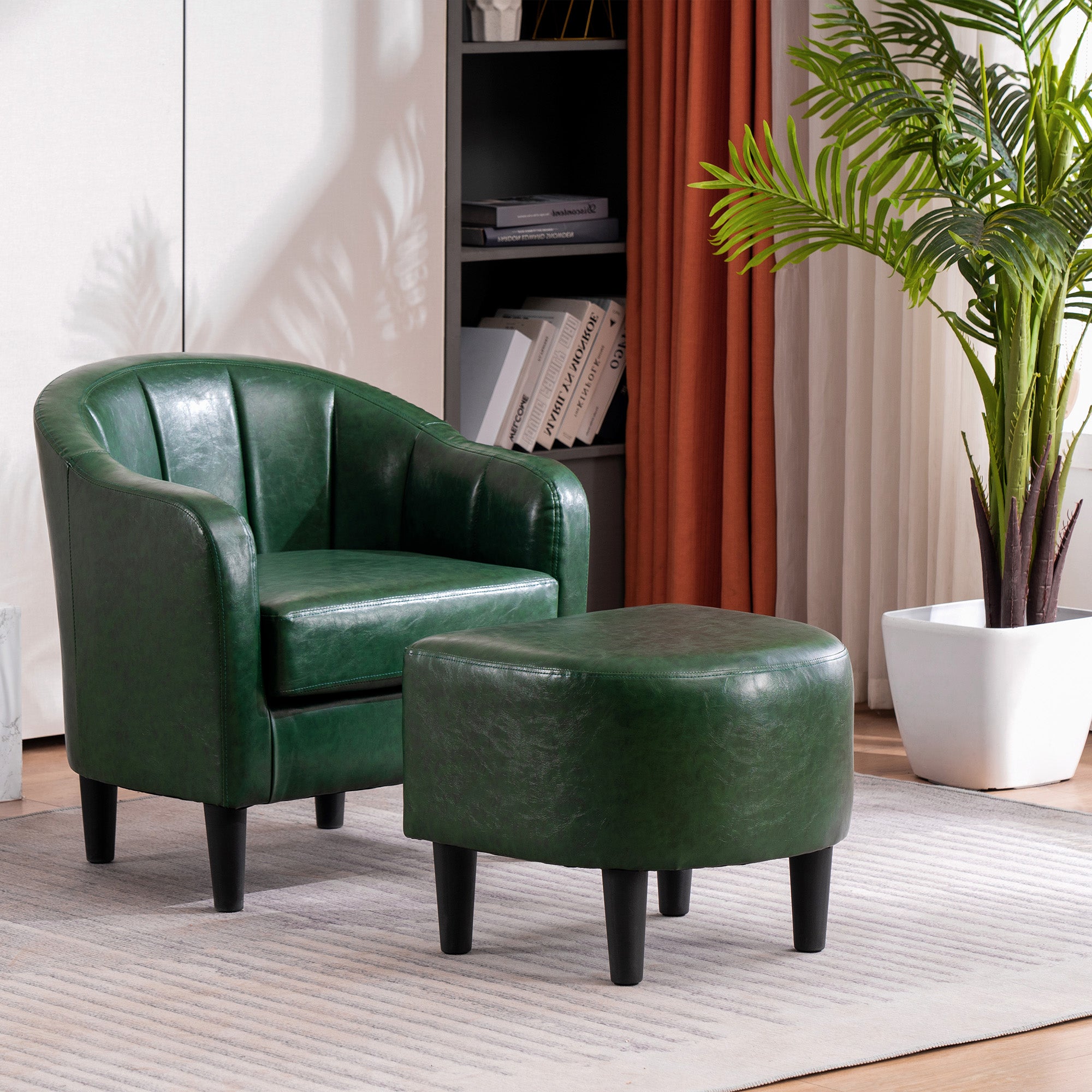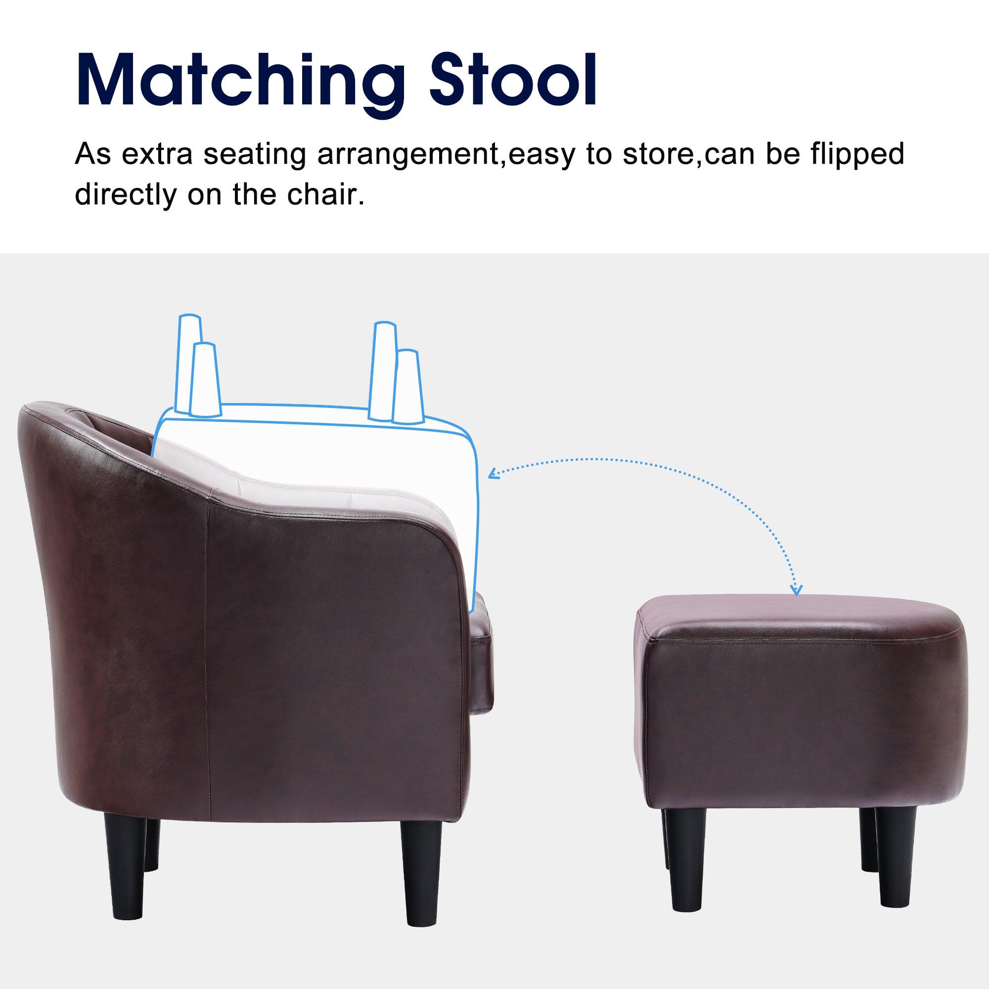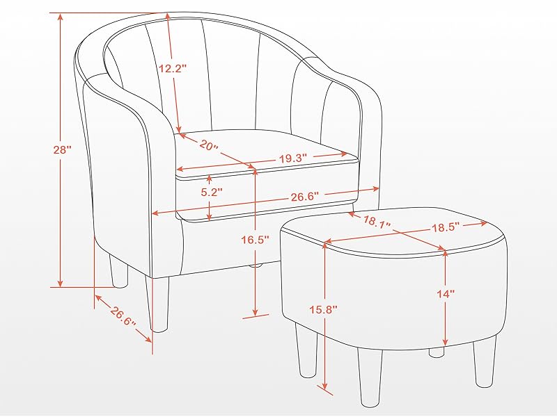 - Excellent Structure Tub style chair backrest structure design. Perfectly integrates the armrest curve that is more suitable for the human arm, making the whole chair more wrapped. The barrel chair and matching footstool bring stylish and chic decoration to your room.