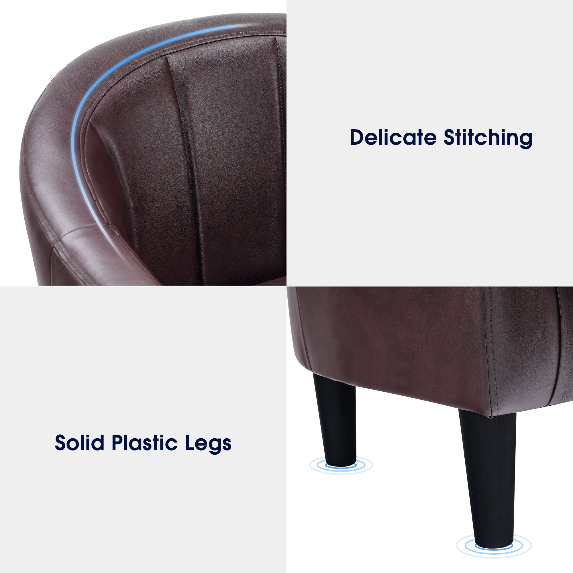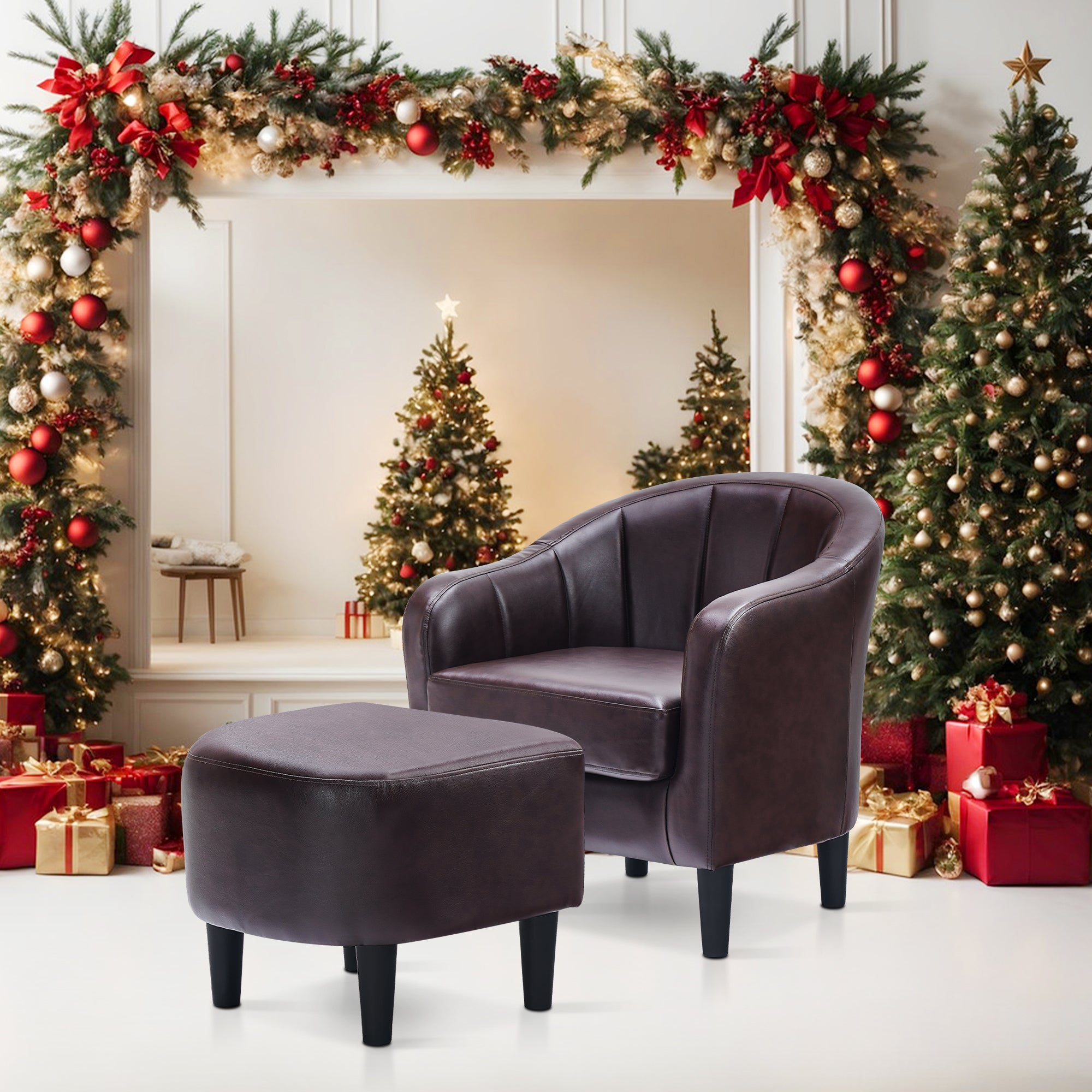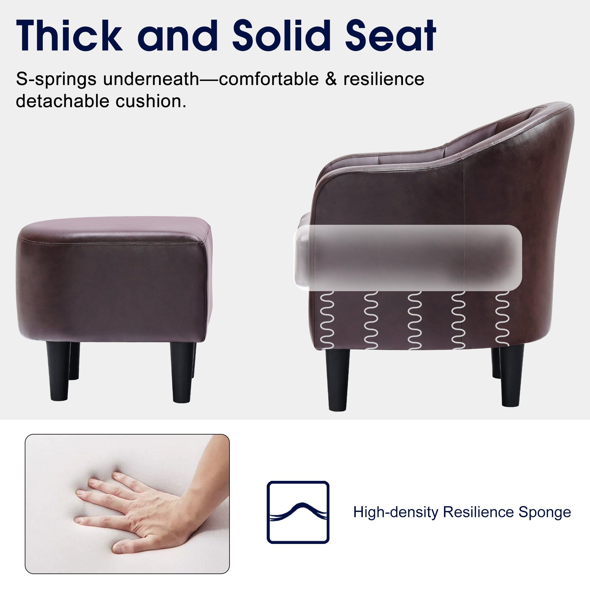 - Excellent Structure Tub style chair backrest structure design. Perfectly integrates the armrest curve that is more suitable for the human arm, making the whole chair more wrapped. The barrel chair and matching footstool bring stylish and chic decoration to your room.