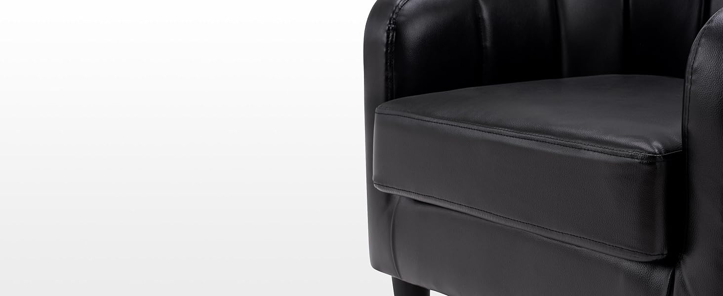 - High-quality Leather This modern and comfortable living room chair is completely covered with high-quality PU leather, durable, easy to maintain, and elegant in style. The 5.2-inch-thick seat cushion is removable for easy cleaning. Its good water resistance allows you not to worry about spilled beverages. Once soiled, just wipe it with a damp cloth.
