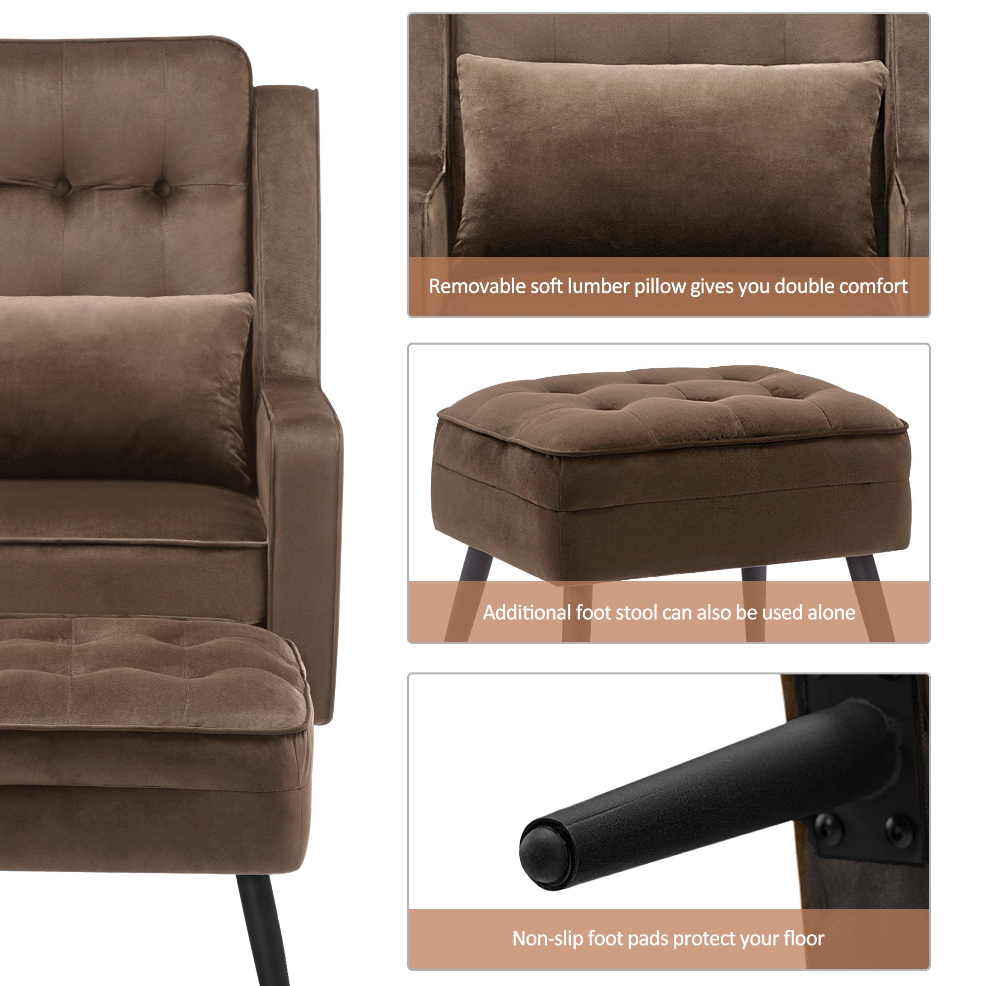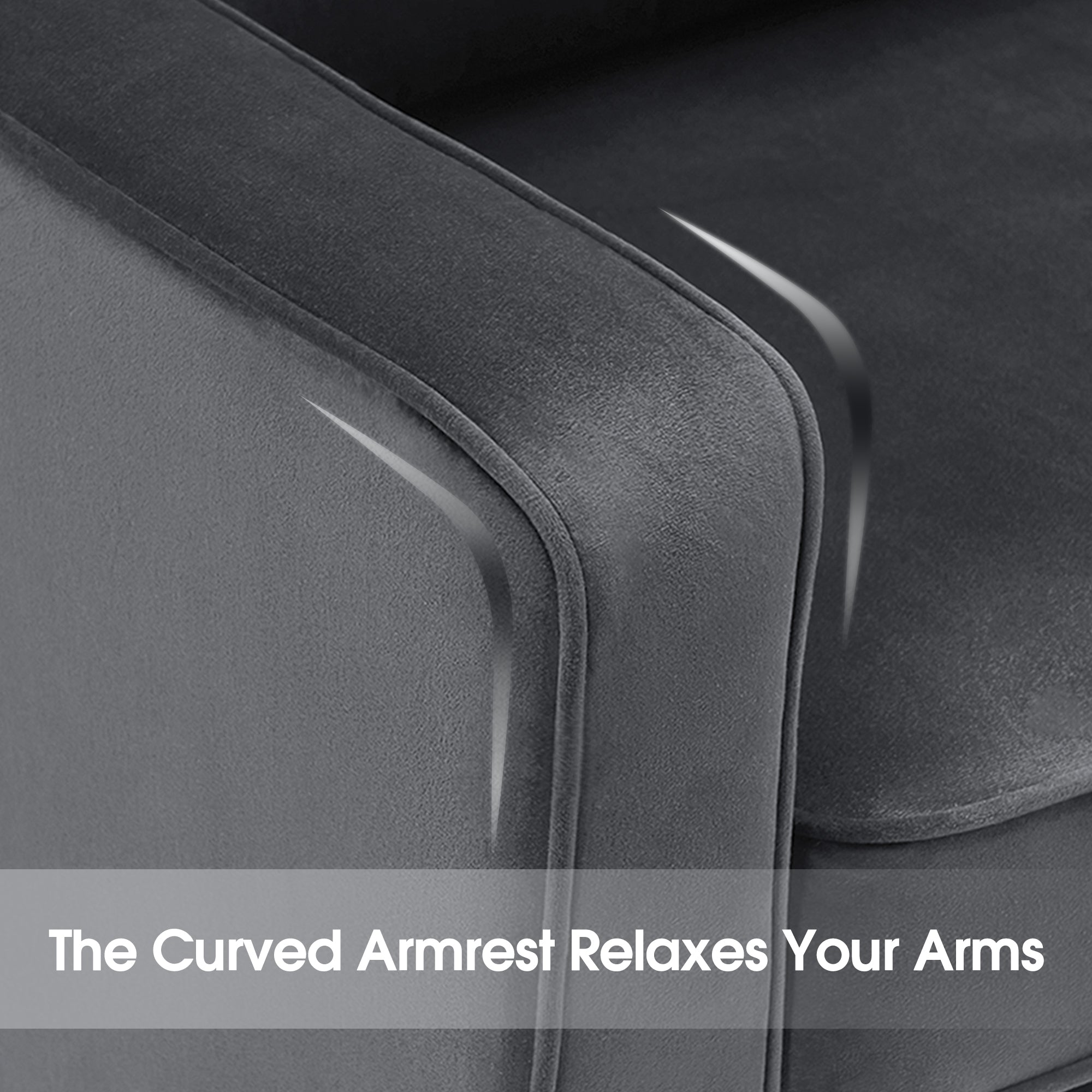 - [Durable Frame and Soft Velvet Fabric] The arm chair is made of solid iron frame and soft sponges. The cover is soft velvet fabric, which helps to show off the color of the fabric. Legs made of solid iron are not easily damaged and support the stability of the sofa without rocking. This chair can hold up to 300lbs of weight.