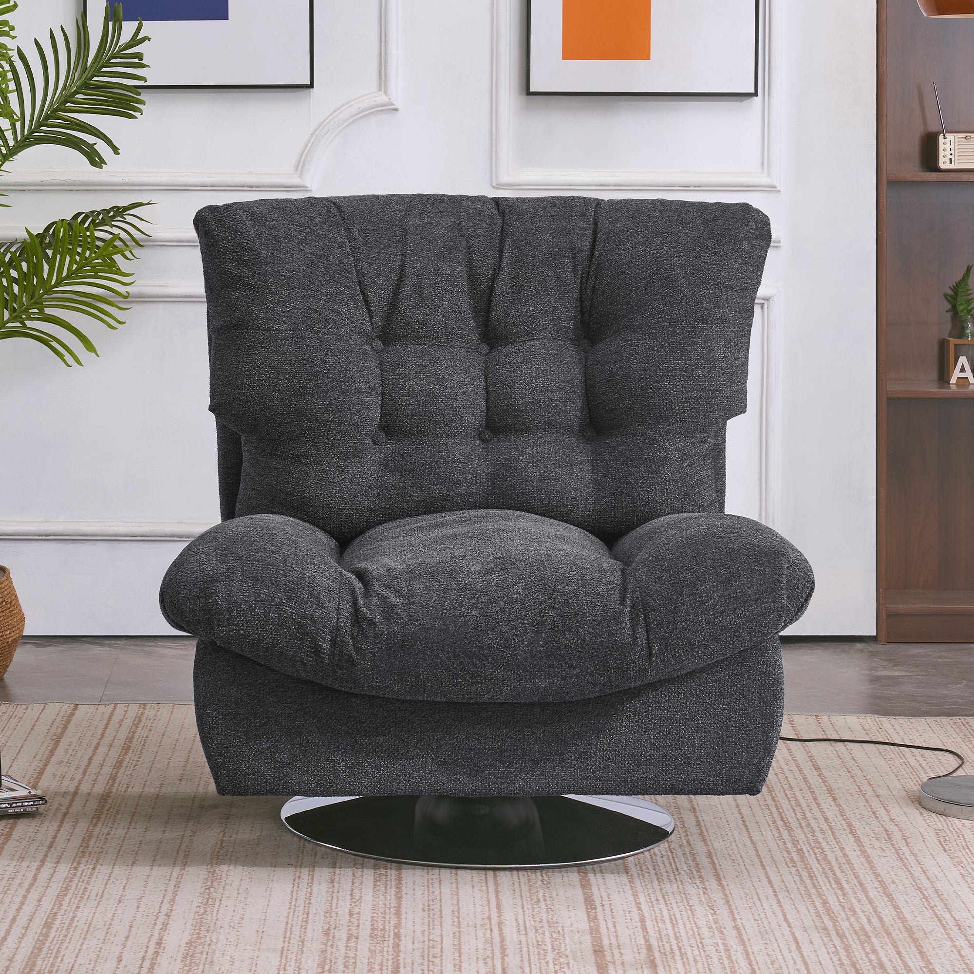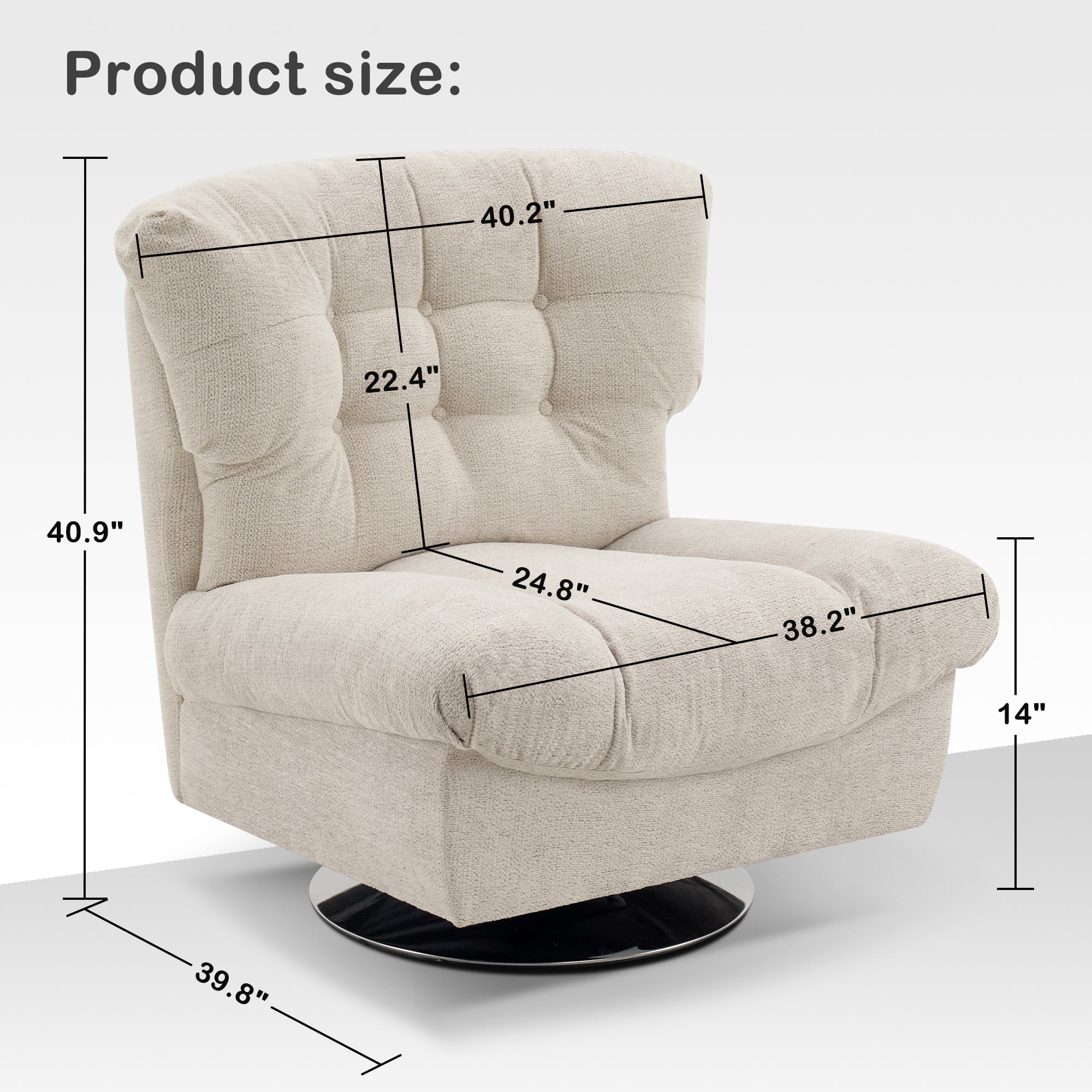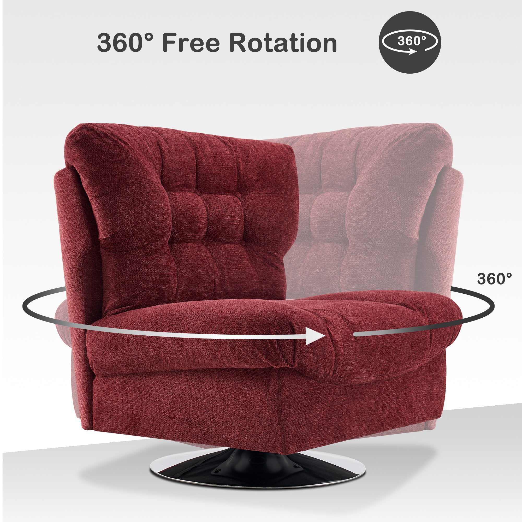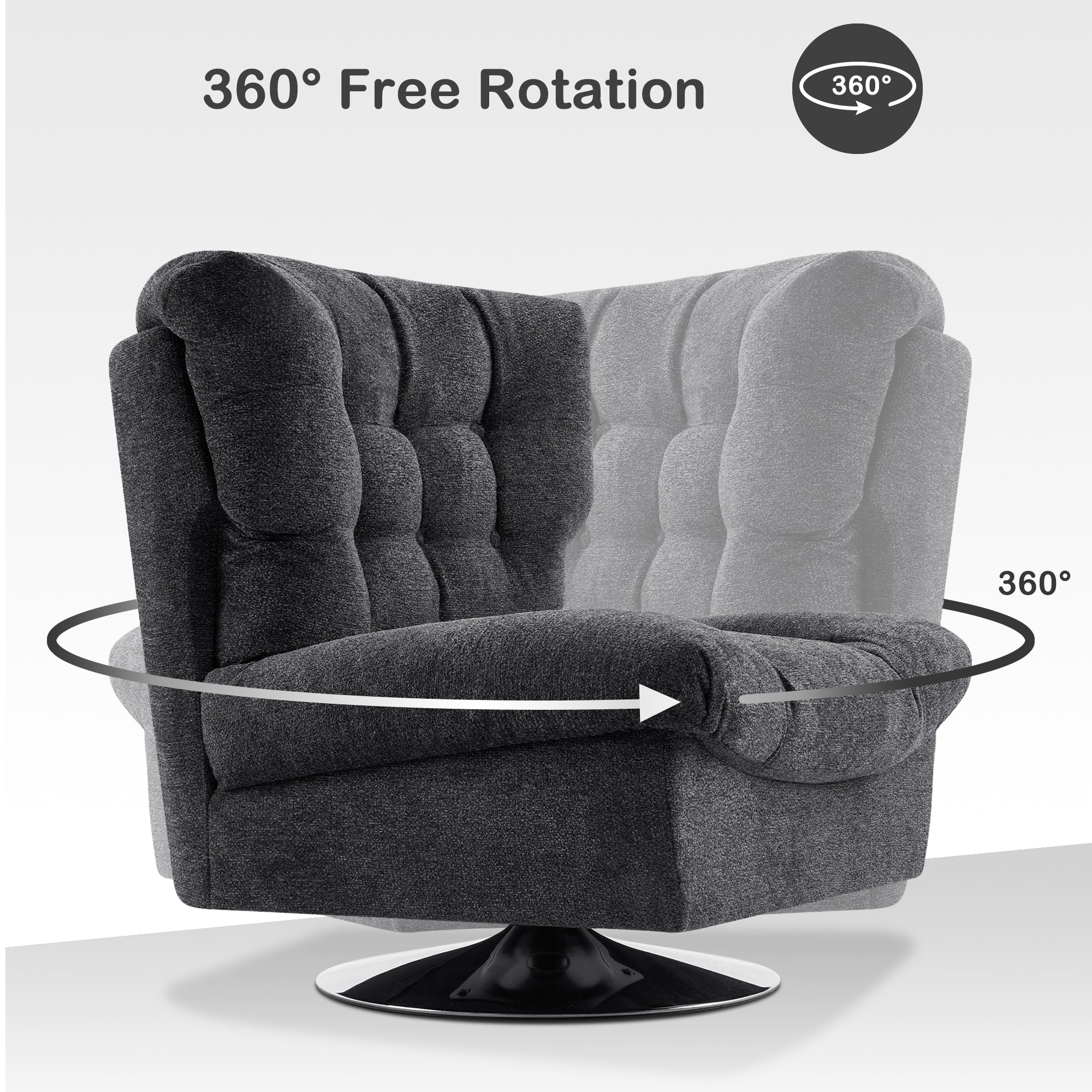 - [360-degree Spinning] Set on a spin axis, this swivel chair spins a full 360 degrees. You can turn a full circle smoothly and easily, without any wobble and likelihood of falling form it. With its rotation mechanism, this convenient chair is suitable for a conversation piece, lounging with your friends or simply enjoy yourselves. The hidden swivel mechanism lets you go from TV viewing to looking into the distance in one swoop.