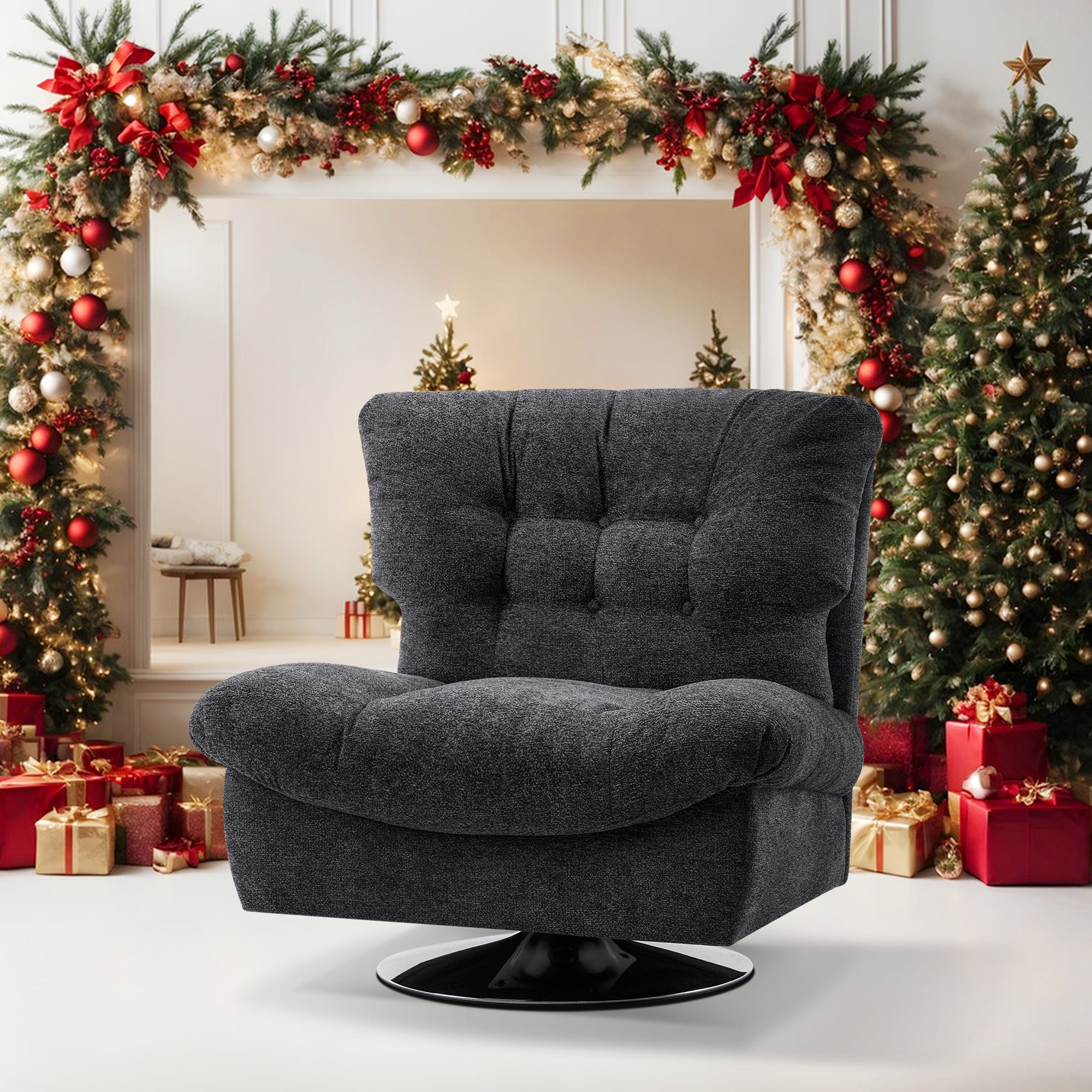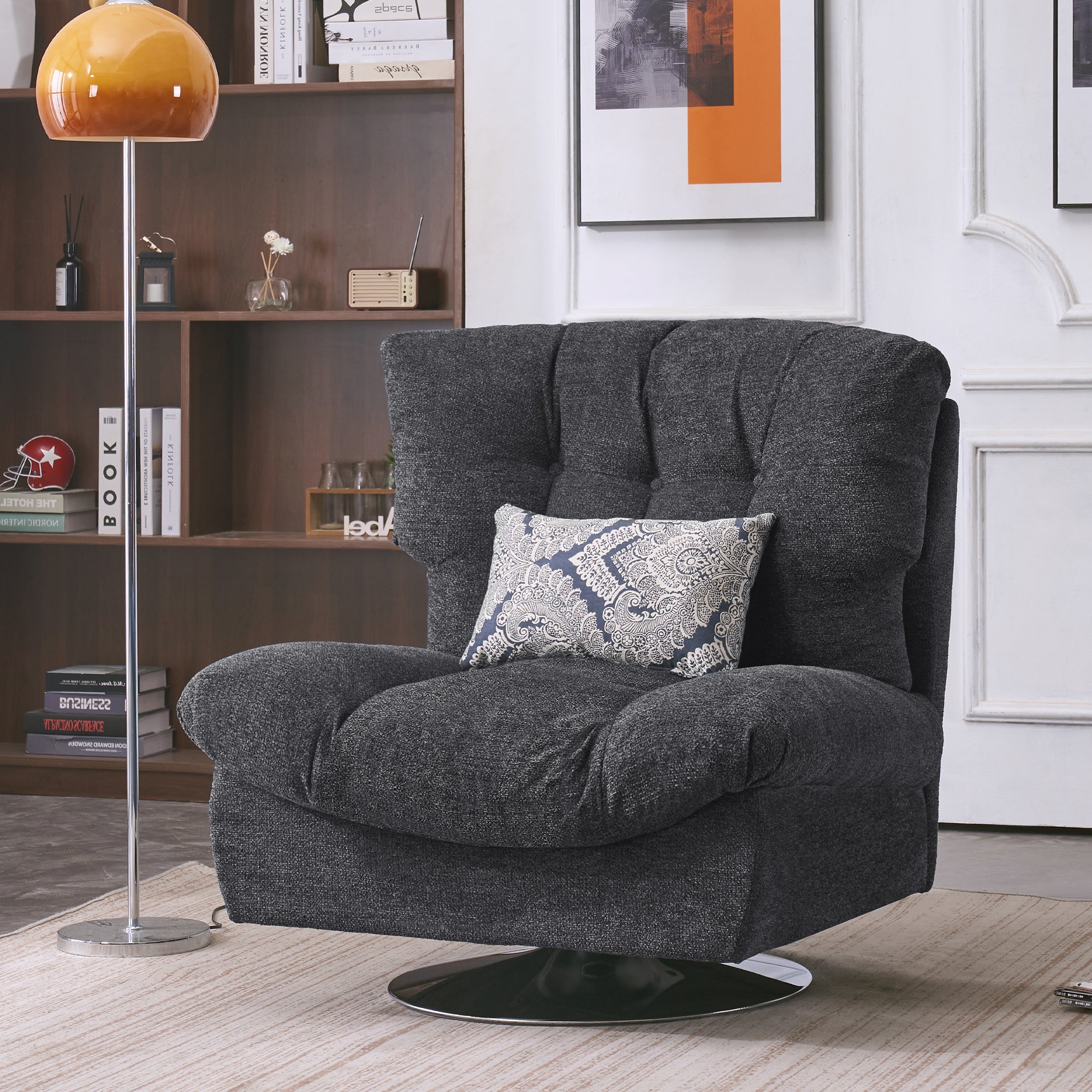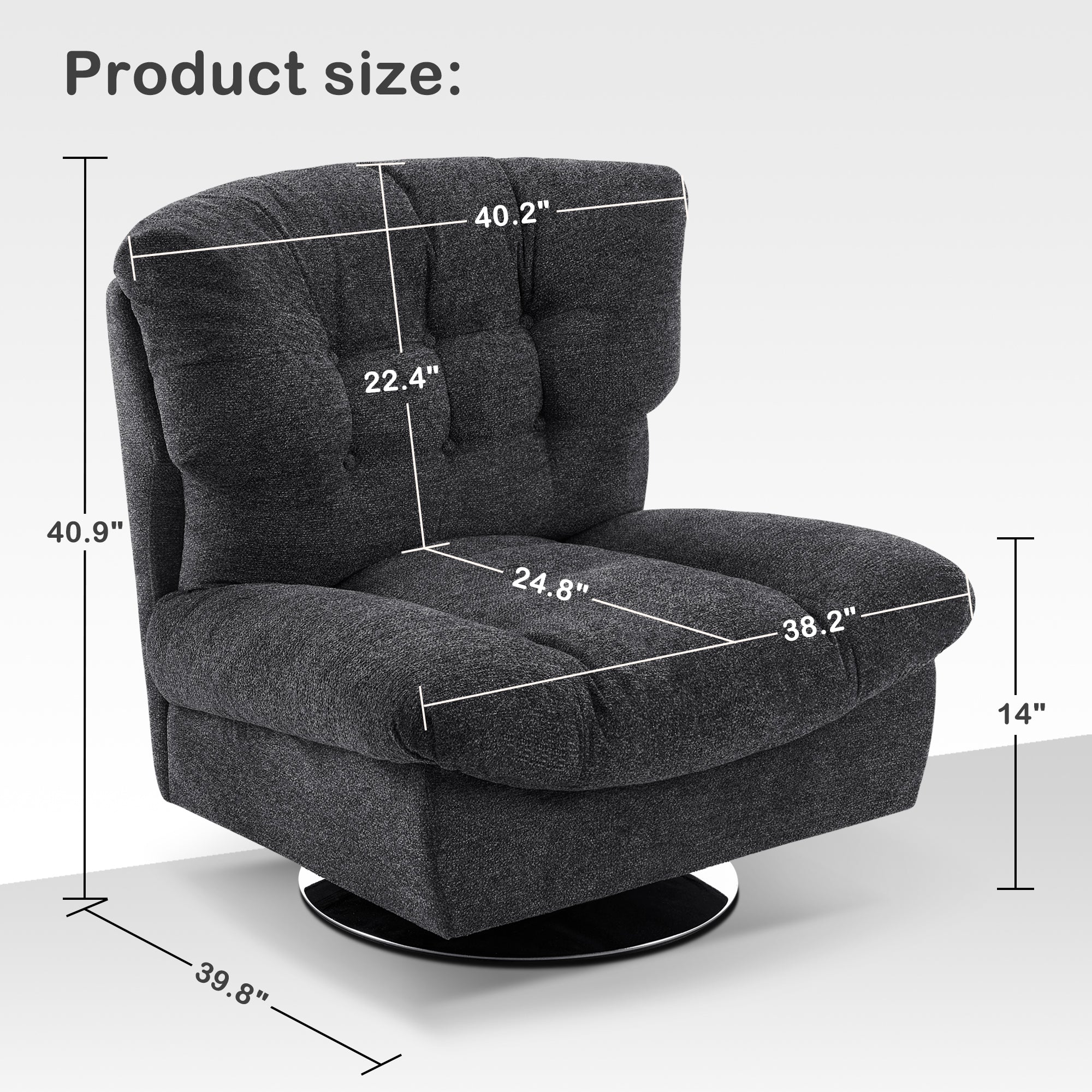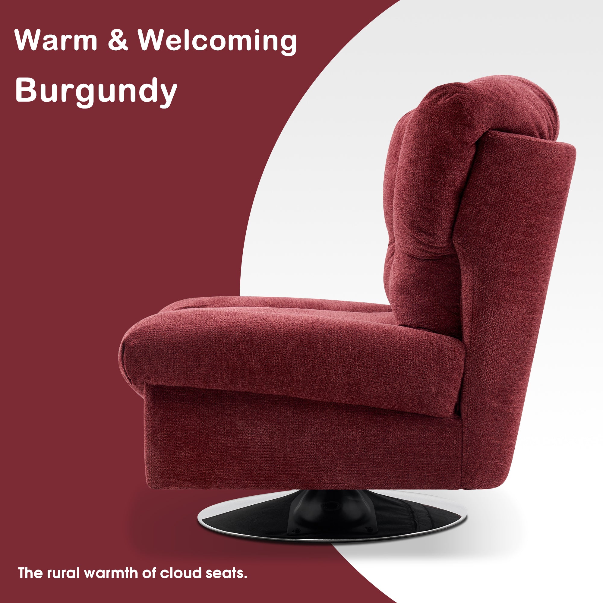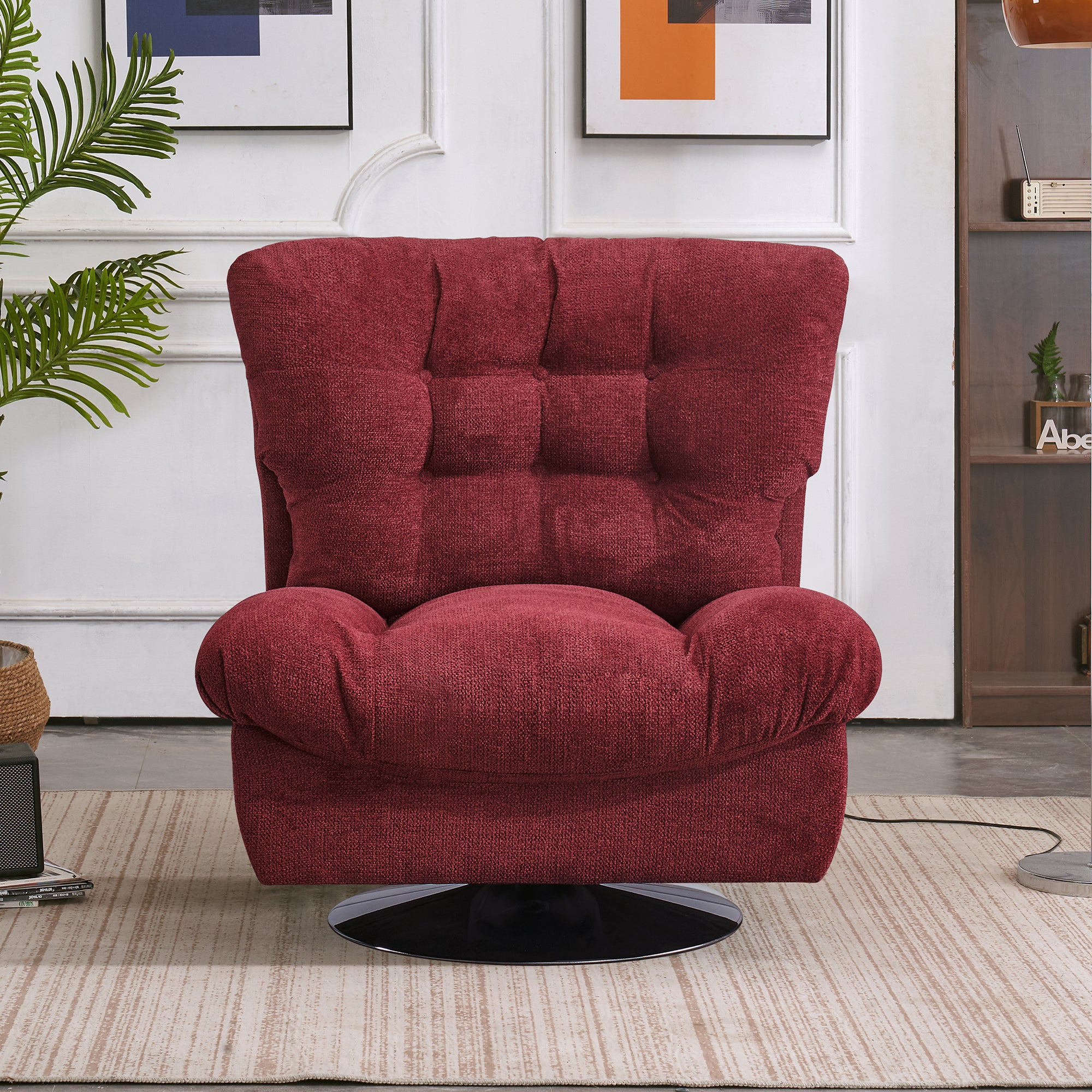- [360-degree Spinning] Set on a spin axis, this swivel chair spins a full 360 degrees. You can turn a full circle smoothly and easily, without any wobble and likelihood of falling form it. With its rotation mechanism, this convenient chair is suitable for a conversation piece, lounging with your friends or simply enjoy yourselves. The hidden swivel mechanism lets you go from TV viewing to looking into the distance in one swoop.