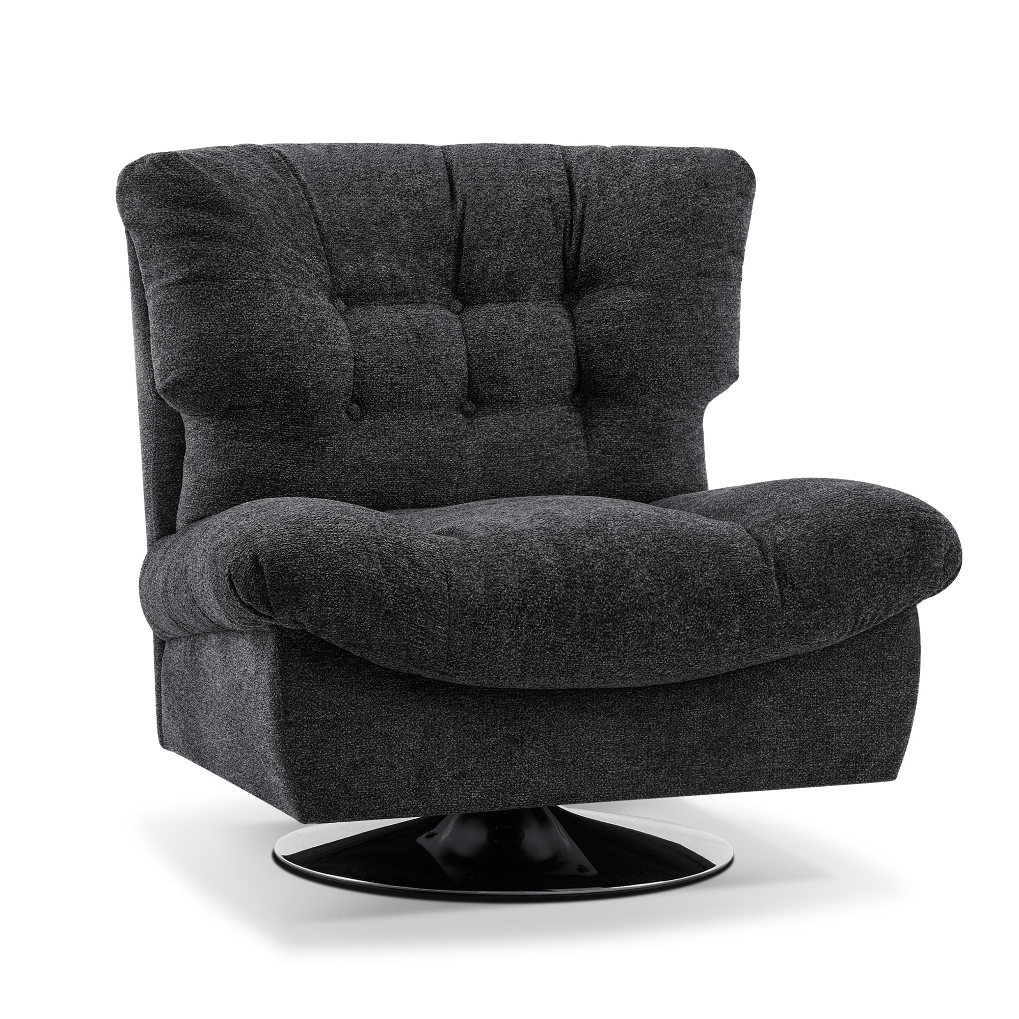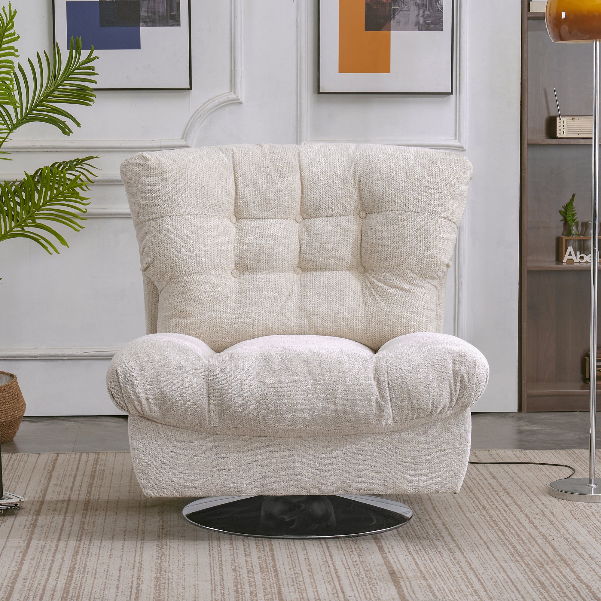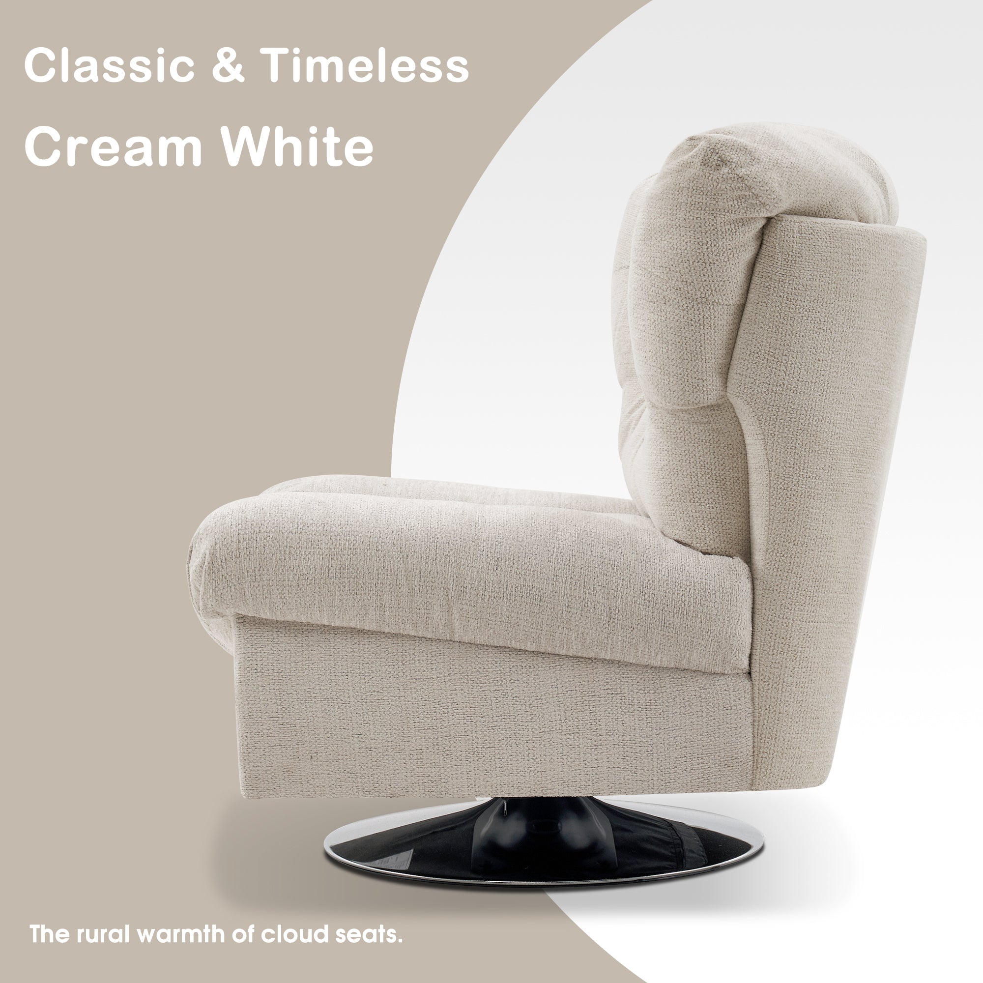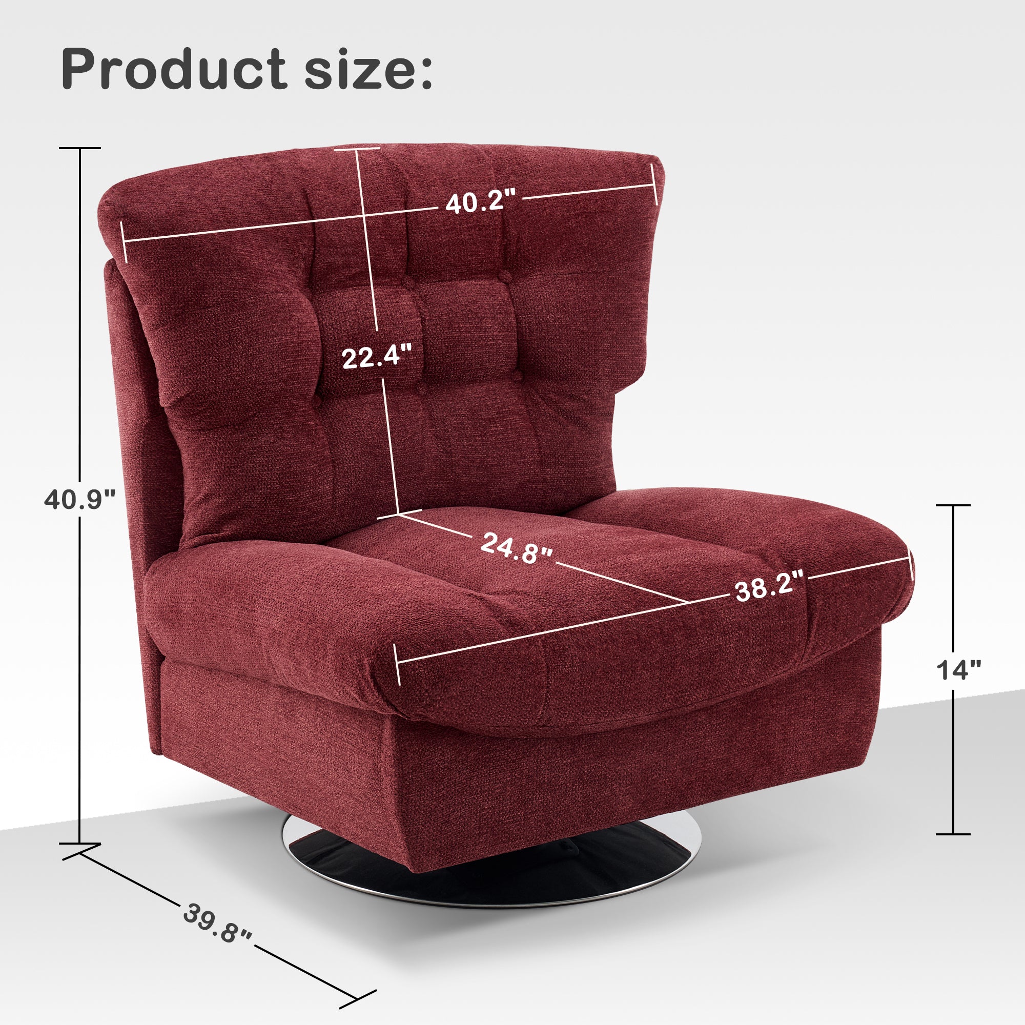- [360-degree Spinning] Set on a spin axis, this swivel chair spins a full 360 degrees. You can turn a full circle smoothly and easily, without any wobble and likelihood of falling form it. With its rotation mechanism, this convenient chair is suitable for a conversation piece, lounging with your friends or simply enjoy yourselves. The hidden swivel mechanism lets you go from TV viewing to looking into the distance in one swoop.