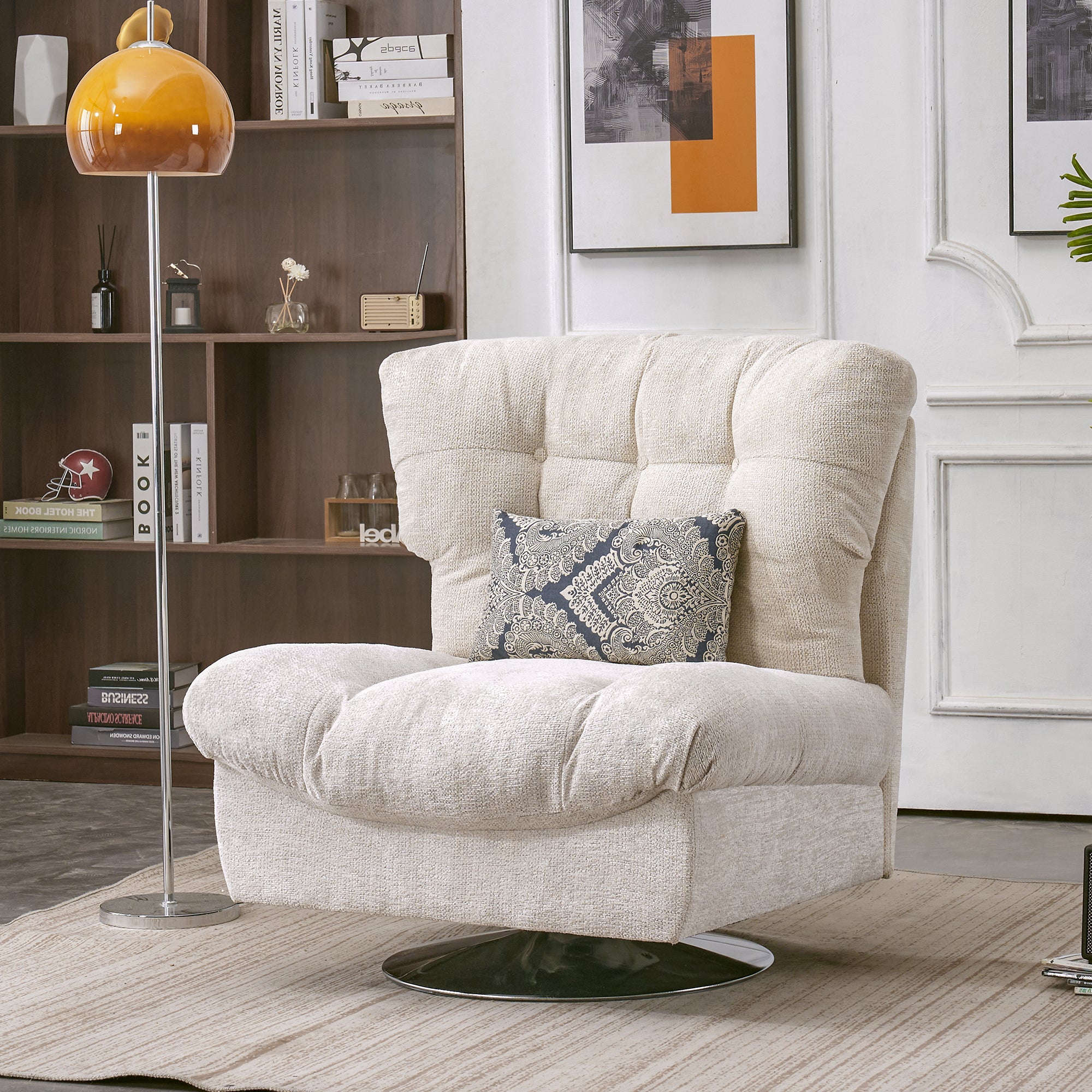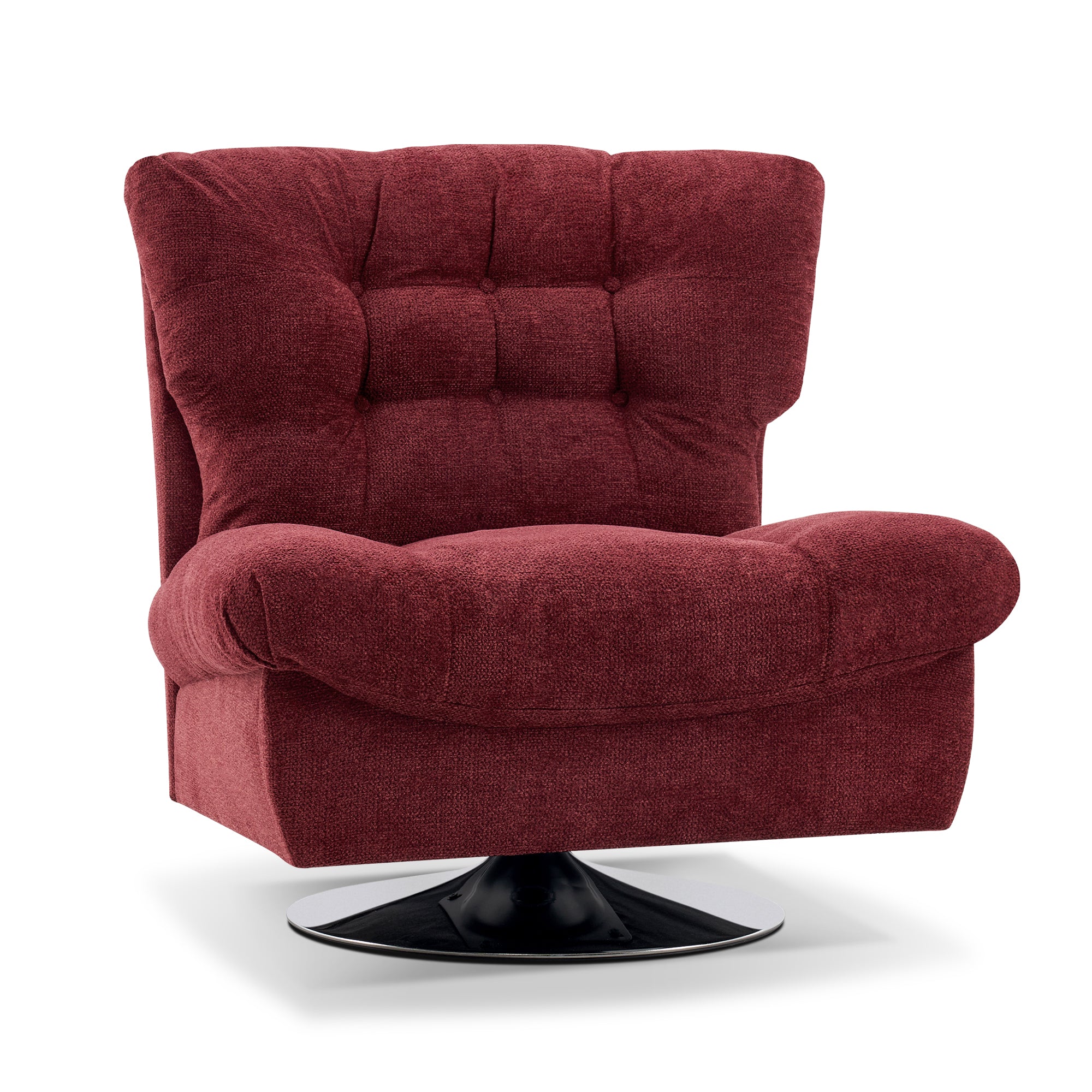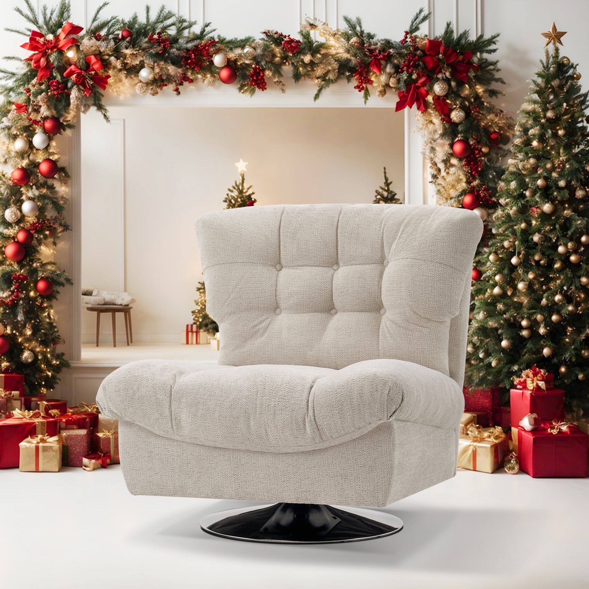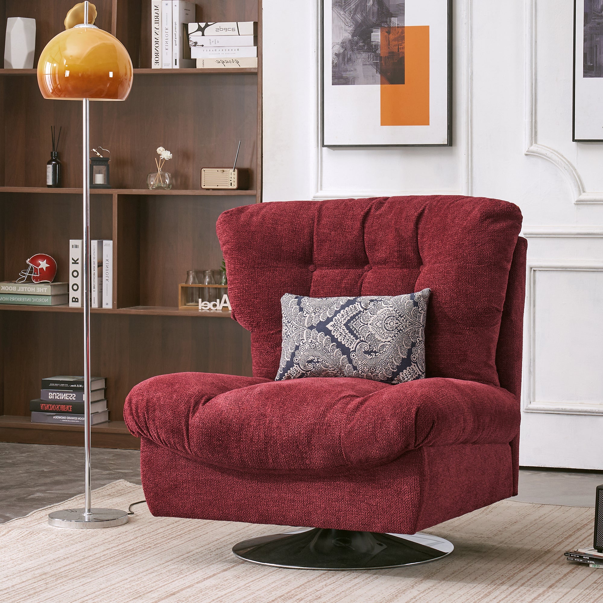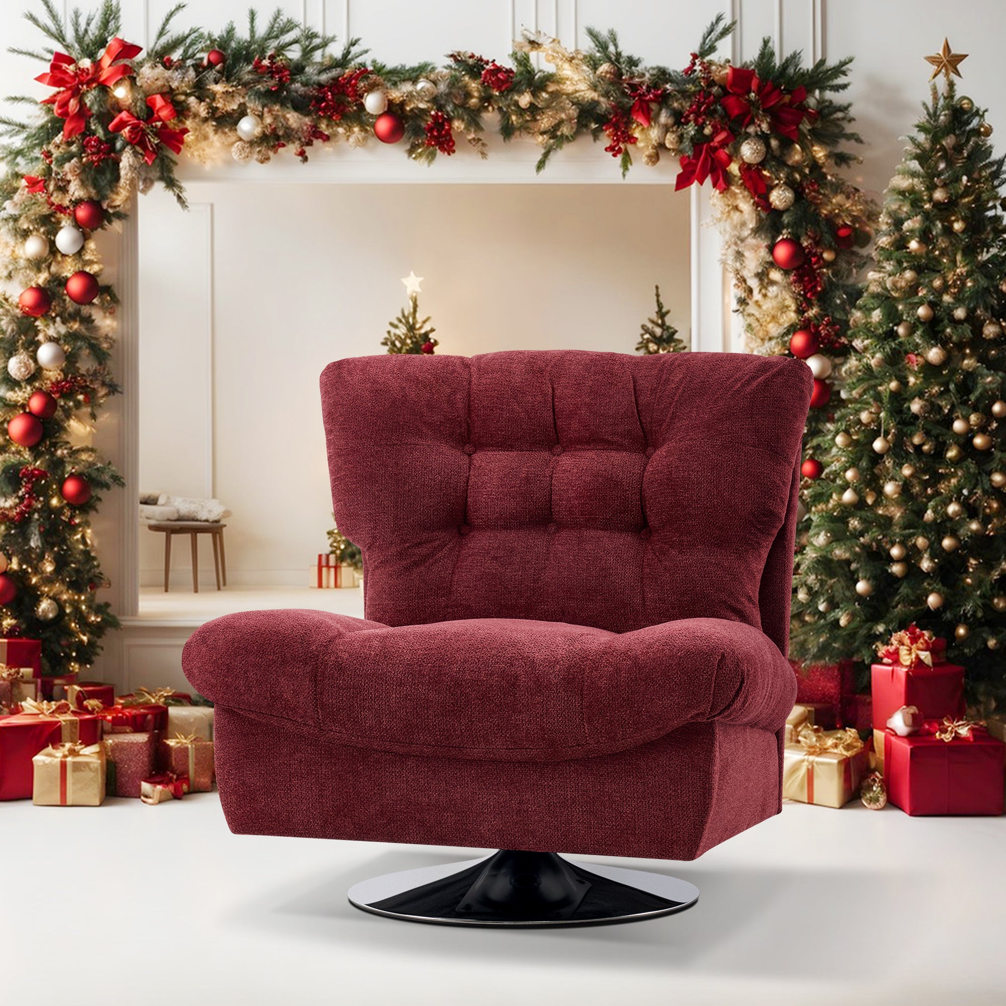 - [360-degree Spinning] Set on a spin axis, this swivel chair spins a full 360 degrees. You can turn a full circle smoothly and easily, without any wobble and likelihood of falling form it. With its rotation mechanism, this convenient chair is suitable for a conversation piece, lounging with your friends or simply enjoy yourselves. The hidden swivel mechanism lets you go from TV viewing to looking into the distance in one swoop.