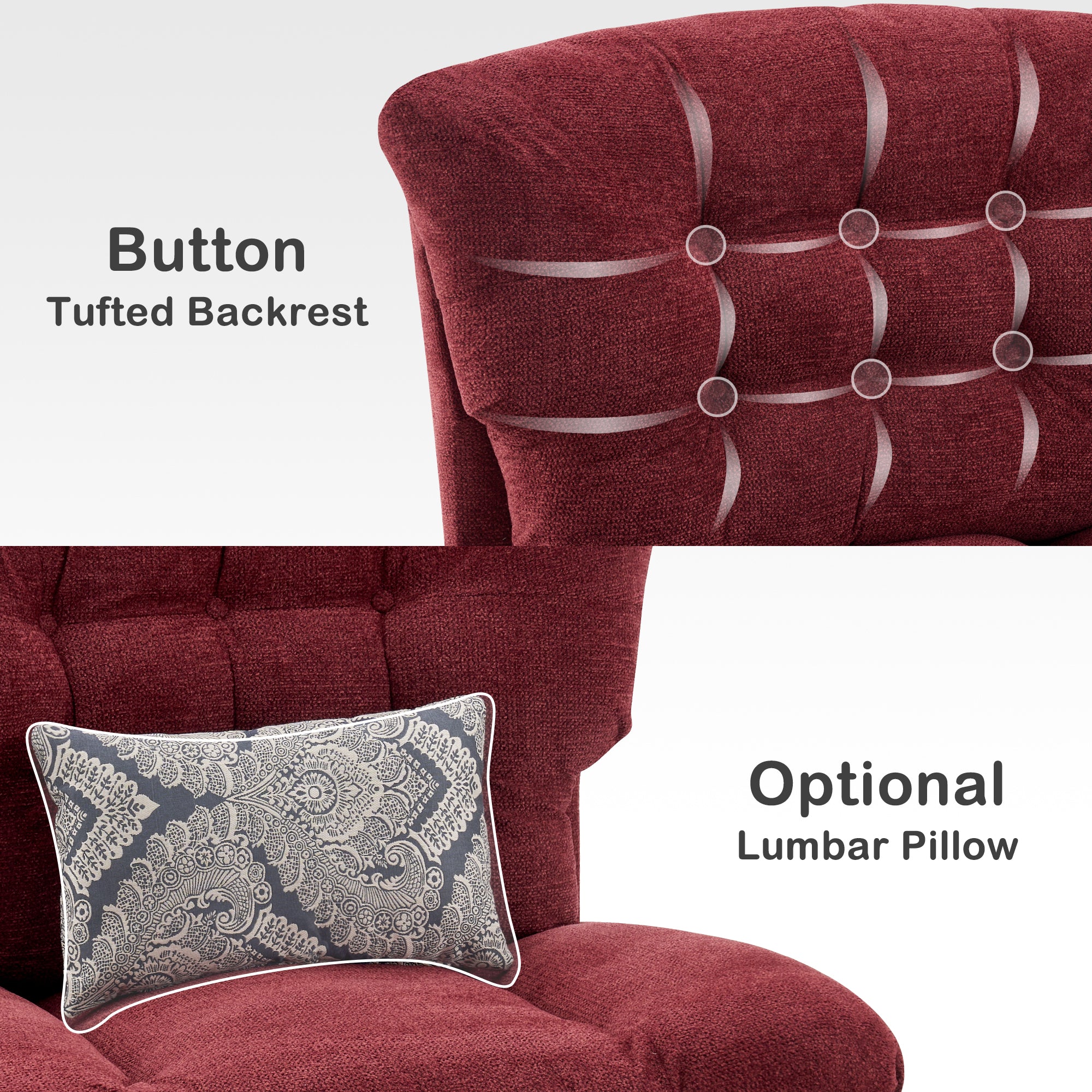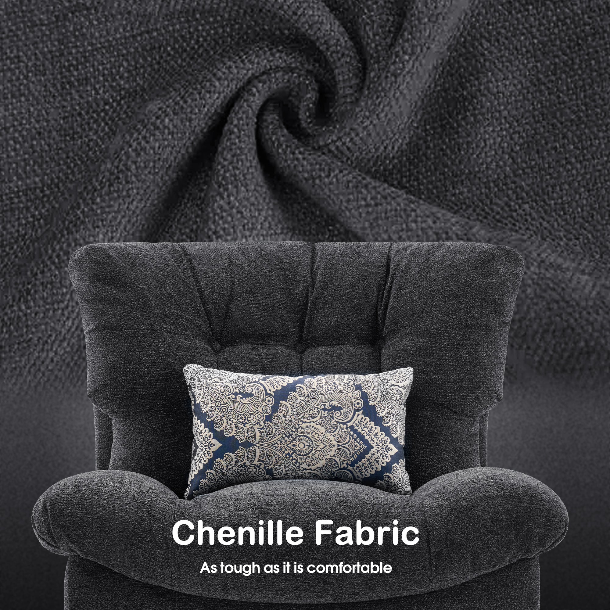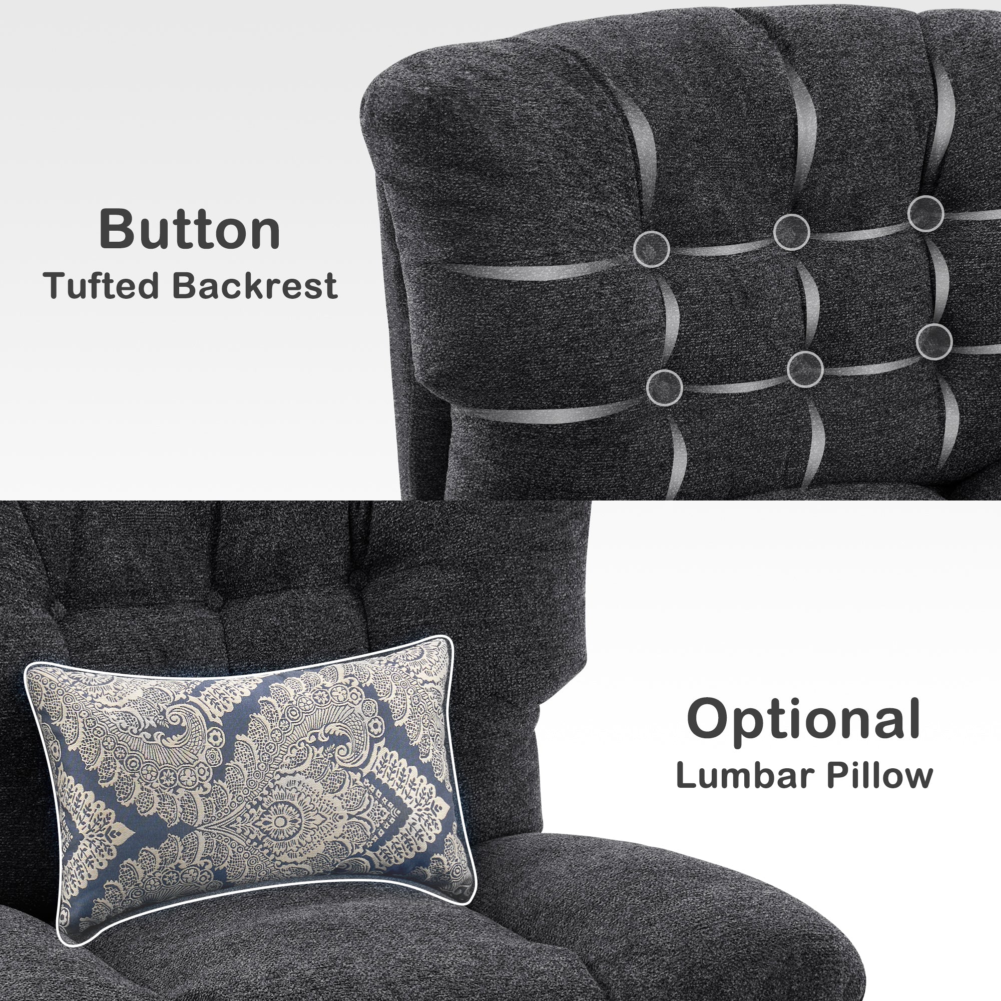 - [Chenille Upholstered & Button Tufting] Upholstered in Chenille fabric, this lounge chair is breathable, soft and durable. Decorative button highlights the delicate and tailored look that accentuates its handicrafts. The grid tufted seat and winged chair back offer just the right mix of a comfortable seat and wraparound back.