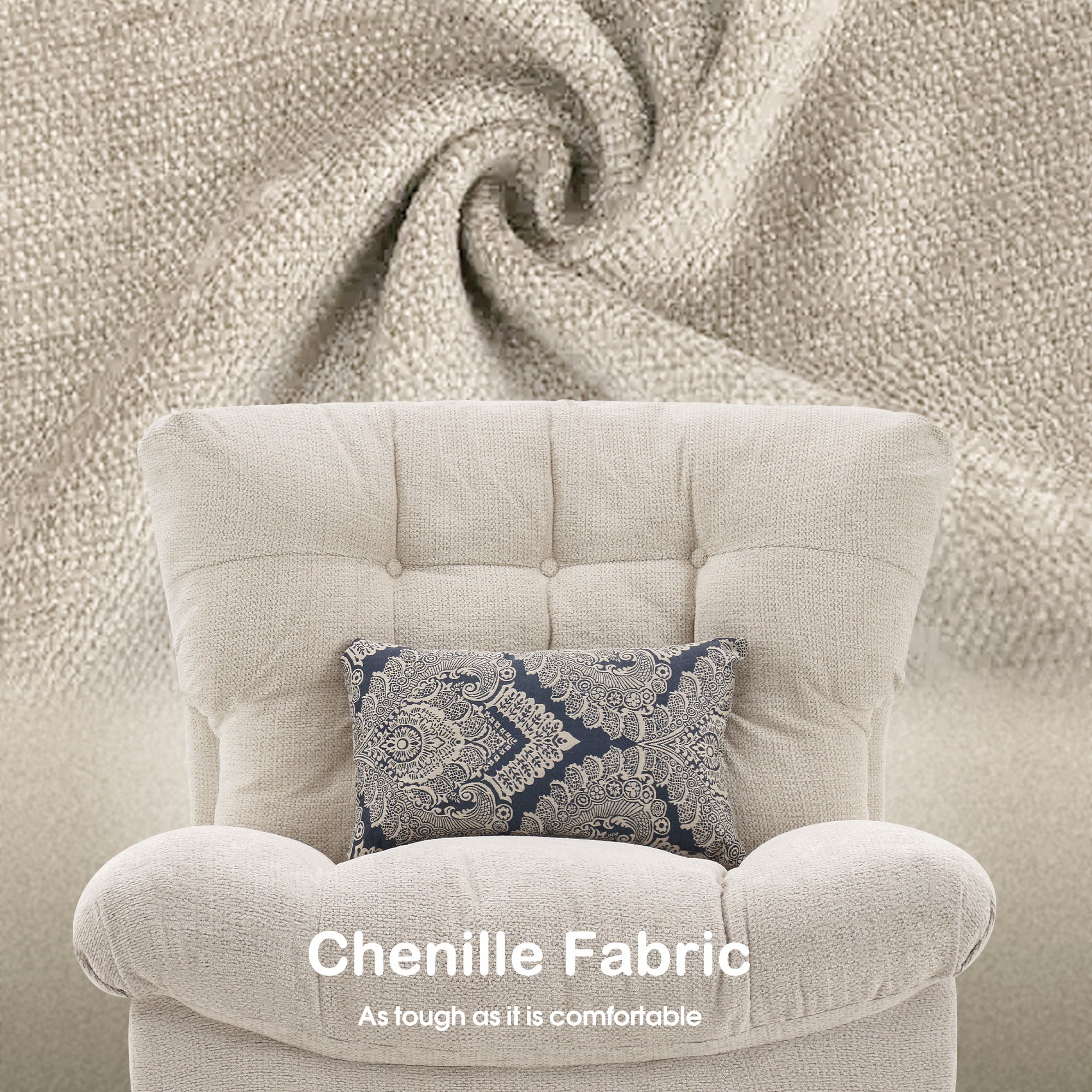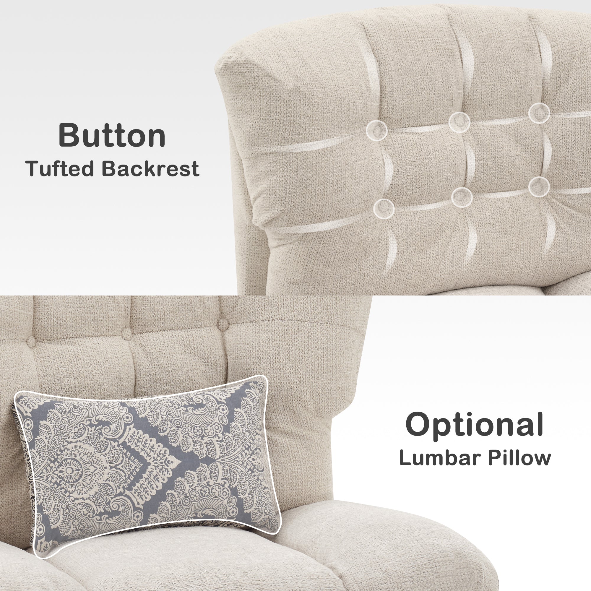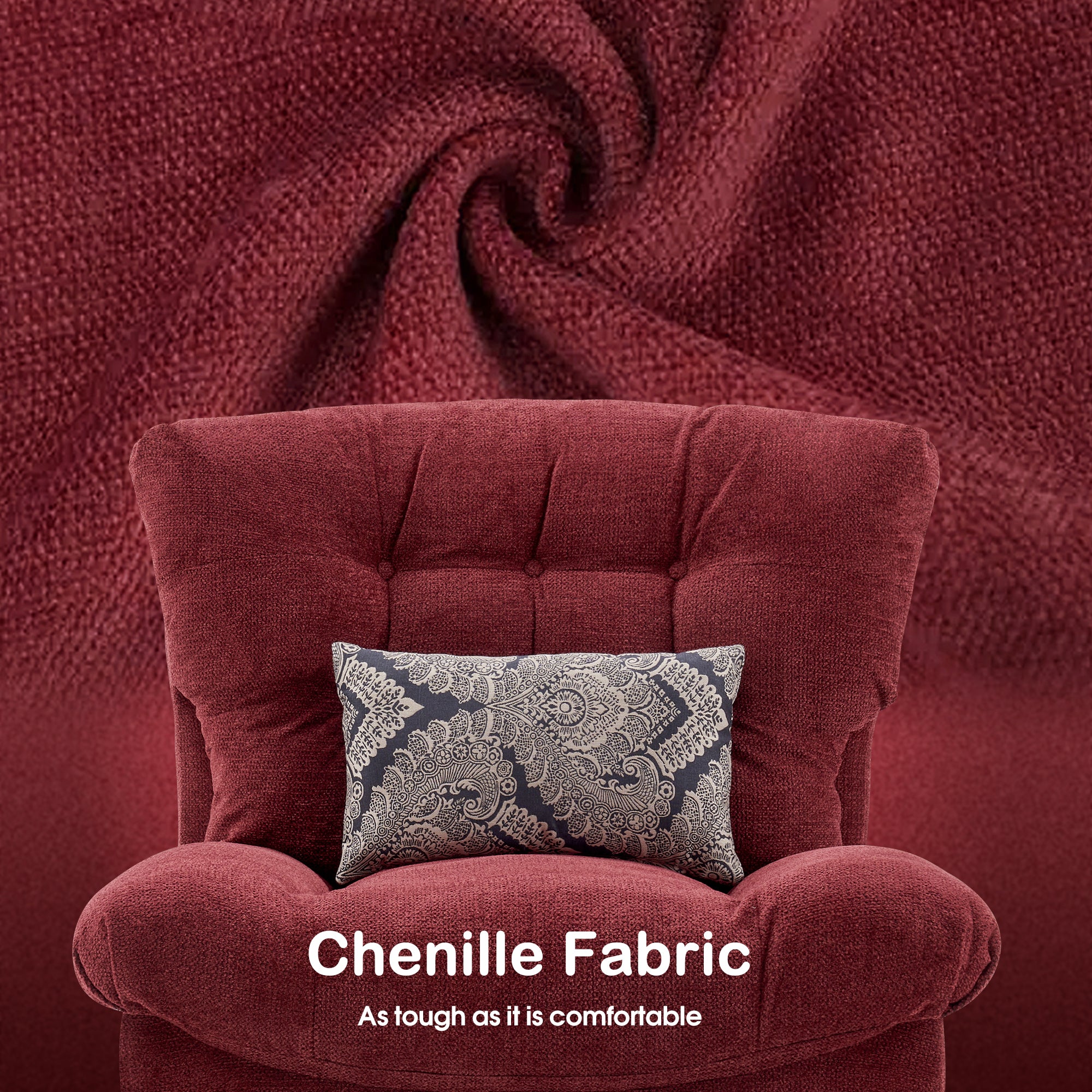 - [Chenille Upholstered & Button Tufting] Upholstered in Chenille fabric, this lounge chair is breathable, soft and durable. Decorative button highlights the delicate and tailored look that accentuates its handicrafts. The grid tufted seat and winged chair back offer just the right mix of a comfortable seat and wraparound back.