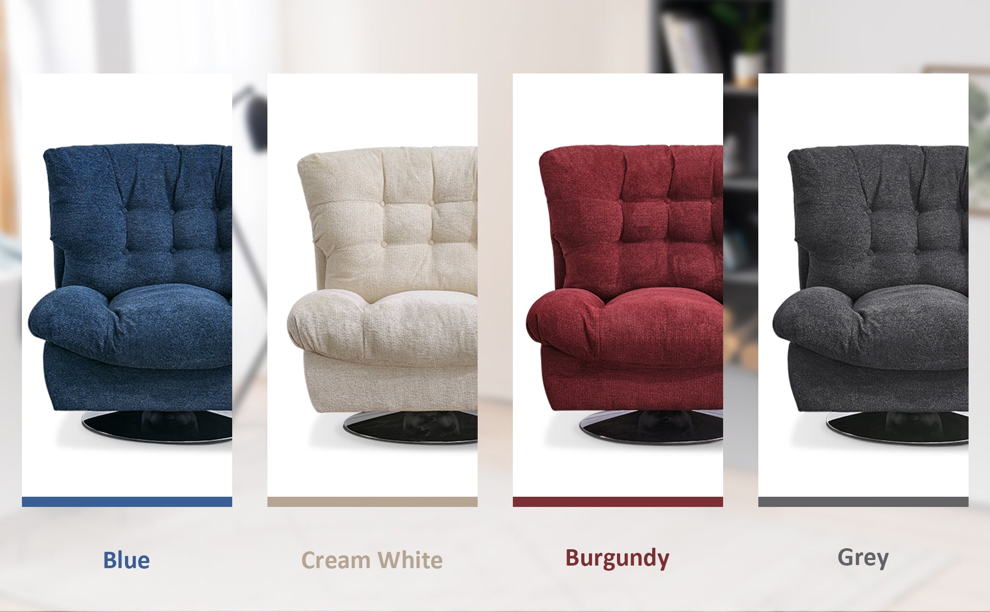 Material: Chenille Fabric + Sponge Filling+ Carbon Steel Chair Base