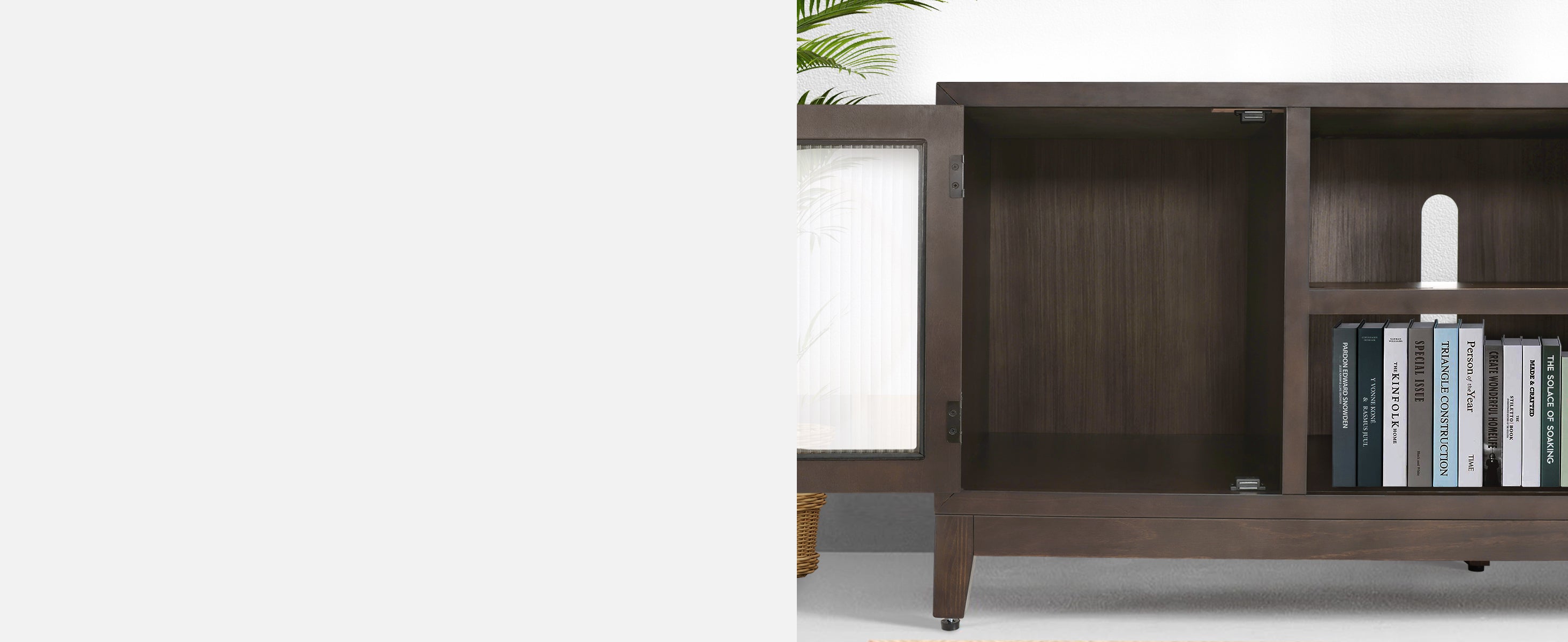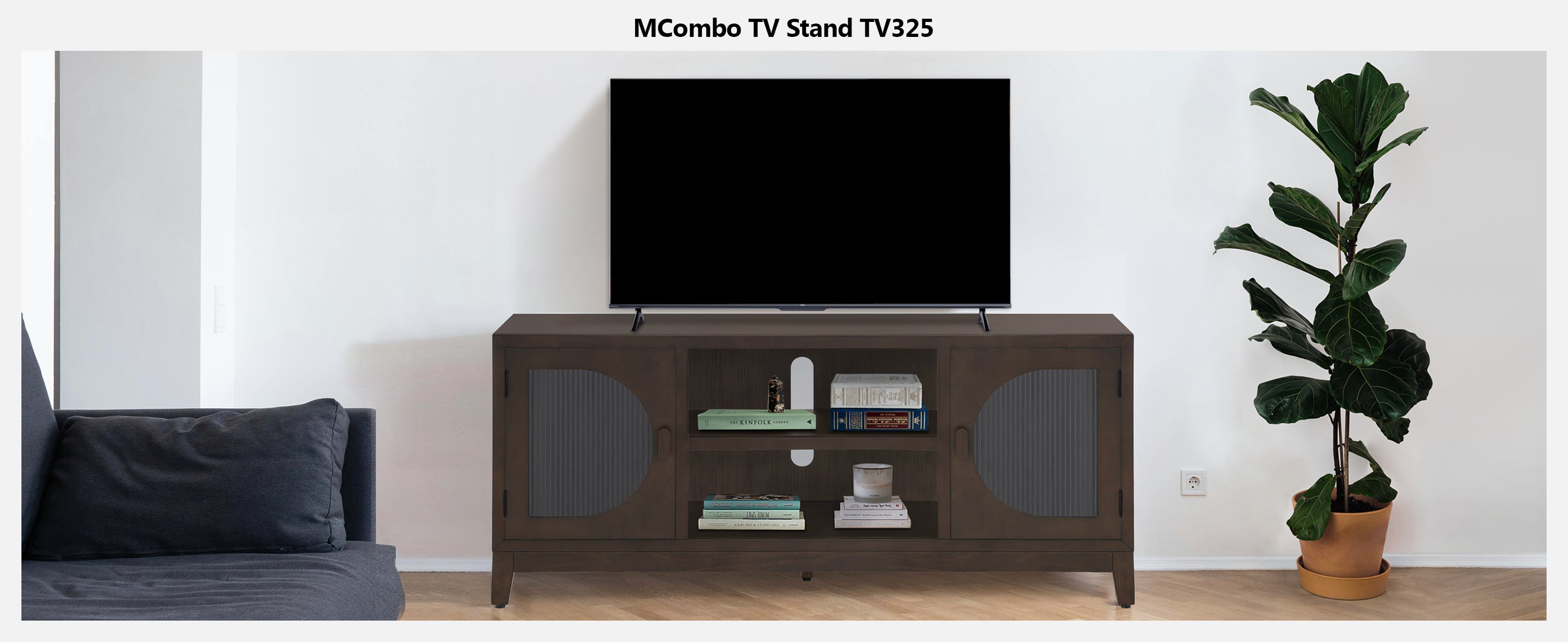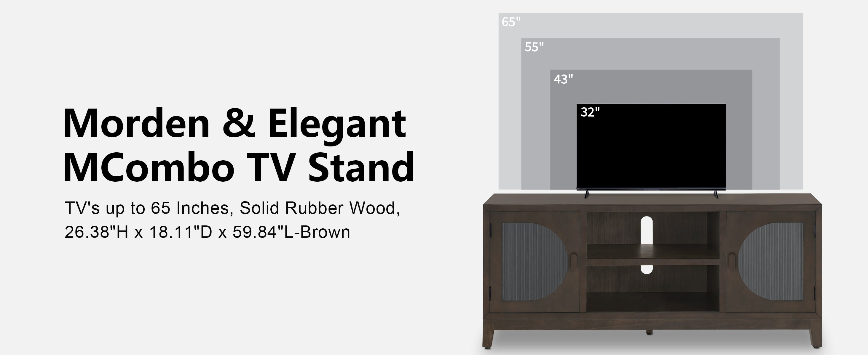 • Modern Style: Our TV stand combines clean lines with a rustic wood finish and special craft fluted glass surface doors;  the rich brown wood tones bring warmth to your living space