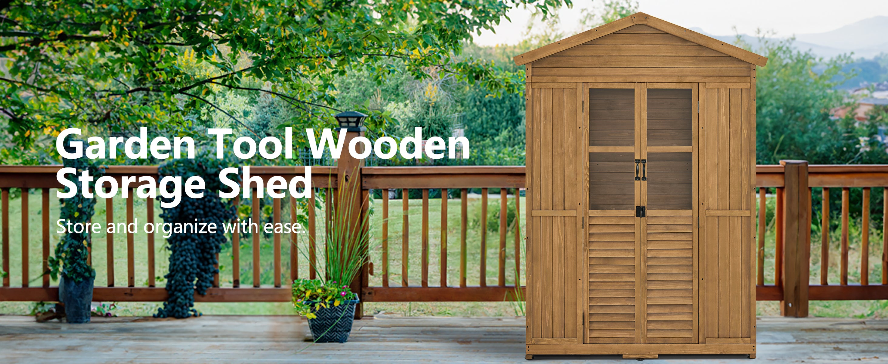 - Fir Solid Wood: The garden shed is made of pure fir wood, and the exterior has been polished to express a rustic style; Its natural color harmonizes with various outdoor environments, making it a addition to any garden or deck