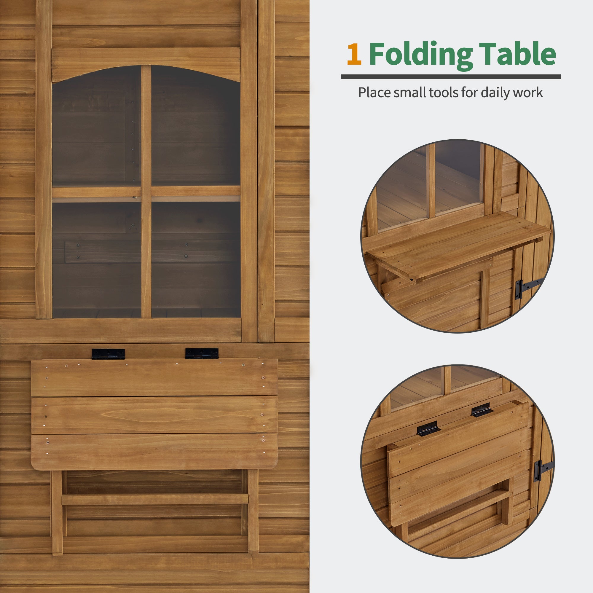 - Fir Solid Wood: The garden shed is made of pure fir wood, and the exterior has been polished to express a rustic style; Its natural color harmonizes with various outdoor environments, making it a addition to any garden or deck
