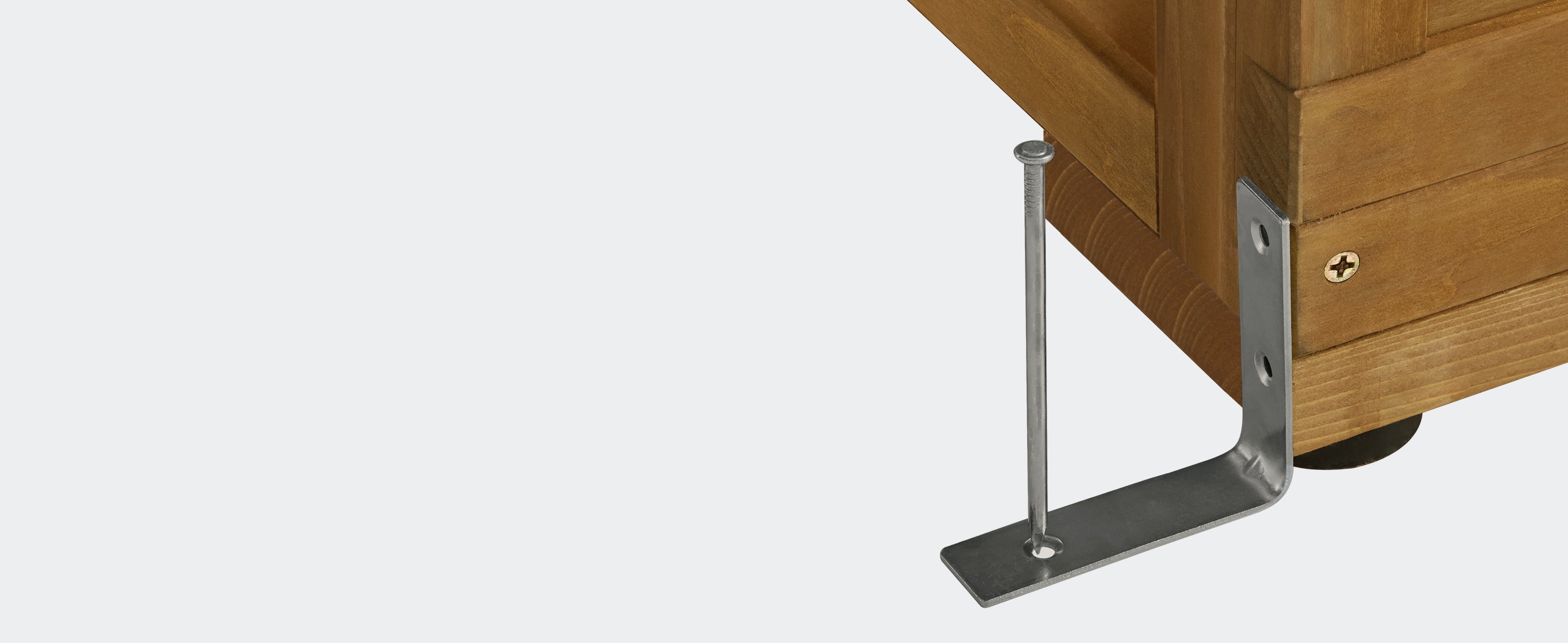 - Anti Tip Bracket Kit: To enhance stability, the tool shed includes 4 reinforced metal ground brackets and 2 anti-fall devices; Fix the brackets to the ground to prevent moving, and install the anti-fall kits to the wall to prevent tipping