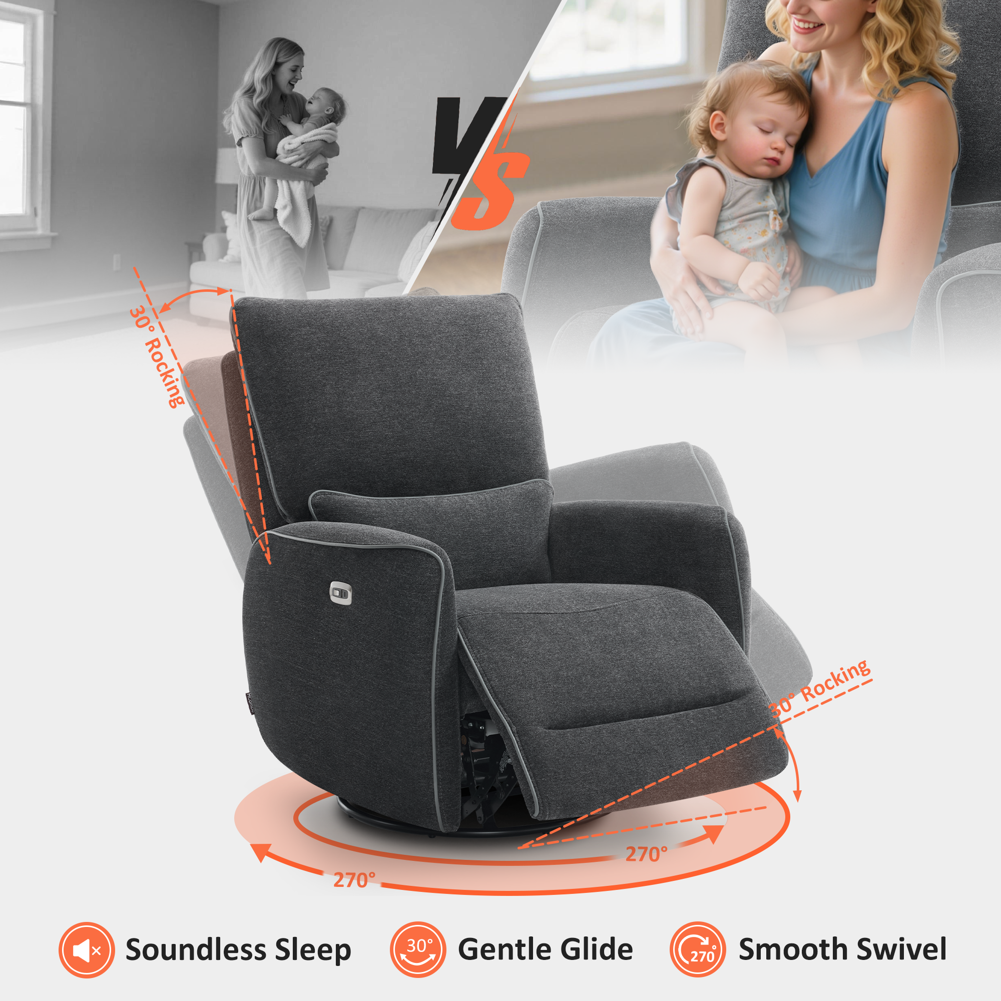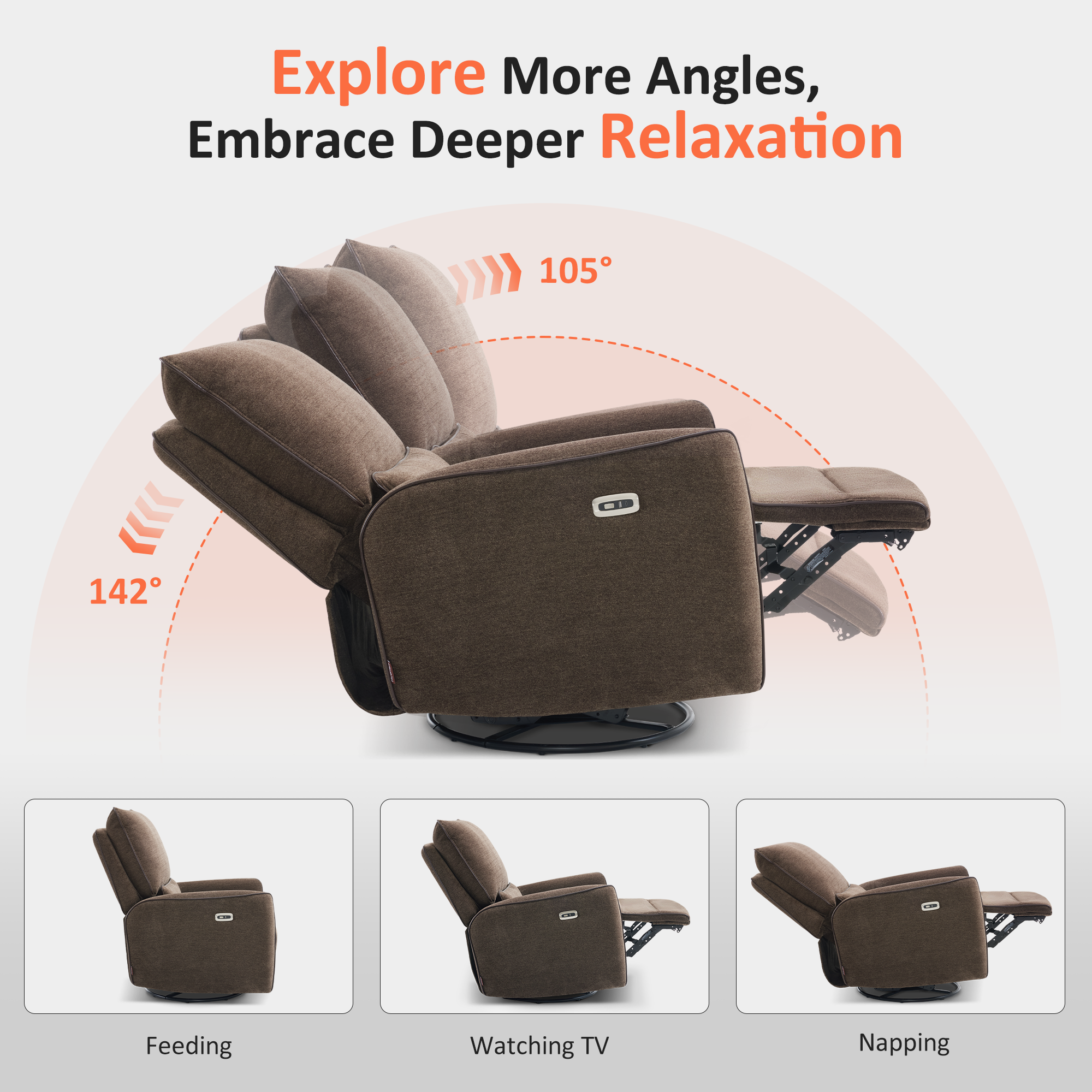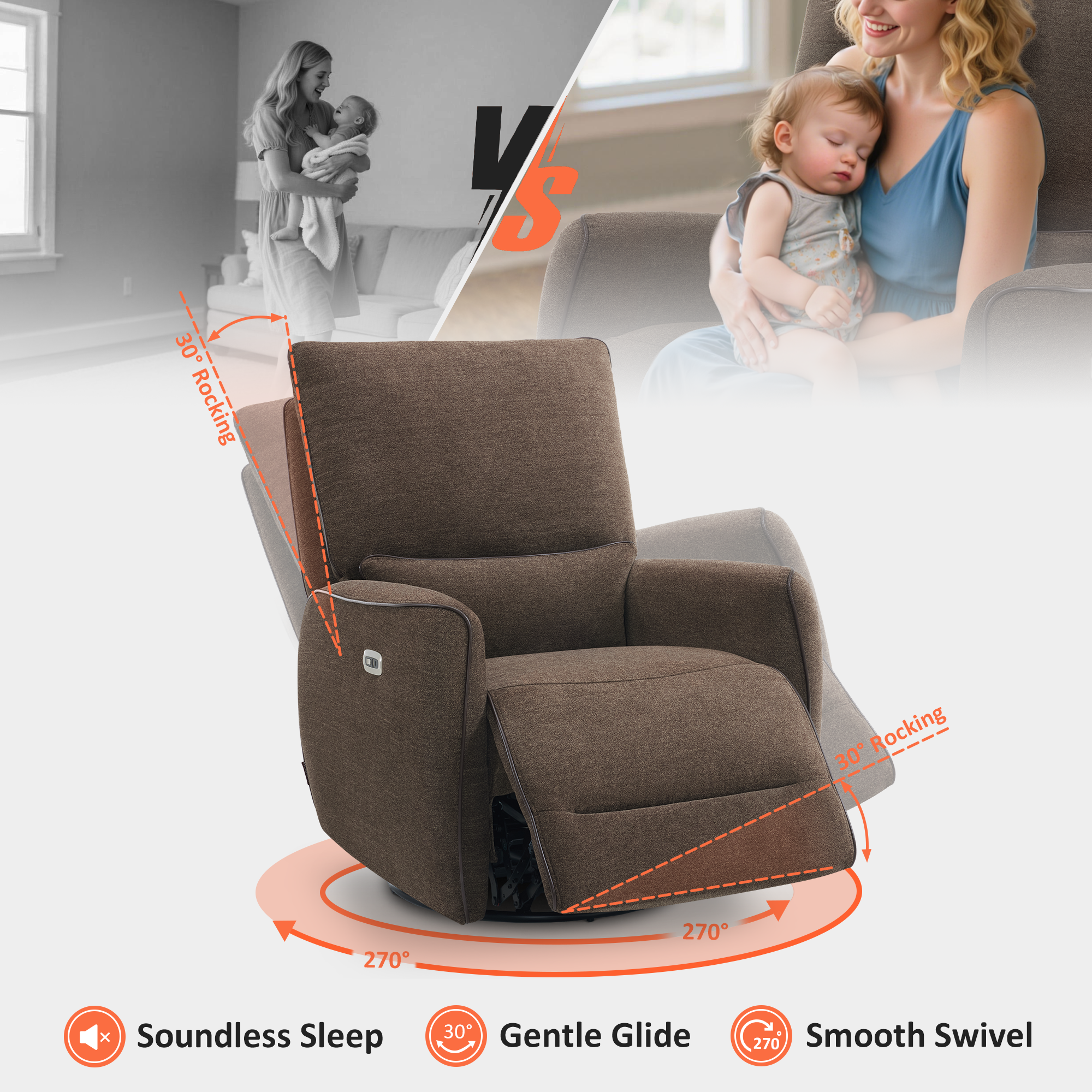 Power Recliner Chair, Swivel Glider Rocker, Fabric 6922
