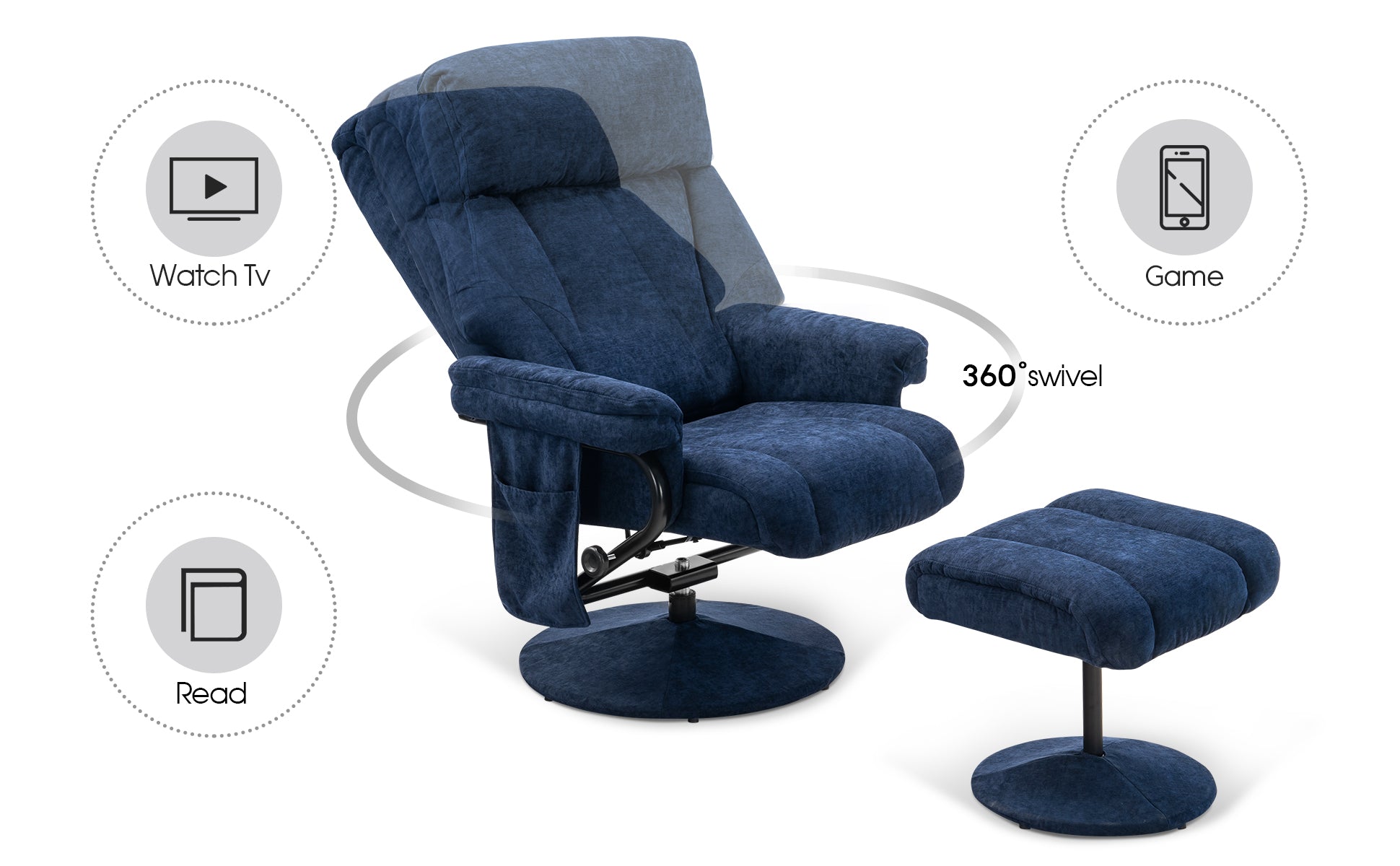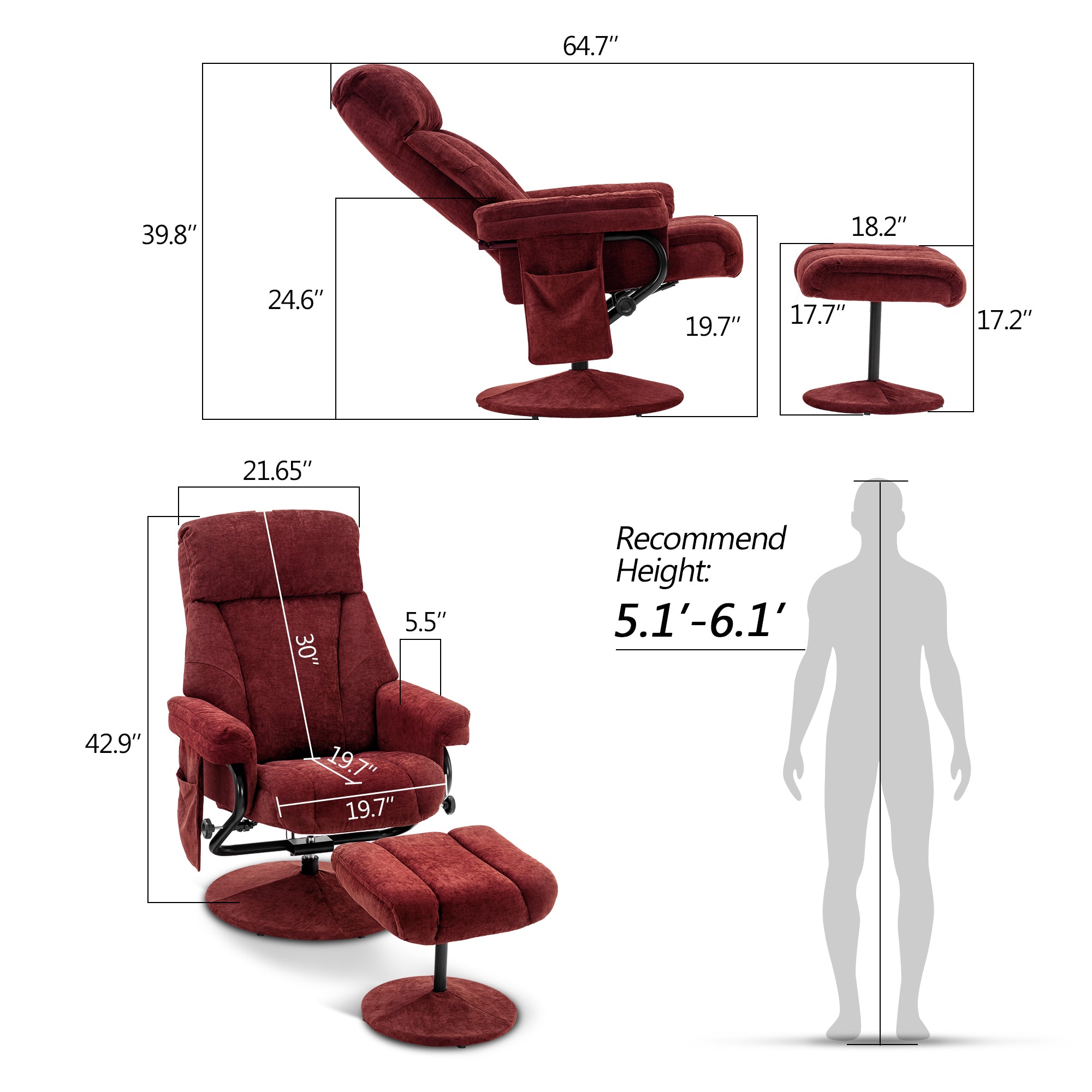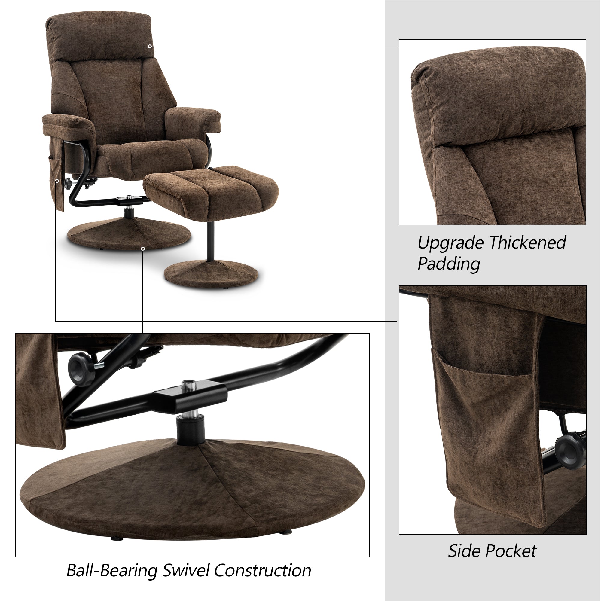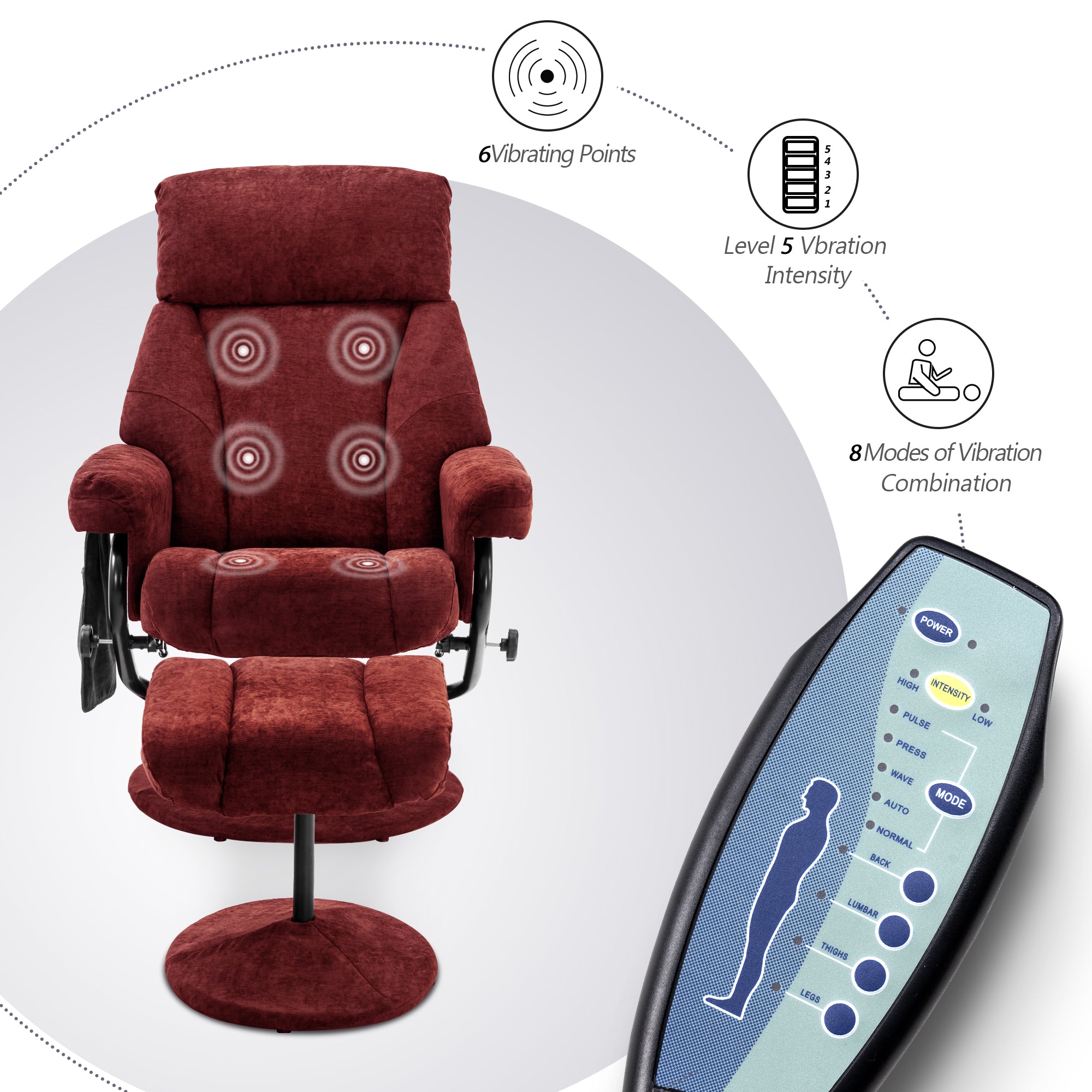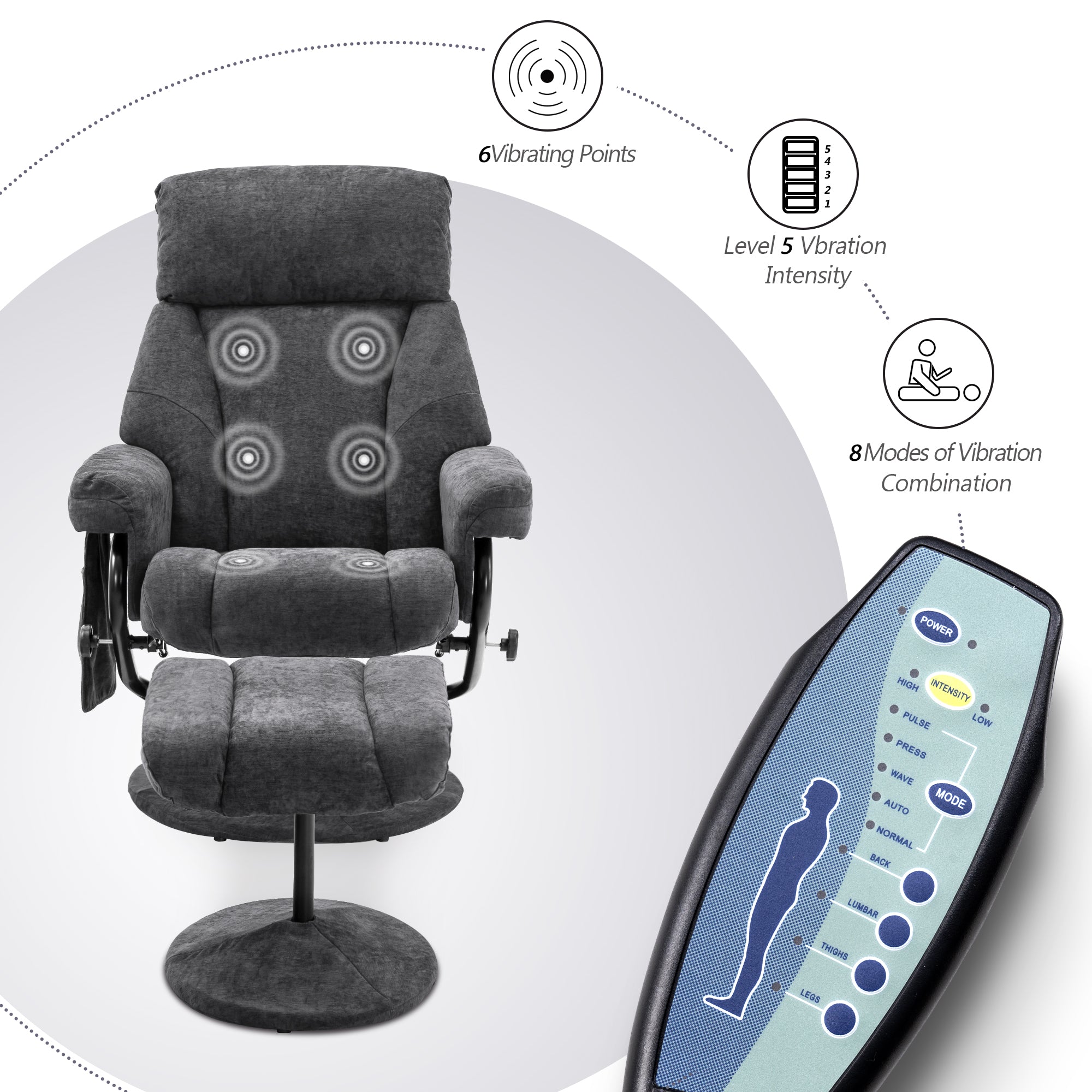 Swivel Recliner with Ottoman, with Massage, Fabric 4828