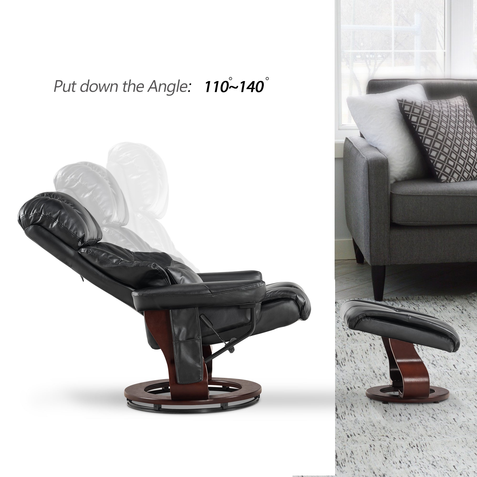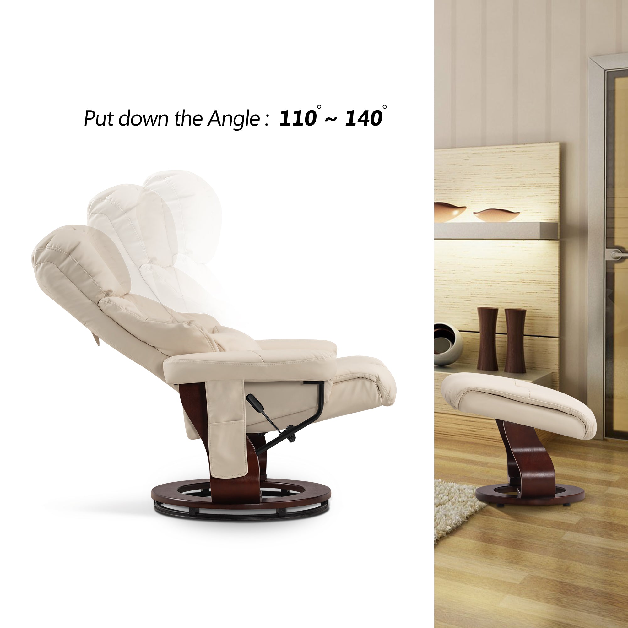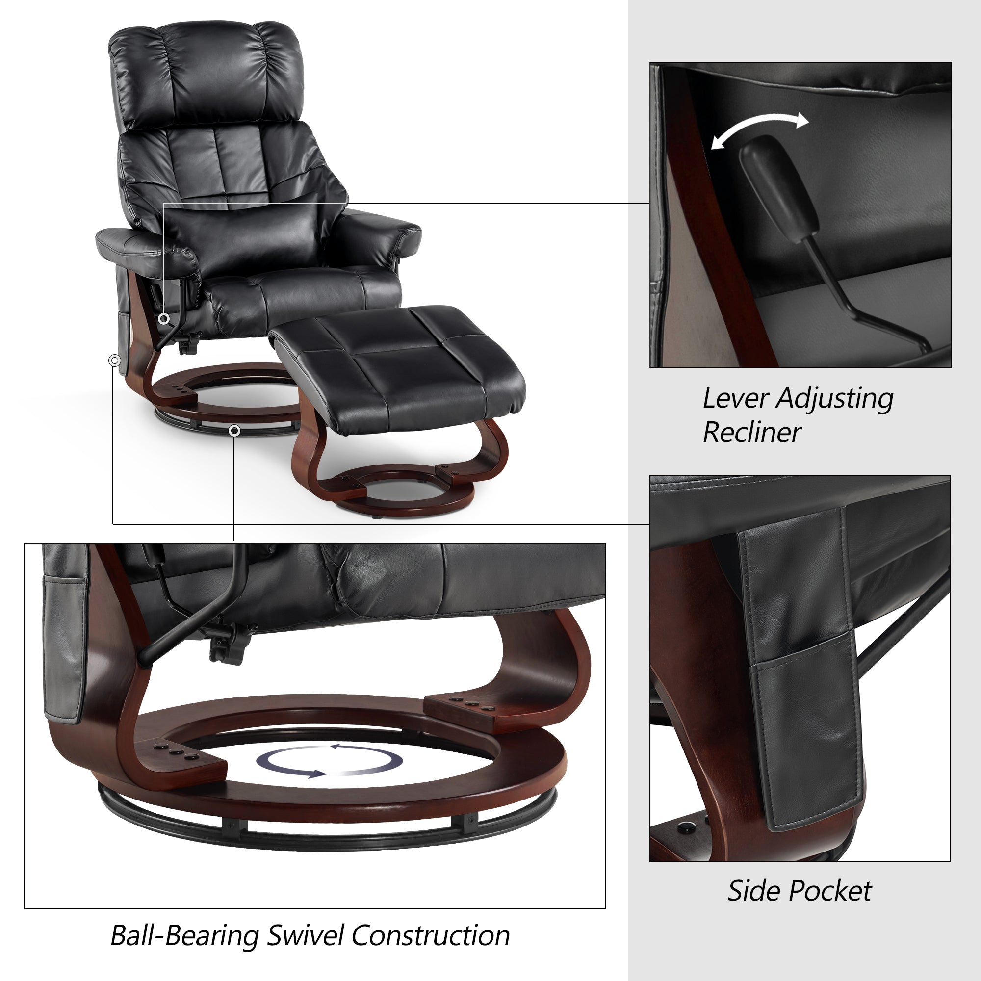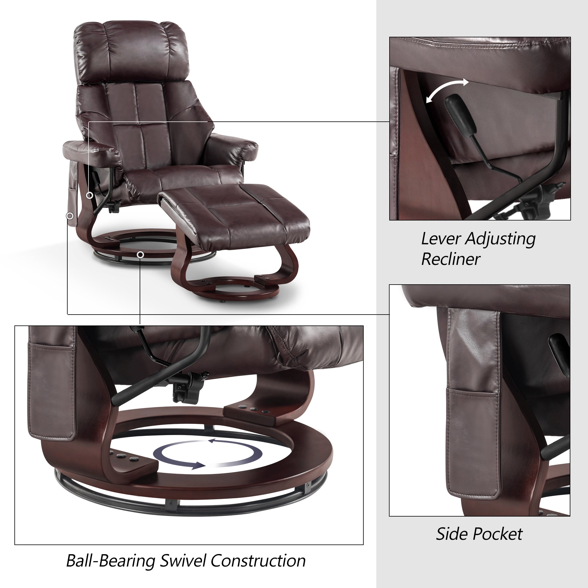 Swivel Recliner with Ottoman, with Massage, Faux Leather 9068