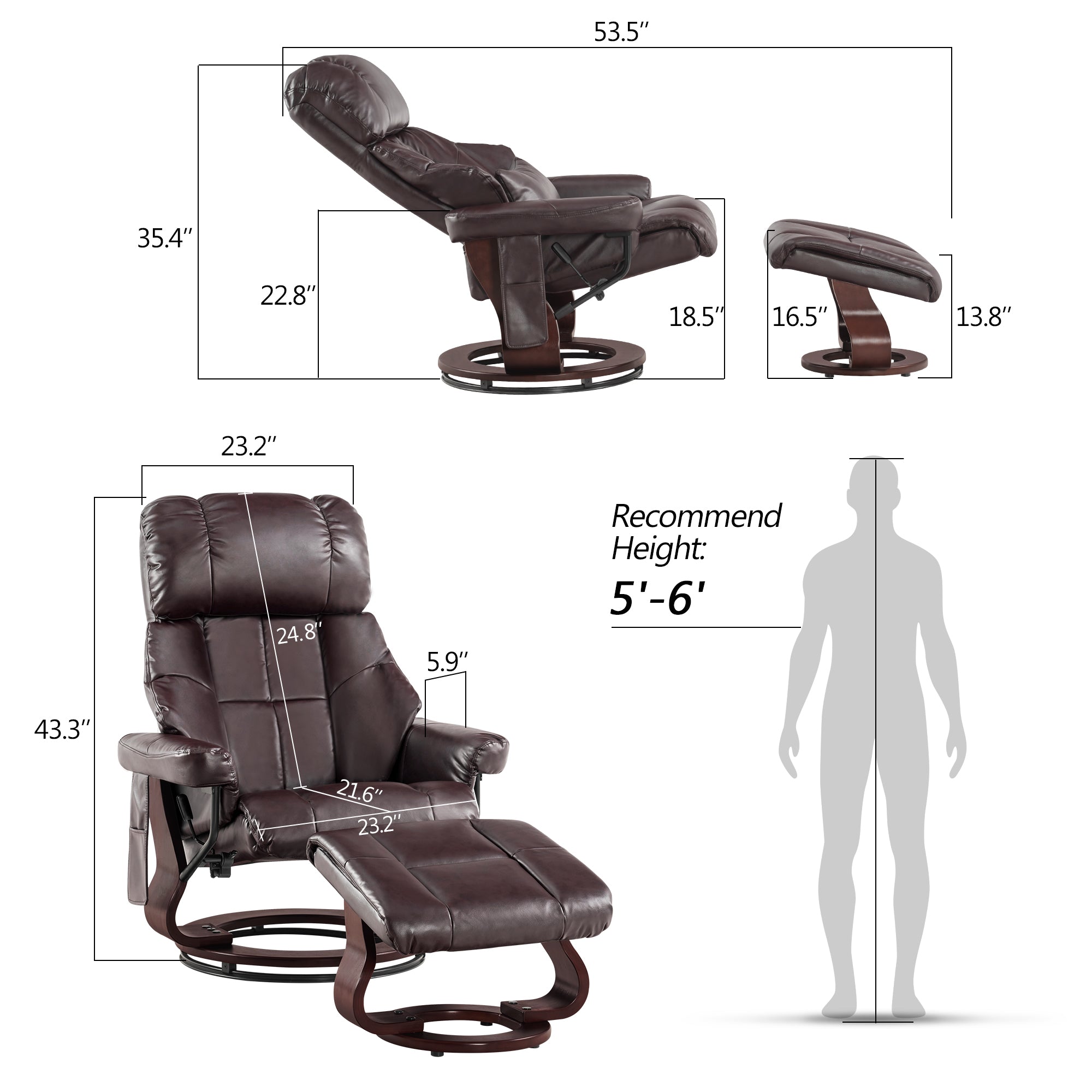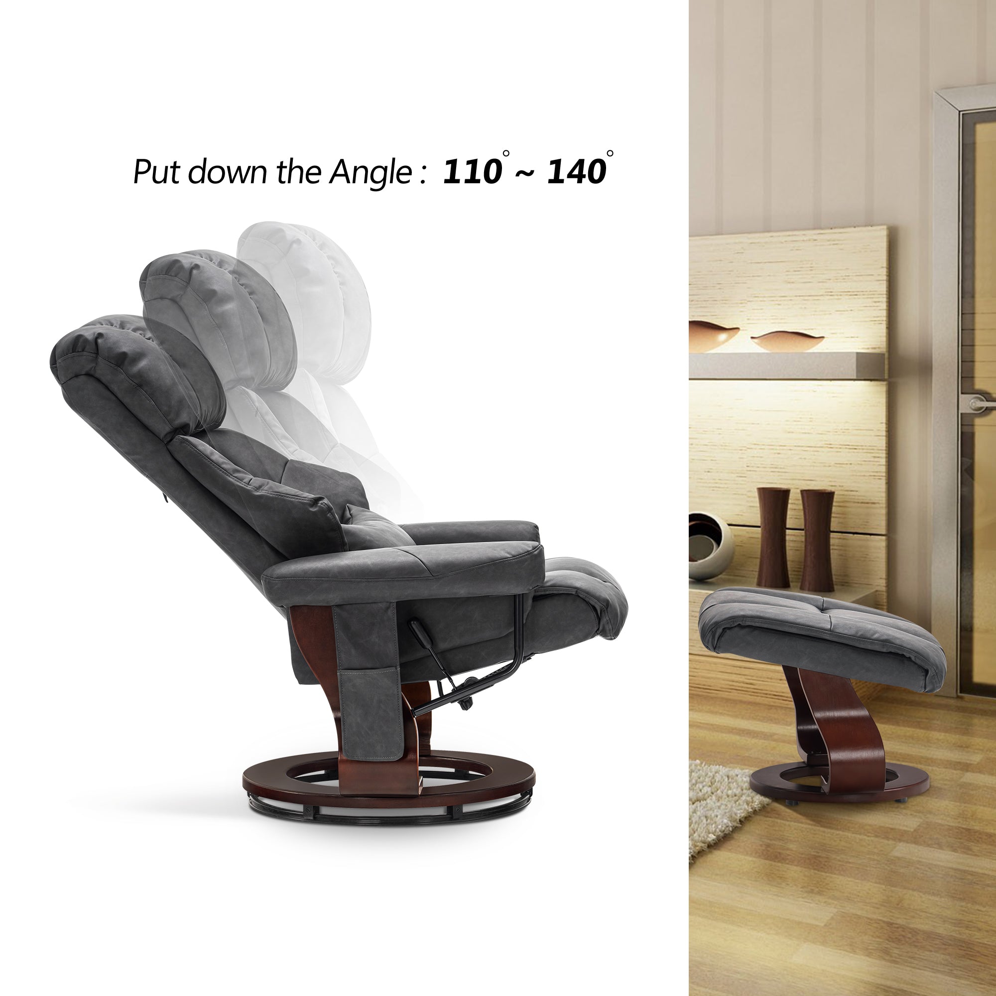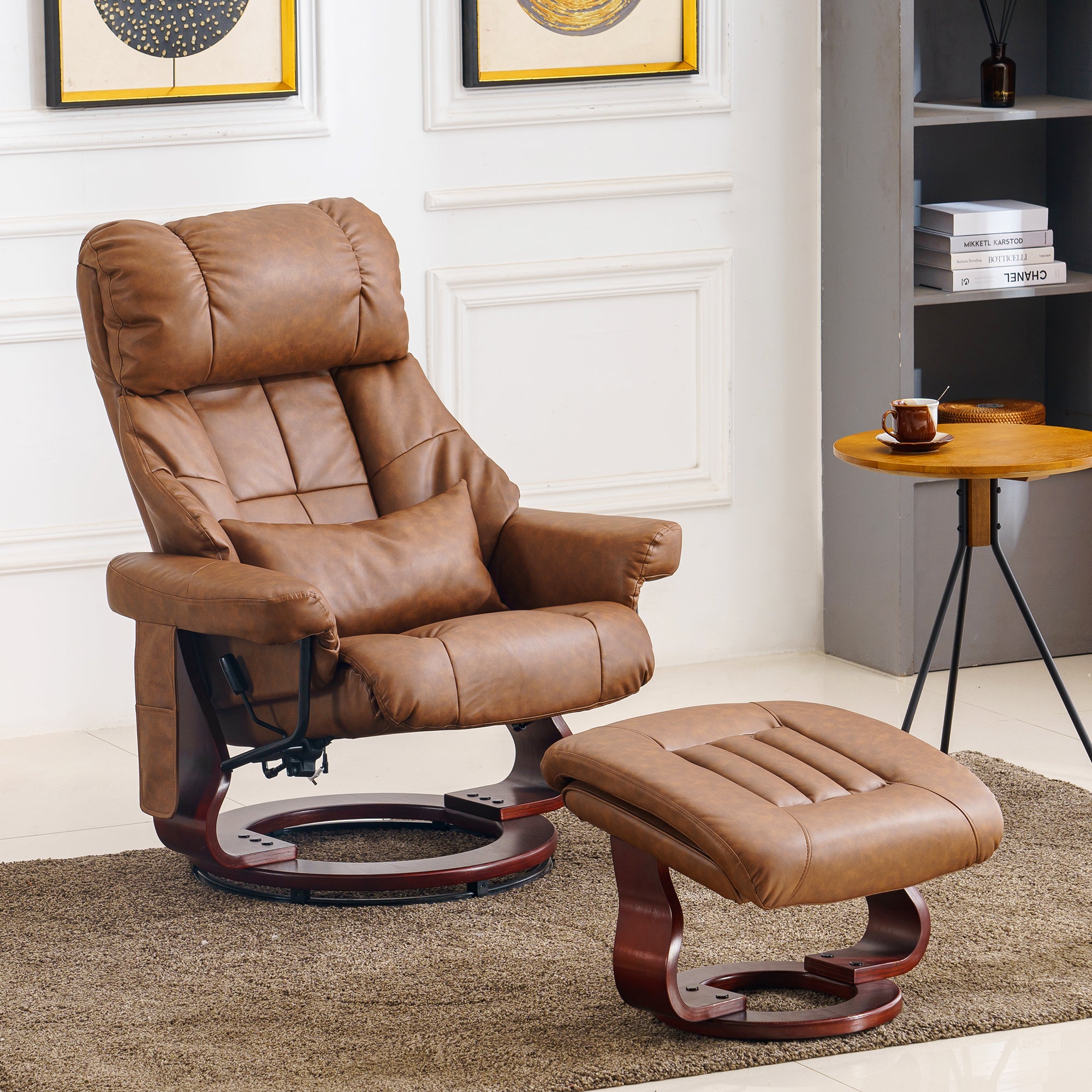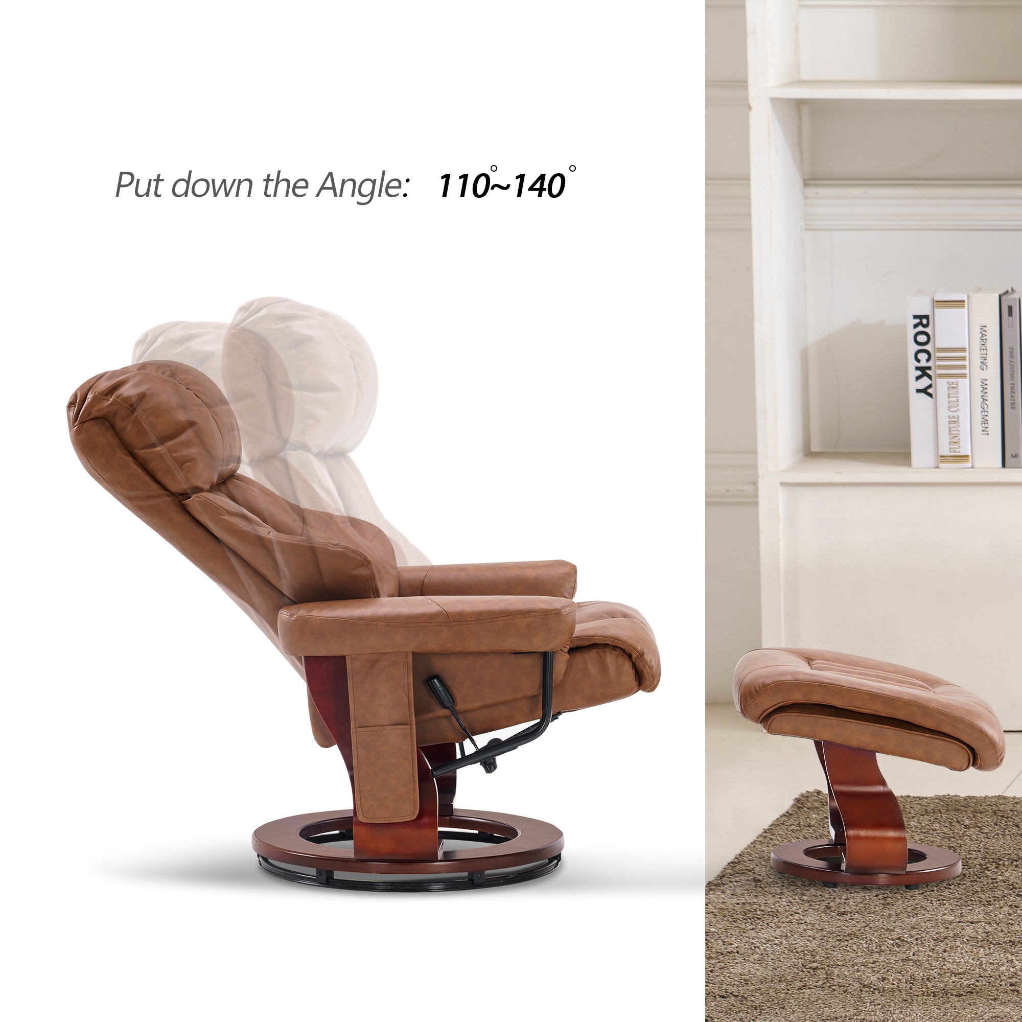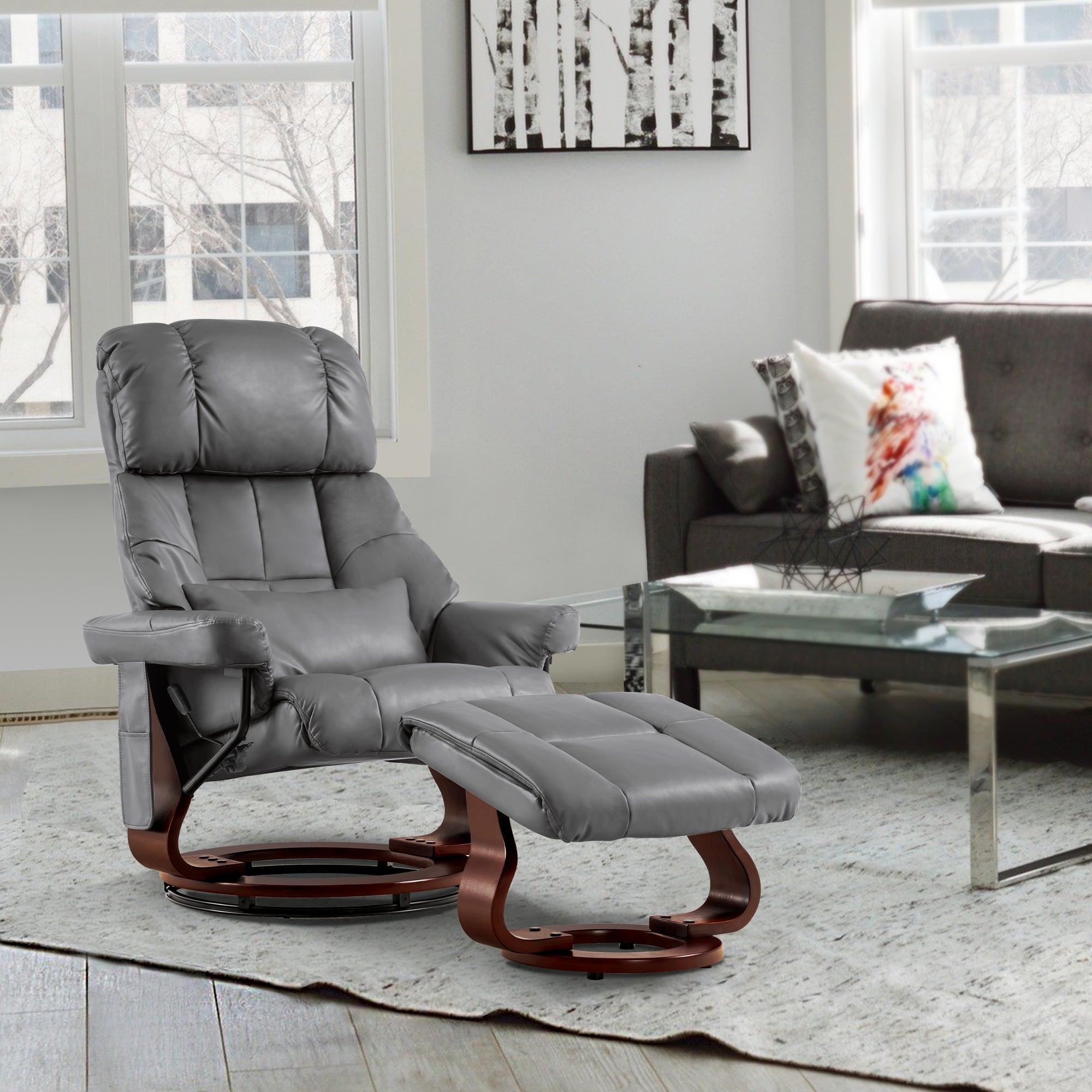 Swivel Recliner with Ottoman, with Massage, Faux Leather 9068