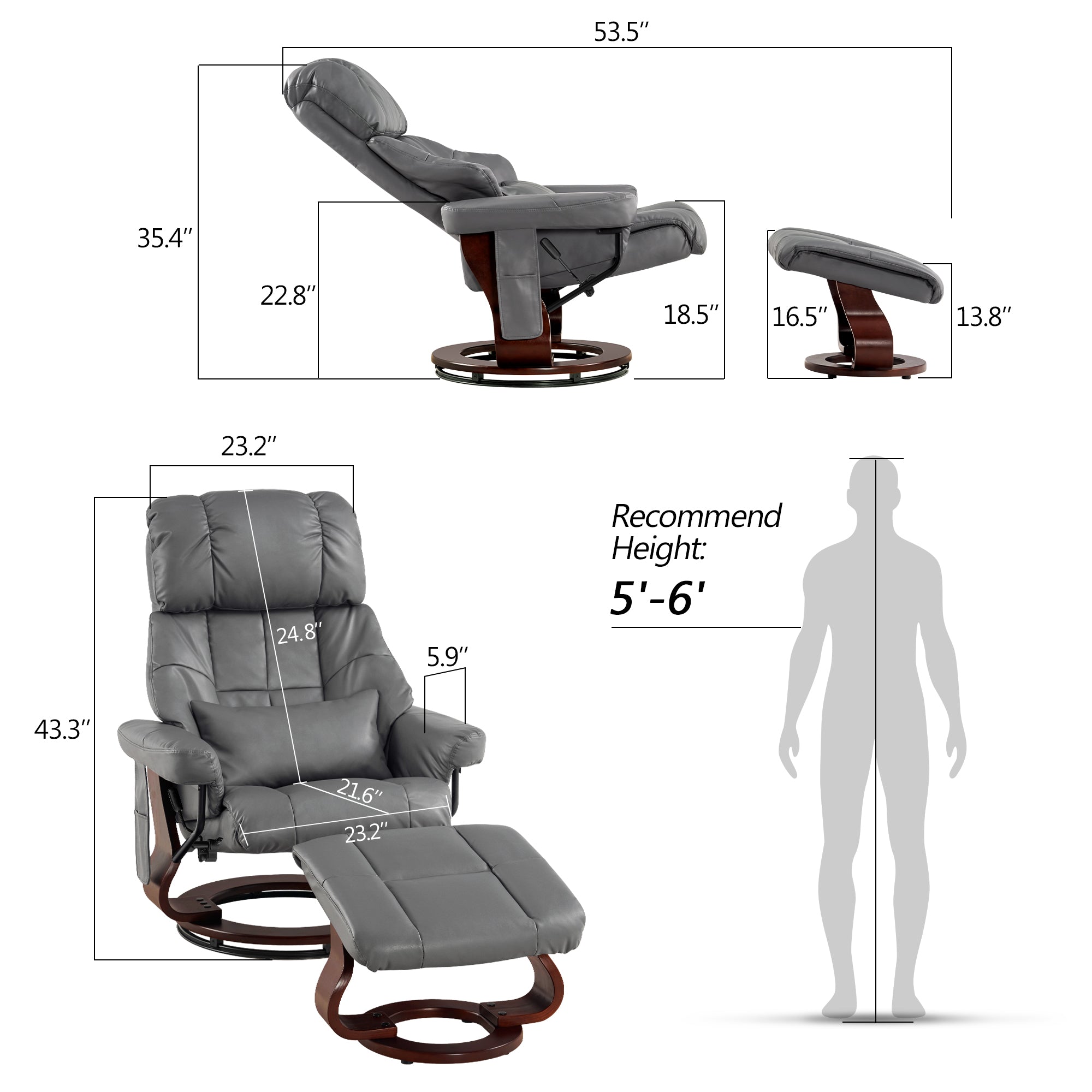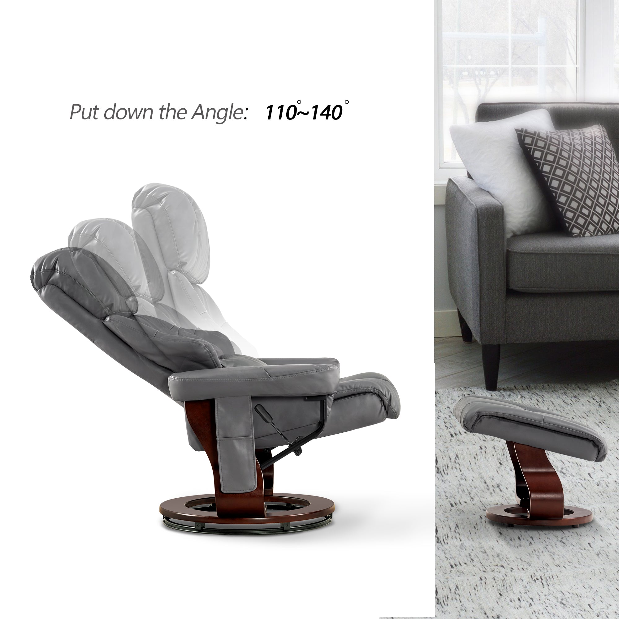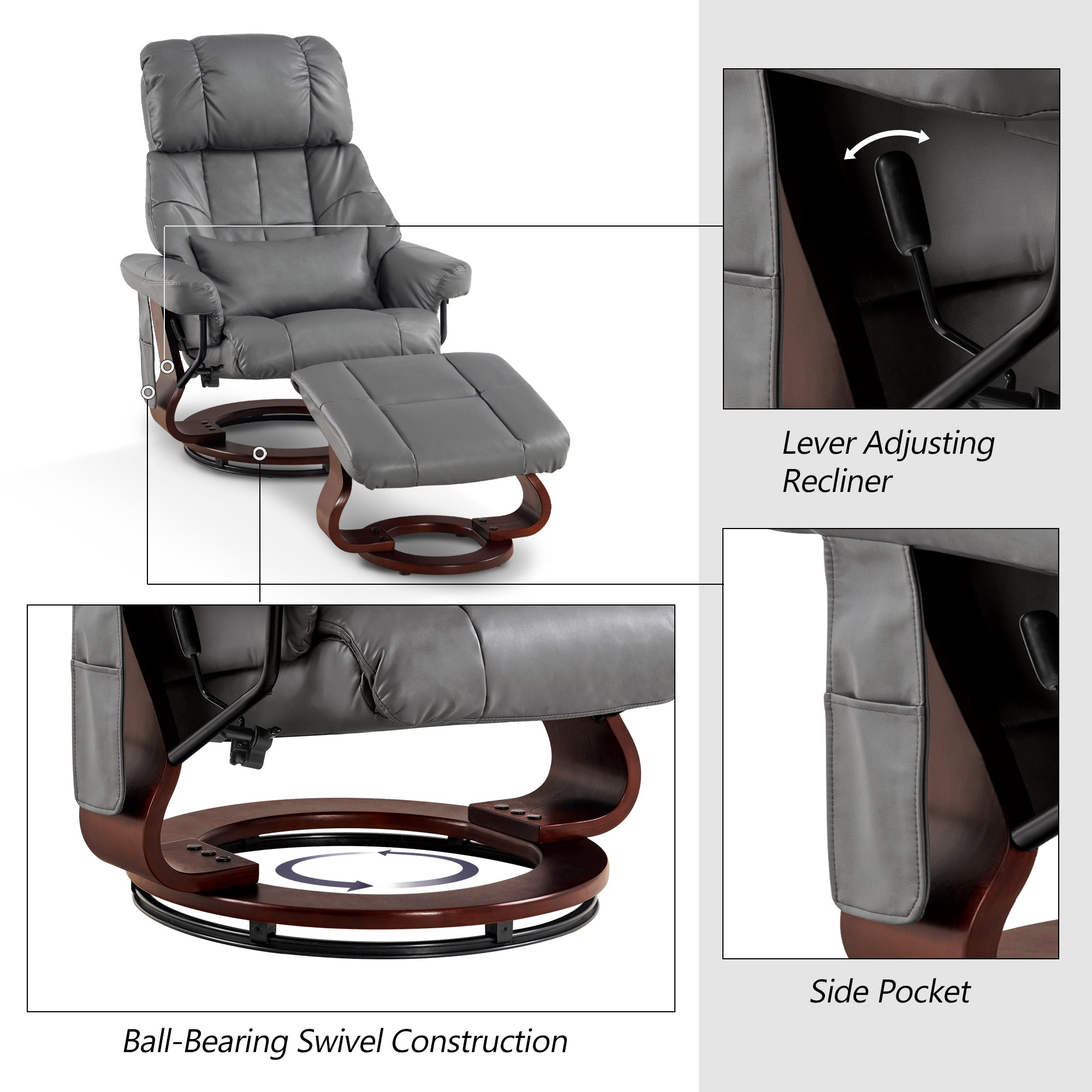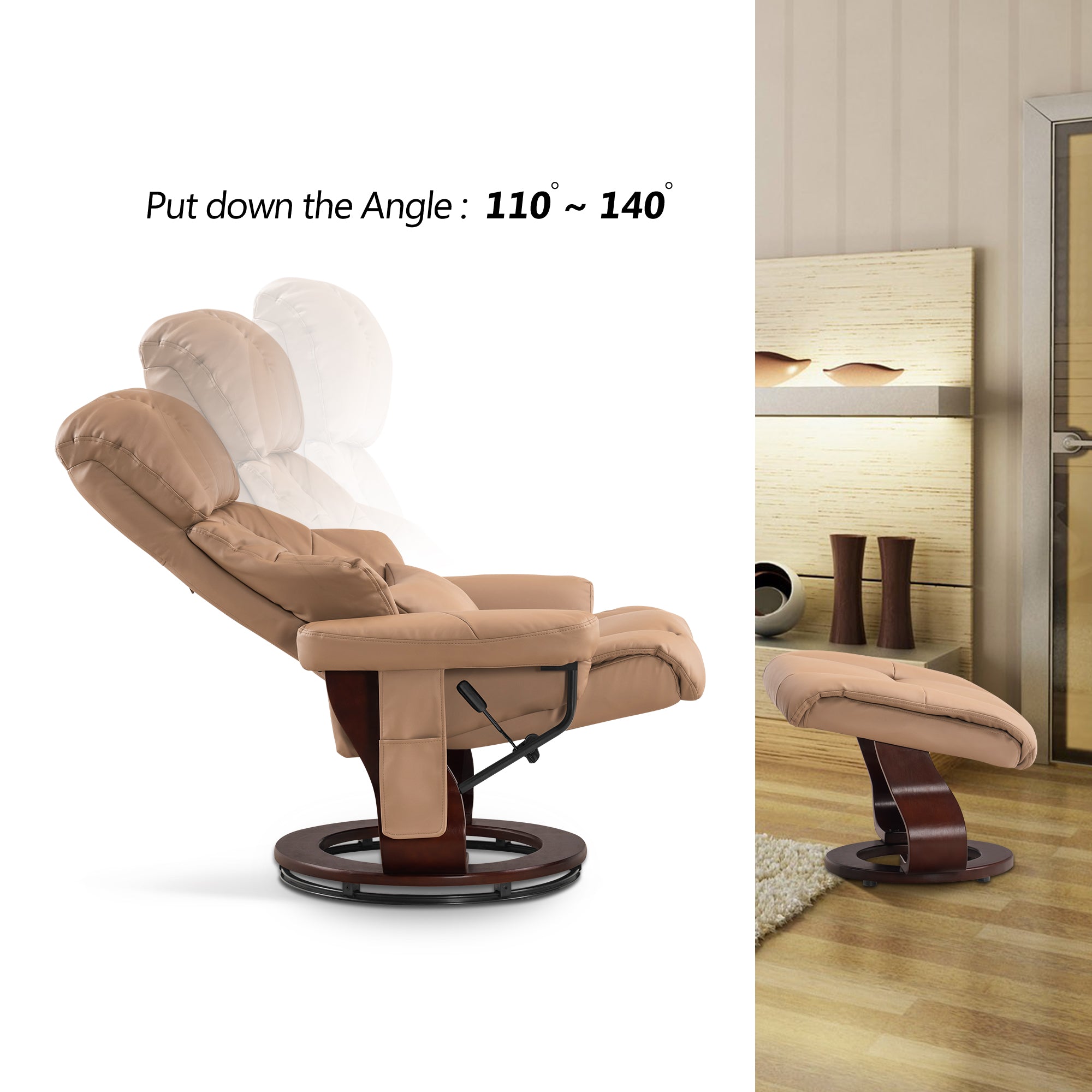 Swivel Recliner with Ottoman, with Massage, Faux Leather 9068