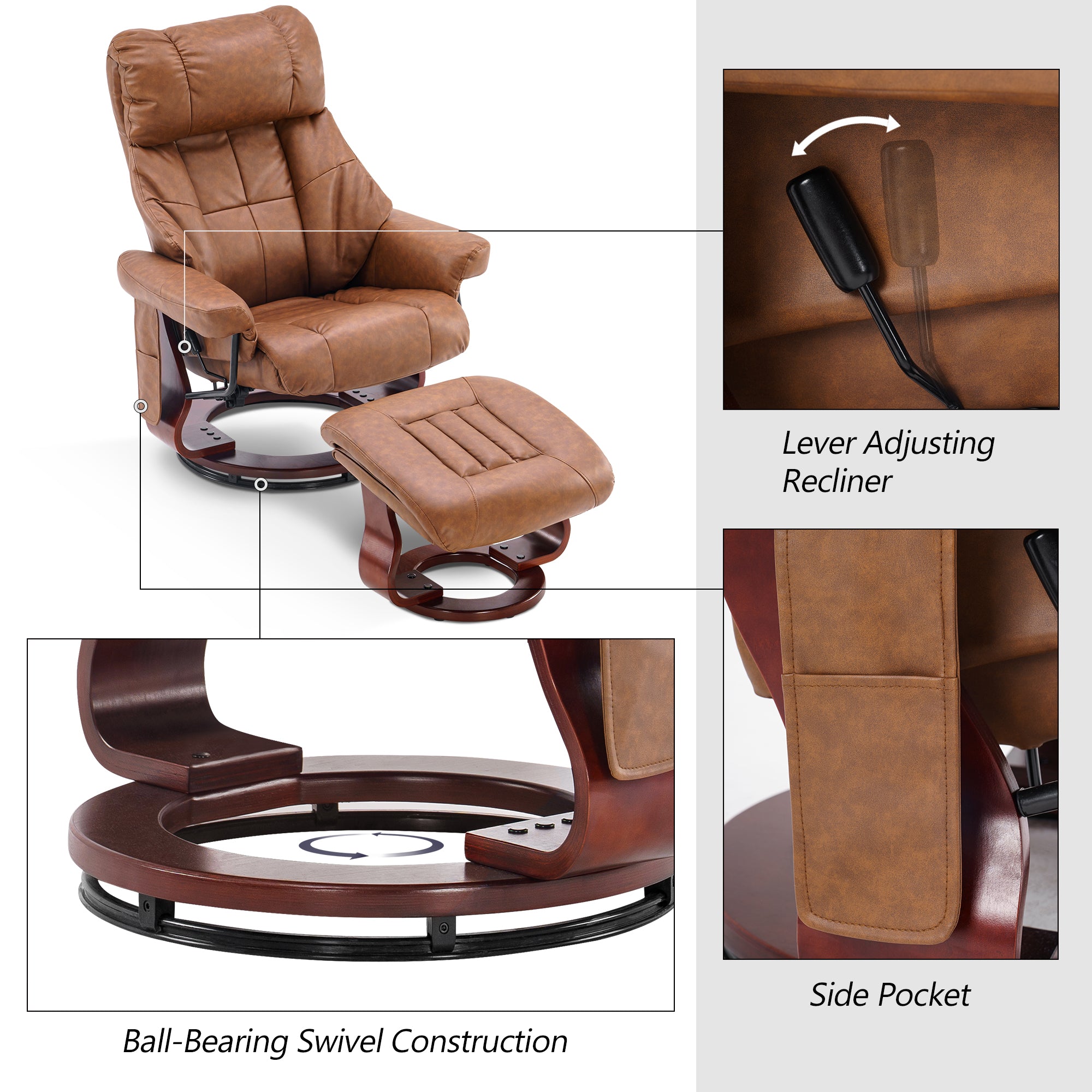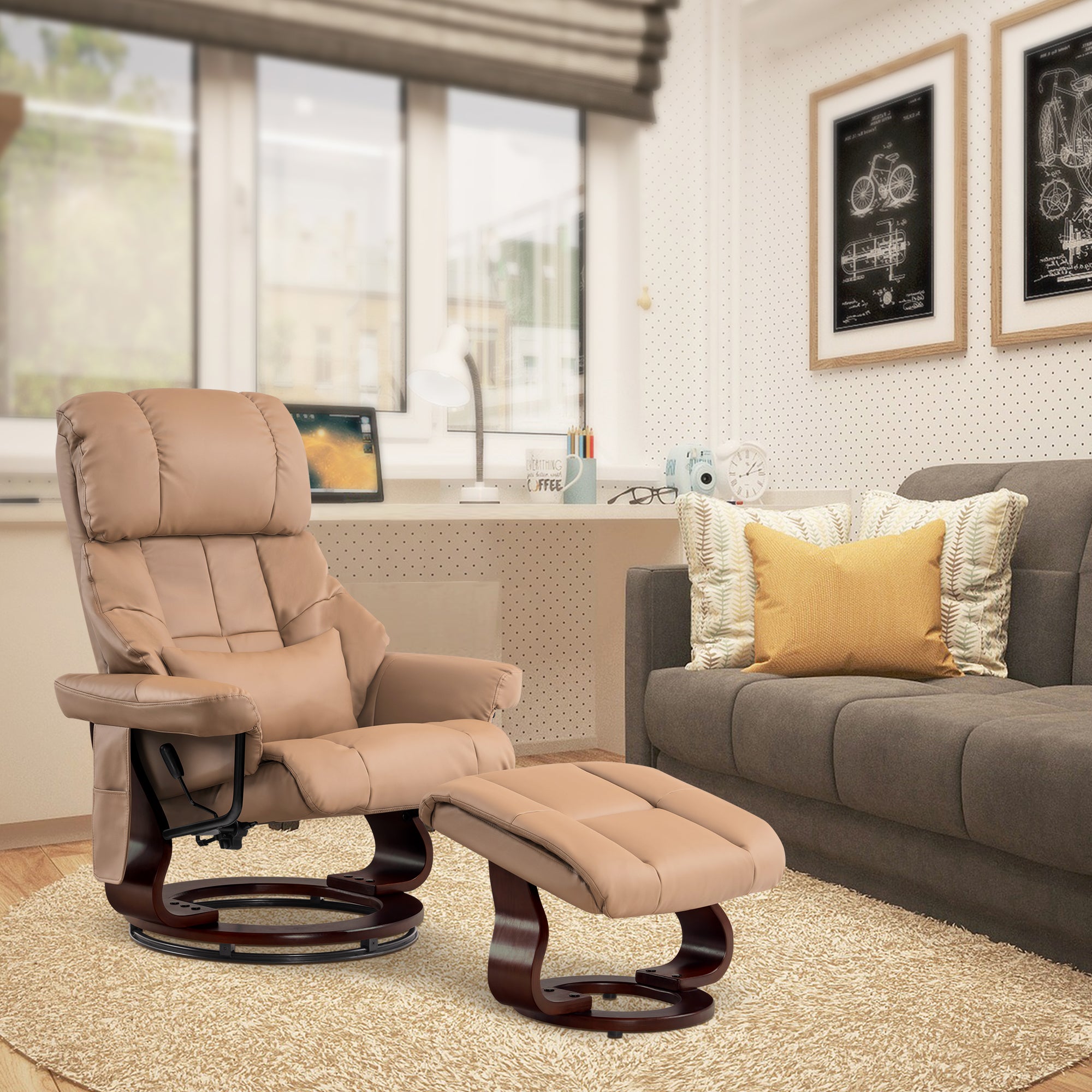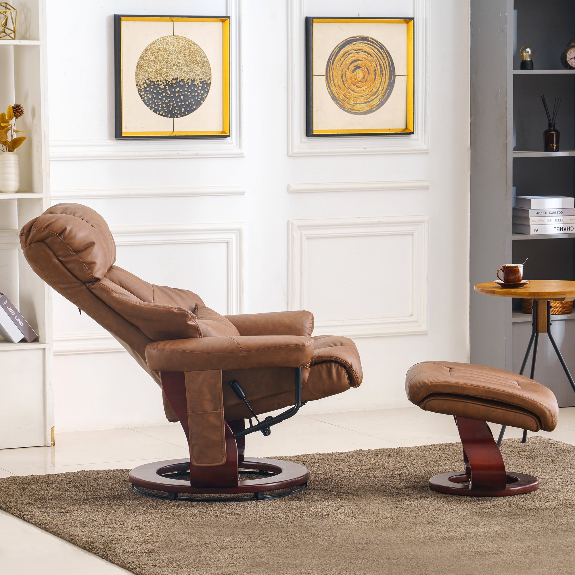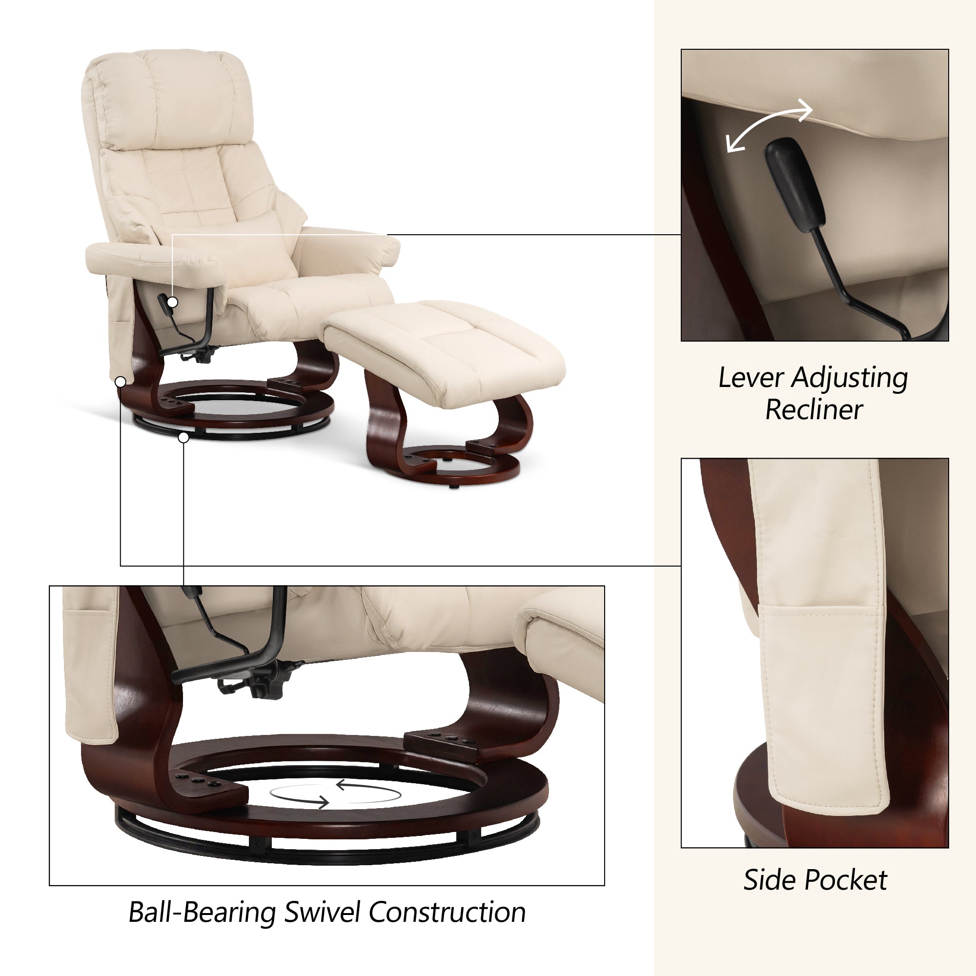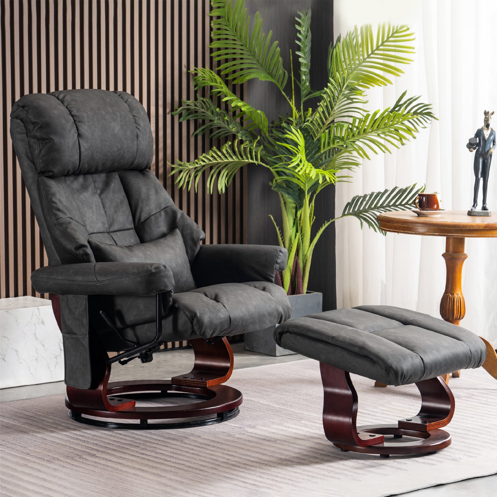 Swivel Recliner with Ottoman, with Massage, Faux Leather 9068