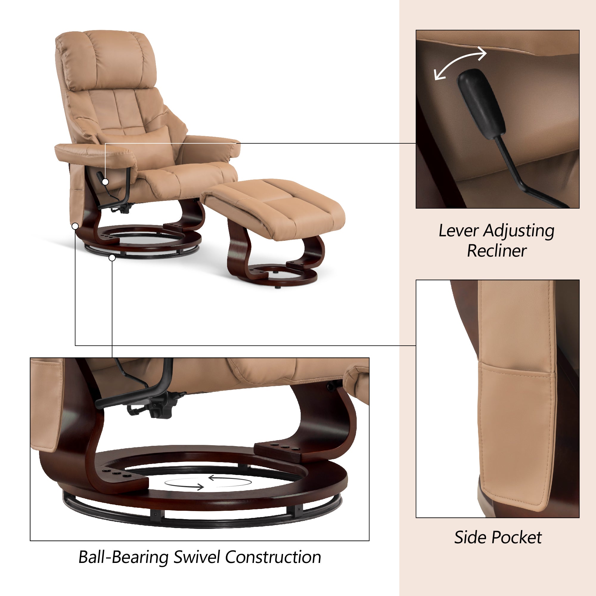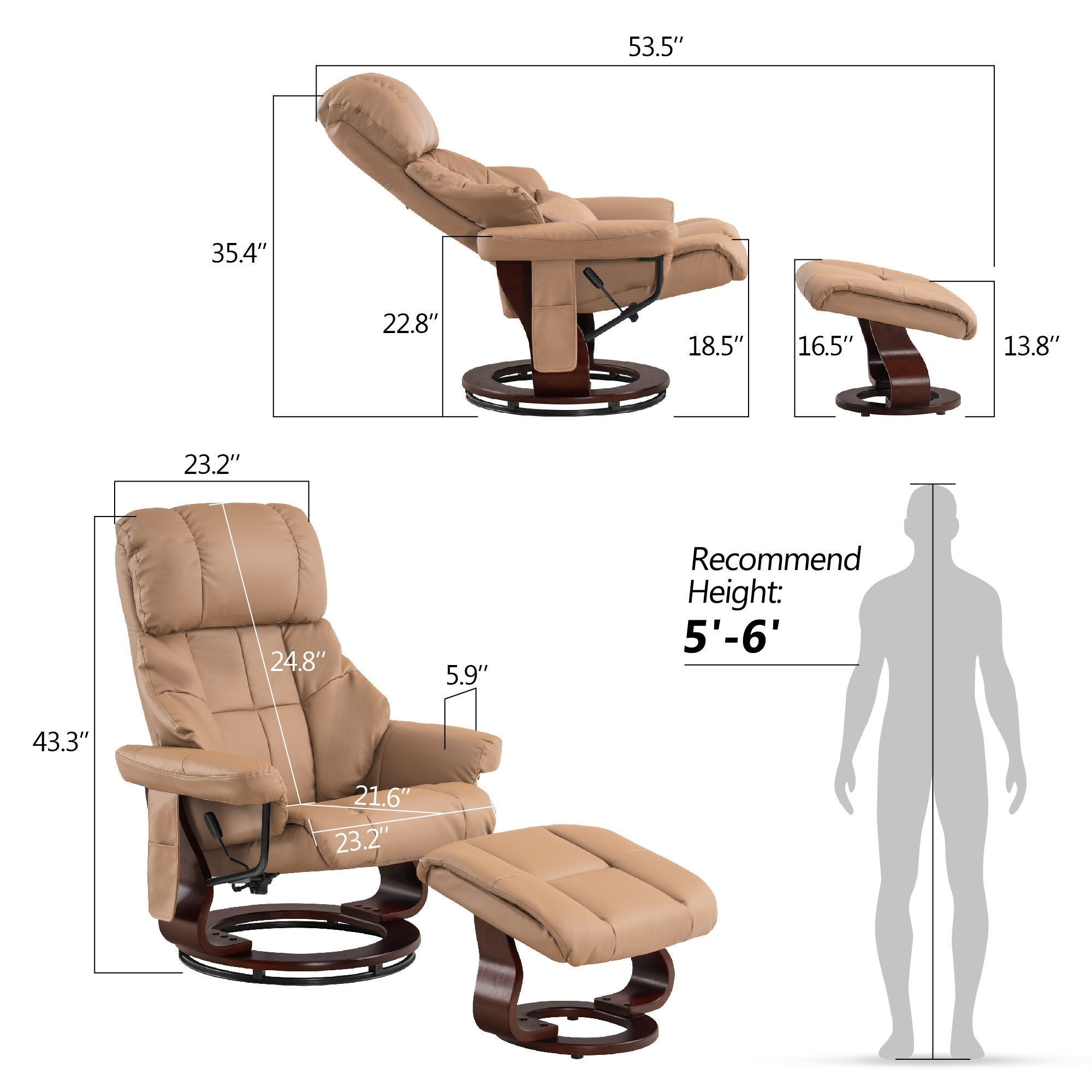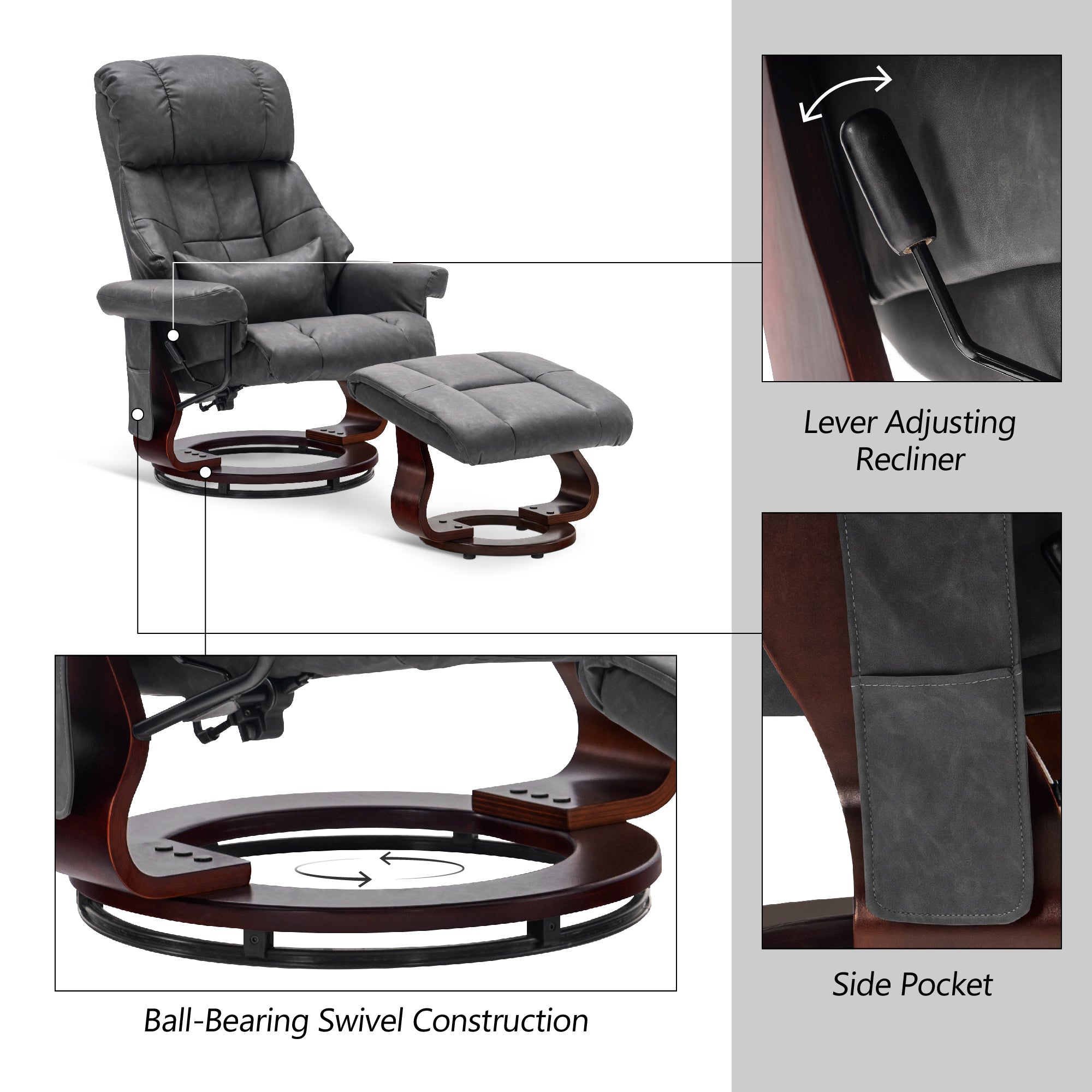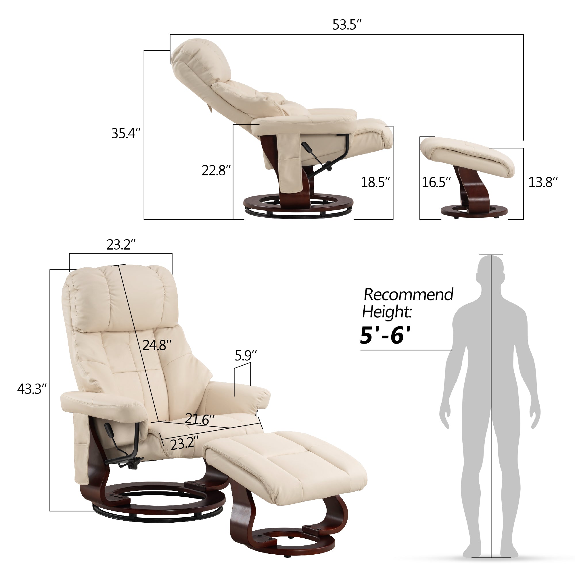 Swivel Recliner with Ottoman, with Massage, Faux Leather 9068