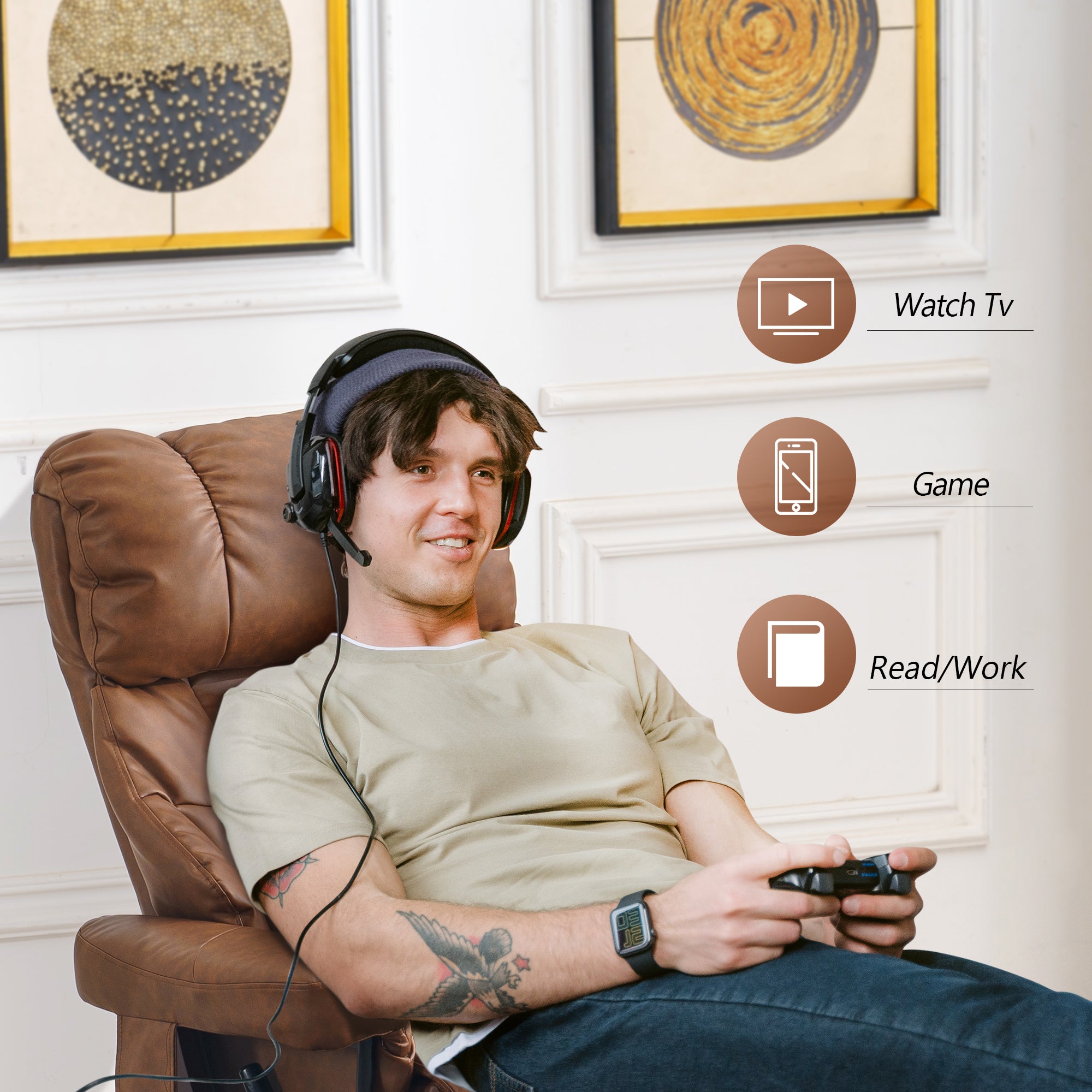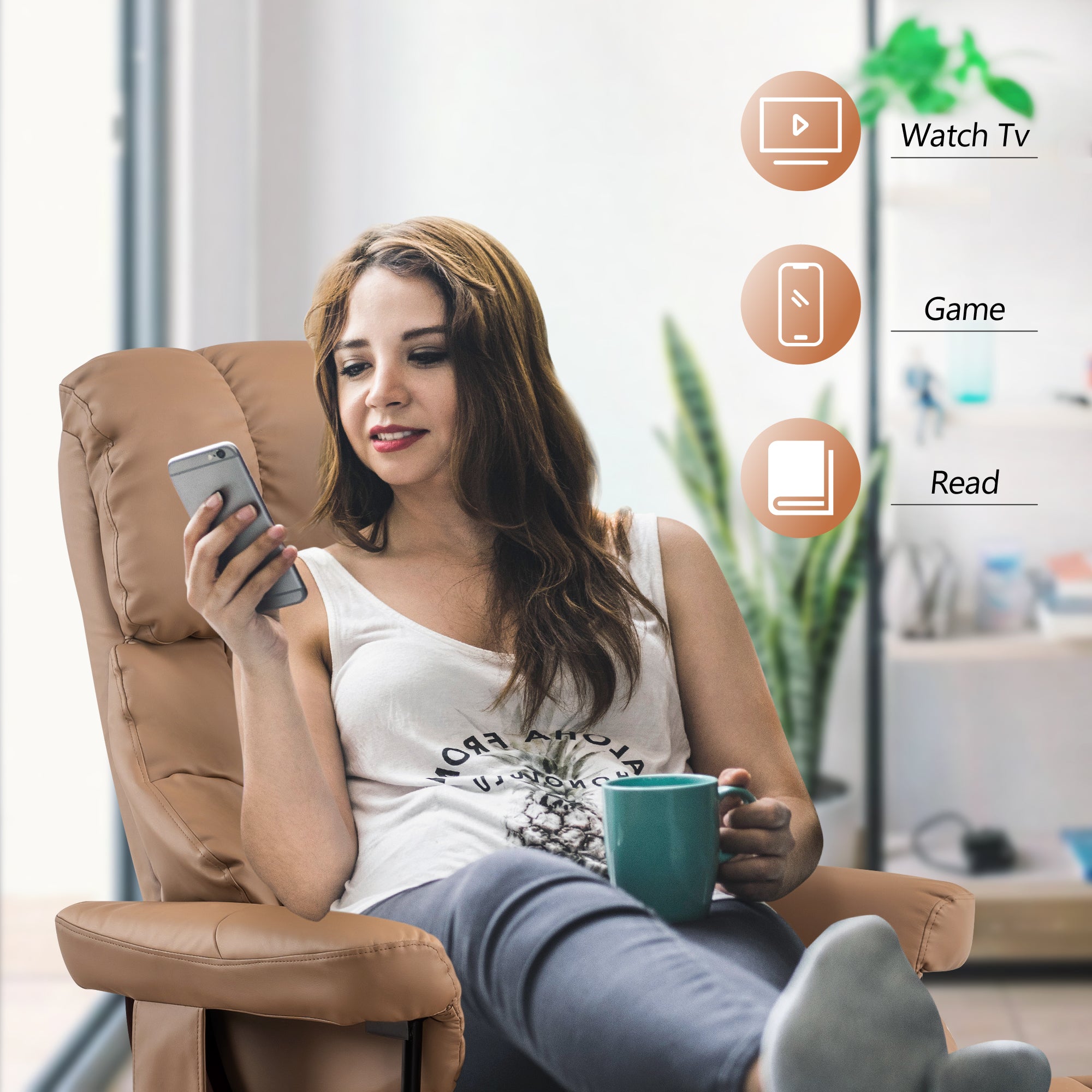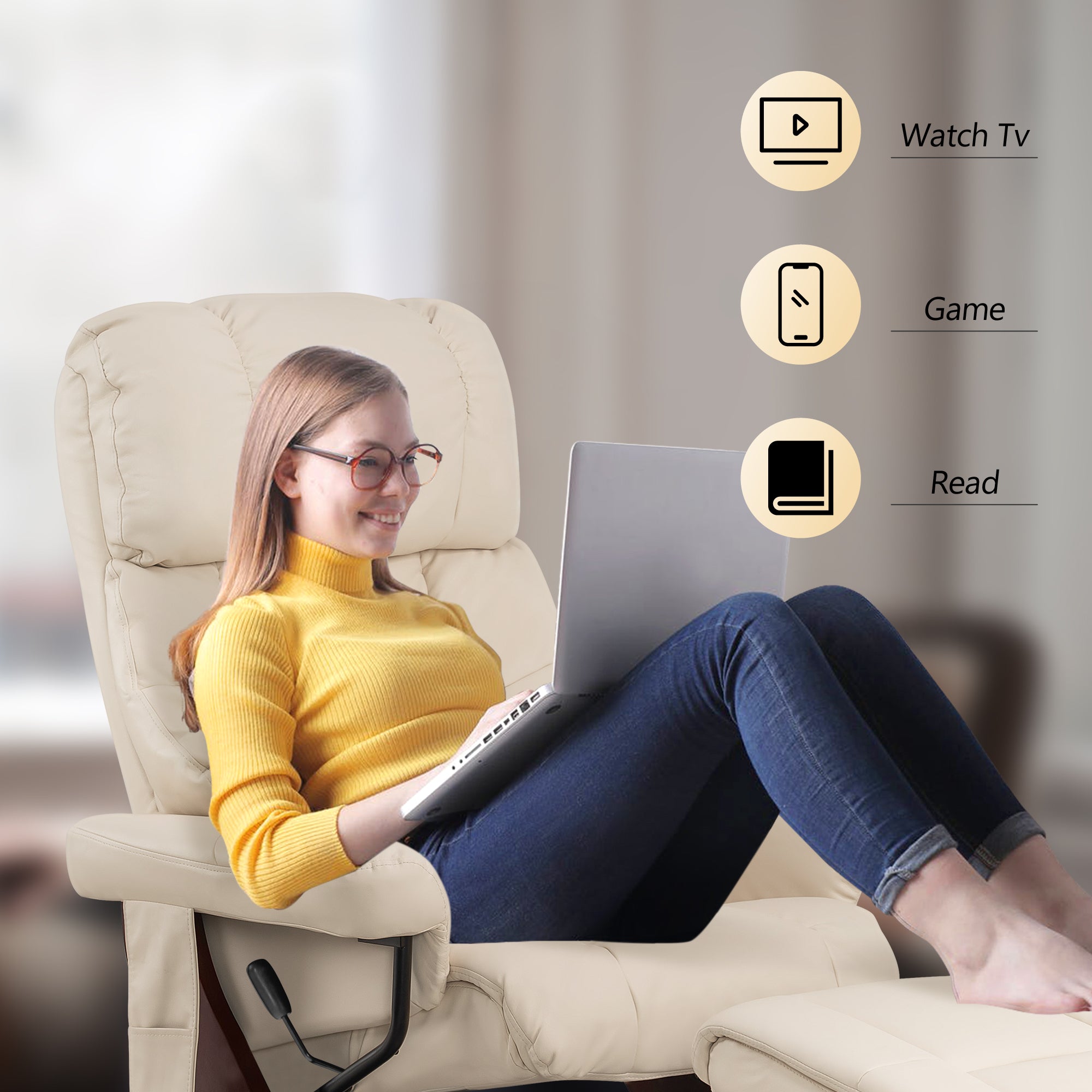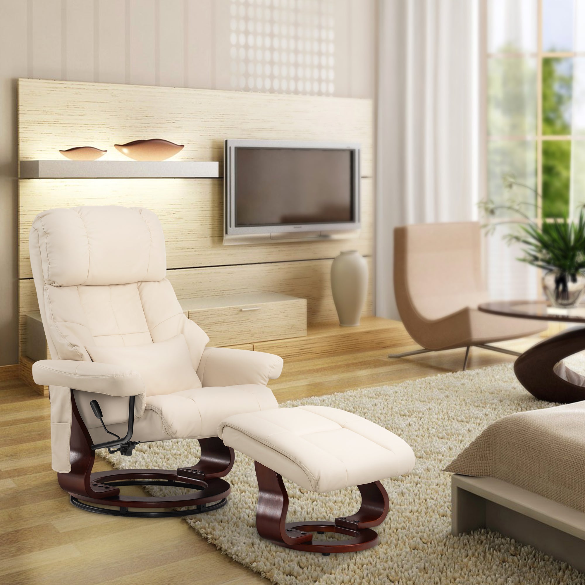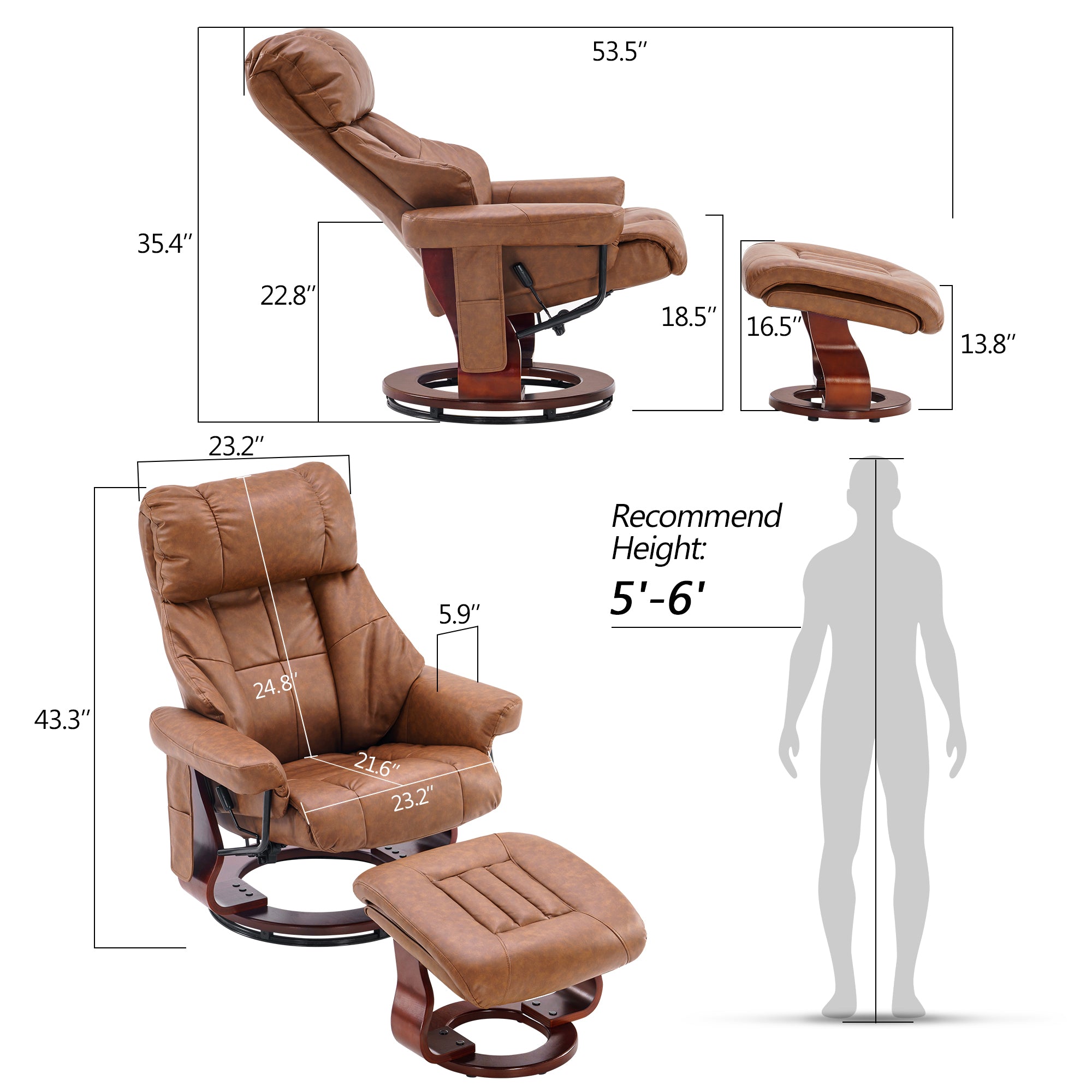 Swivel Recliner with Ottoman, with Massage, Faux Leather 9068
